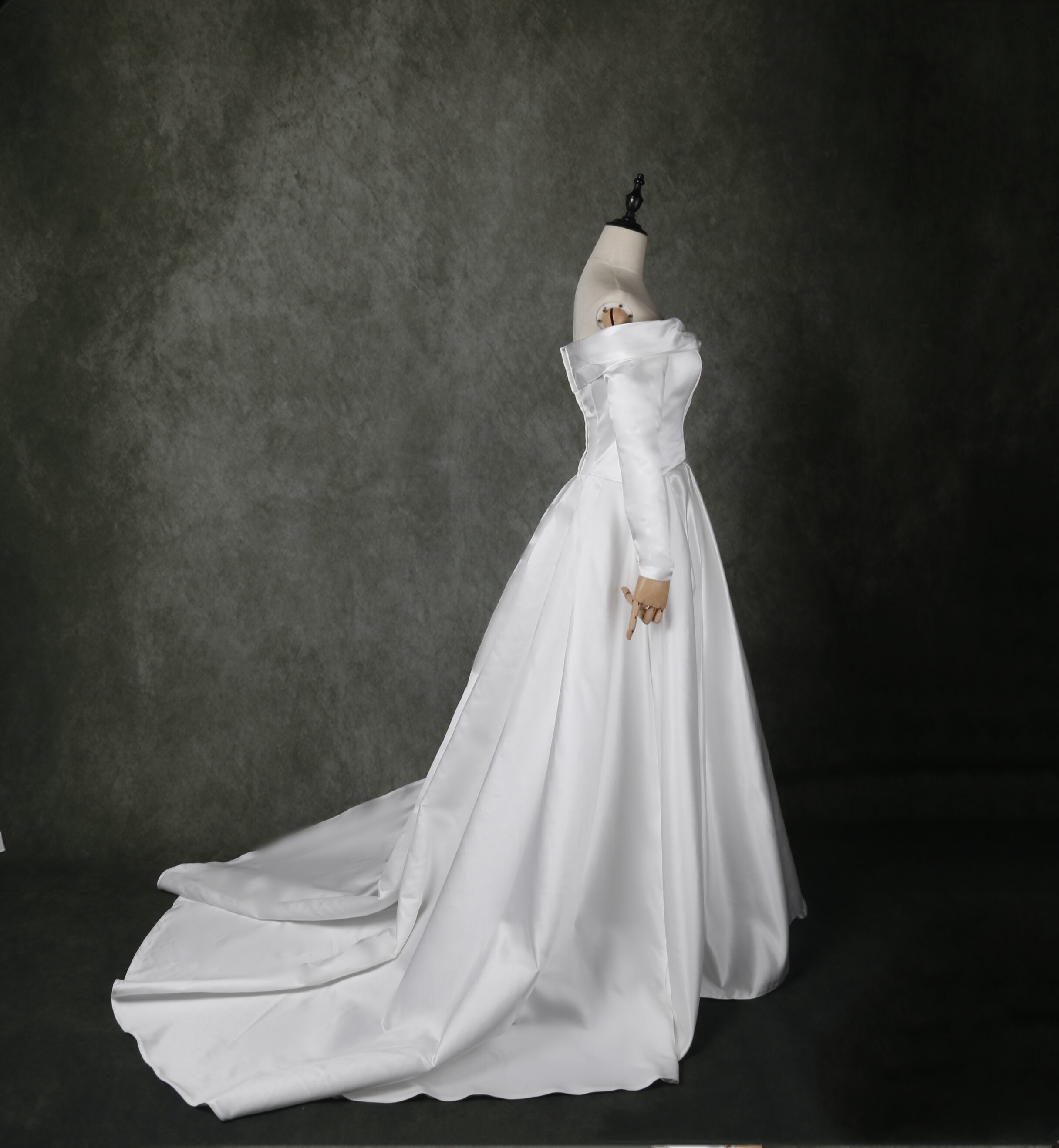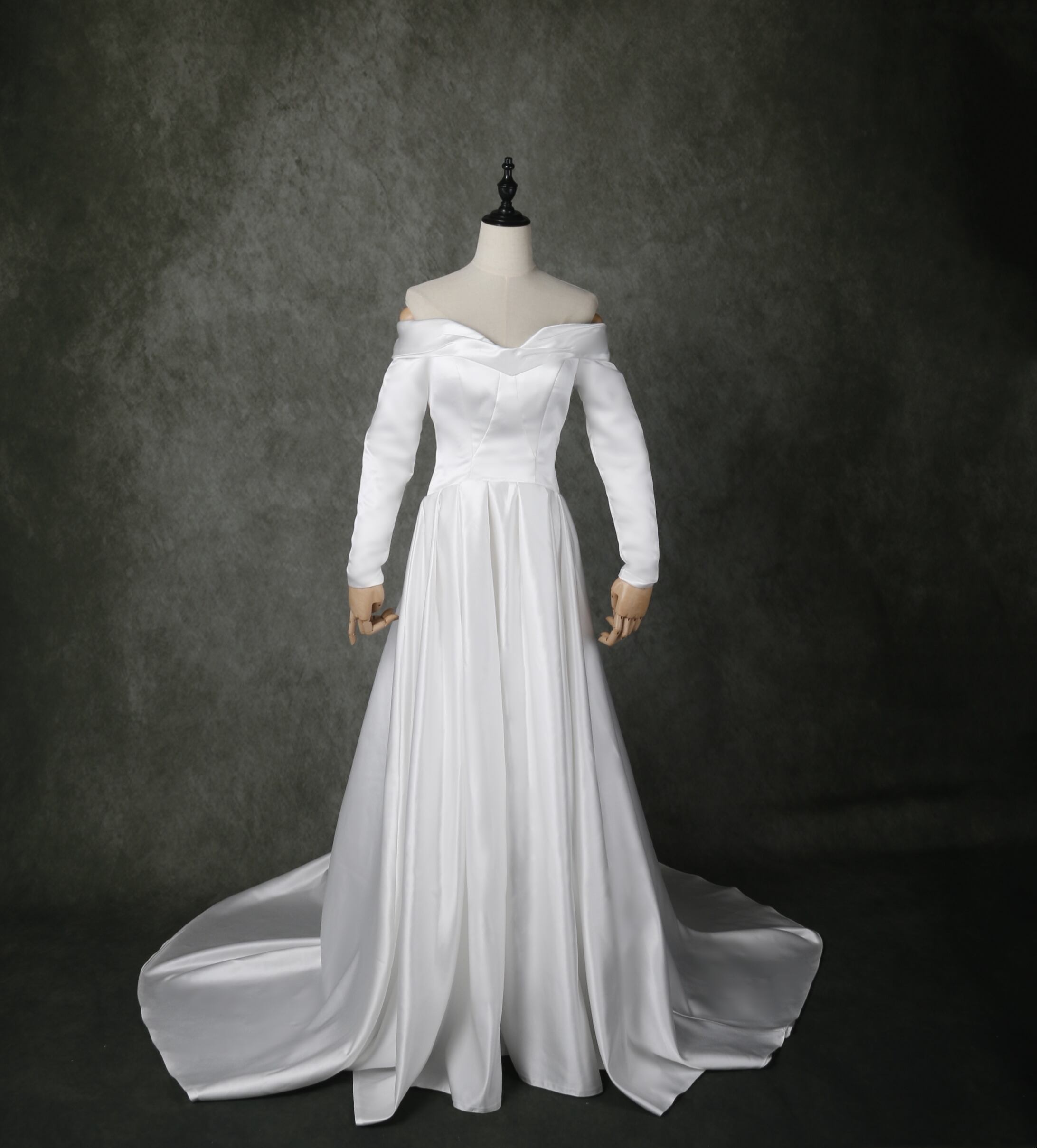 上品! ホワイト ウェディングドレス 長袖  華やかなトレーン花嫁/結婚式/披露宴