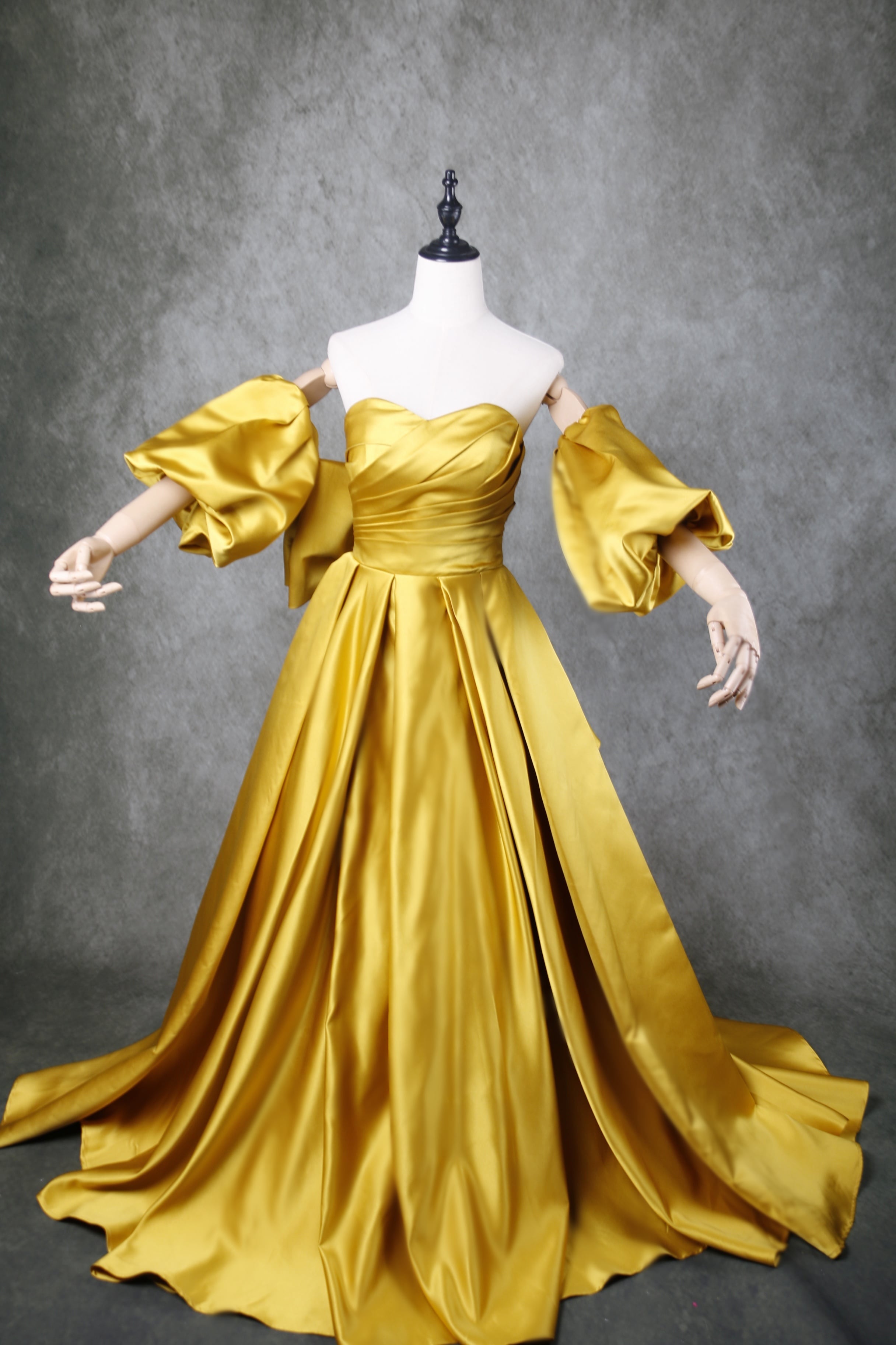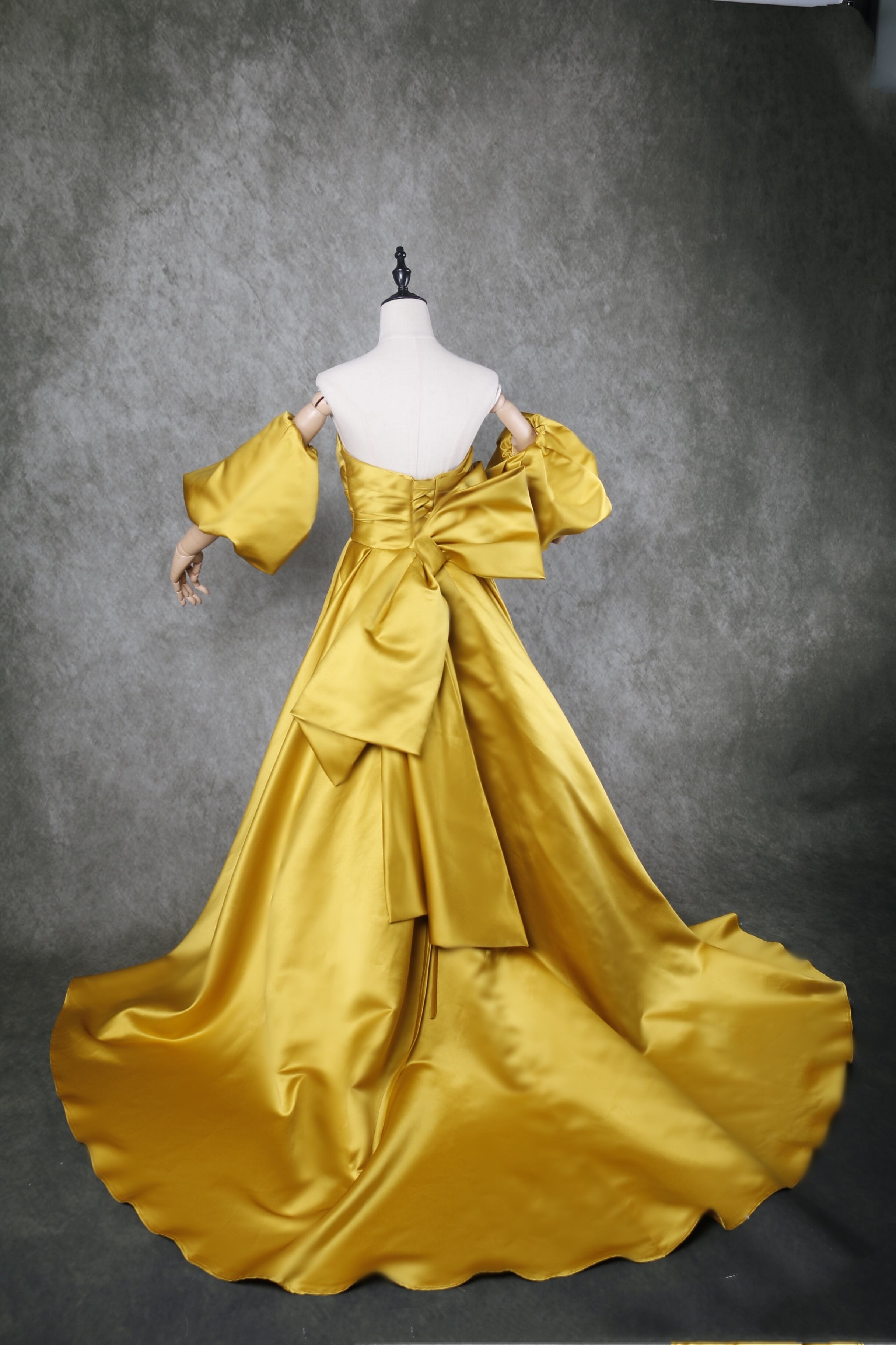 送料無料! 人気上昇!カラードレス パーティードレス ベアトップ 取り外し 姫袖 美しいバックリボン /結婚