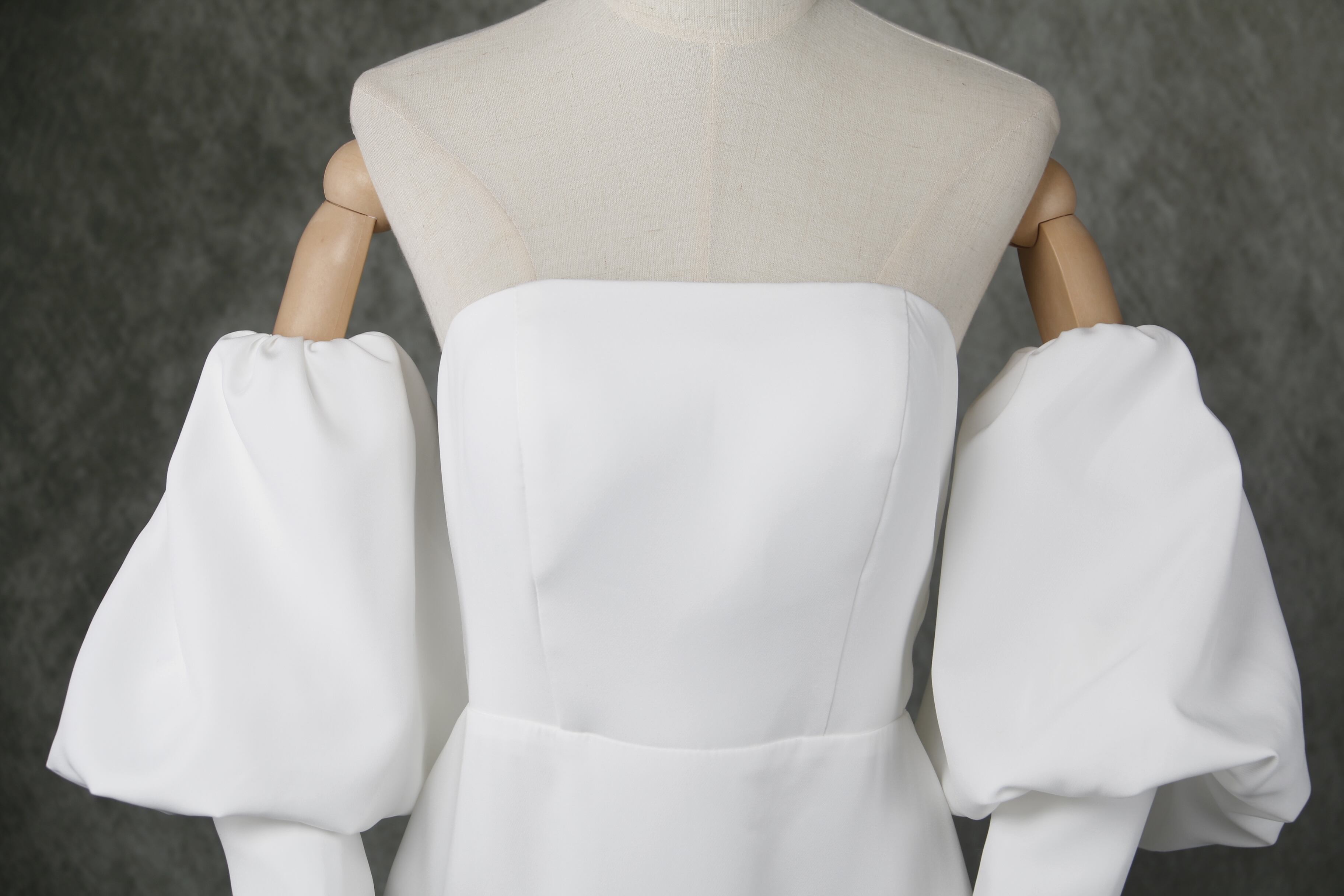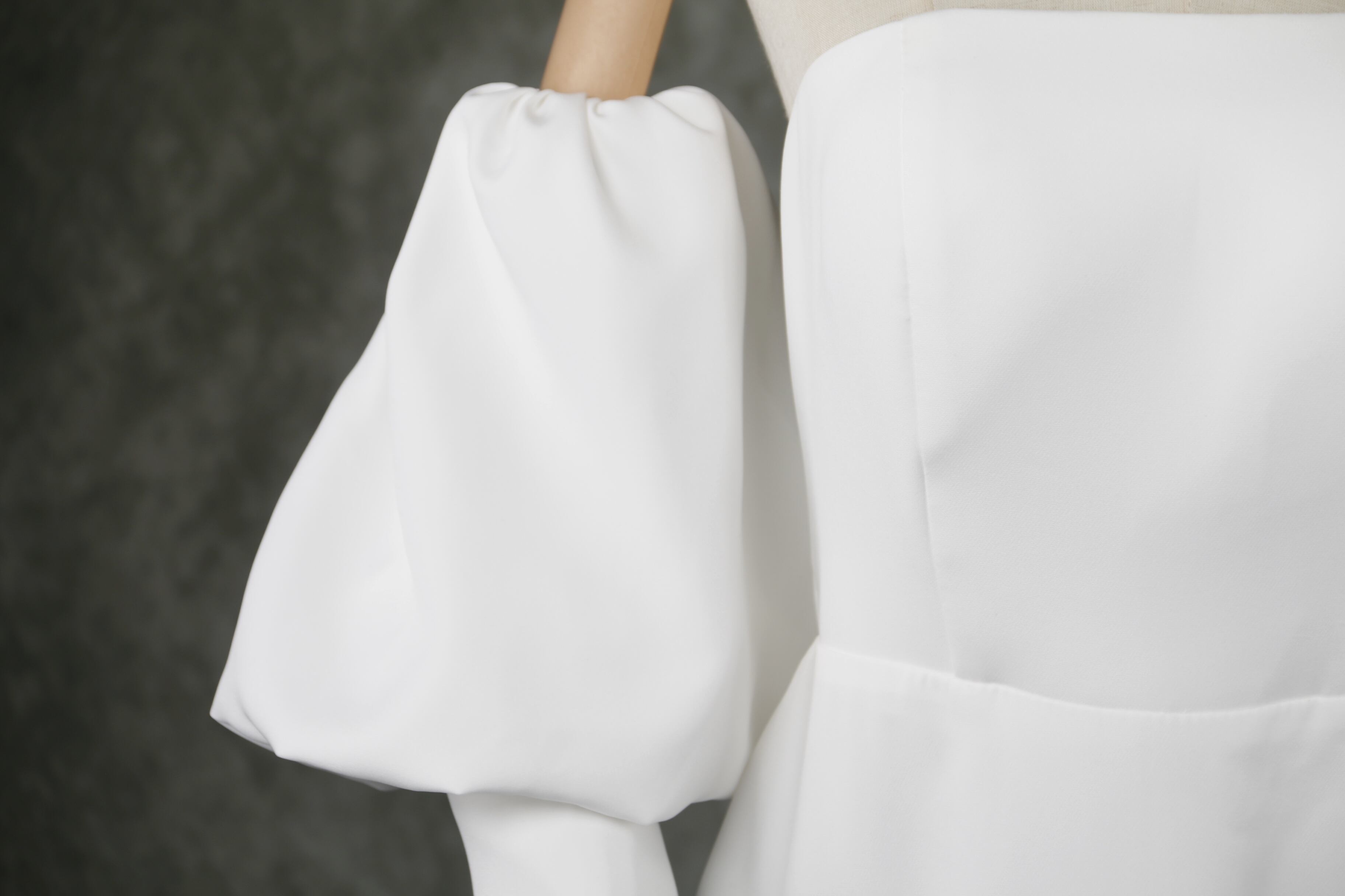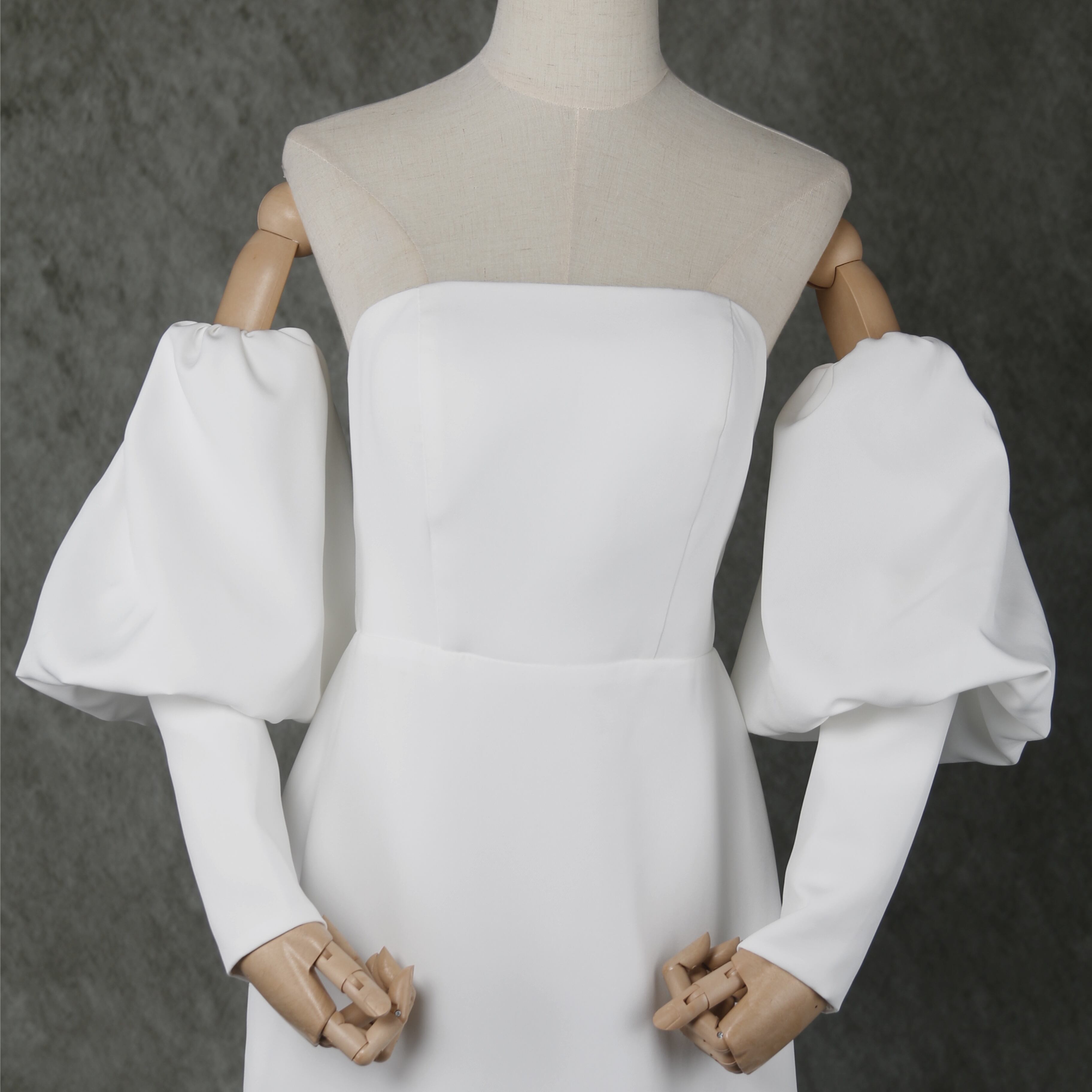 ホワイト ウェディングドレス 取り外し袖 短トレーン 花嫁/結婚式/披露宴