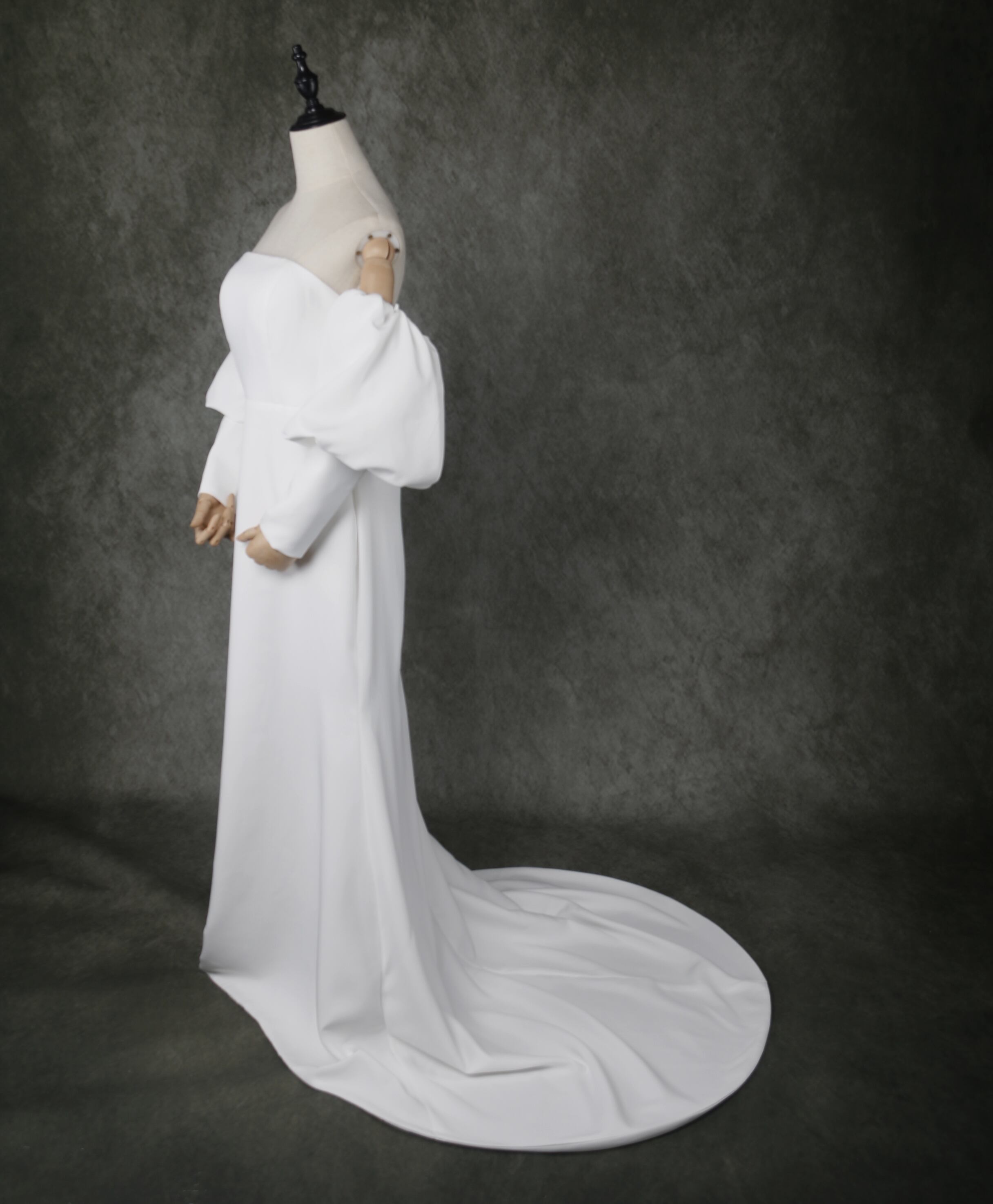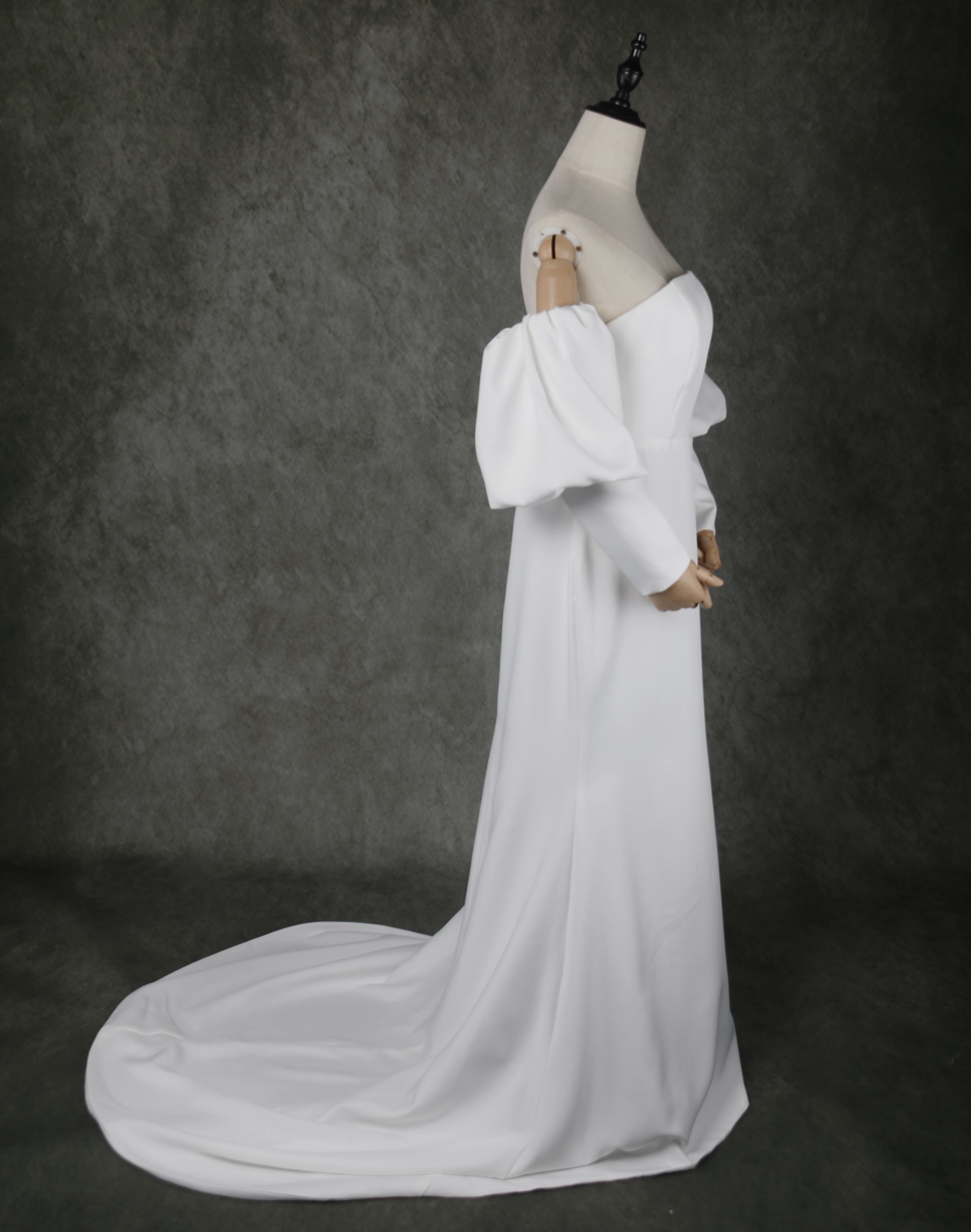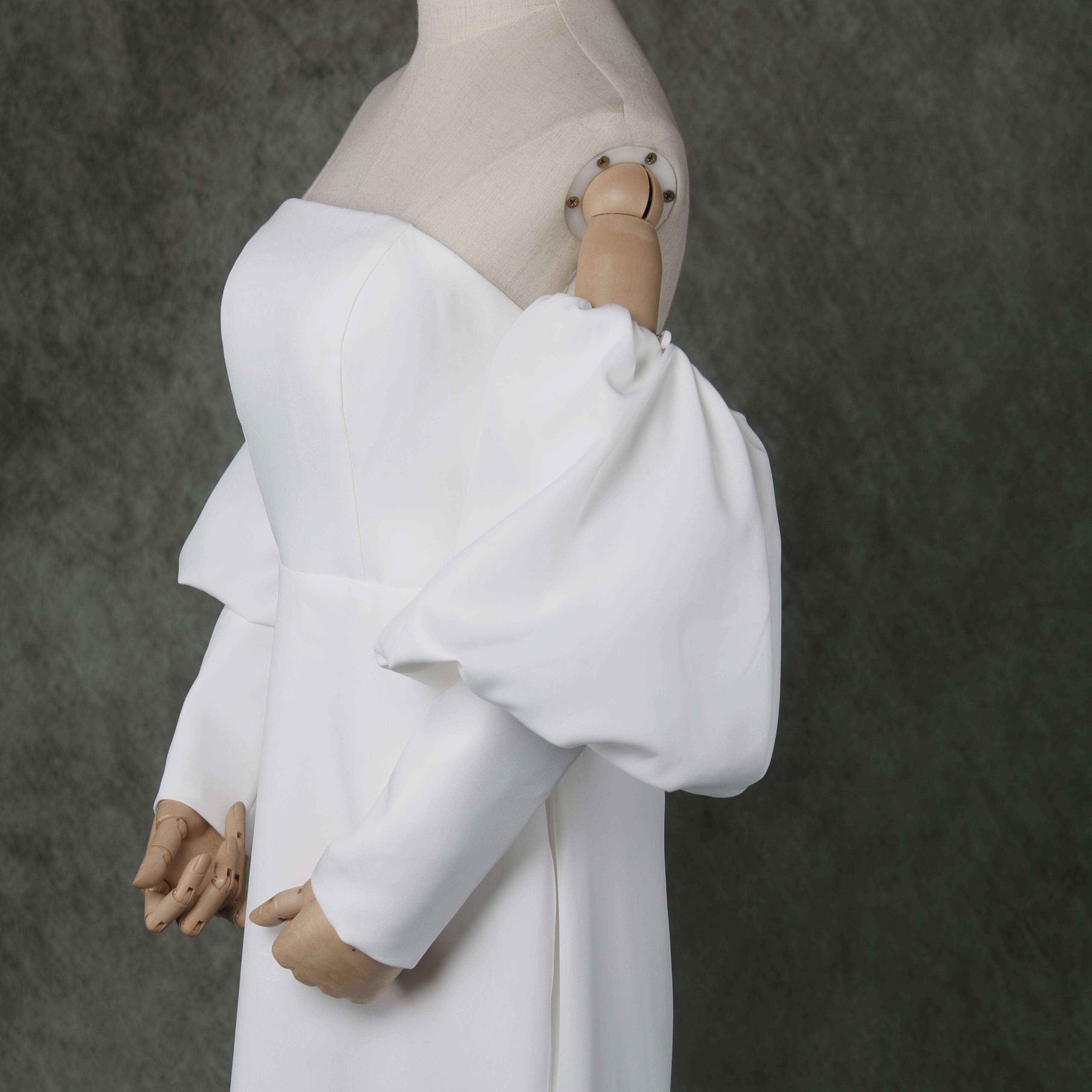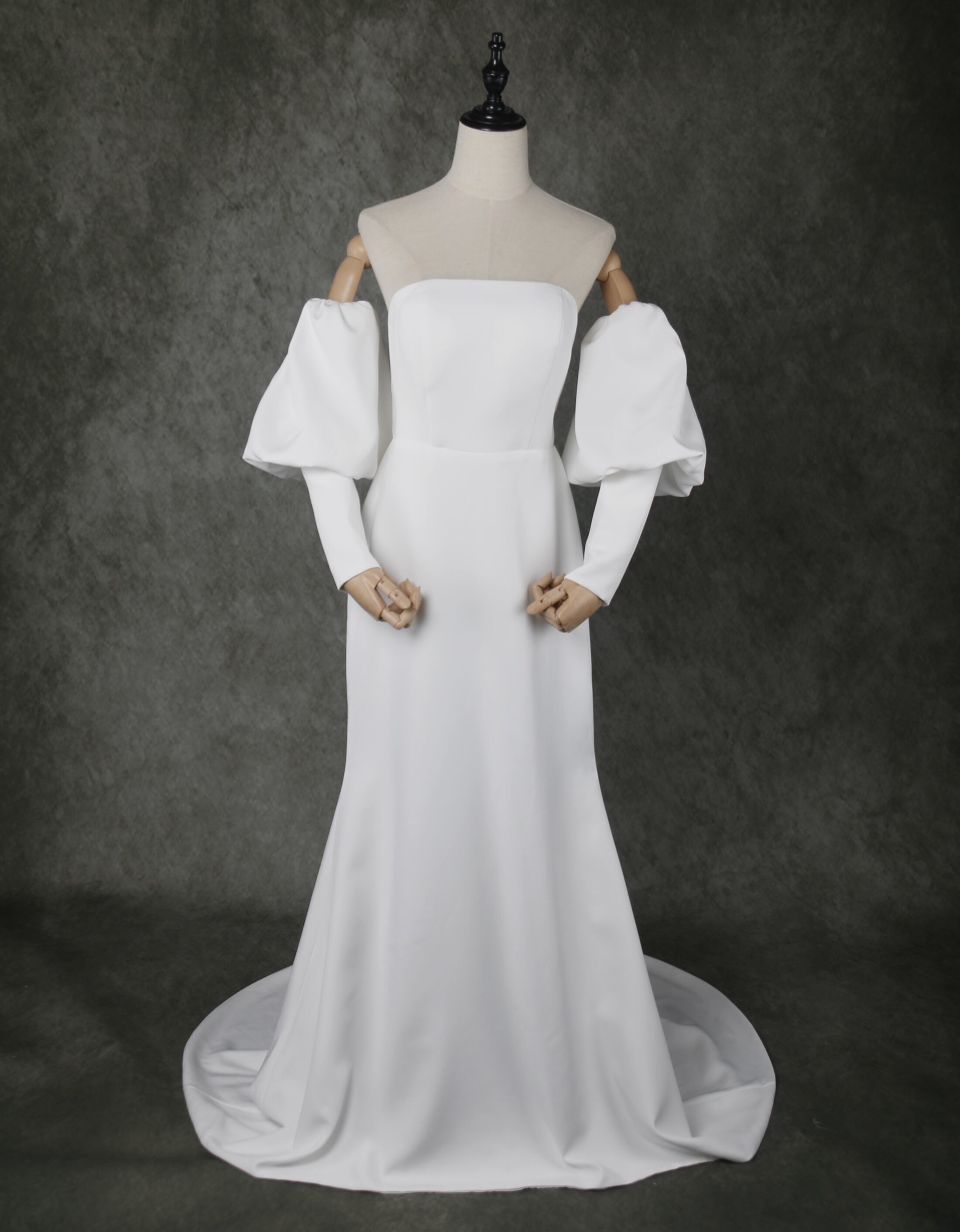 ホワイト ウェディングドレス 取り外し袖 短トレーン 花嫁/結婚式/披露宴