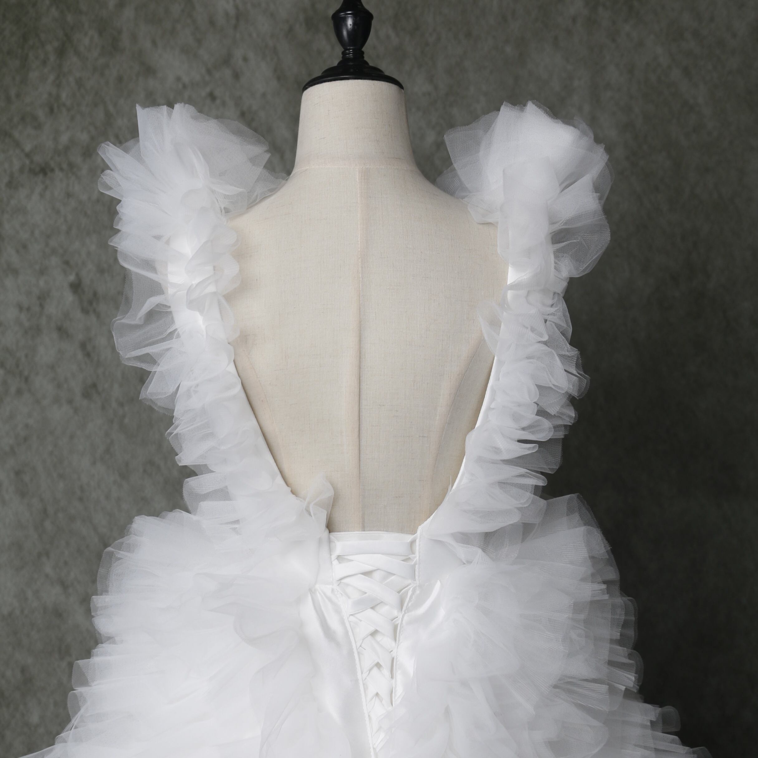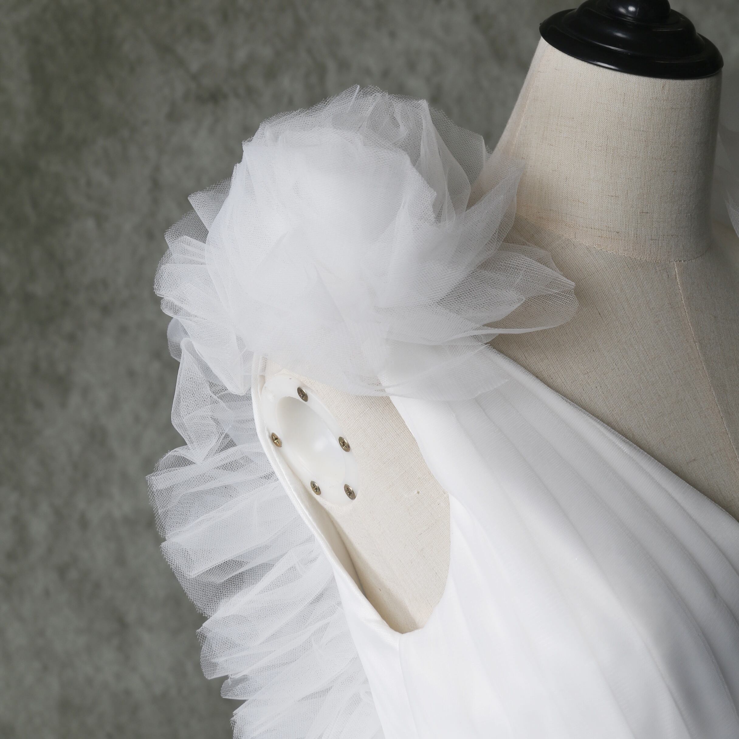 送料無料!美品! ホワイト プリンセスライン パステルイエロ 重ねたチュールスカート/前撮り/結婚式/