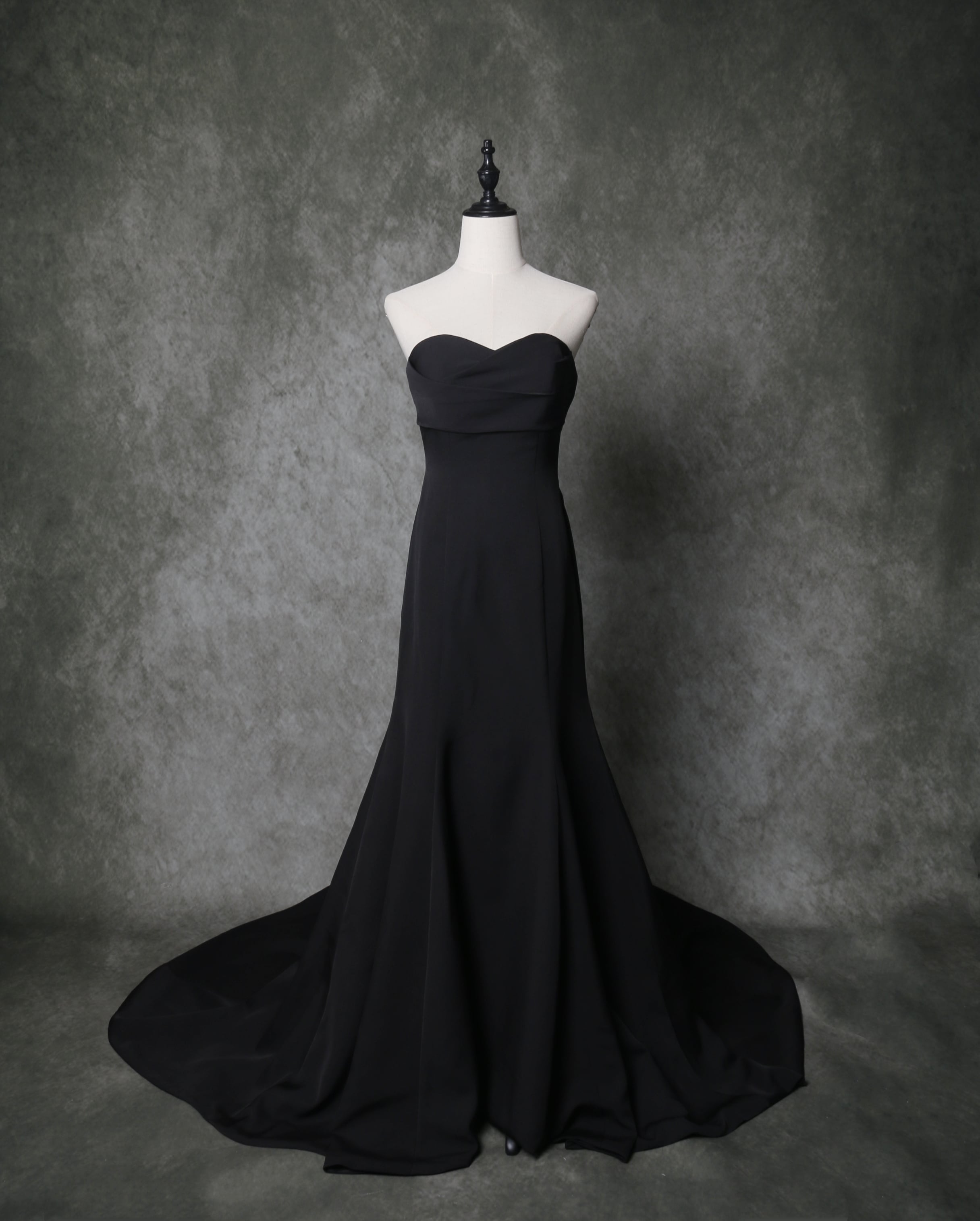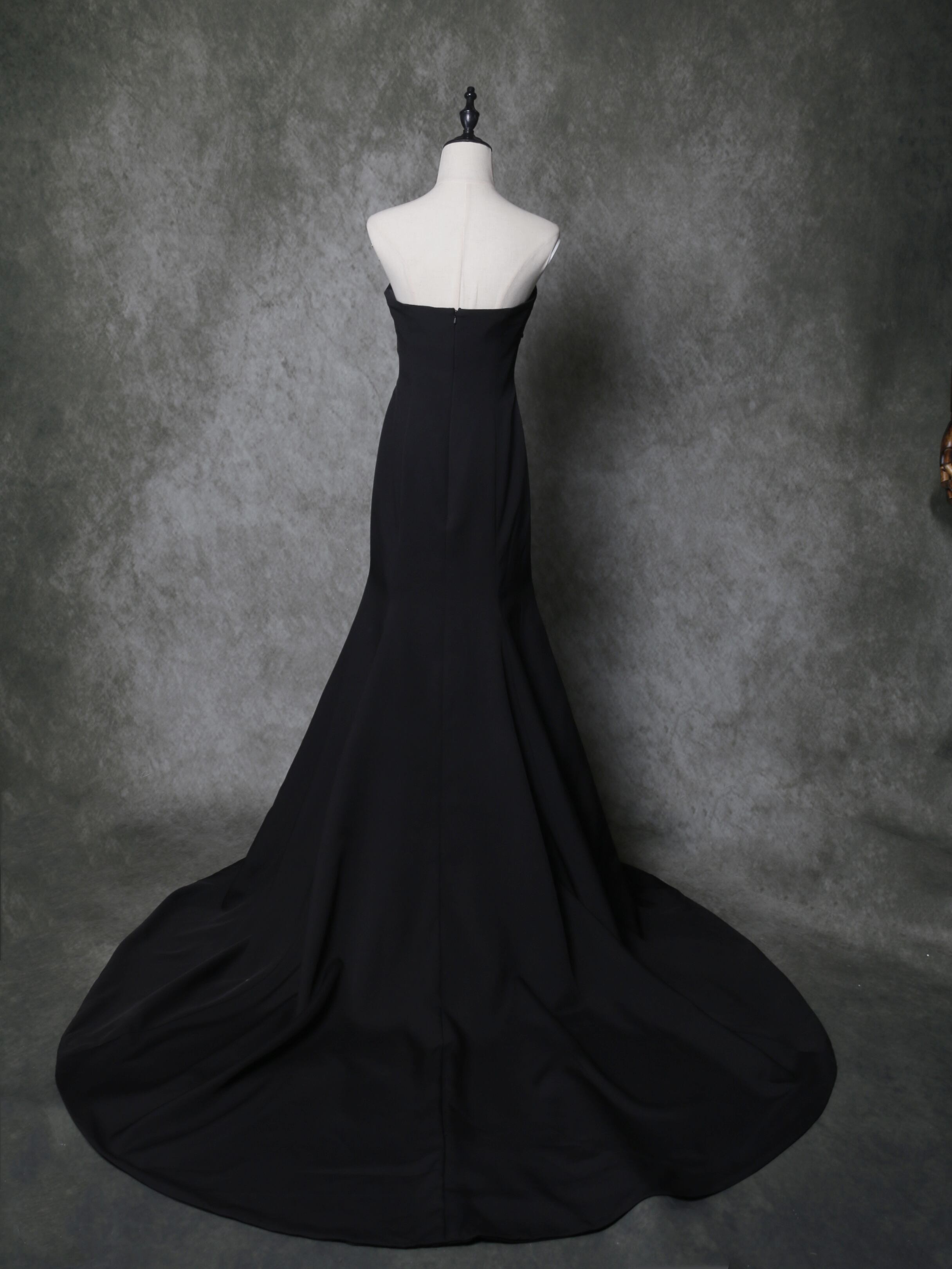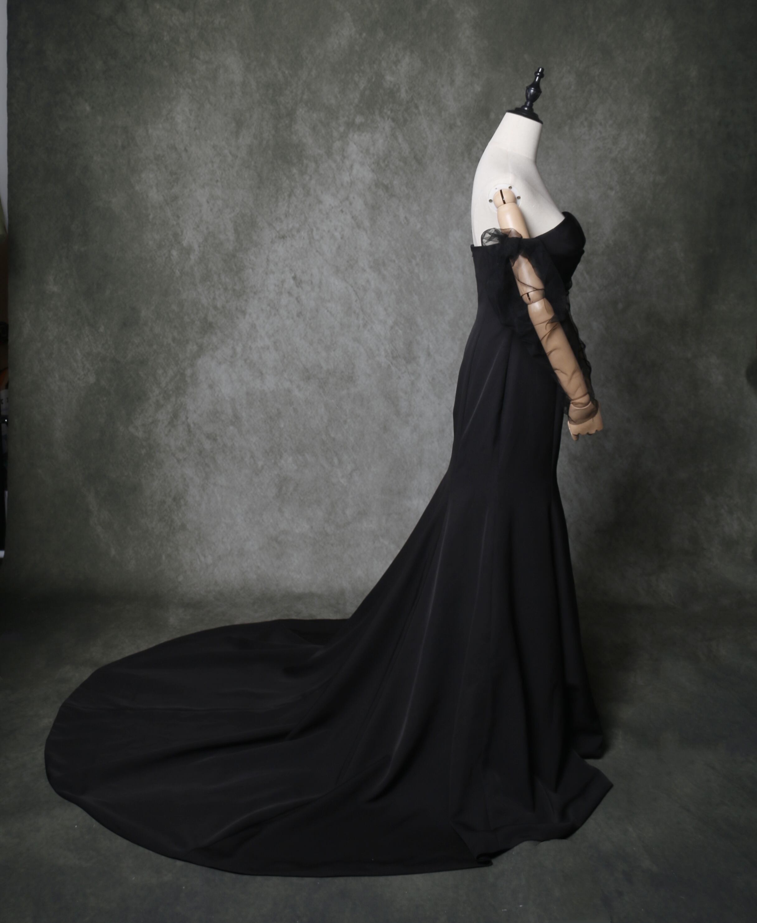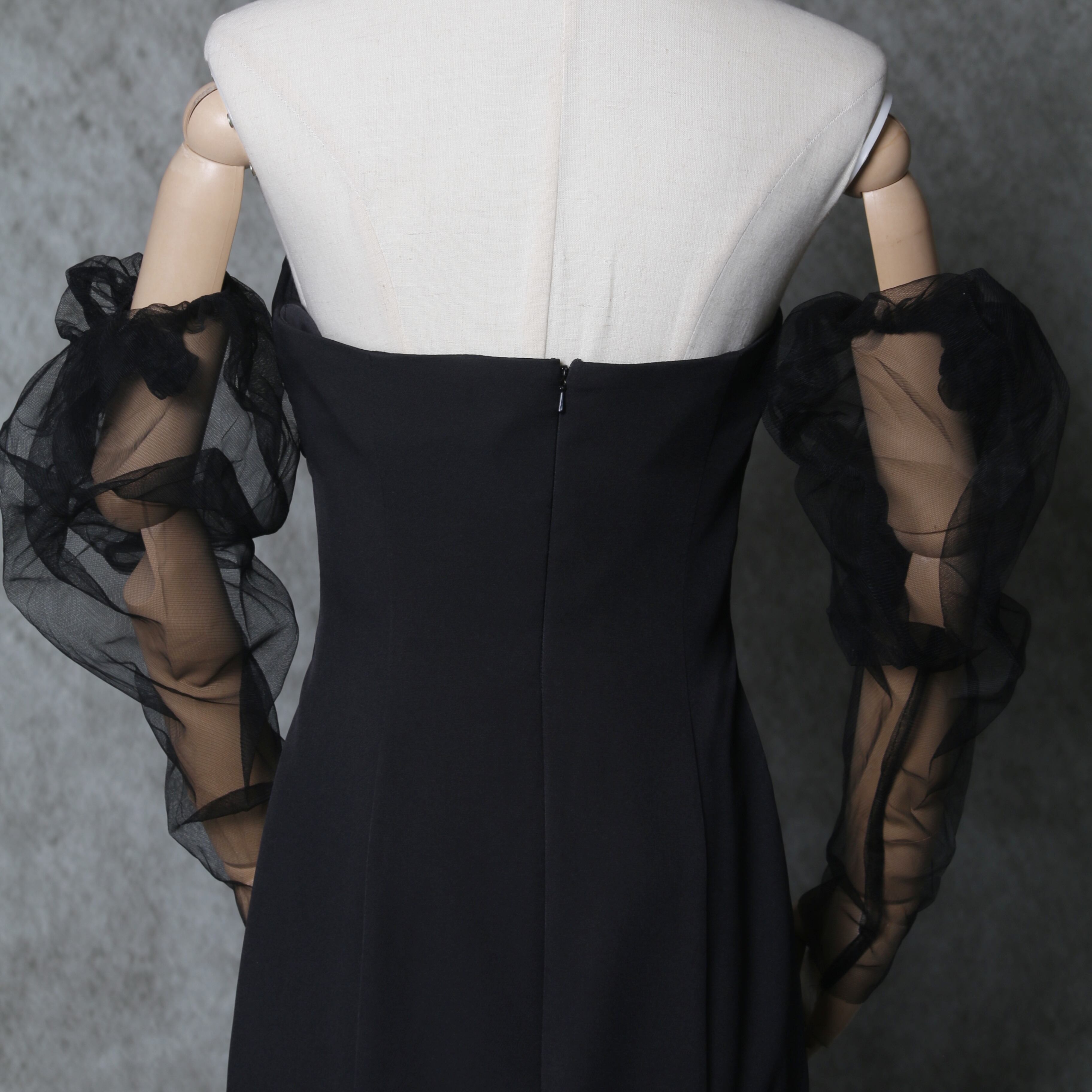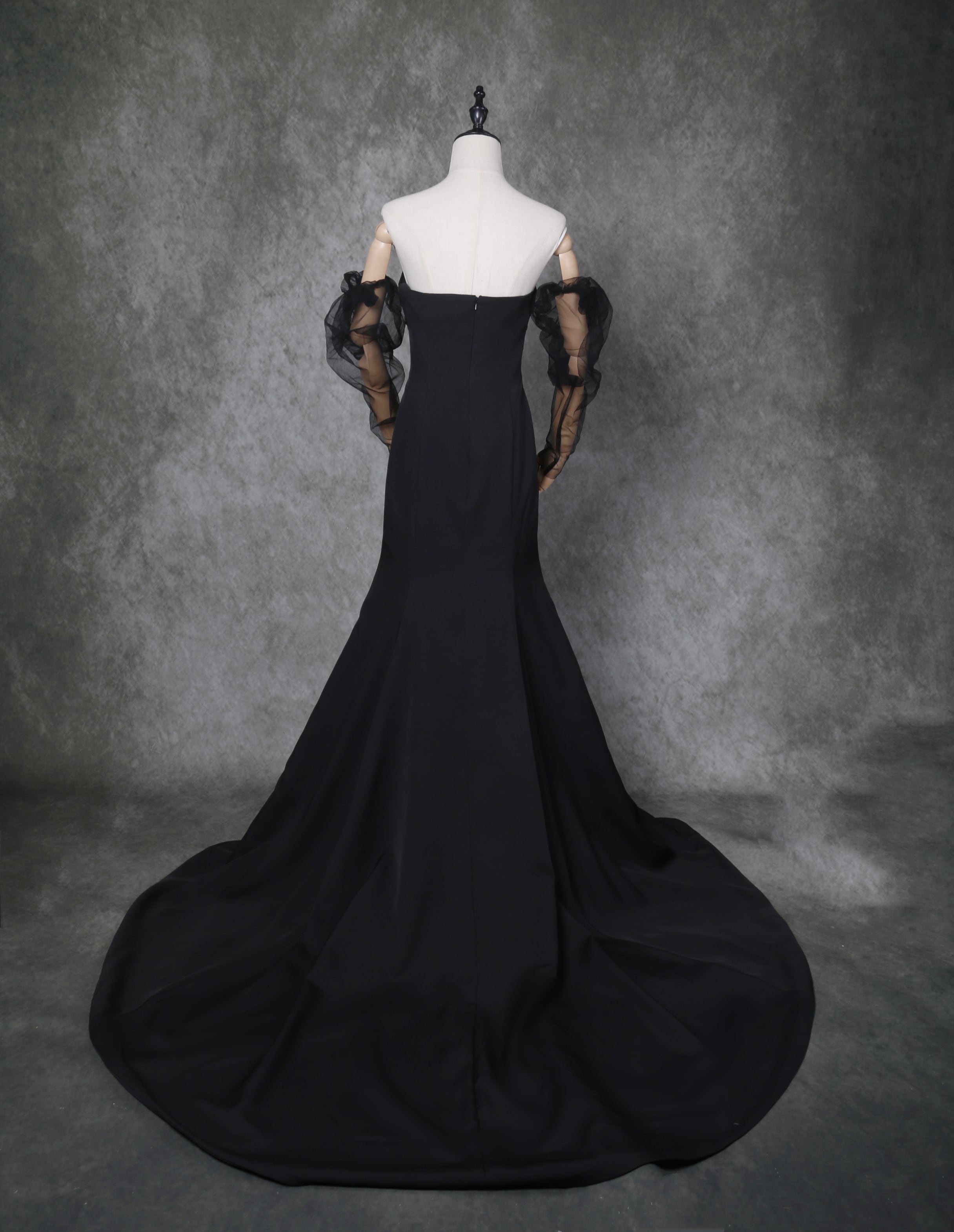 エレガント 黒 カラードレス 取り外し袖 華やかなトレーン 花嫁/結婚式/披露宴