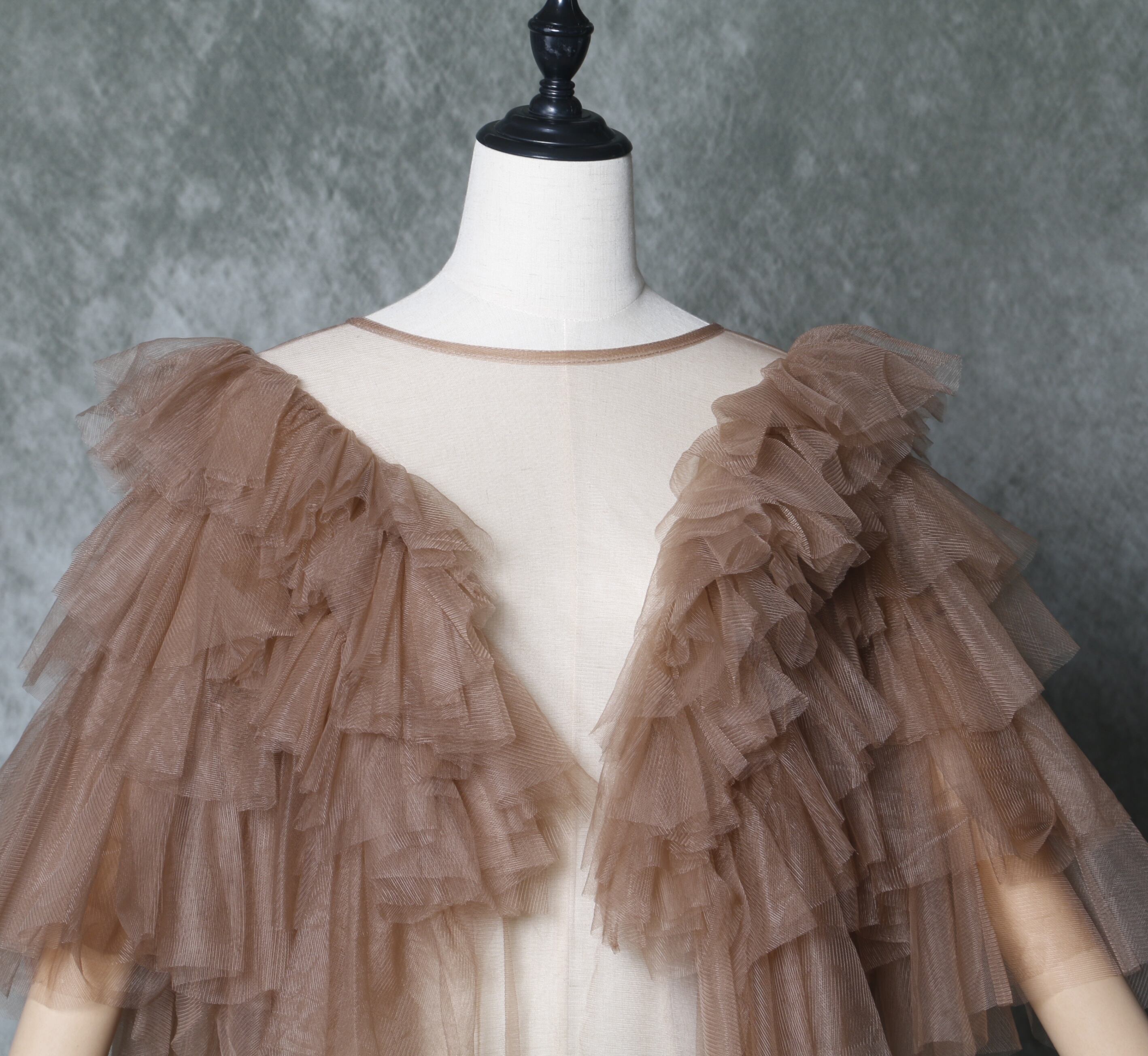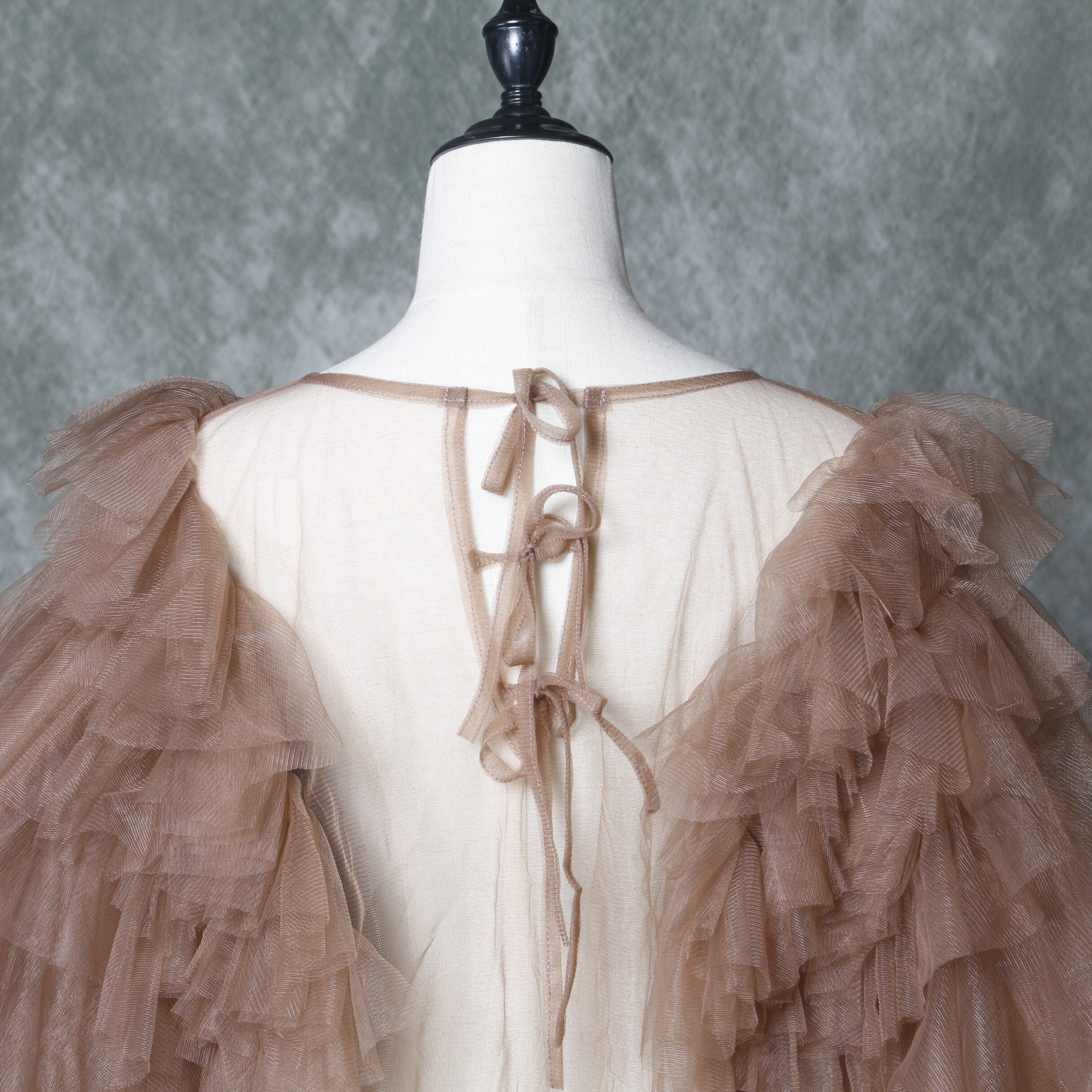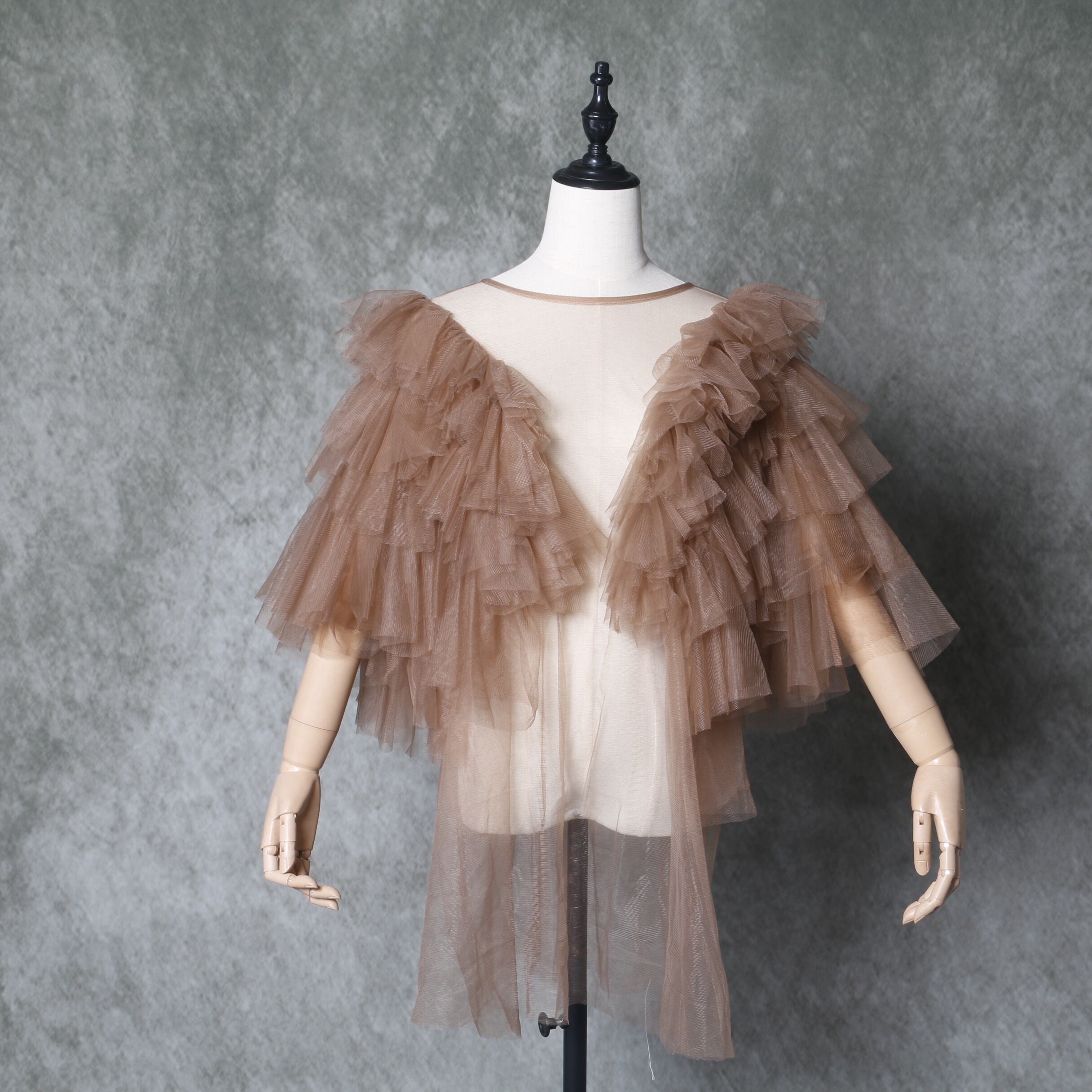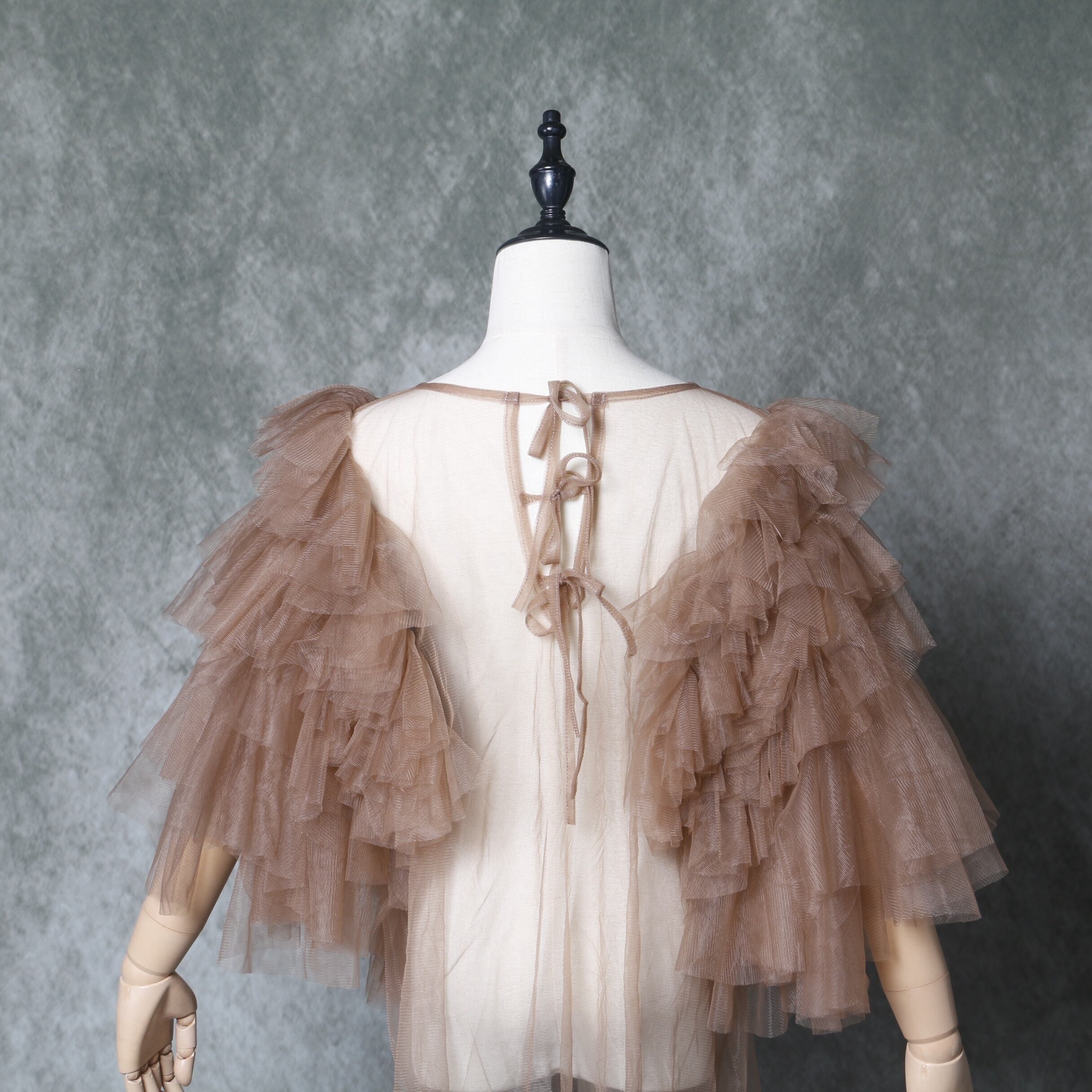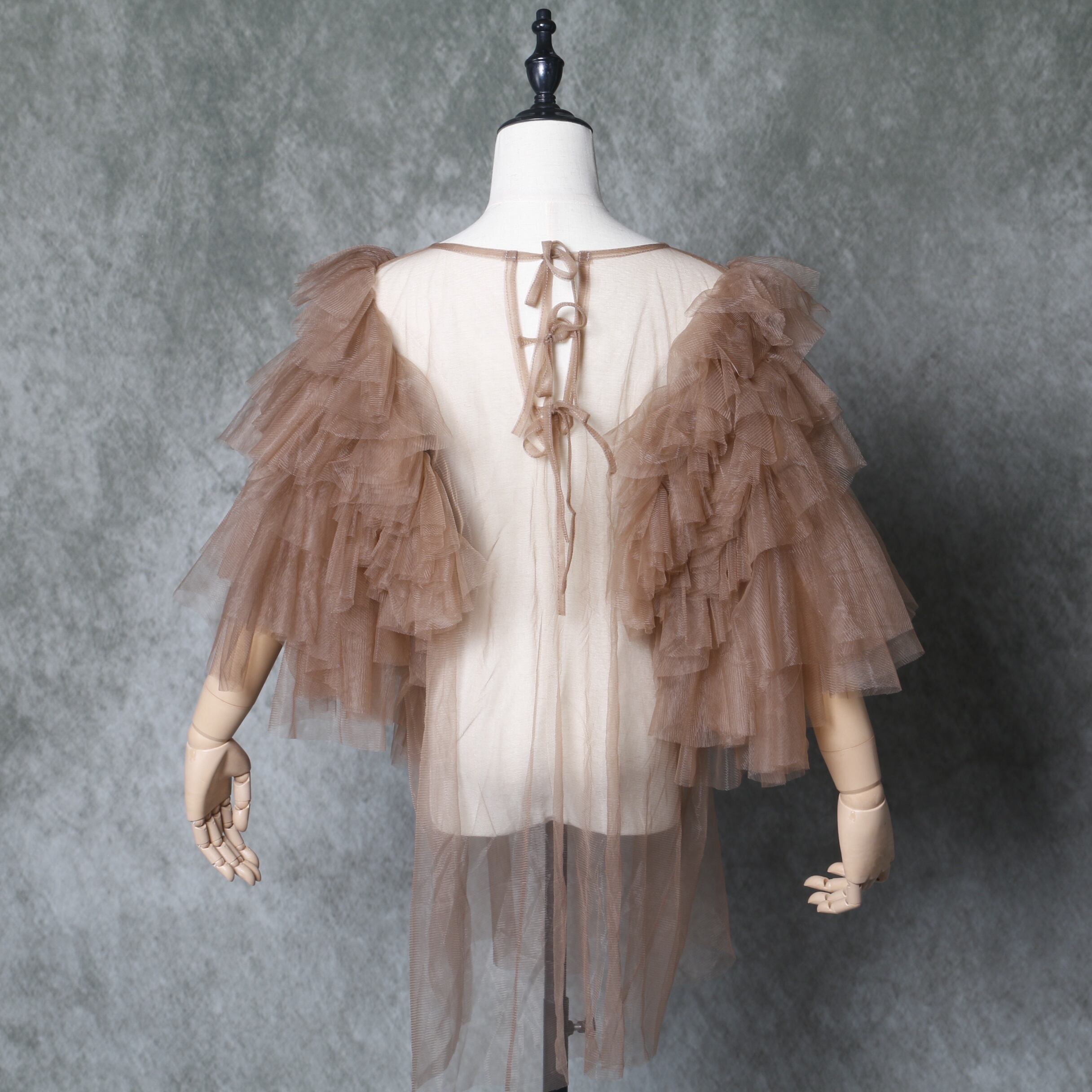 送料無料!美品!フェミニンなフレームレースの袖トップス + ソフトチュール ポンチョ