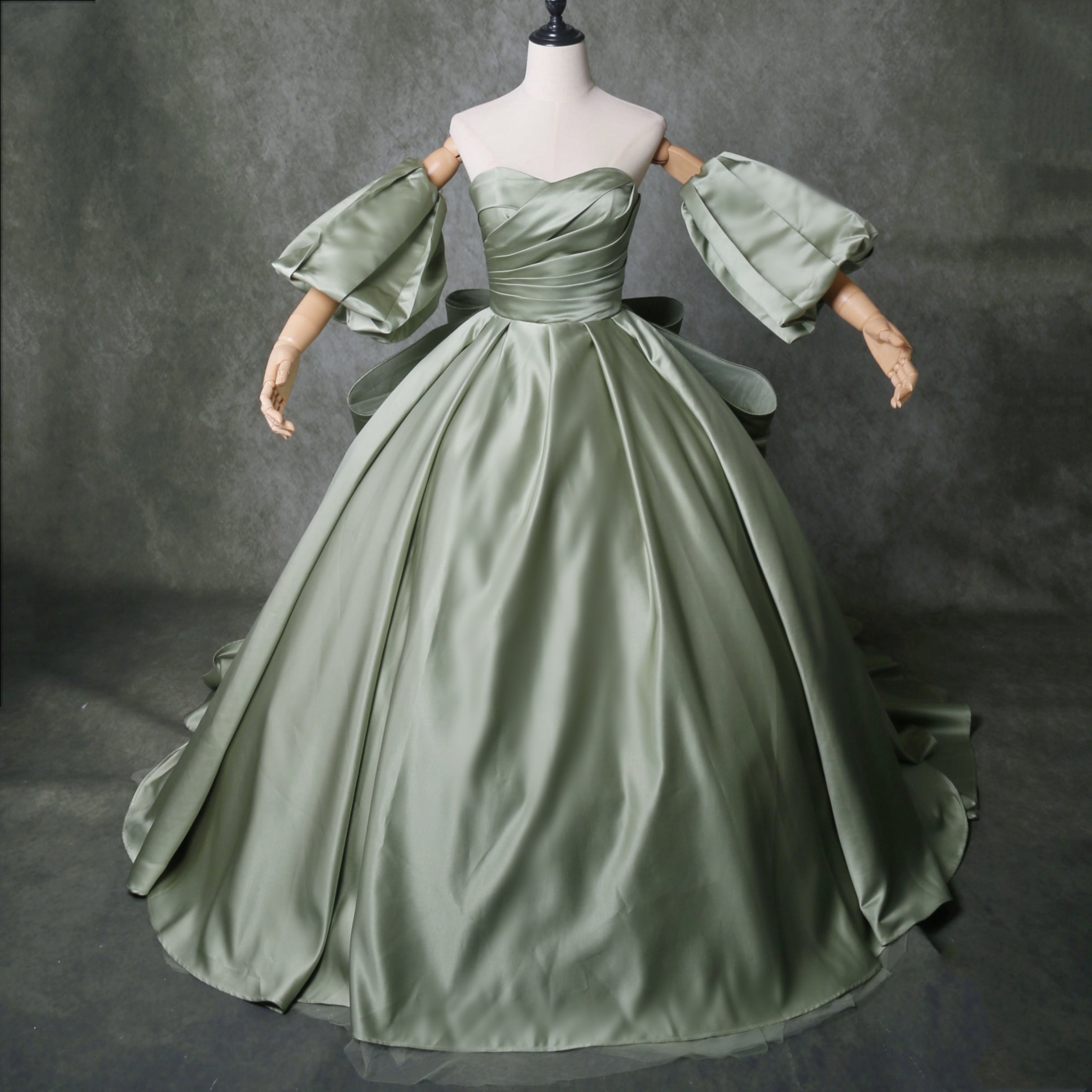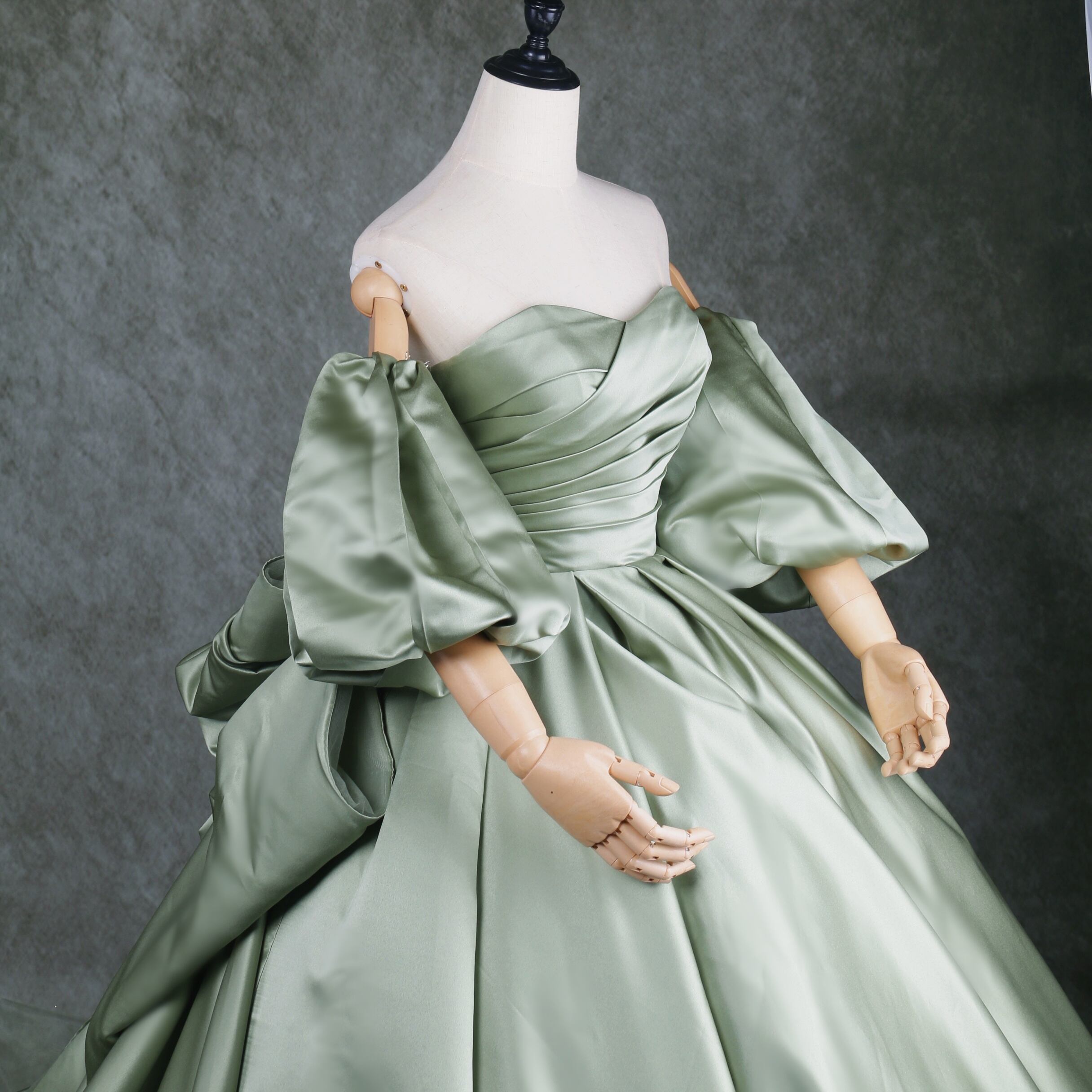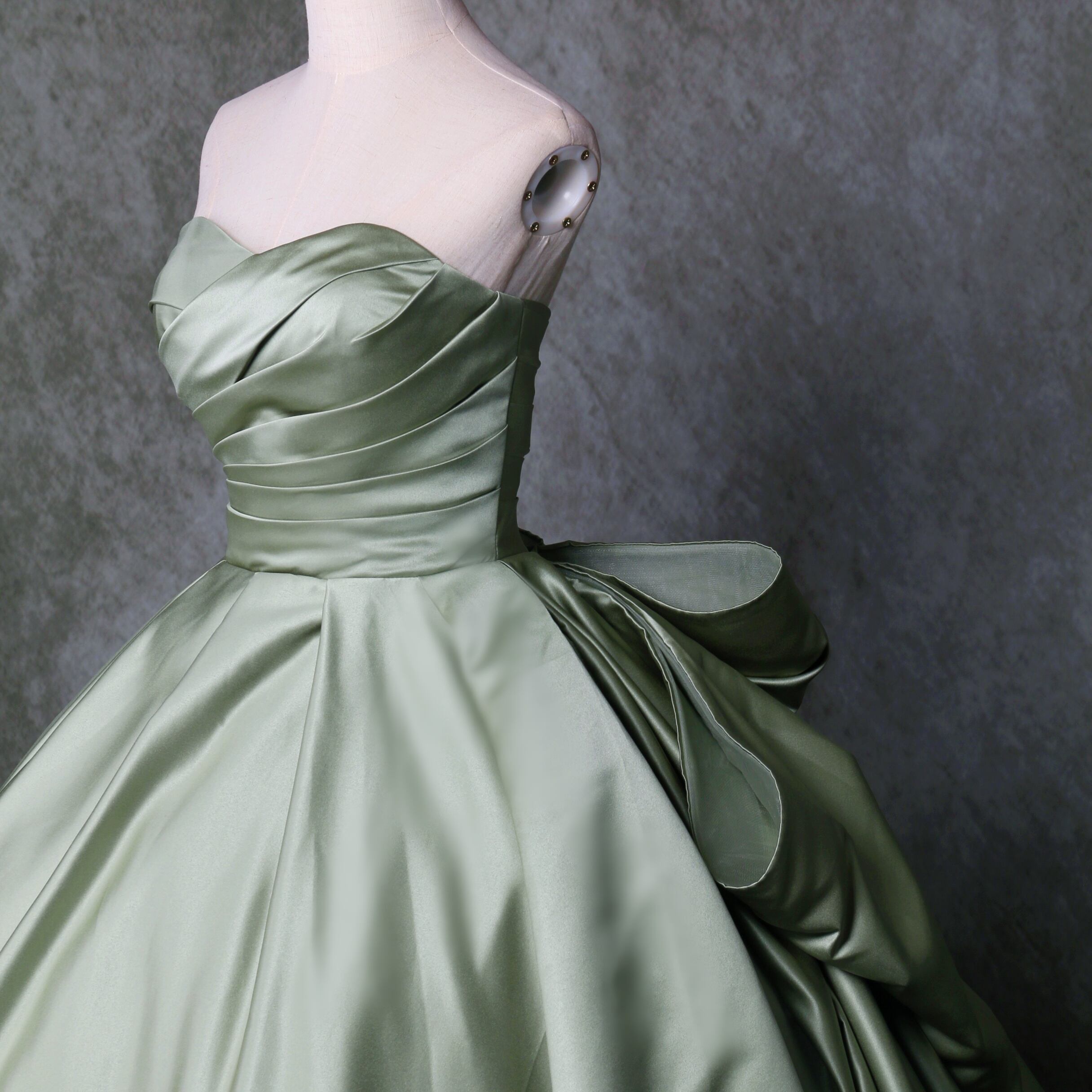 送料無料!高品質!グリーン カラードレス パーティードレス ビビッド美しいバックリボン /結婚式/披露宴