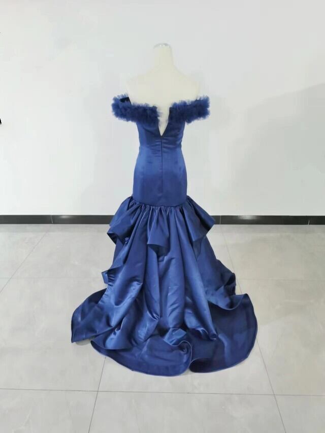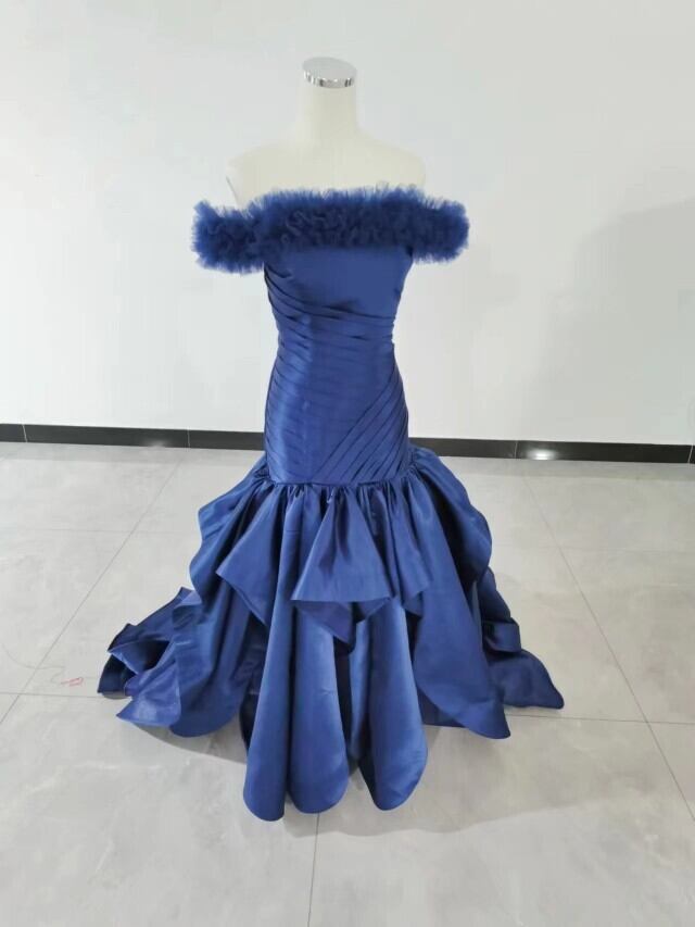 高品質! ウェディングドレス オフショルダー 上質オーガンジー マーメイドライン 撮り