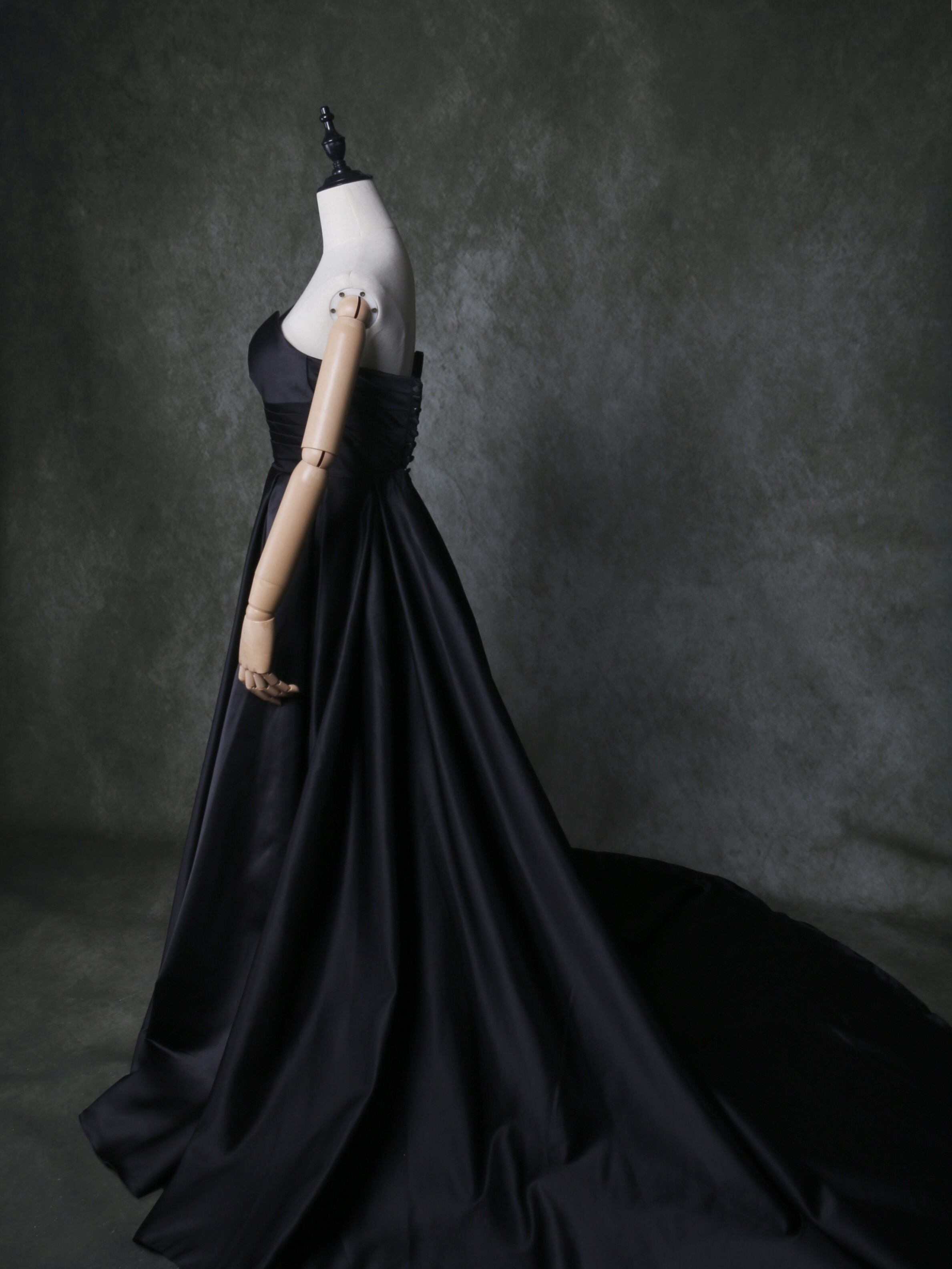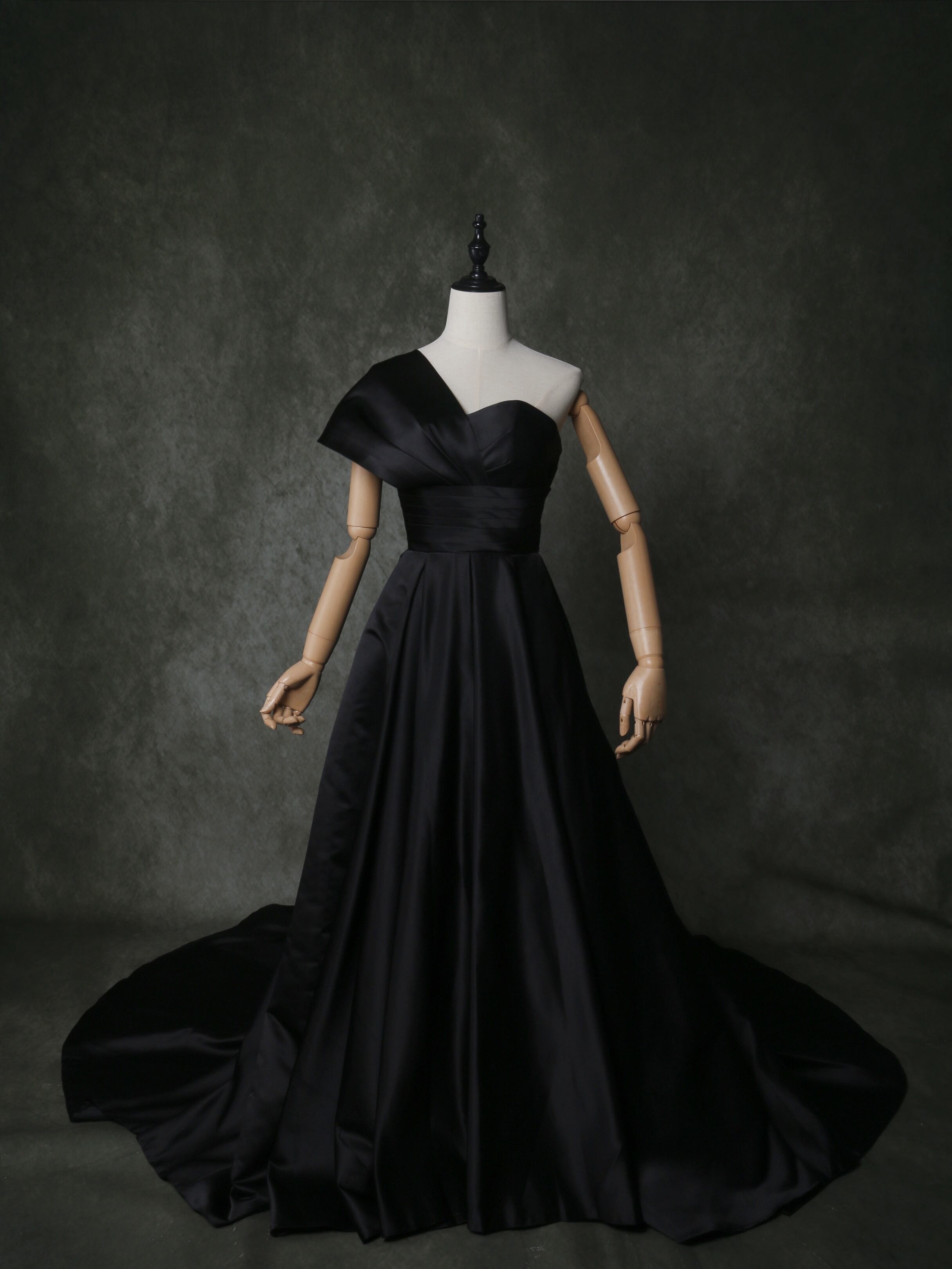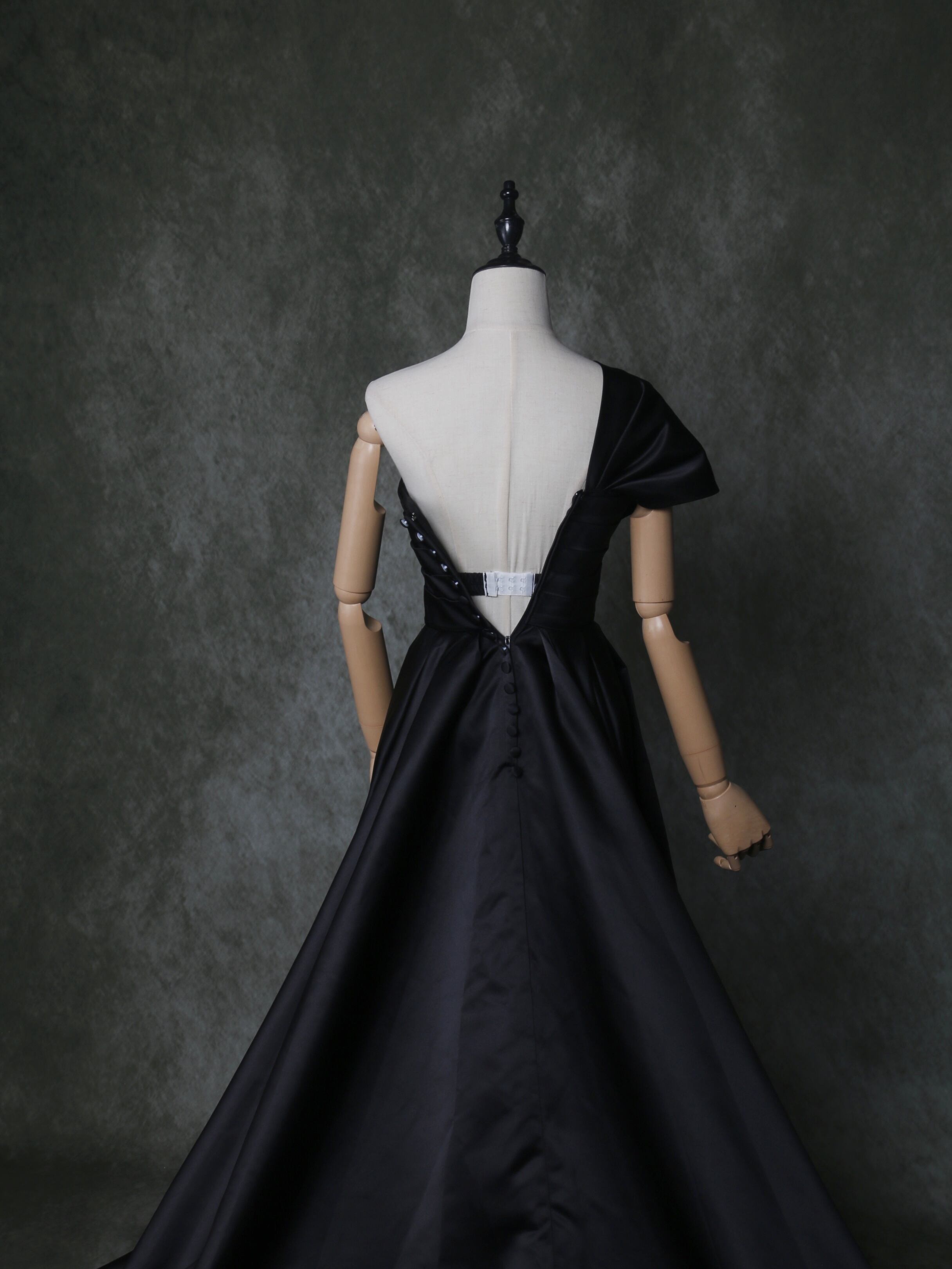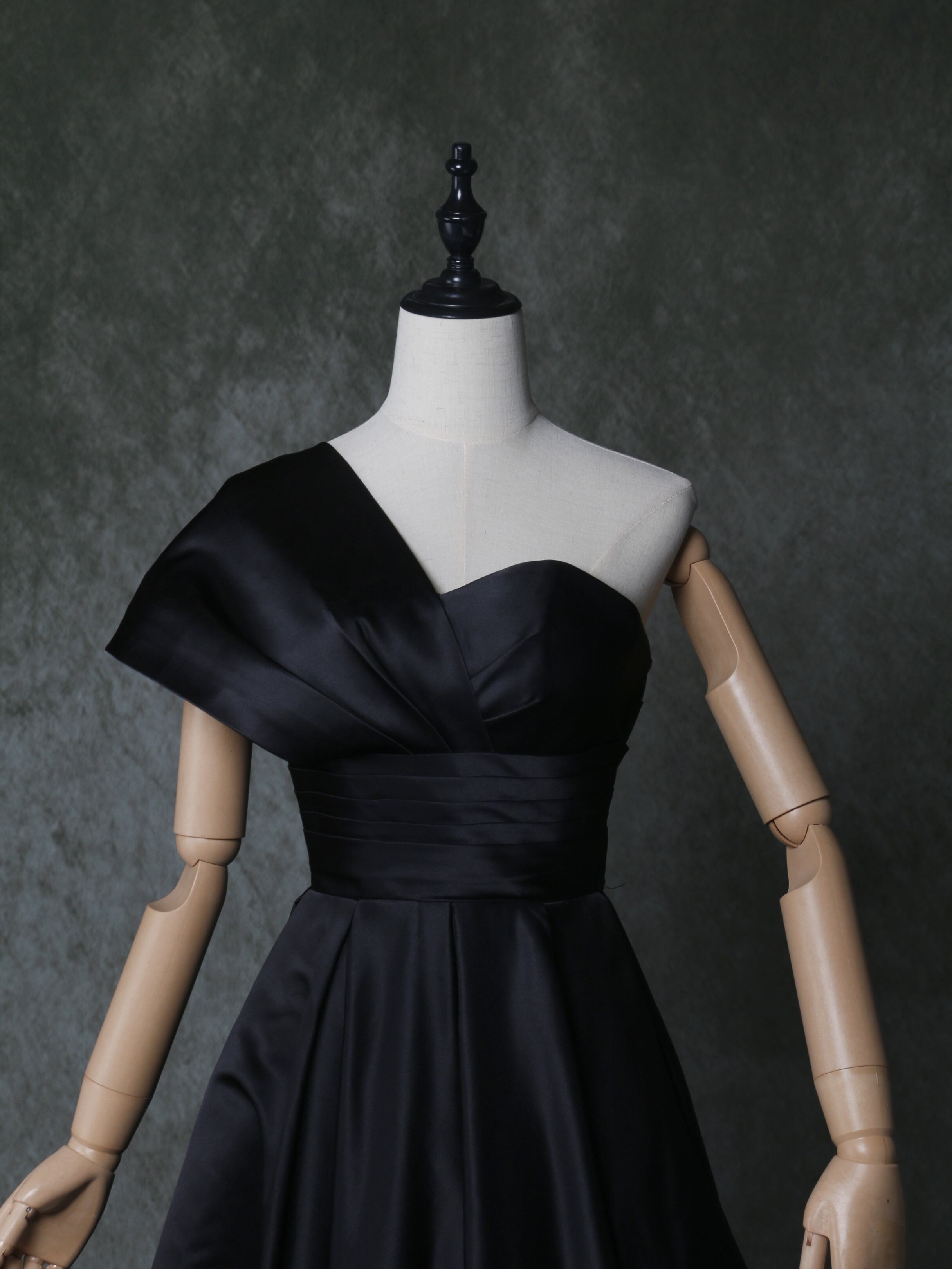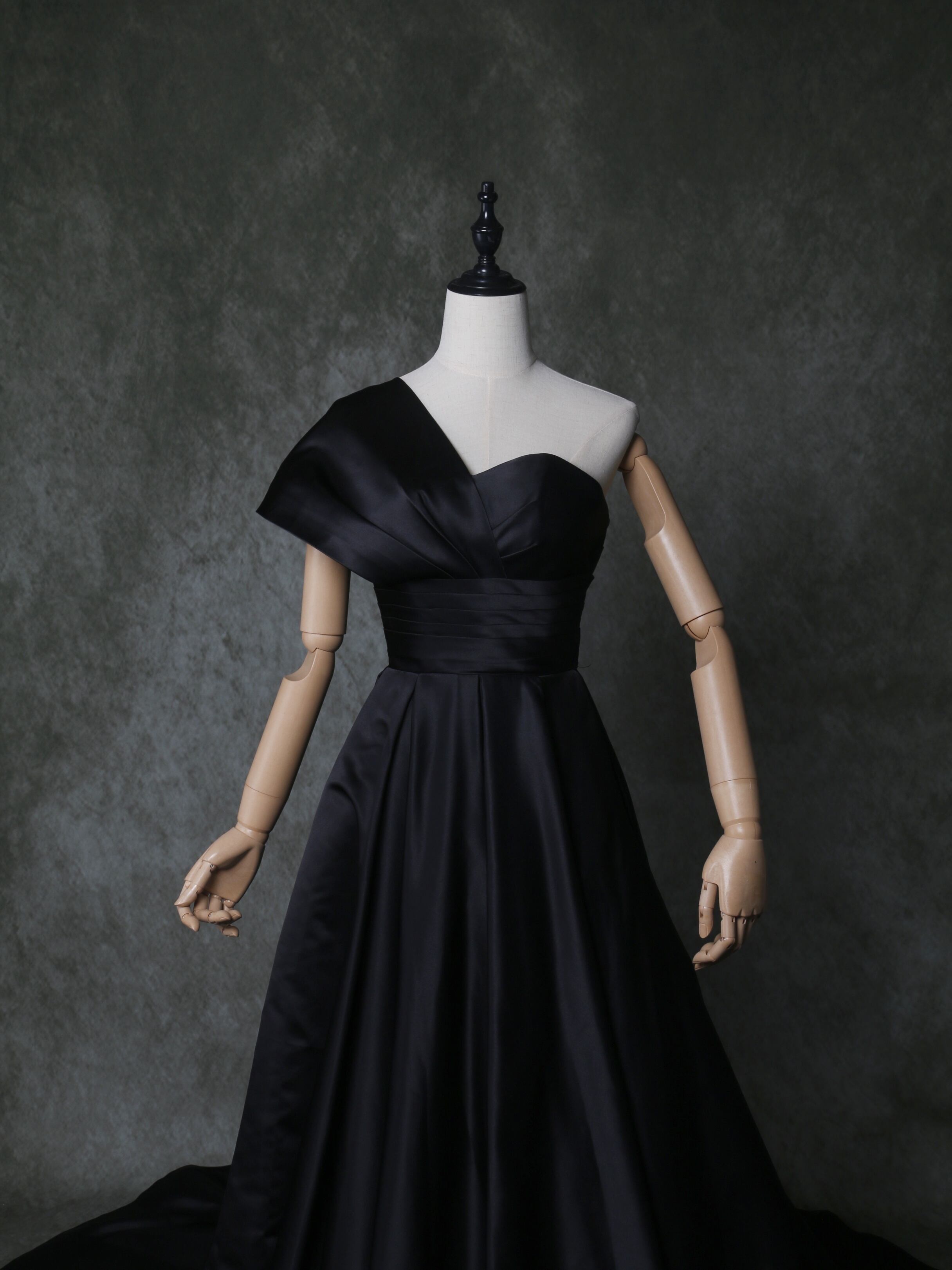 送料無料!人気上昇! ワンショルダー カラードレス 黑 2次会 花嫁 ロングトレーン オーバードレス