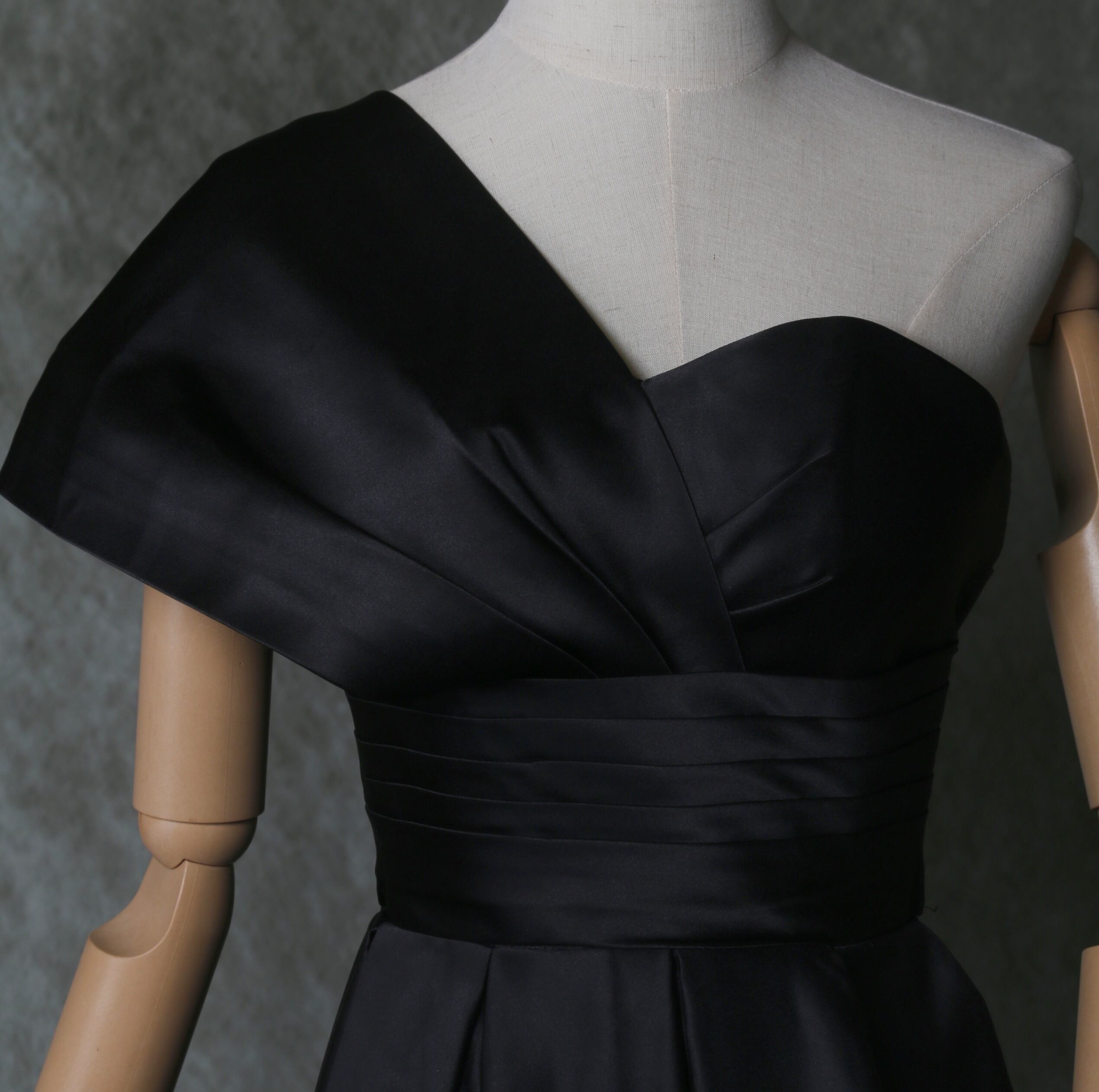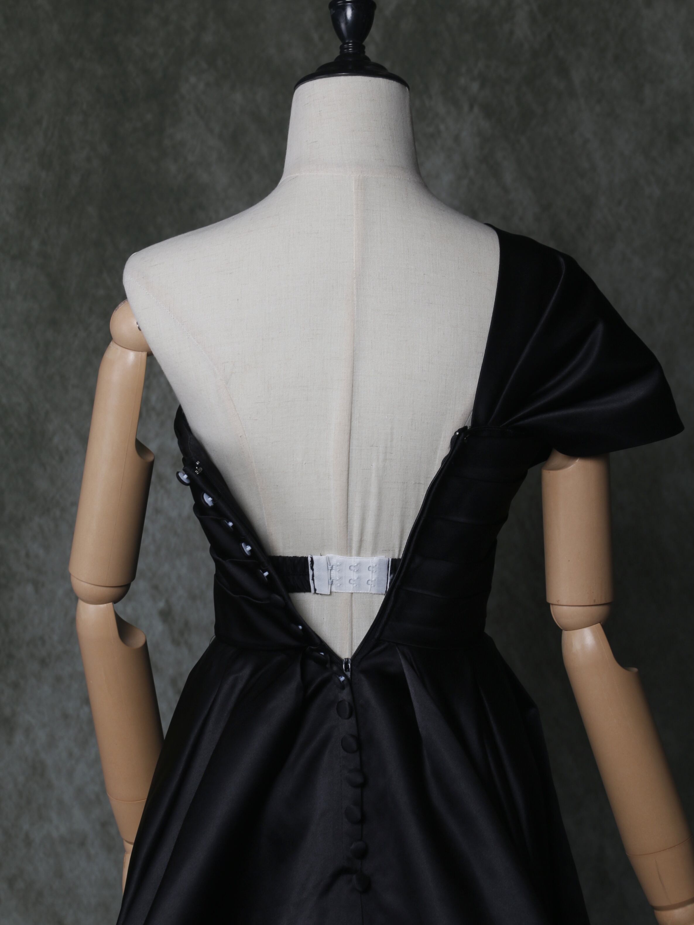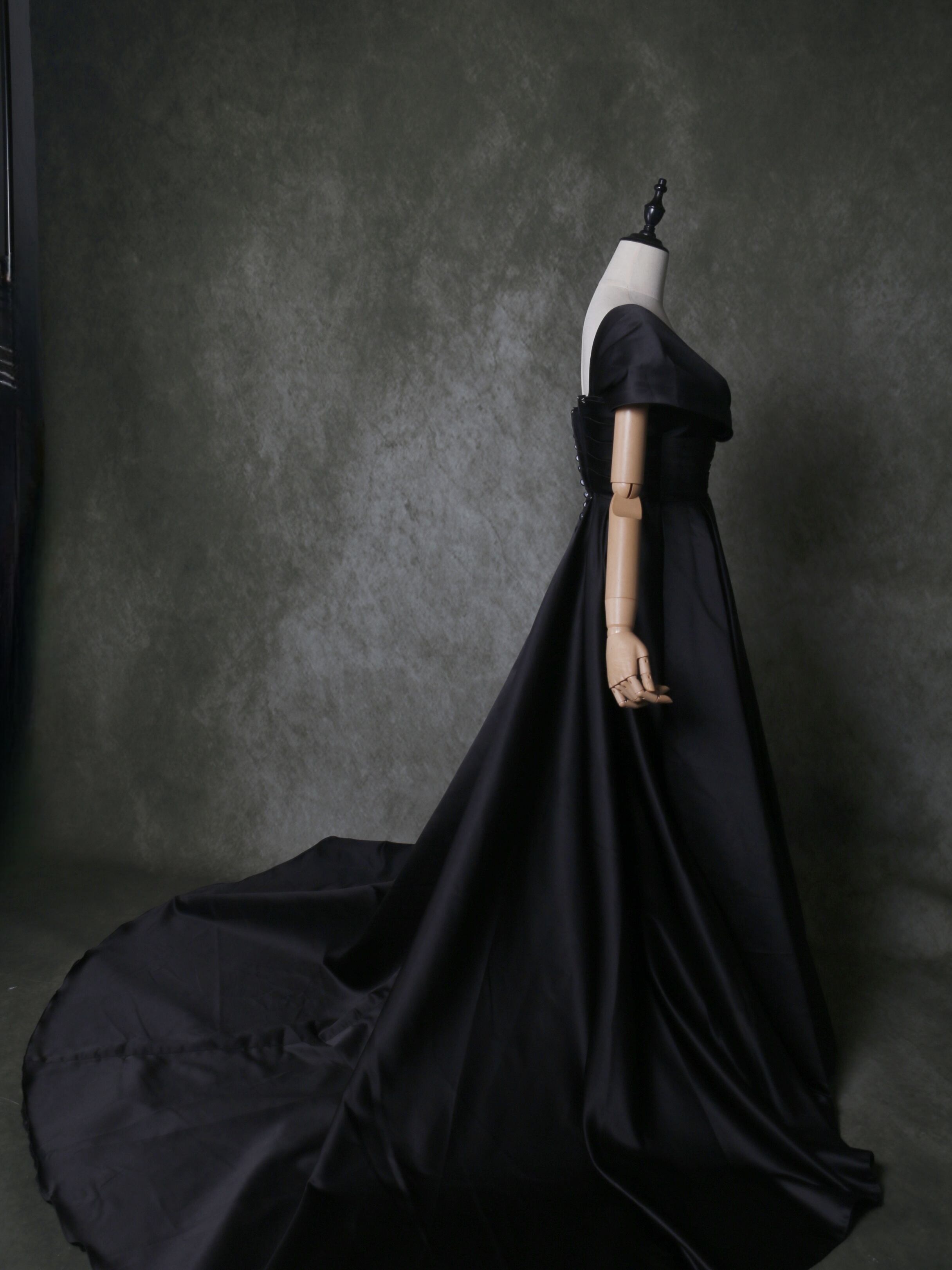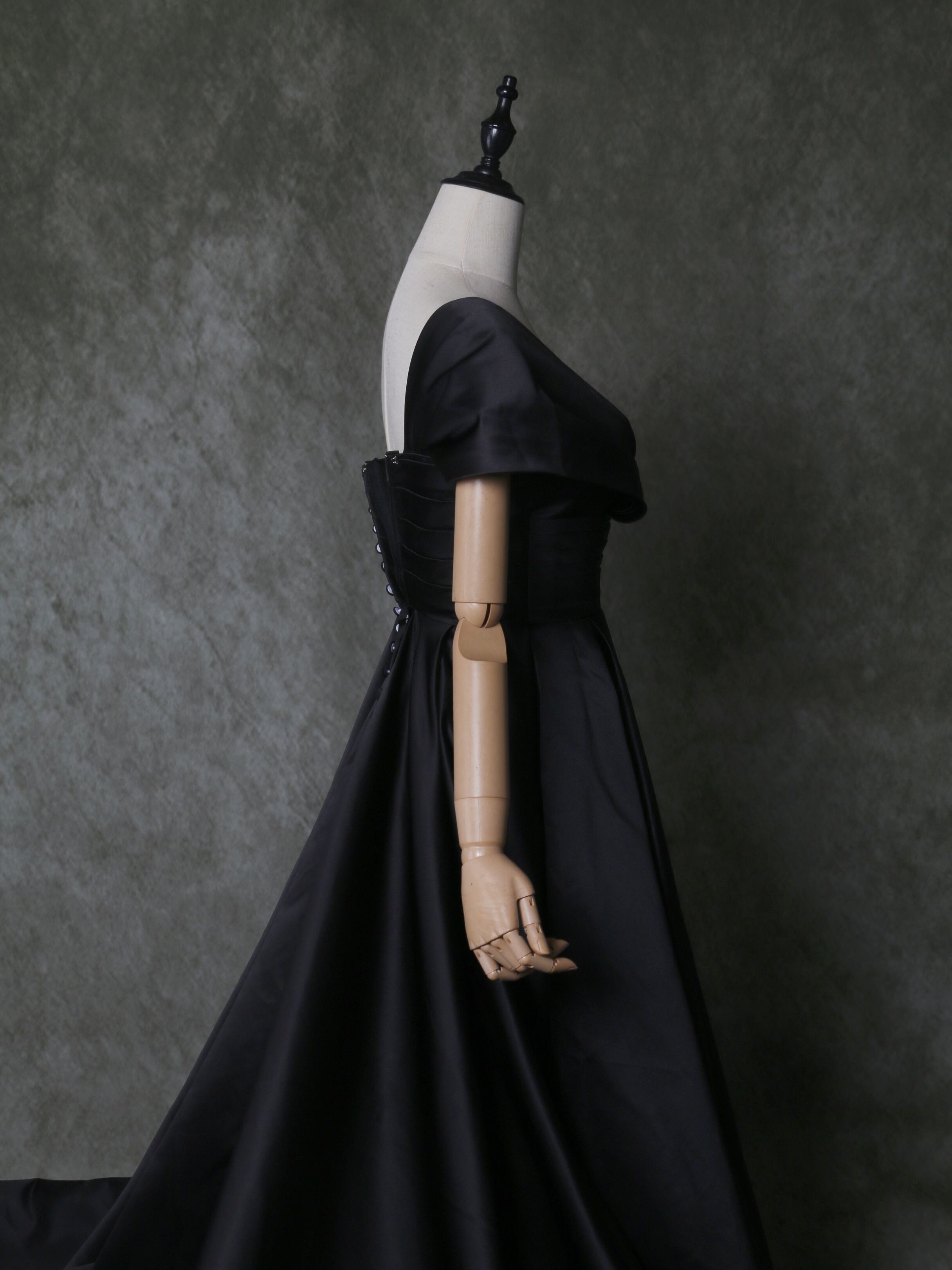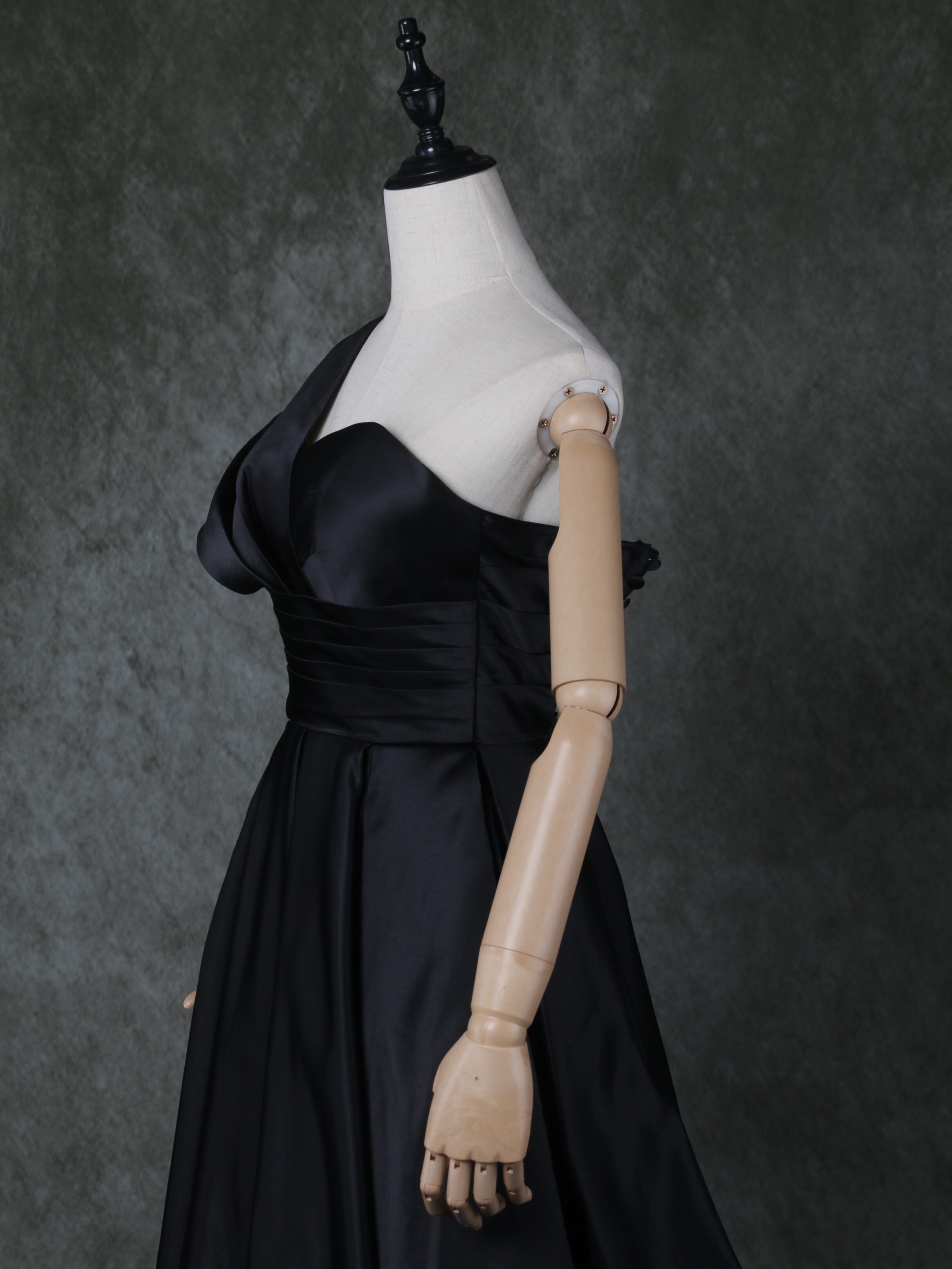送料無料!人気上昇! ワンショルダー カラードレス 黑 2次会 花嫁 ロングトレーン オーバードレス