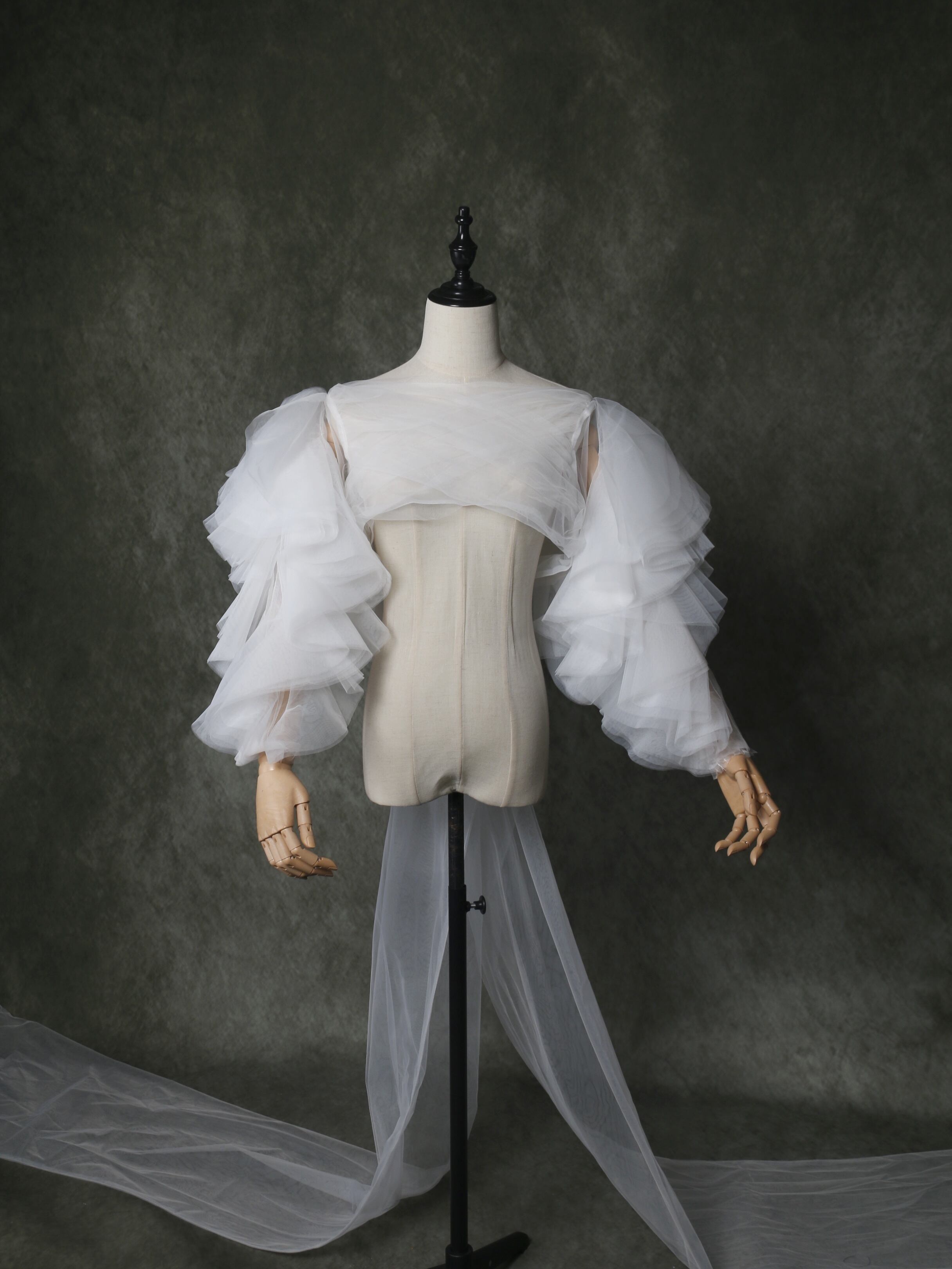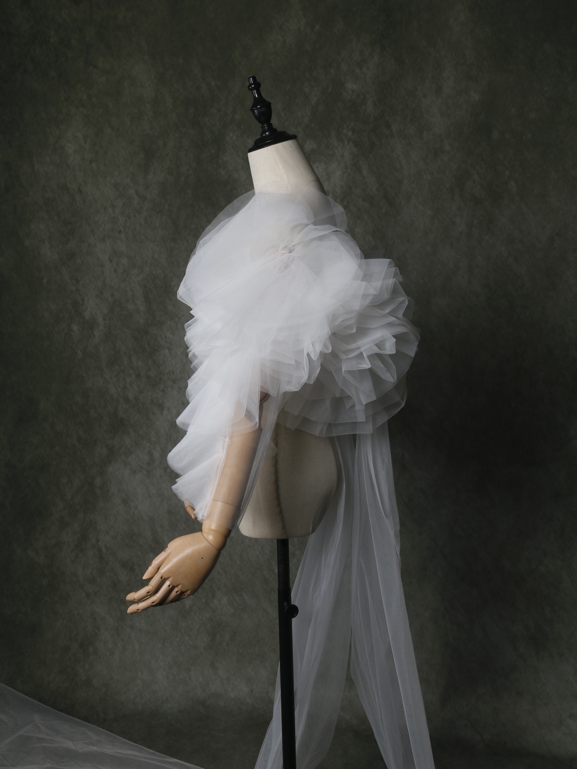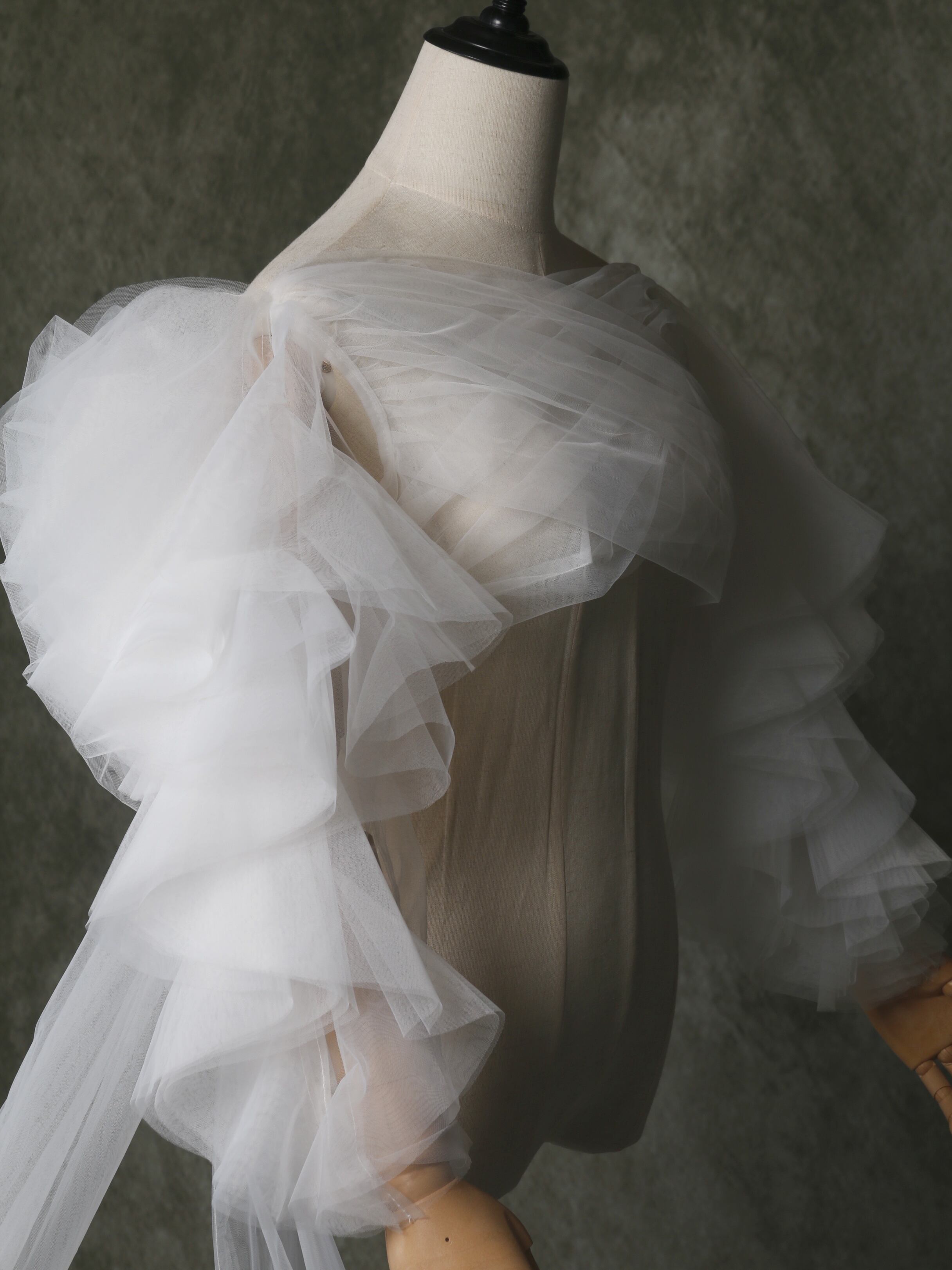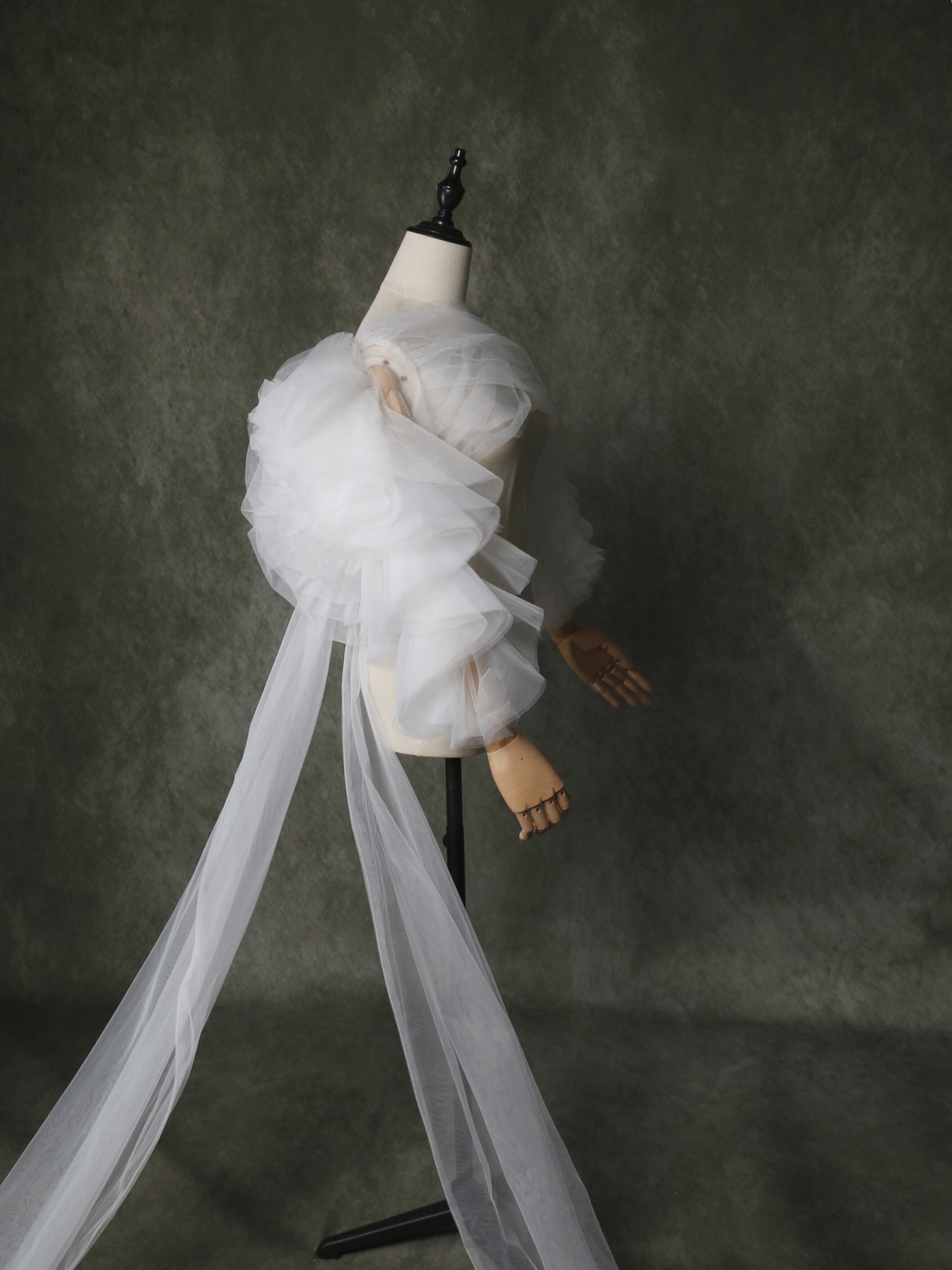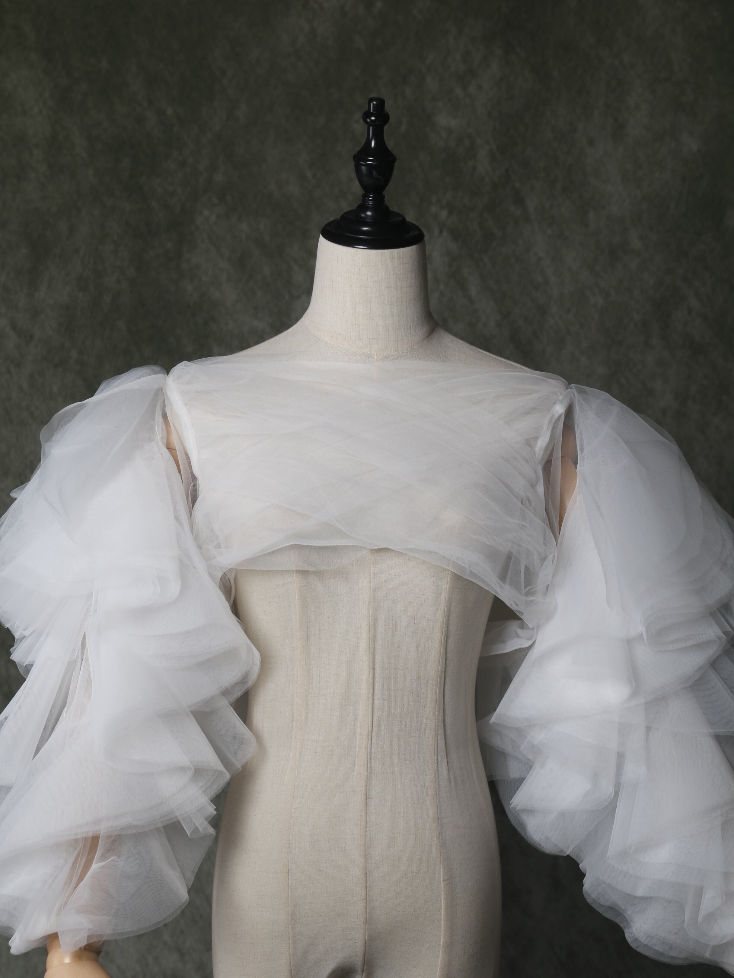 送料無料!人気上昇! フェミニンなフレームチュールトップス ベール風ボレロ バックリボン