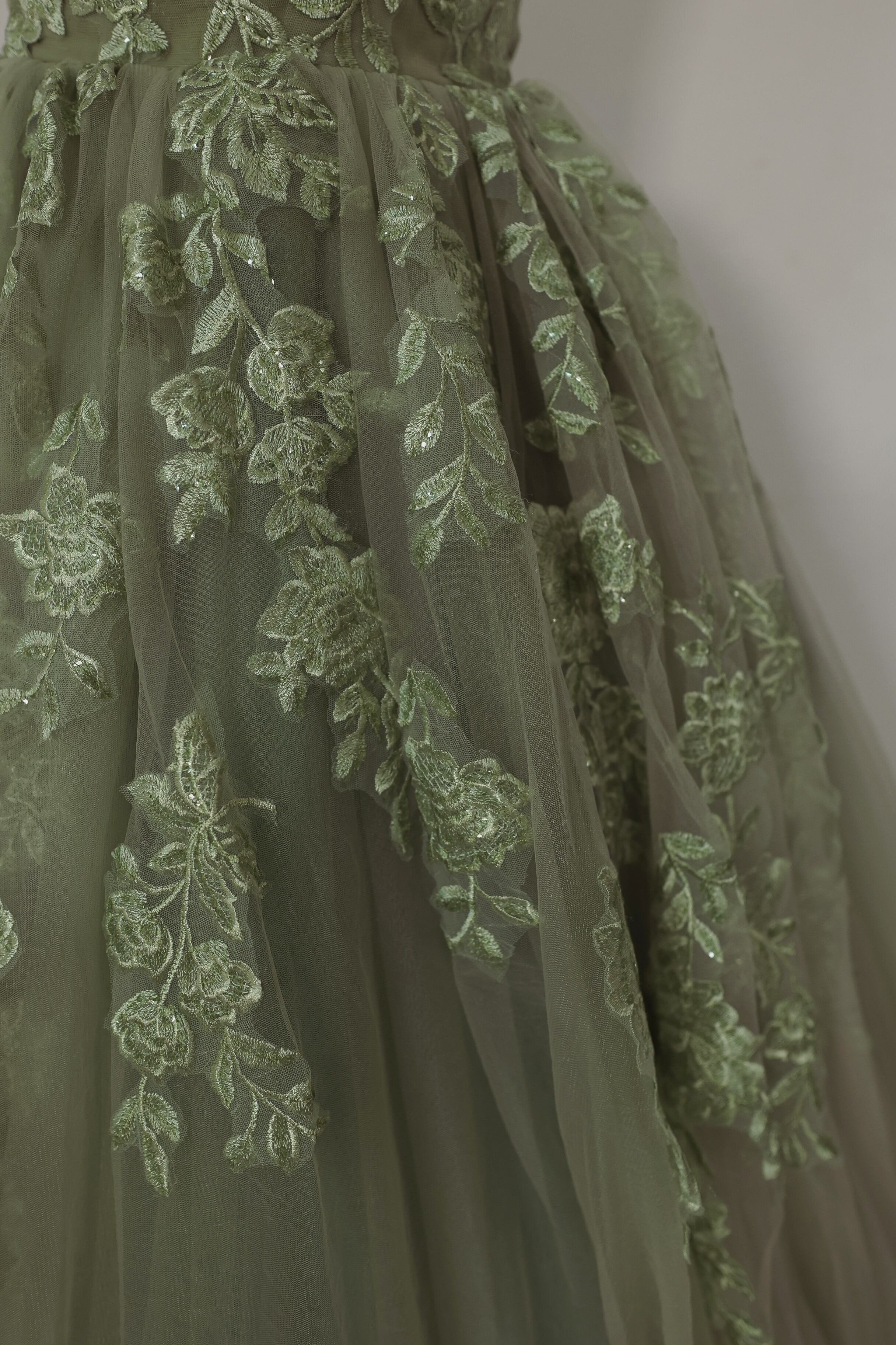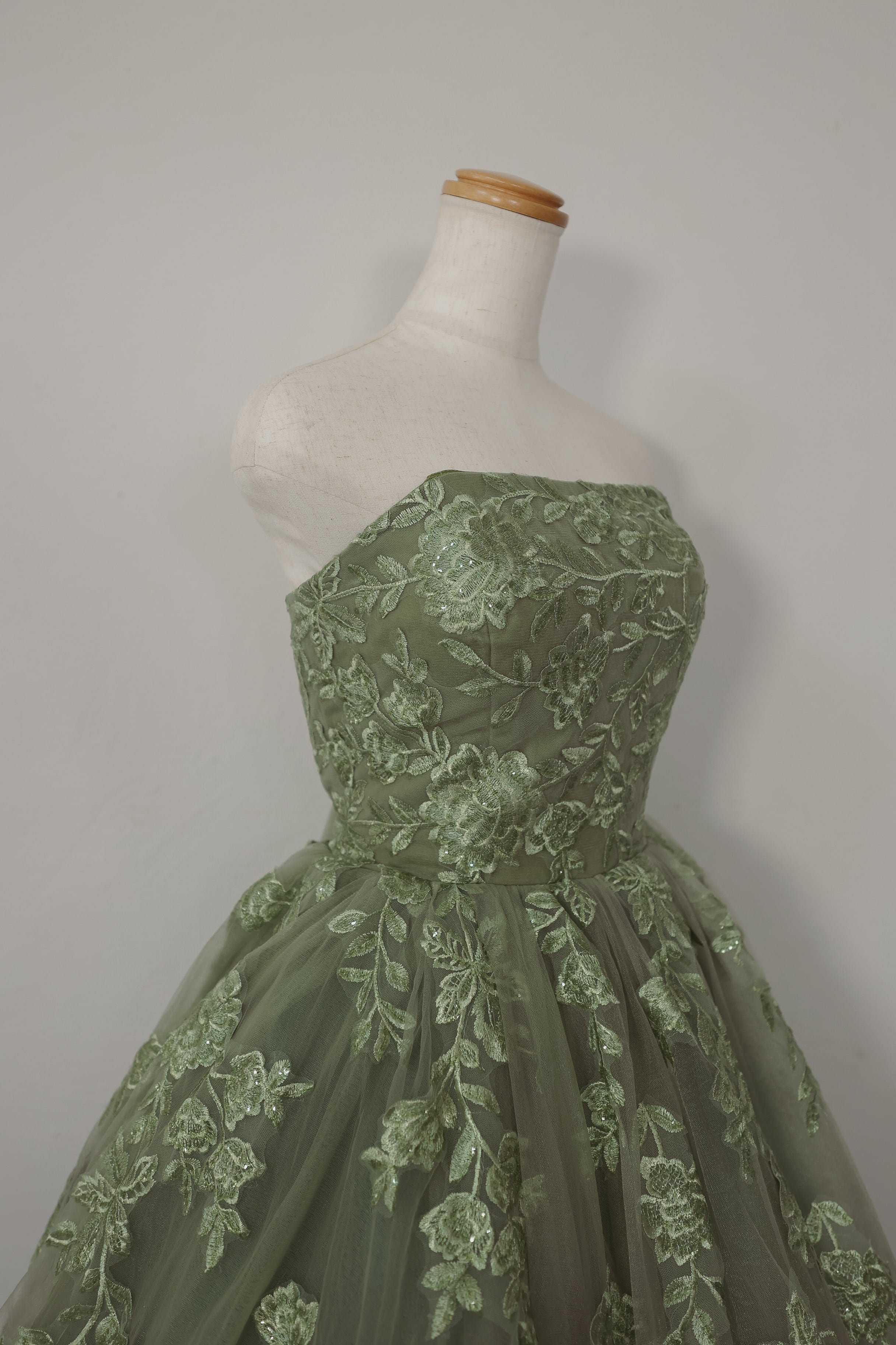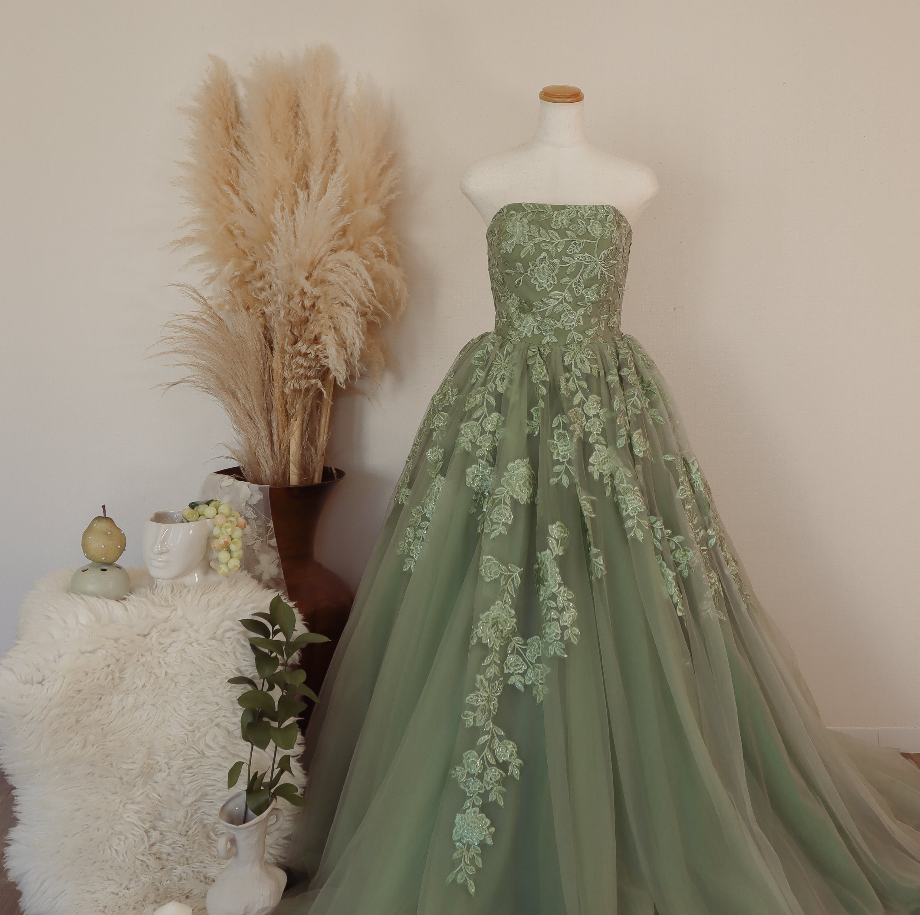 送料無料!高品質!花柄のモチーフ刺繍が美し カラードレス 華やかなトレーン /結婚式/披露宴