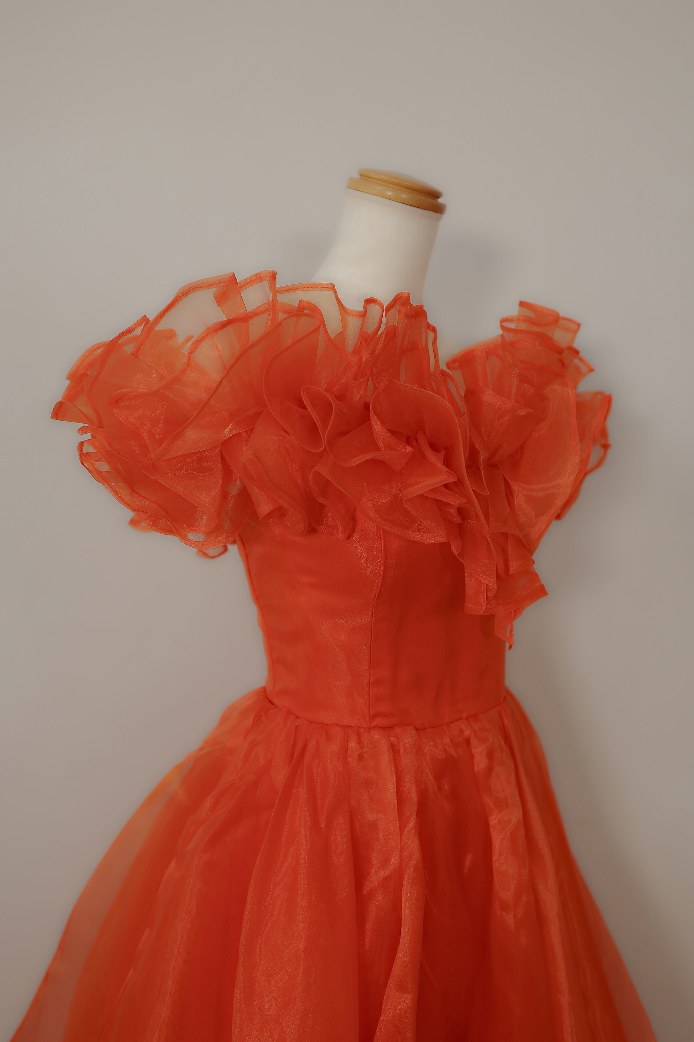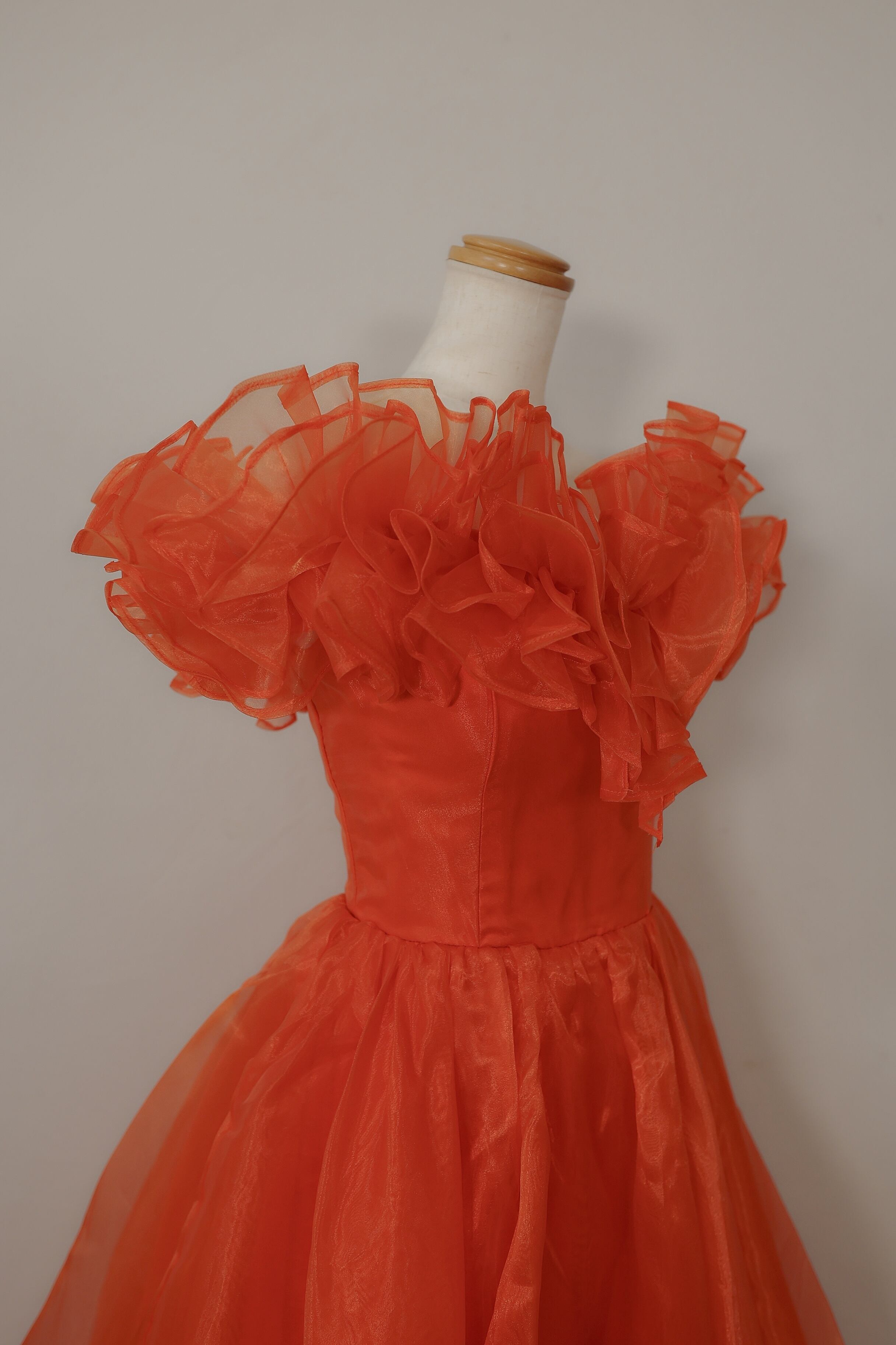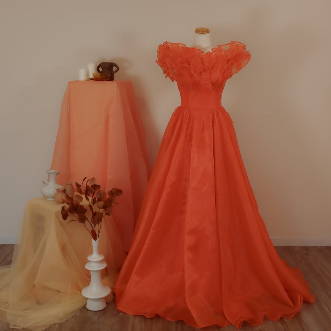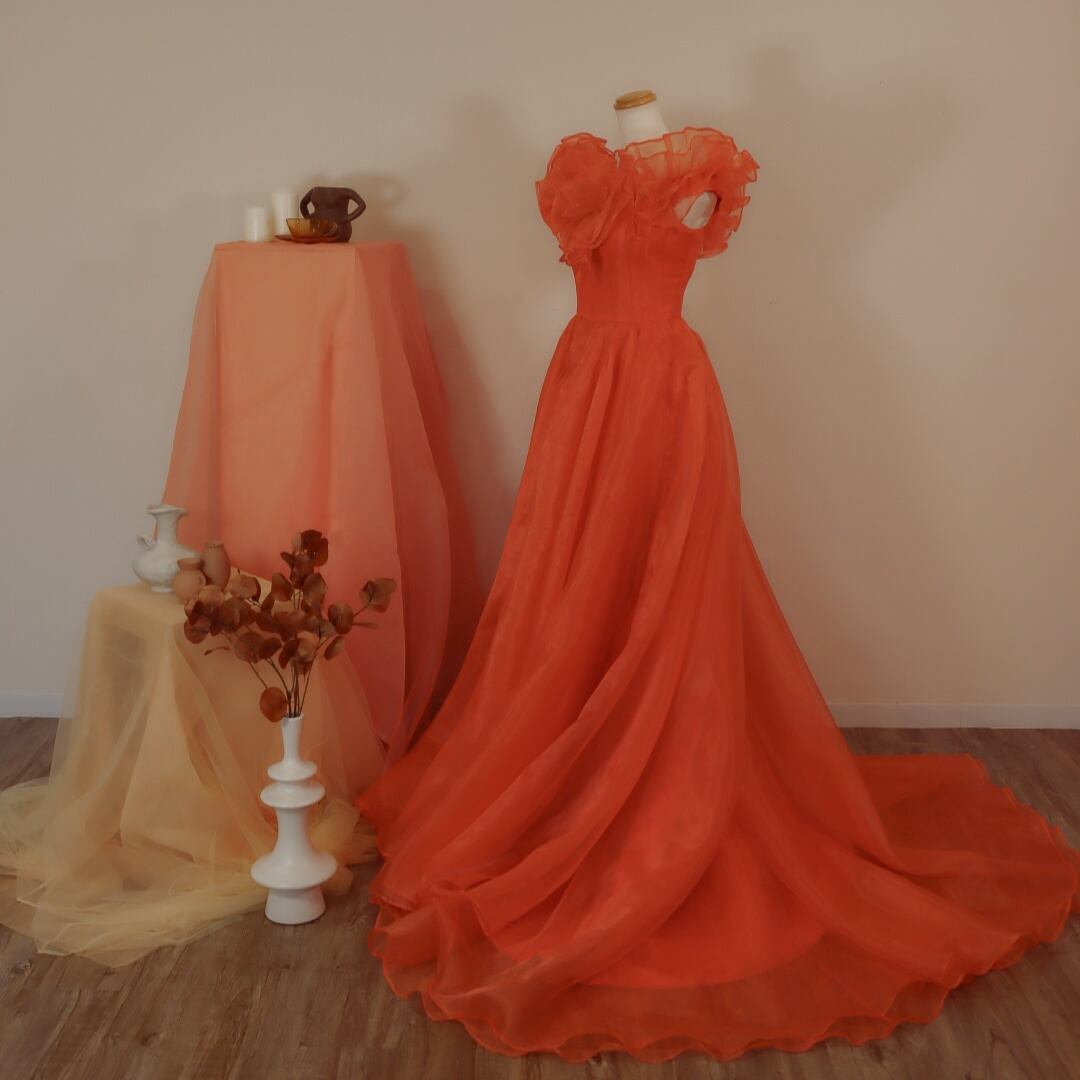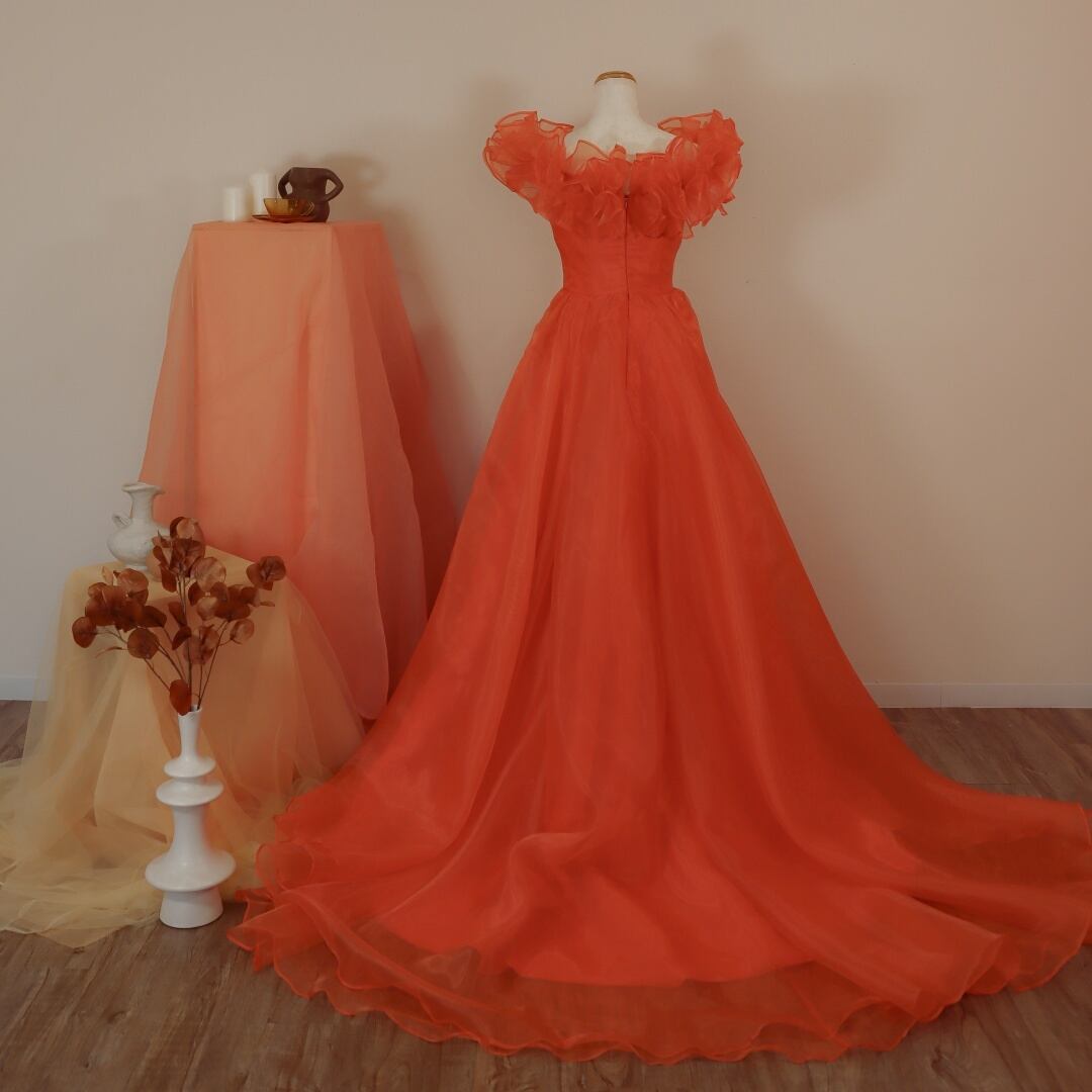 送料無料!オレンジ, オフショルダー カラードレスロングトレーン /結婚式/披露宴