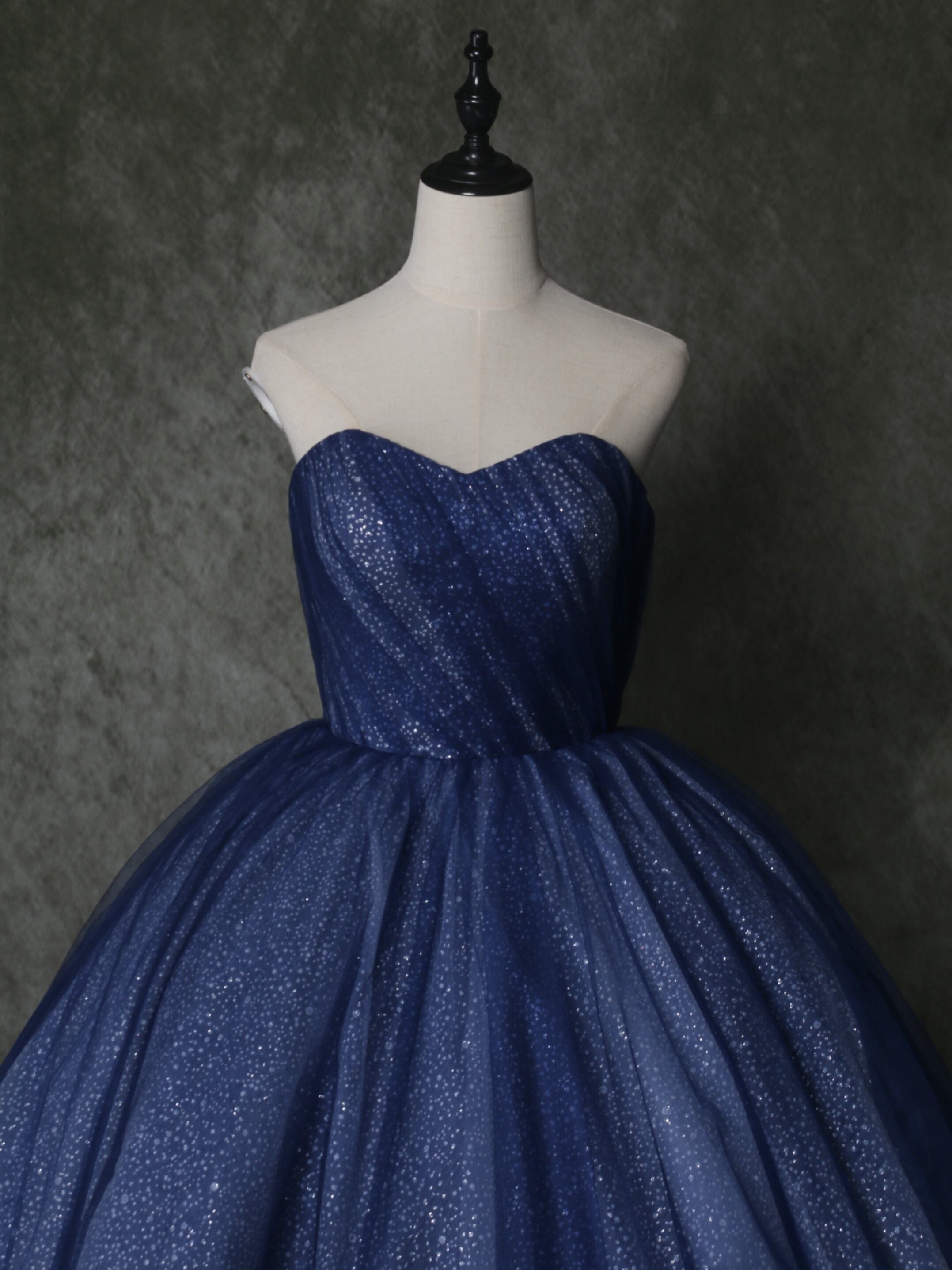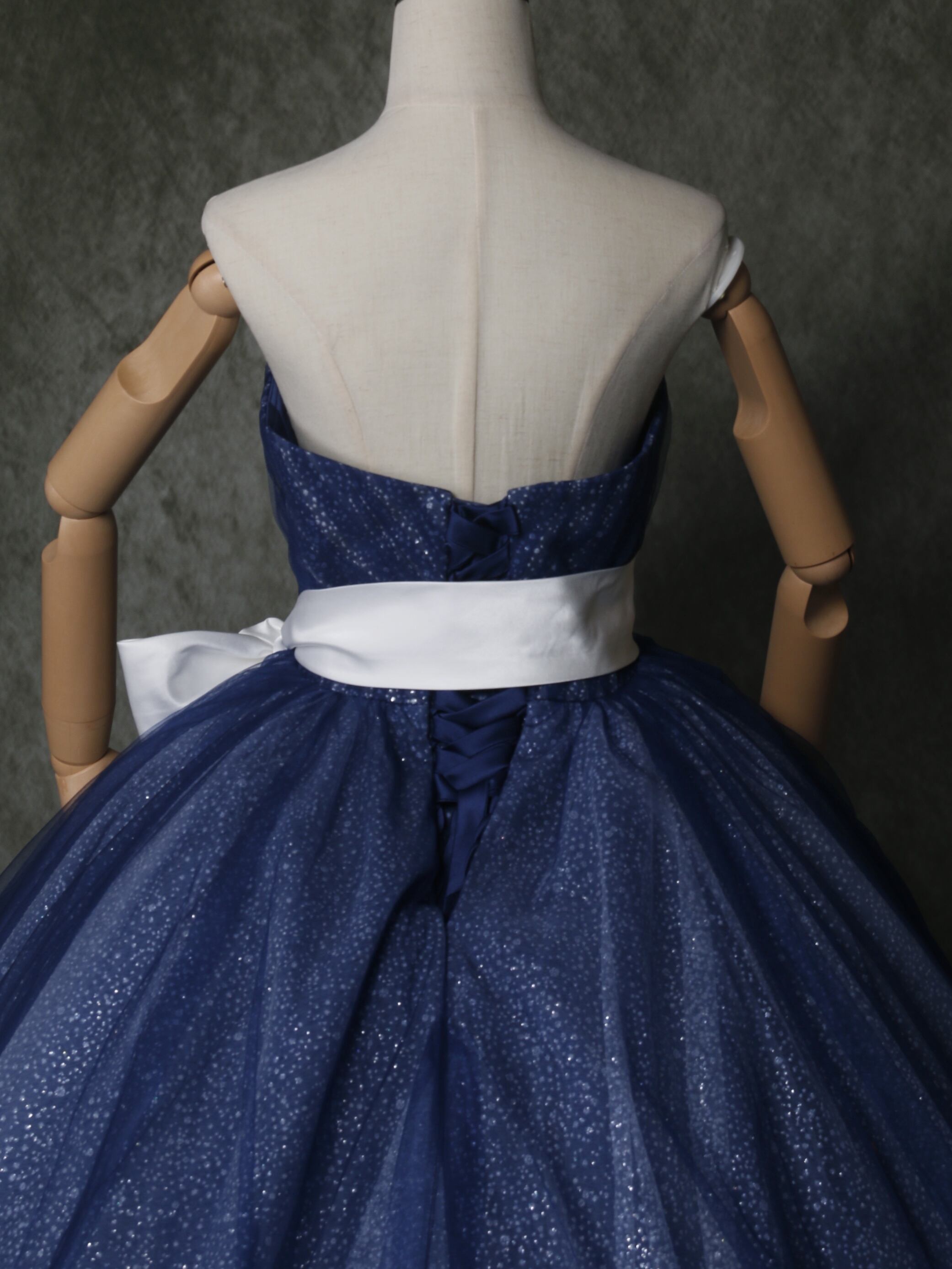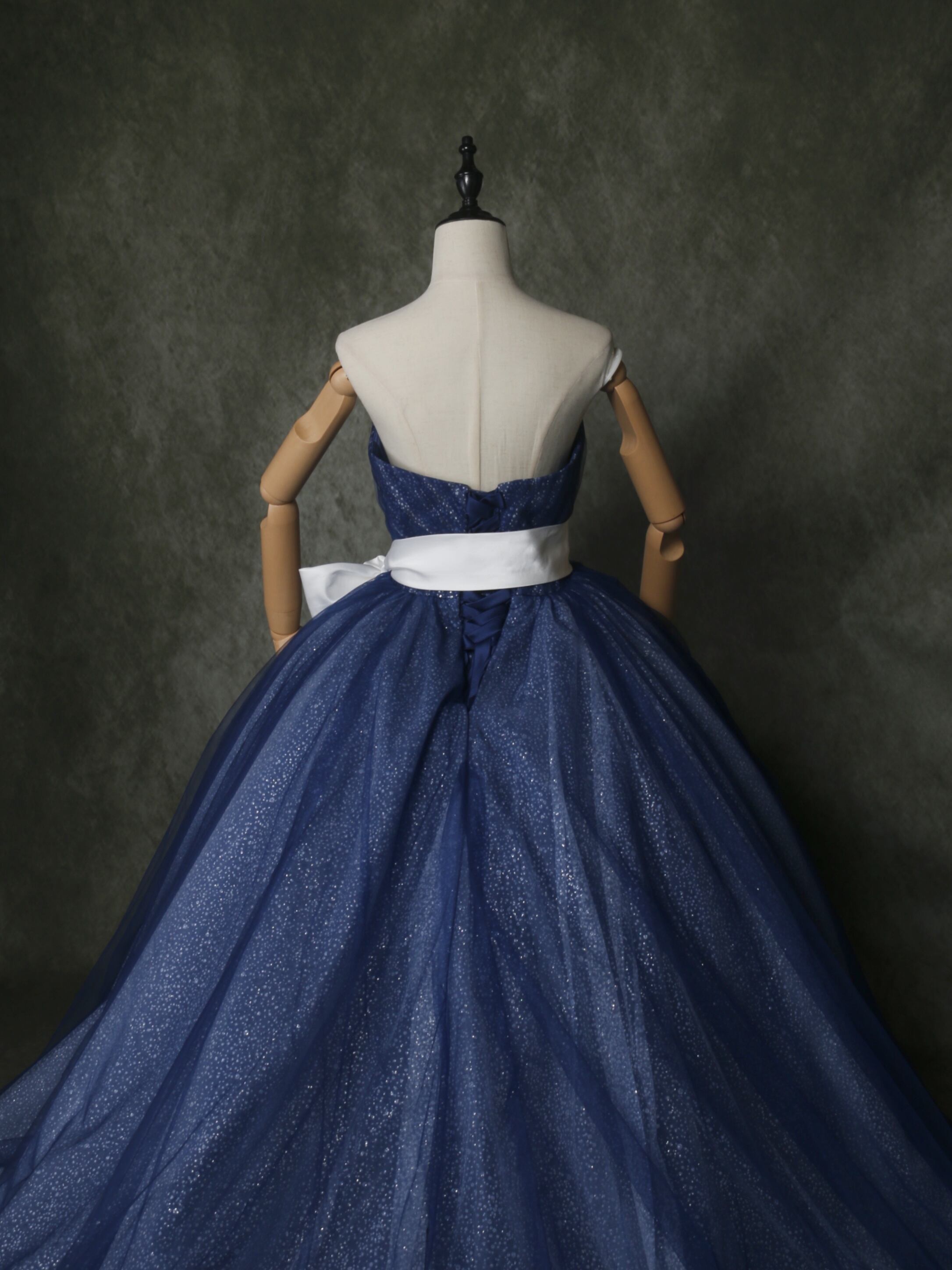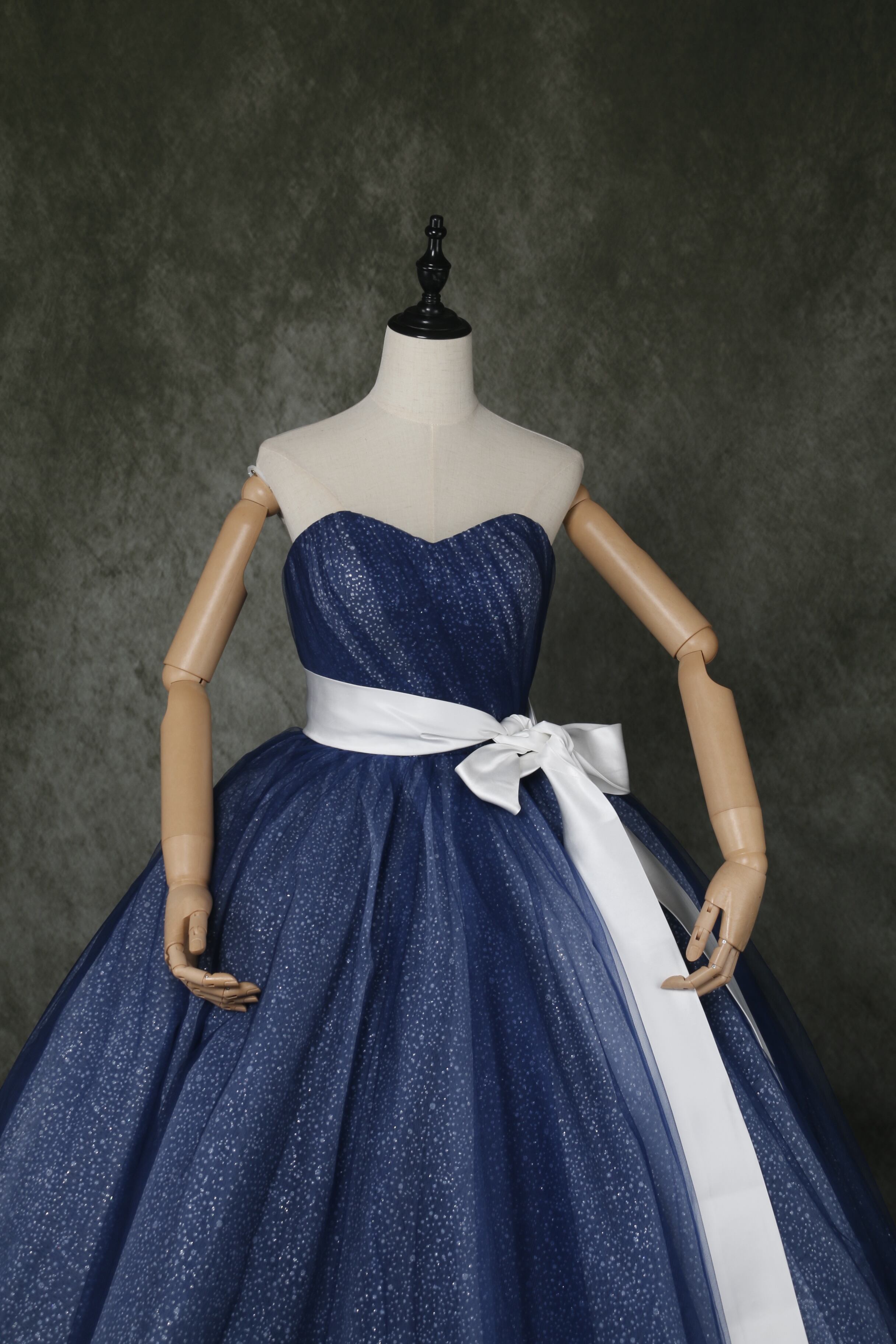 人気上昇!ネイビー カラードレス ソフトチュール ロングトレーン 結婚式/披露宴 二次会
