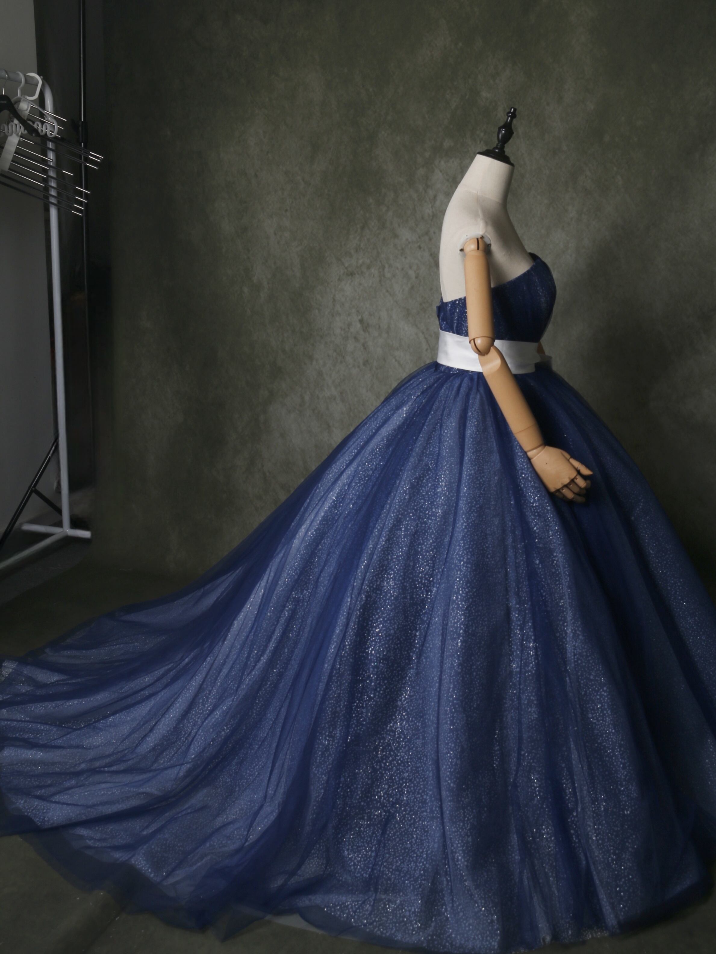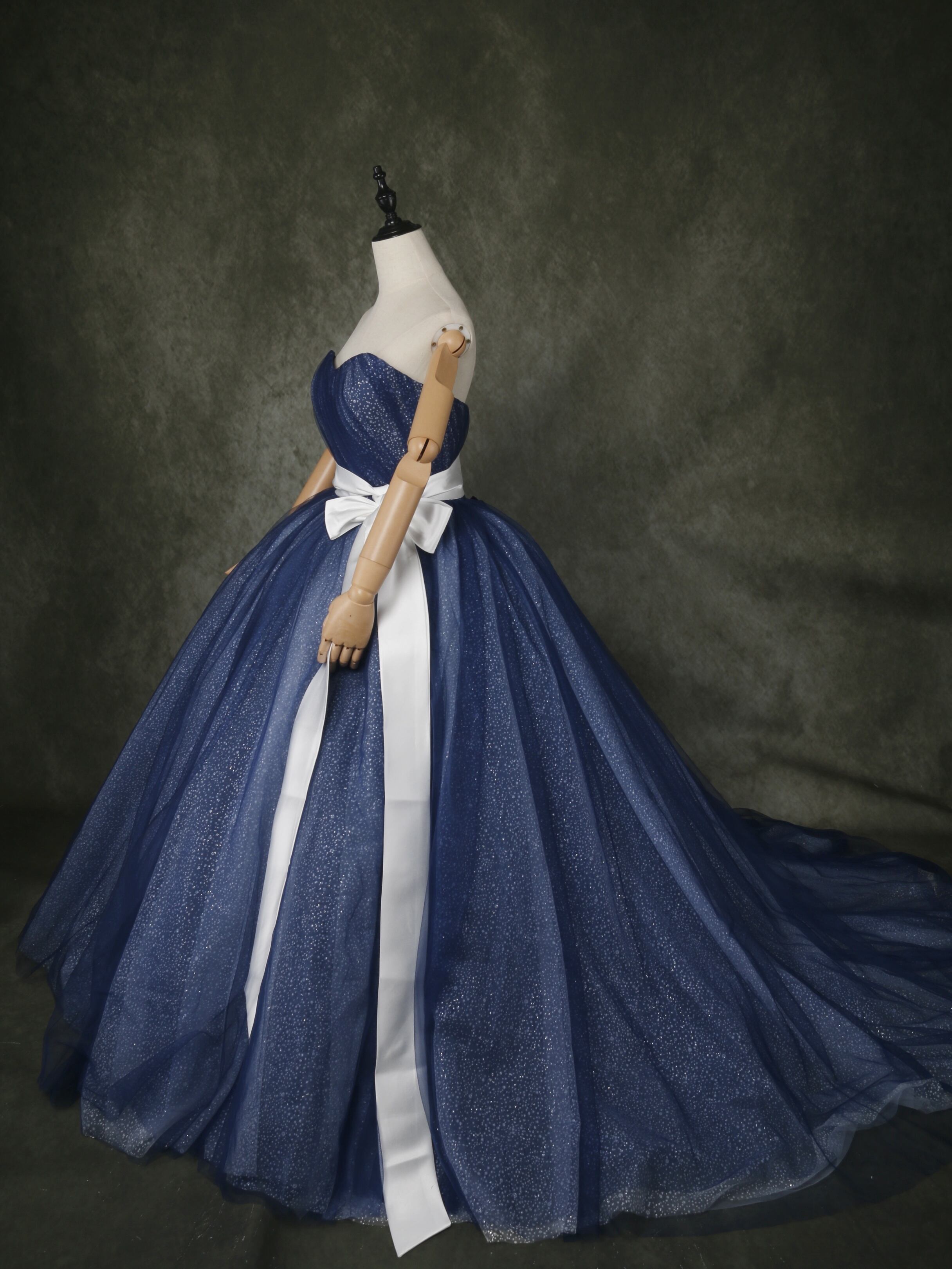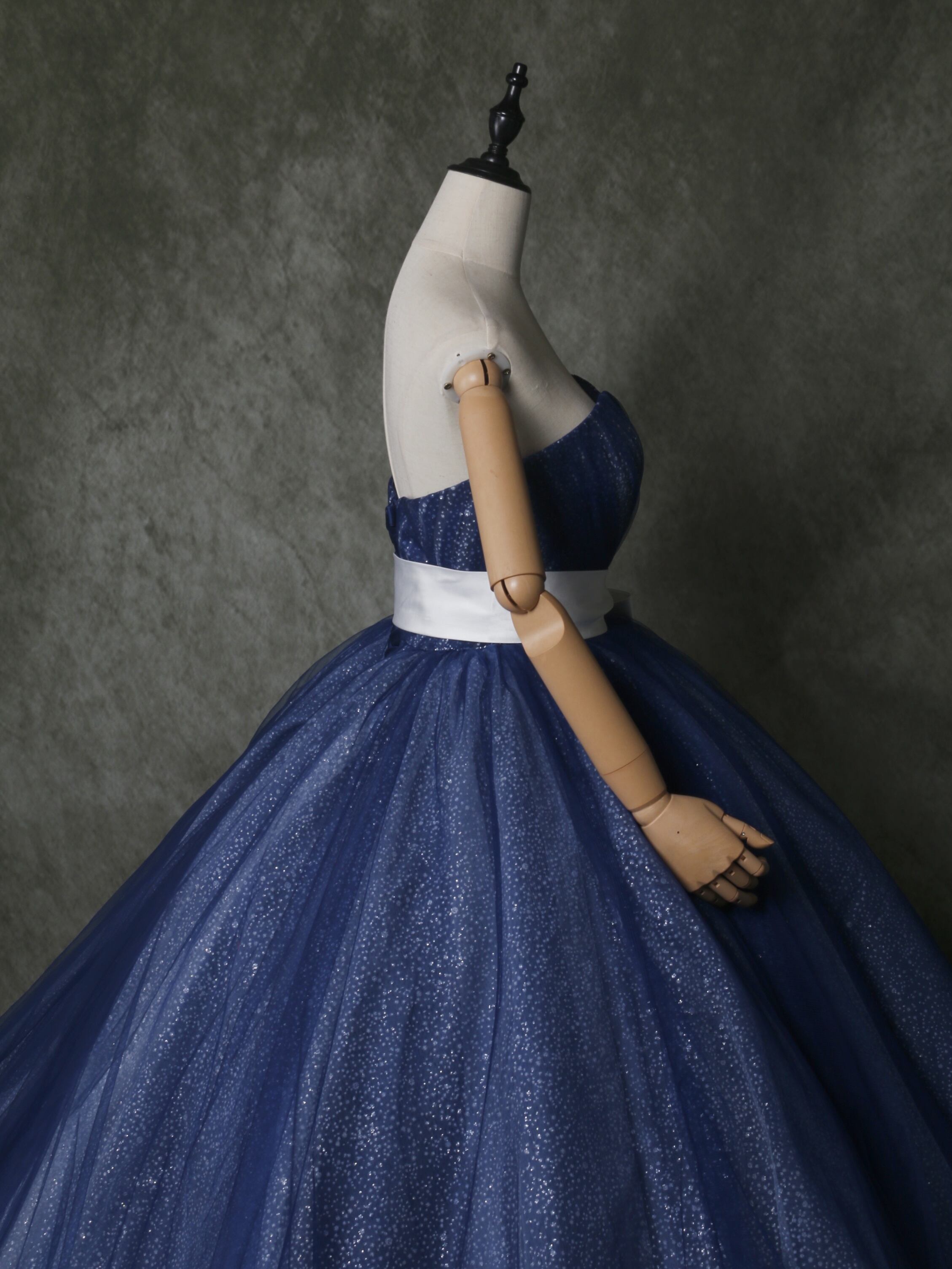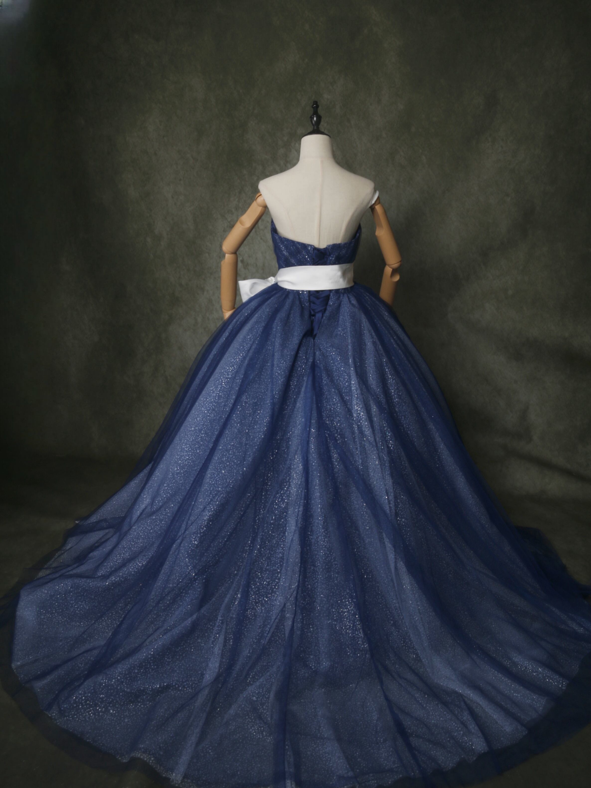 人気上昇!ネイビー カラードレス ソフトチュール ロングトレーン 結婚式/披露宴 二次会