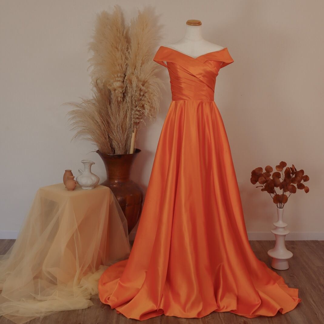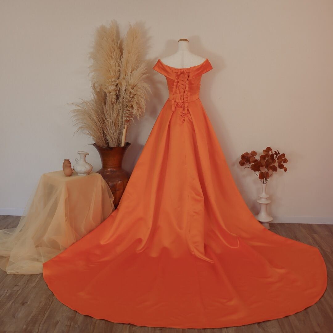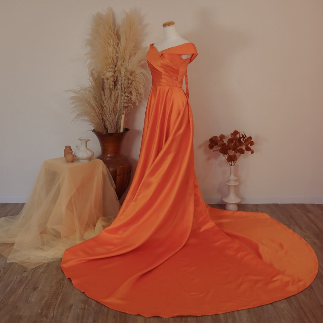 送料無料!雅やか オレンジ カラードレスロングトレーン /結婚式/披露宴