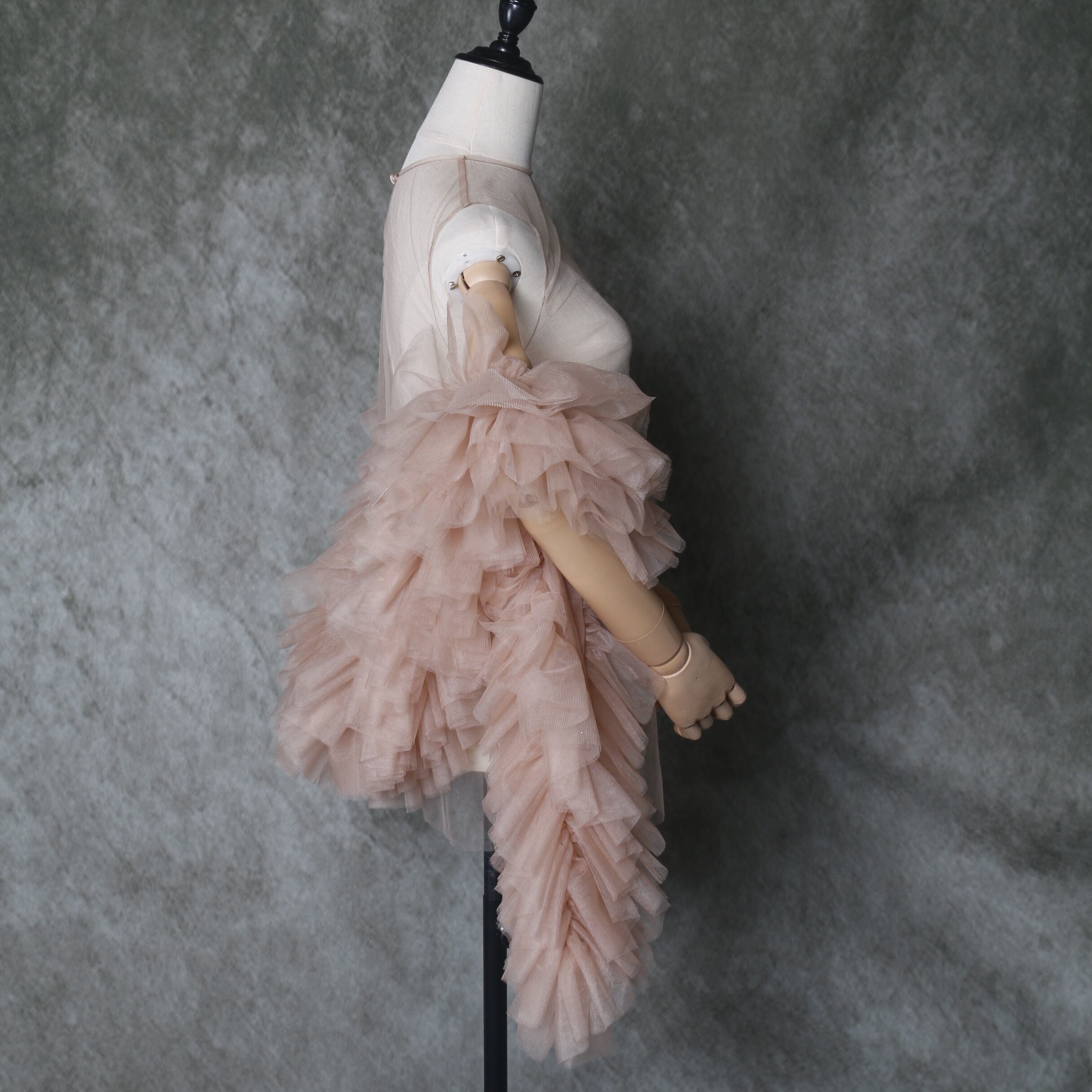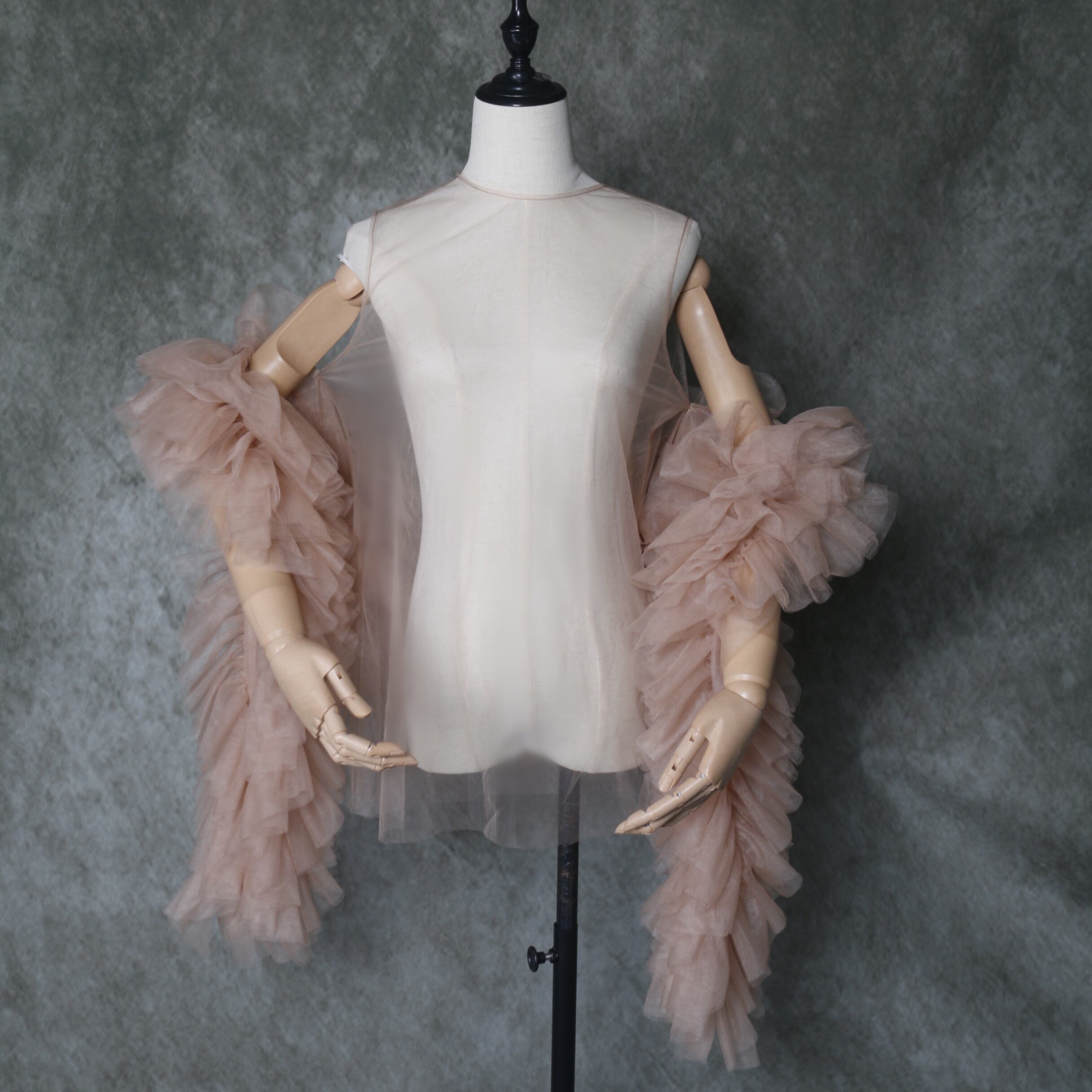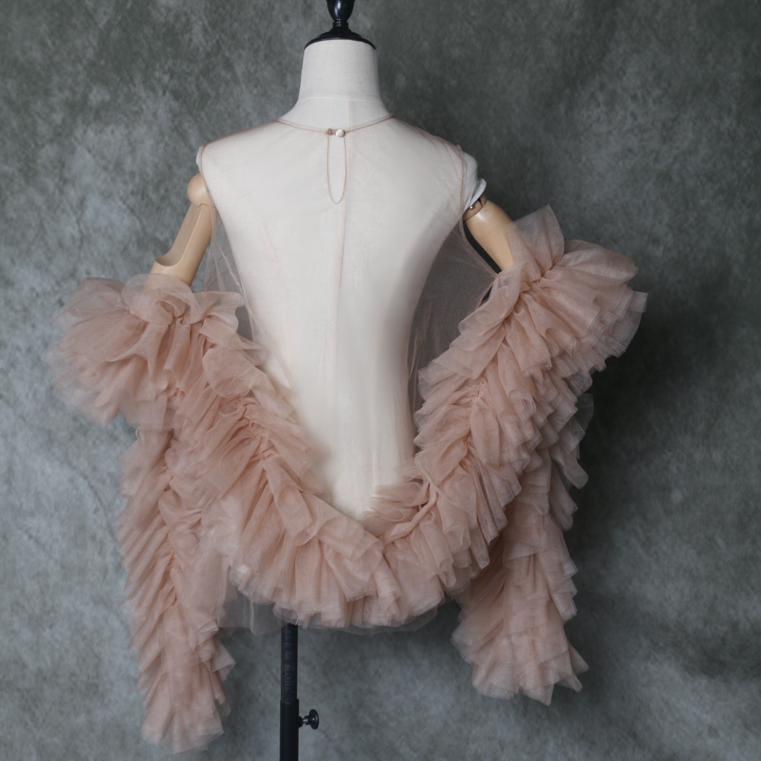 送料無料!美品!フェミニンなフレームレースの袖トップス + ソフトチュール ポンチョ/演奏会/音楽会