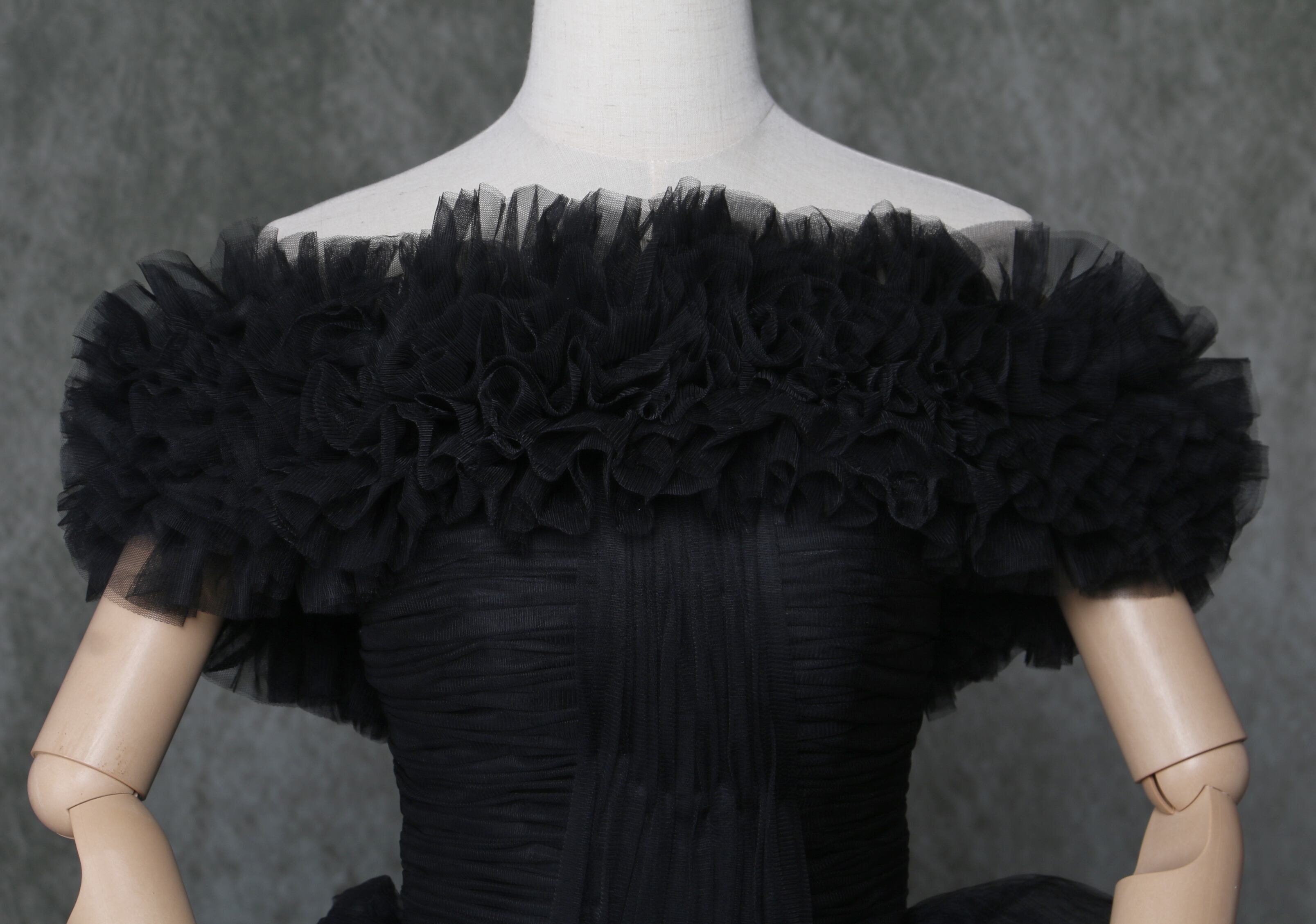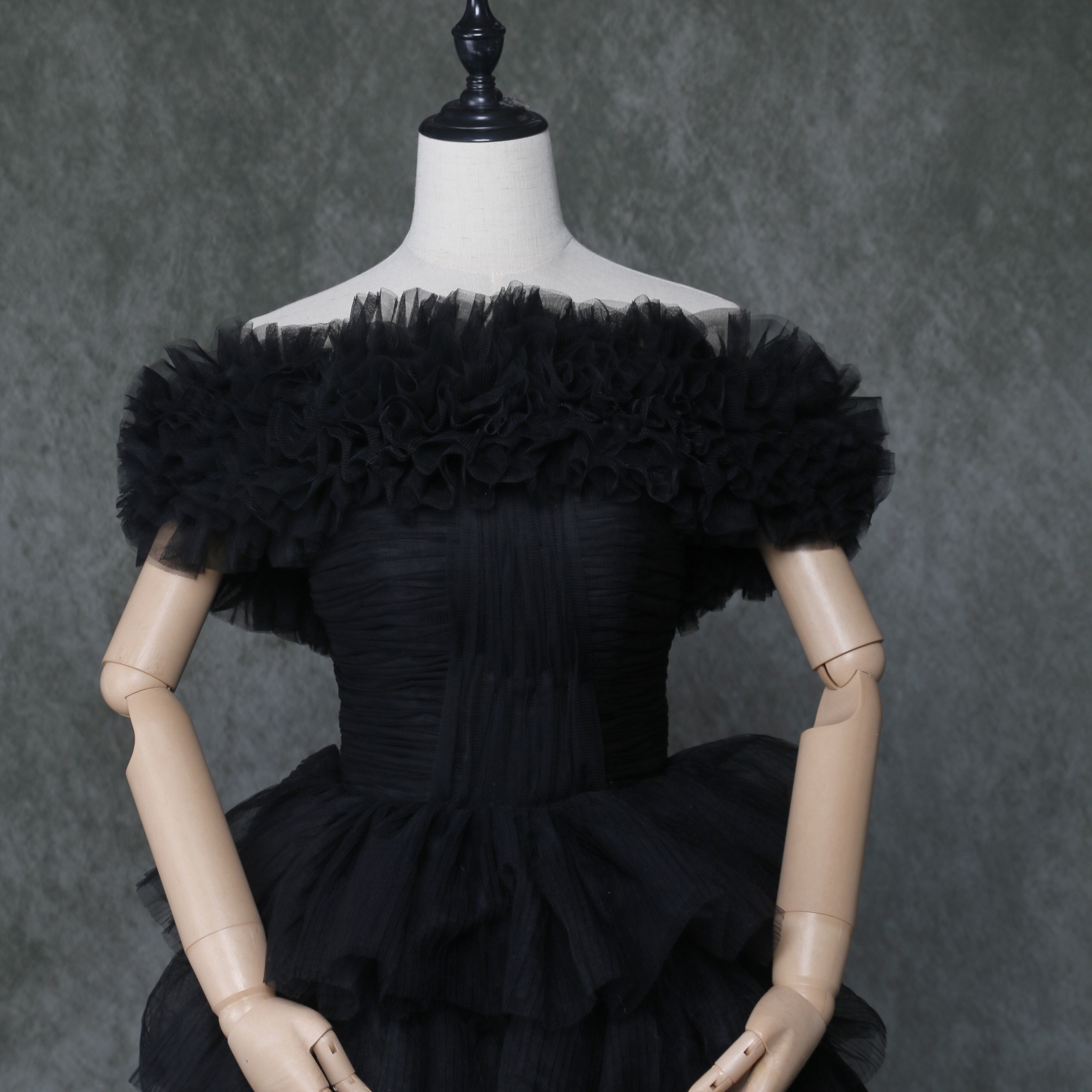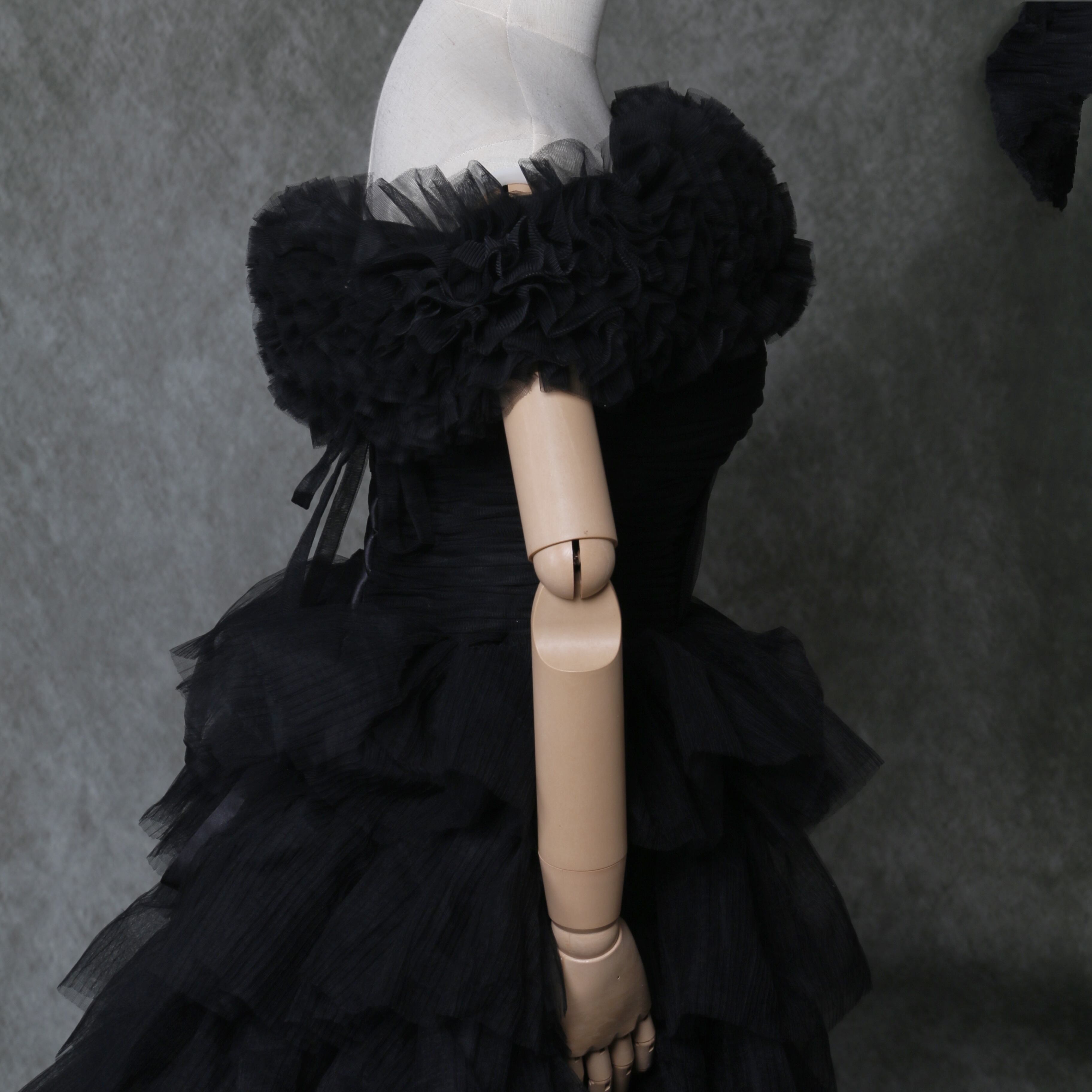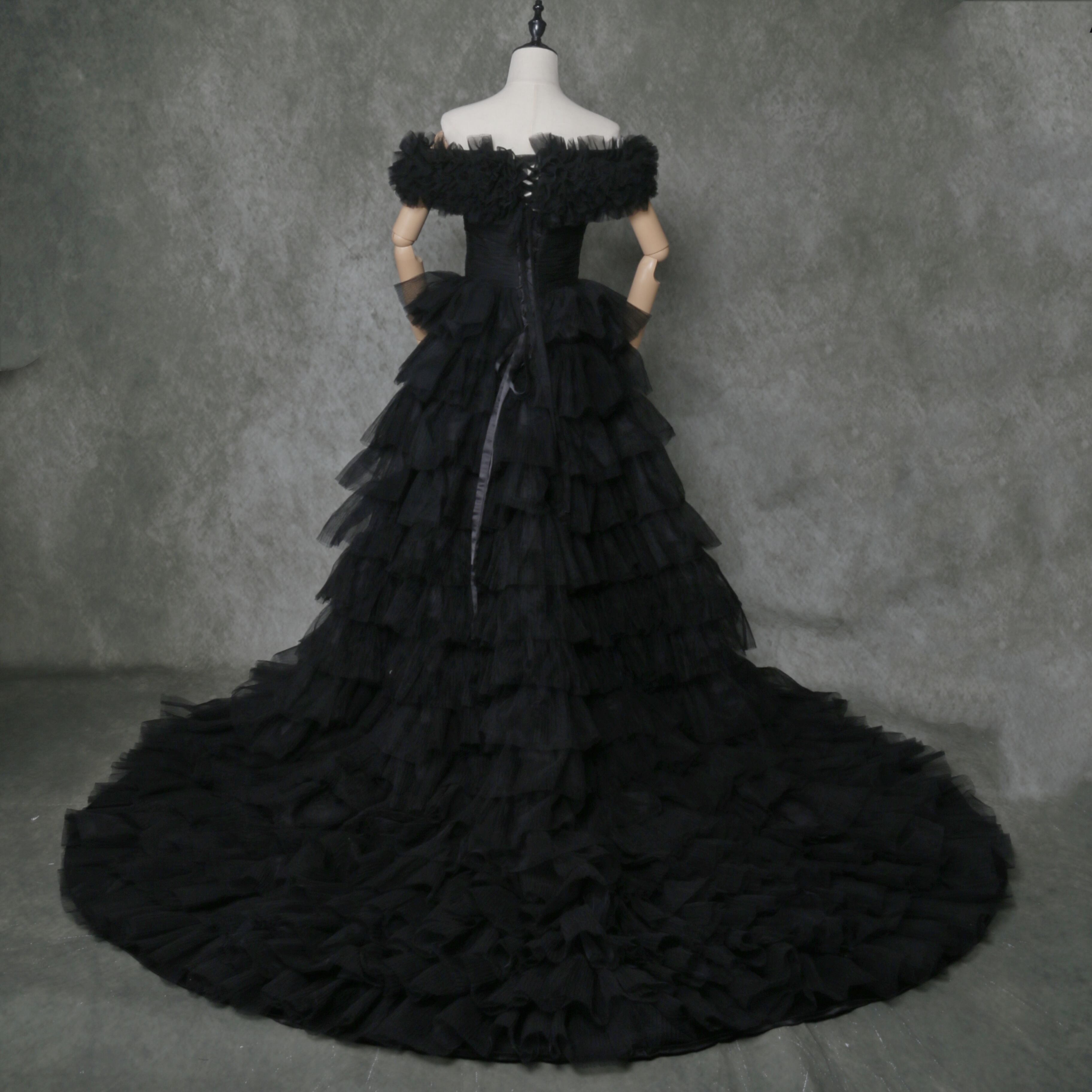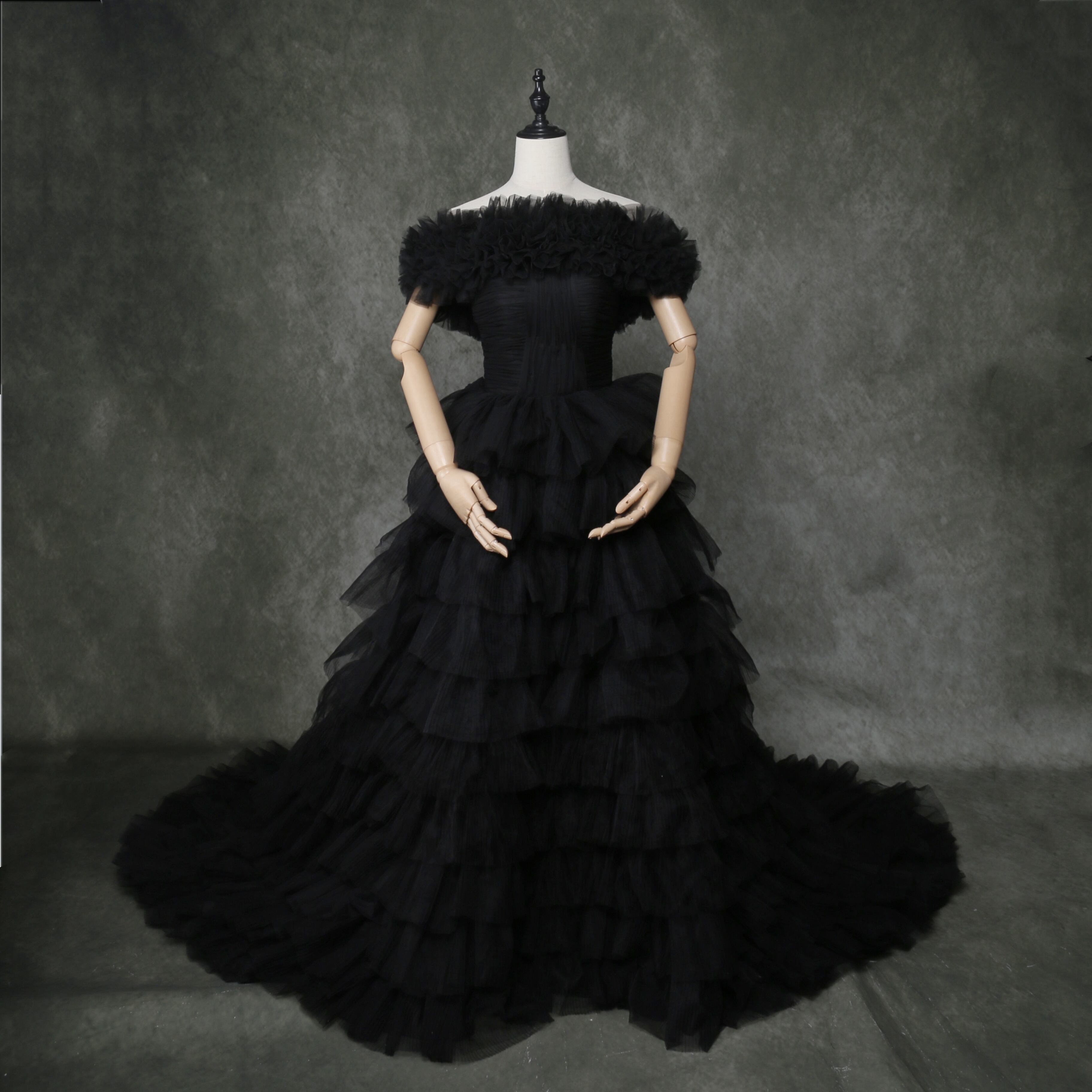 送料無料!雅やか 黒 オフショルダー カラードレスロングトレーン プリーツドレス /結婚式/披露宴