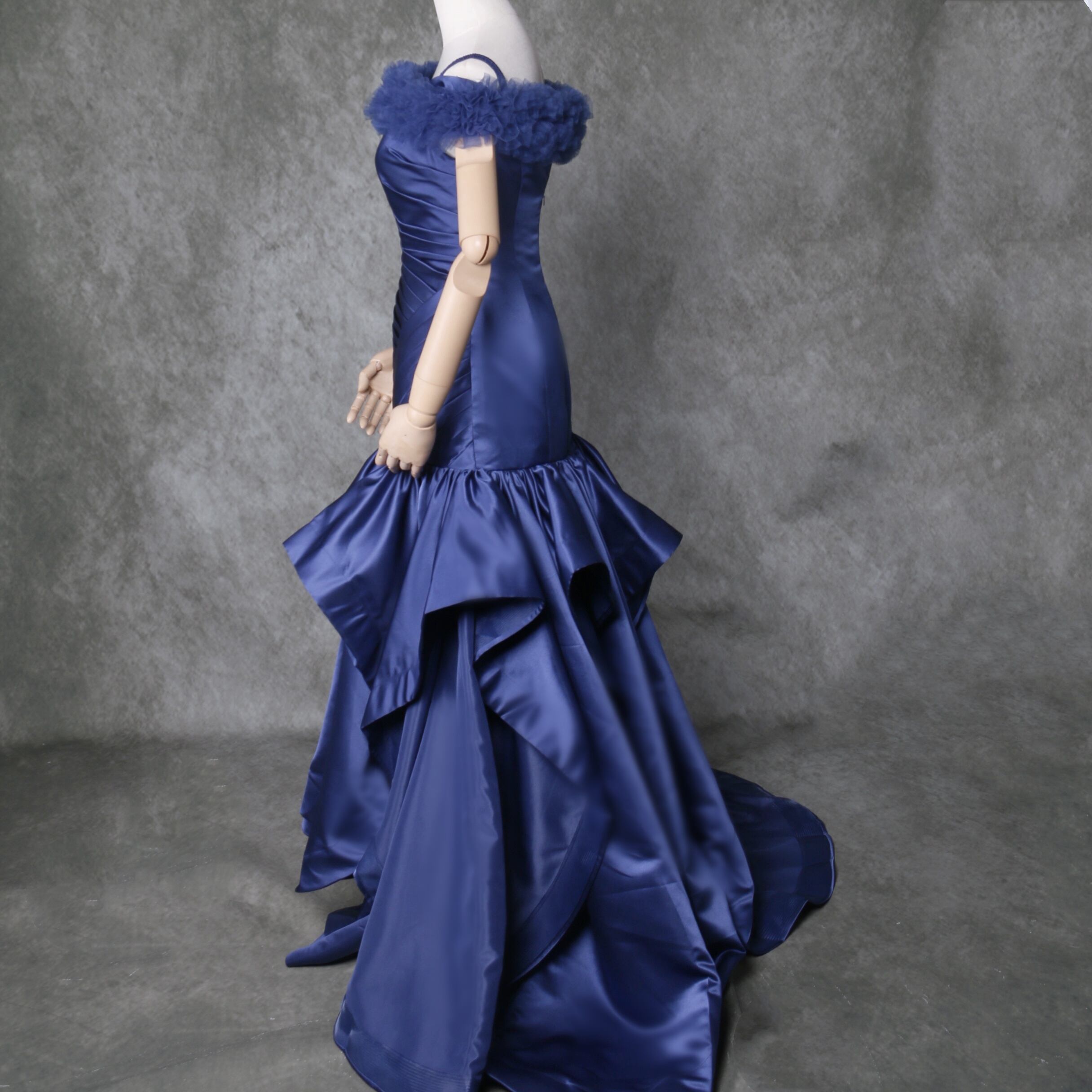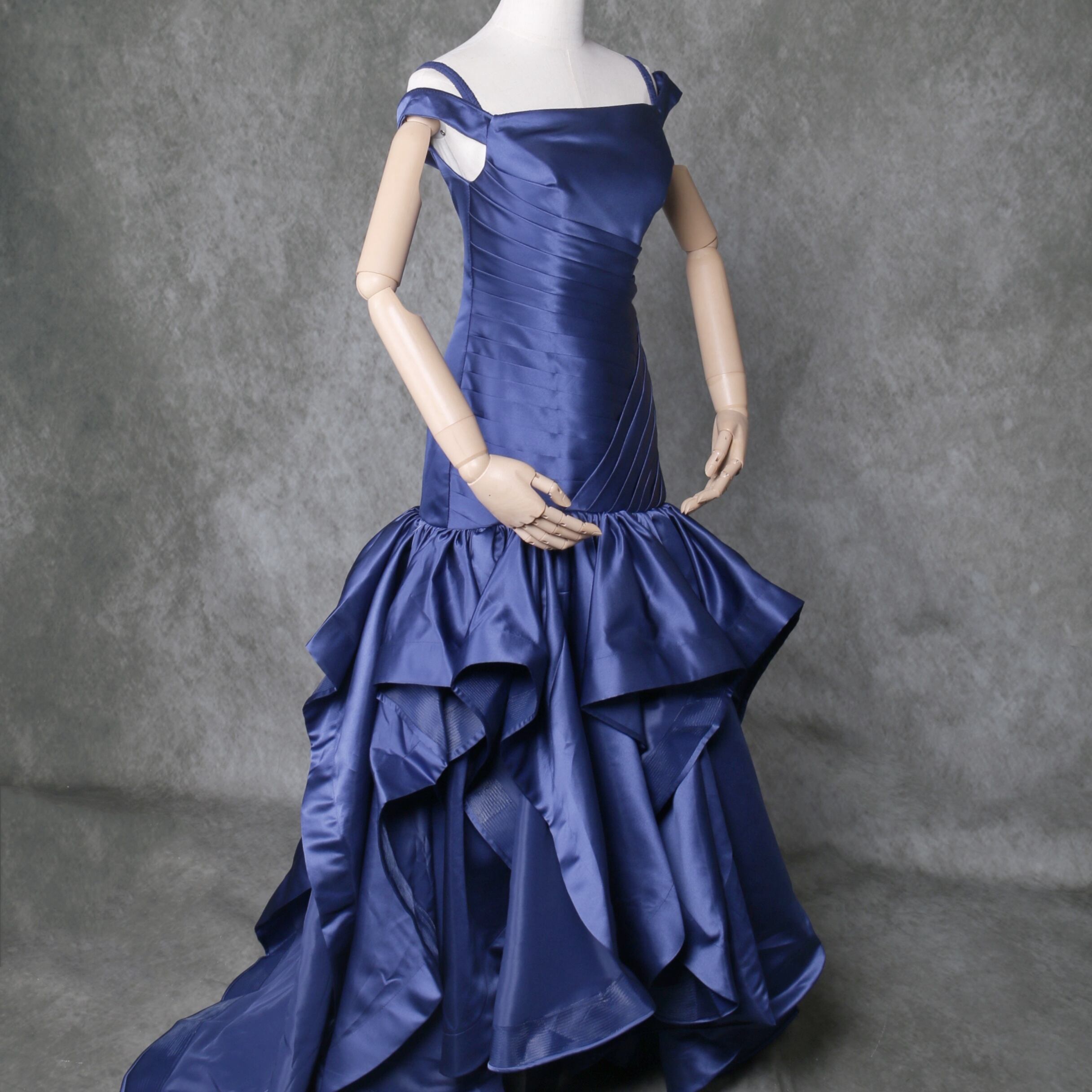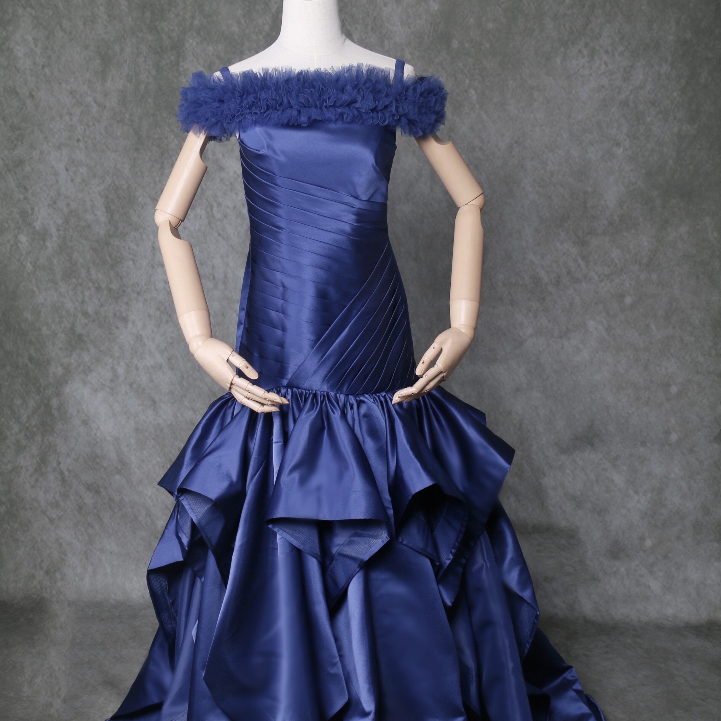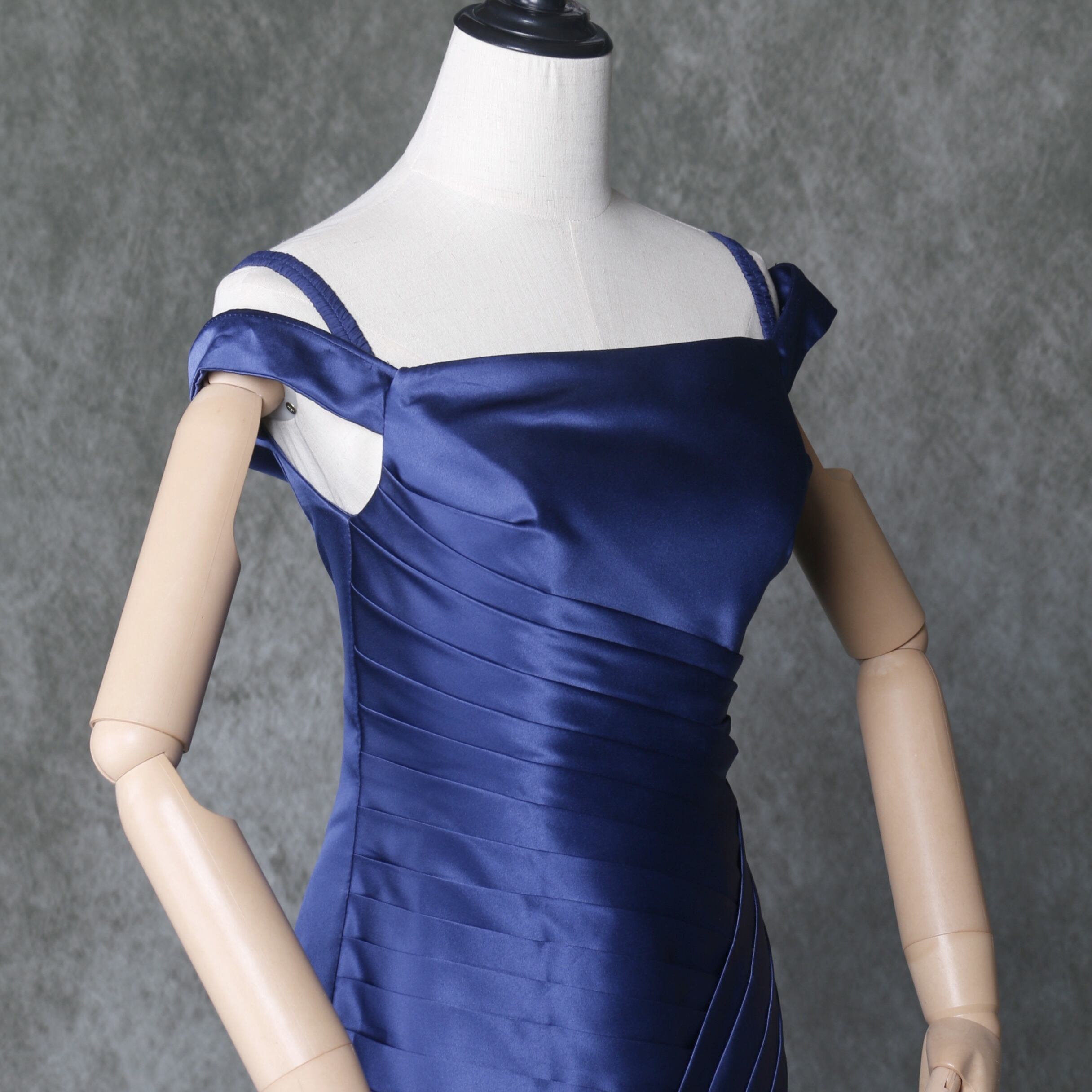 送料無料! 人気上昇!ネイビー 取り外しオフショルダー カラードレス マーメイドライン/花嫁/結婚式/披露宴/