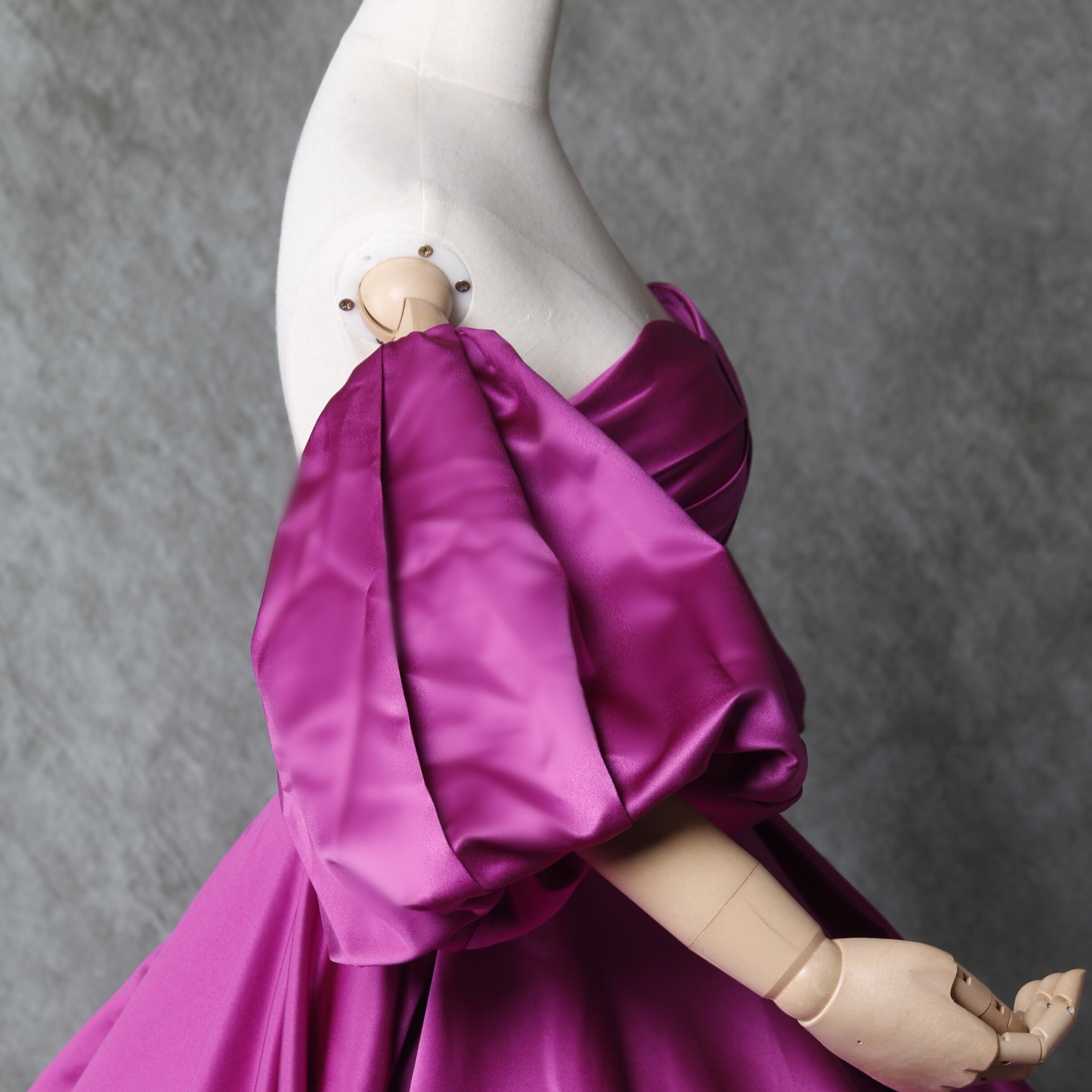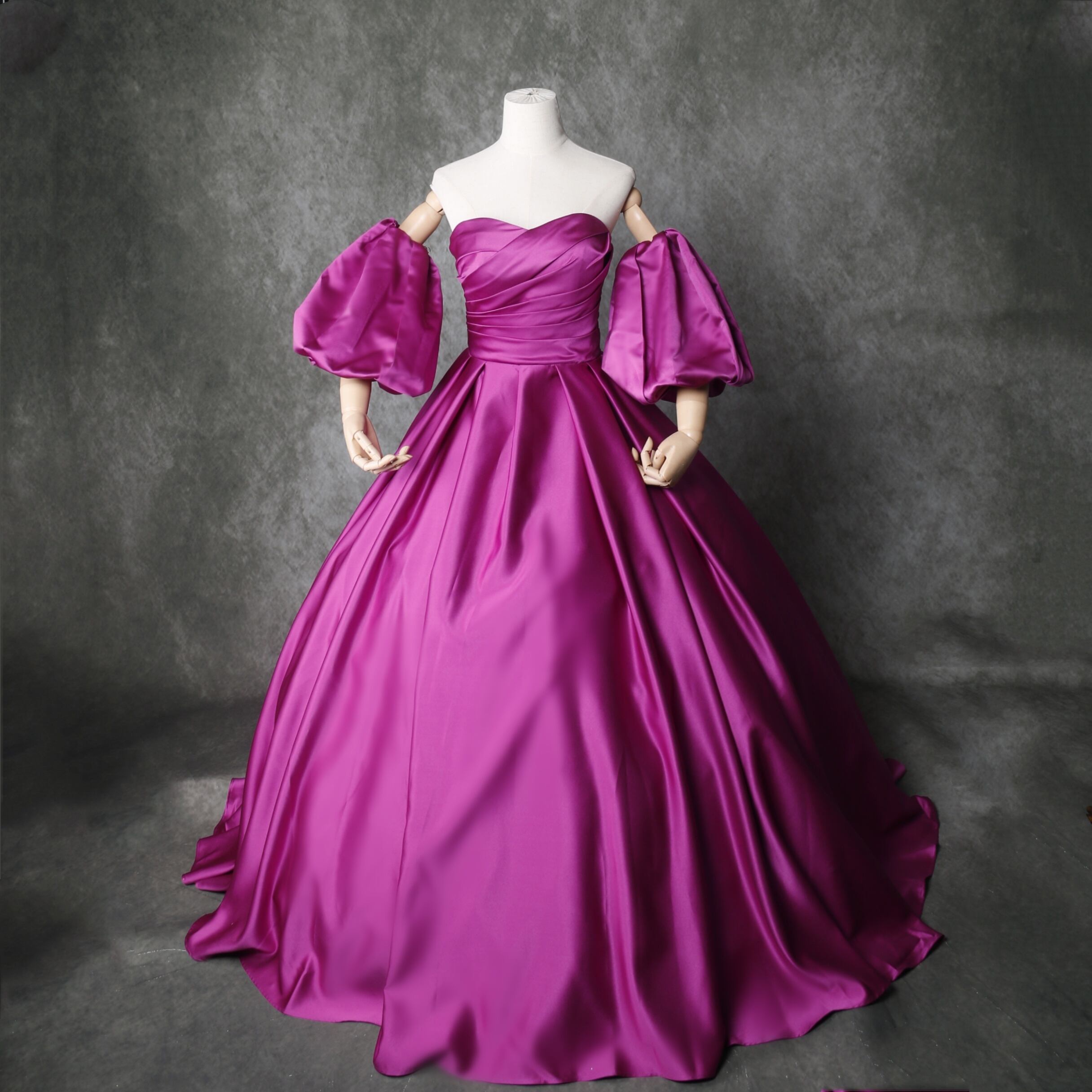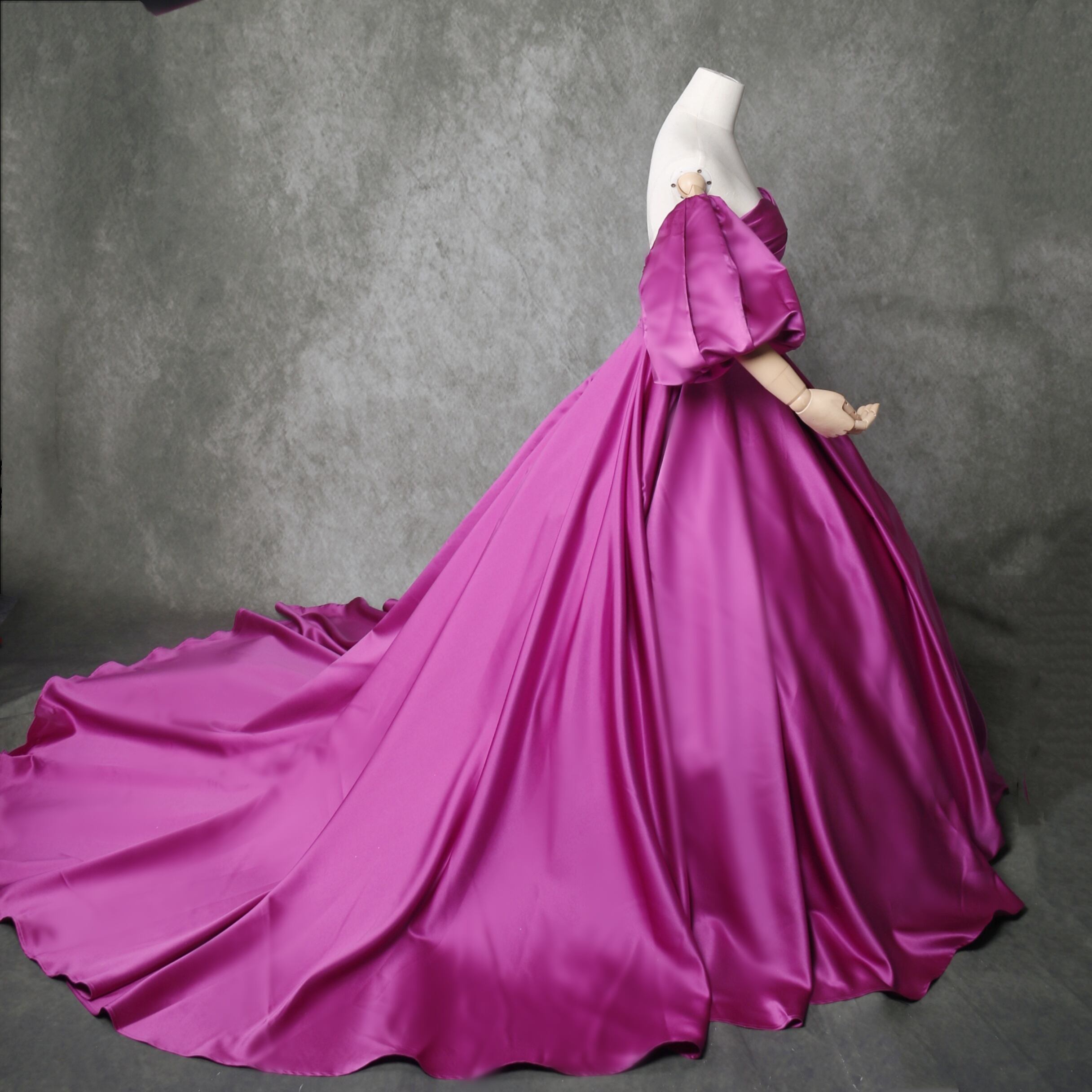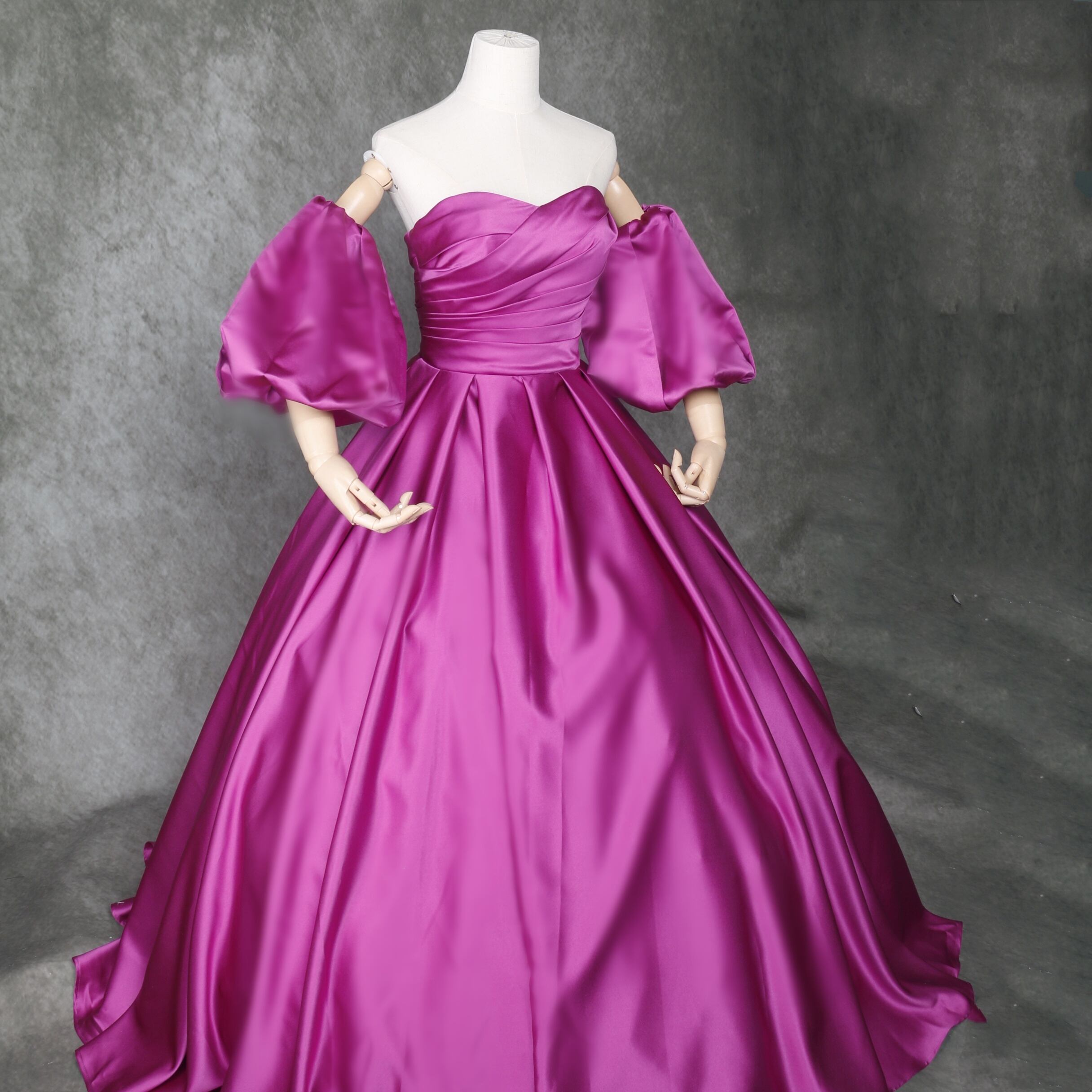 送料無料! 人気上昇!ローズピンク カラードレス ふっくら柔らかなバックリボン 取り外し袖 華やかなトレーン パーティードレス お色直し