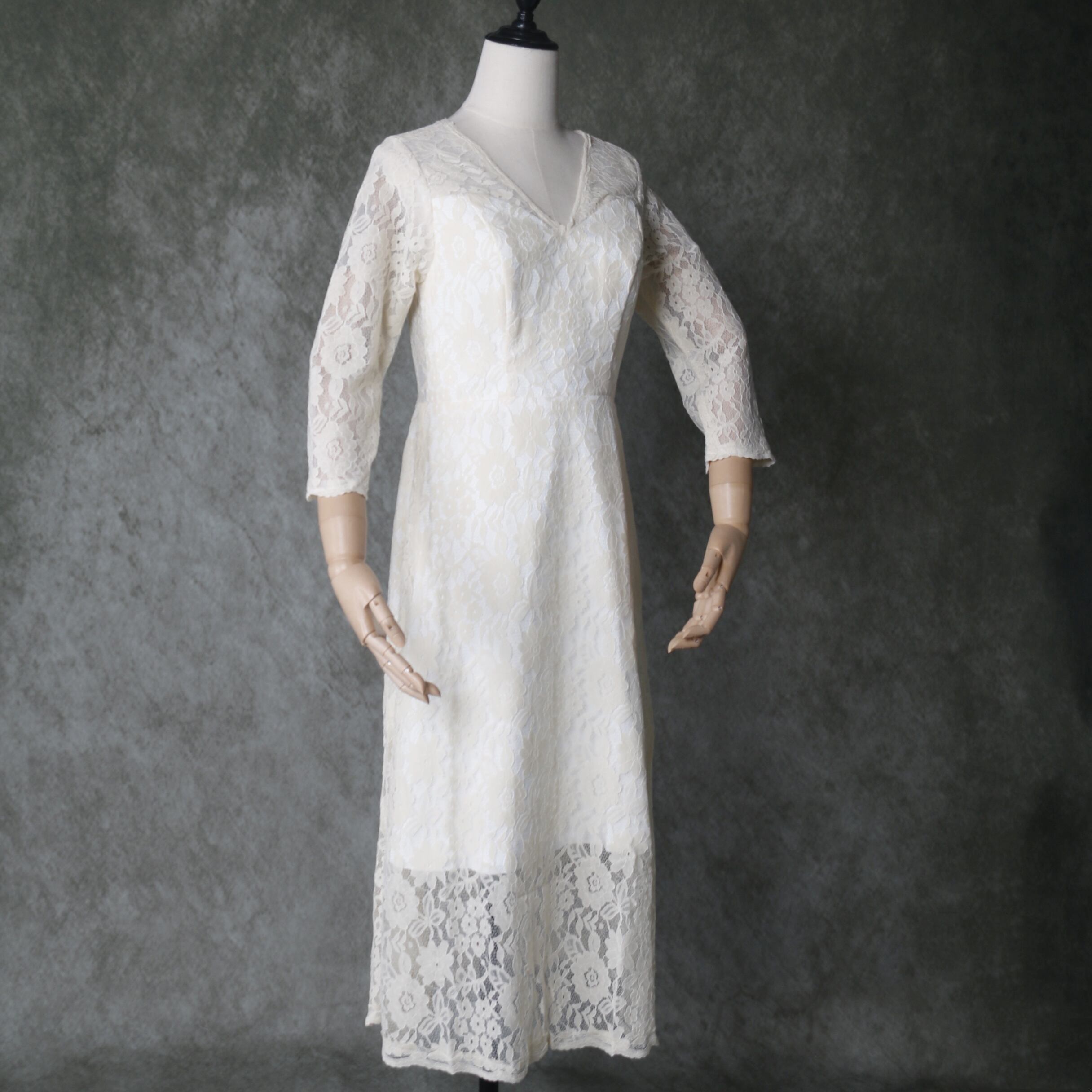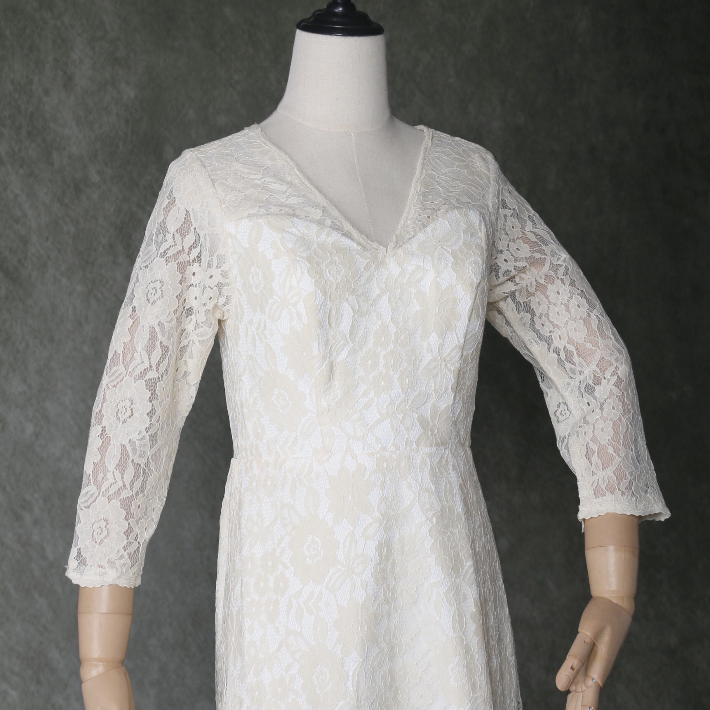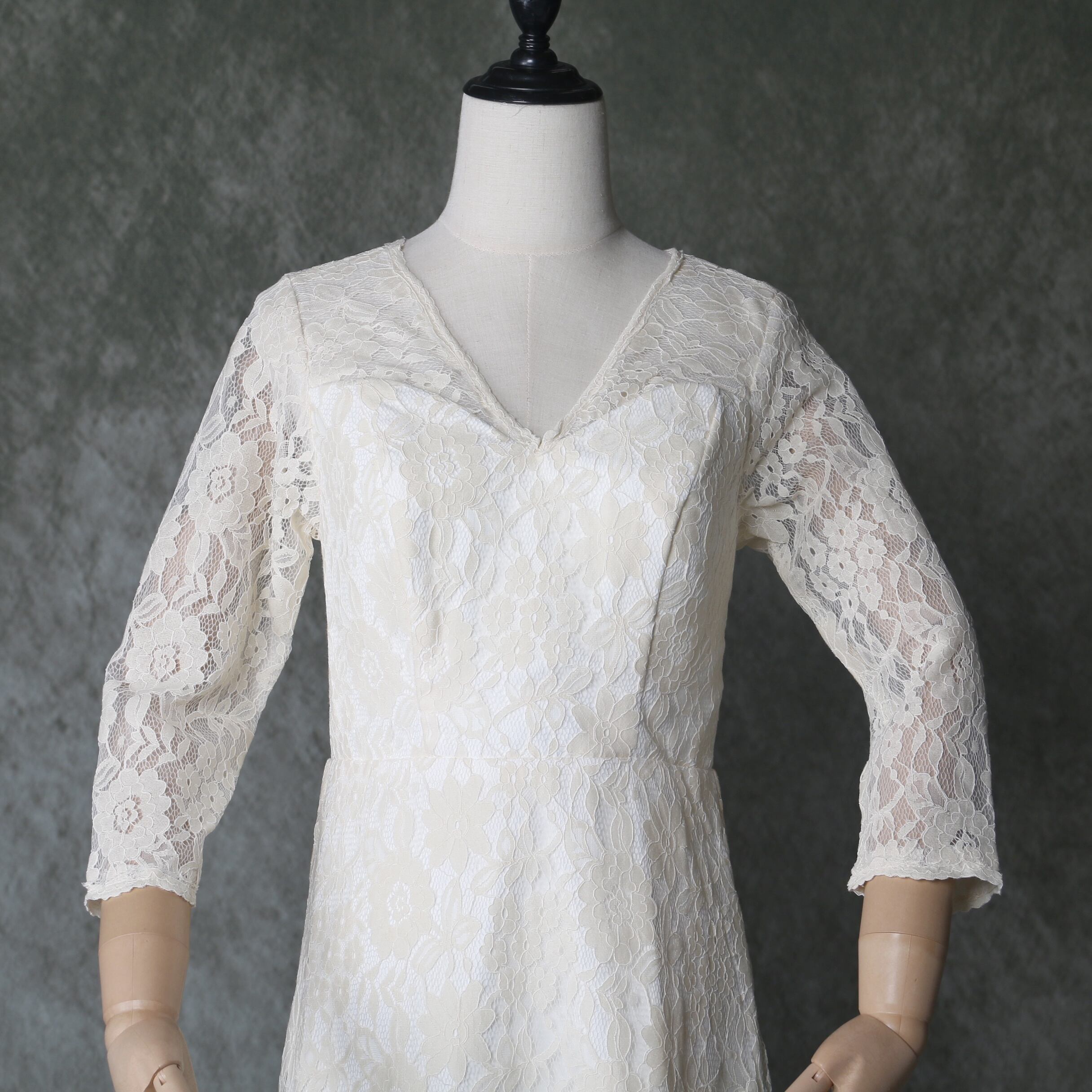送料無料! 憧れのドレス 上品レース Vネック ウェディングドレス ワンピース 結婚式 花嫁
