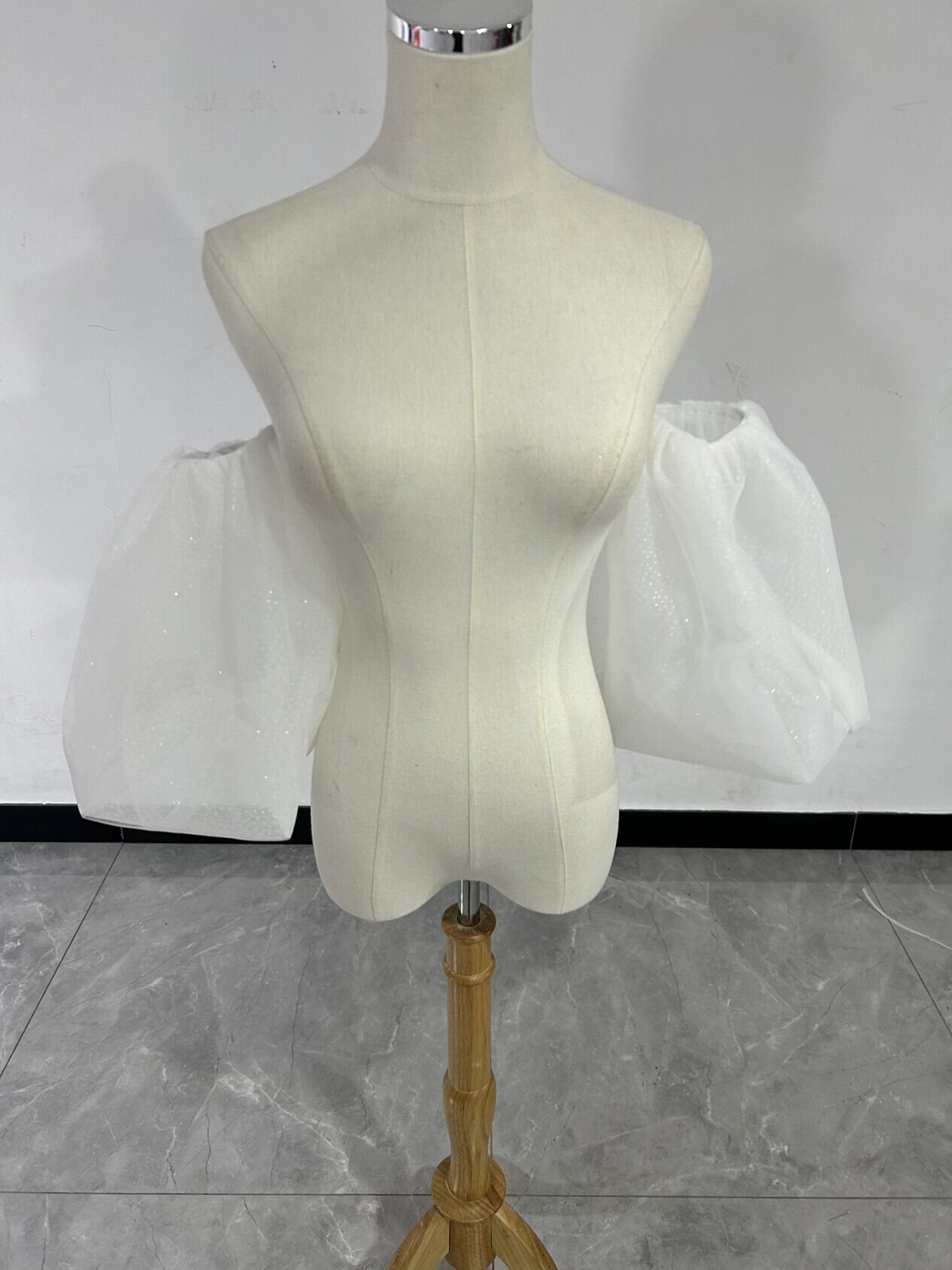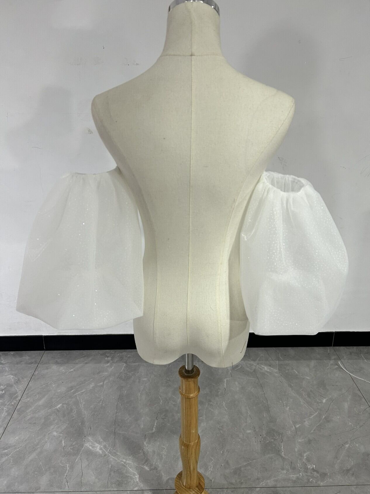多層チュール 取り外し袖 アイボリー ショルダーの付け袖 キラキラパフスリーブ ドレスアレンジ ウエディング お色直し