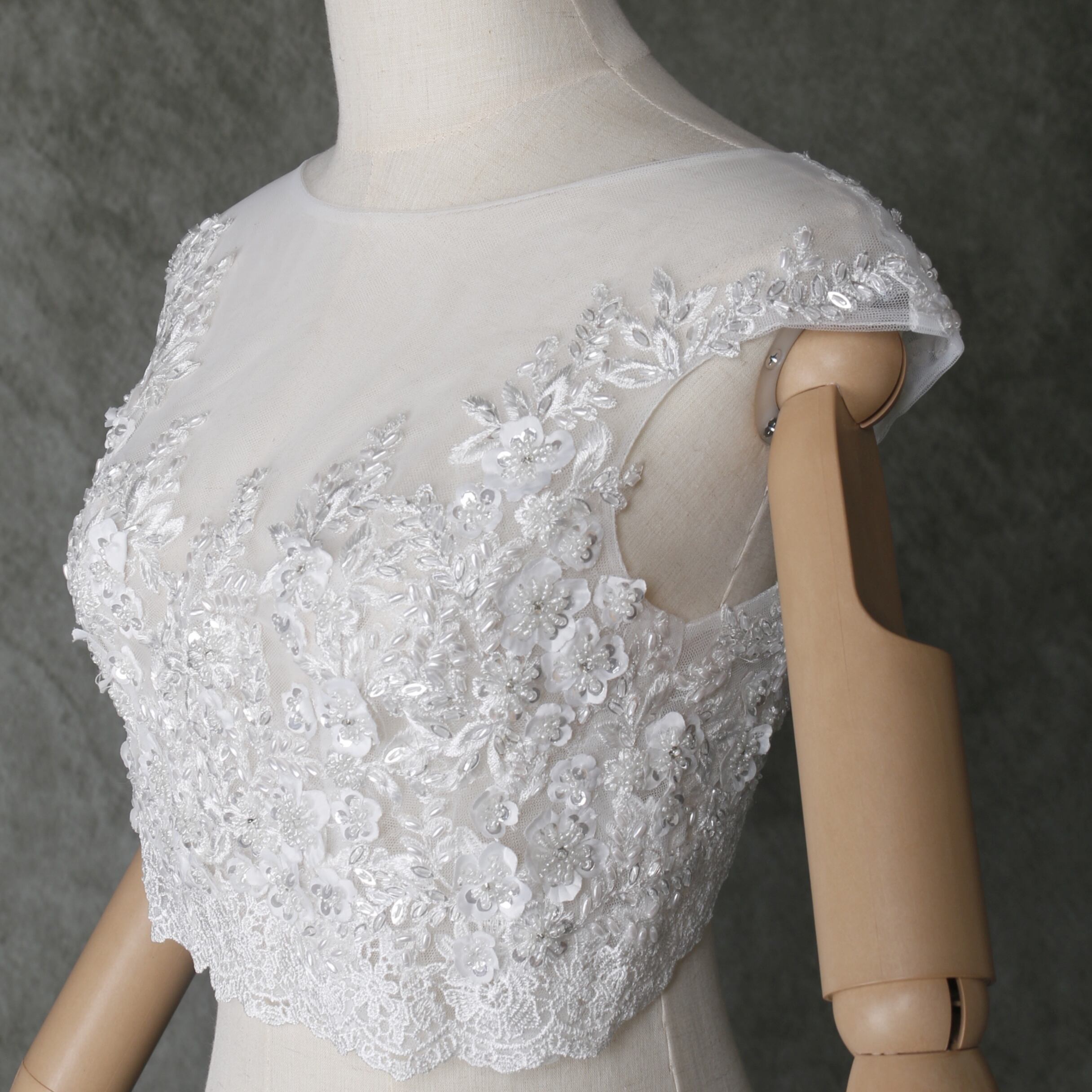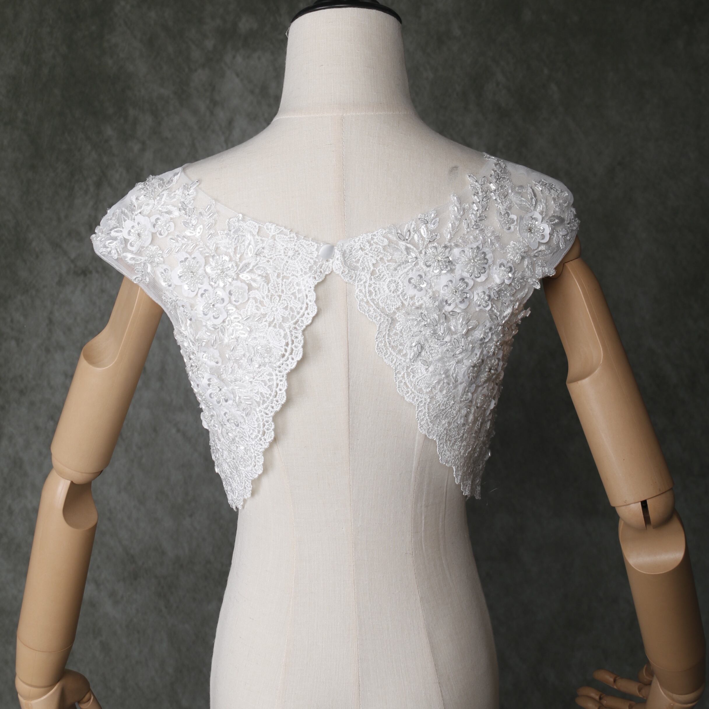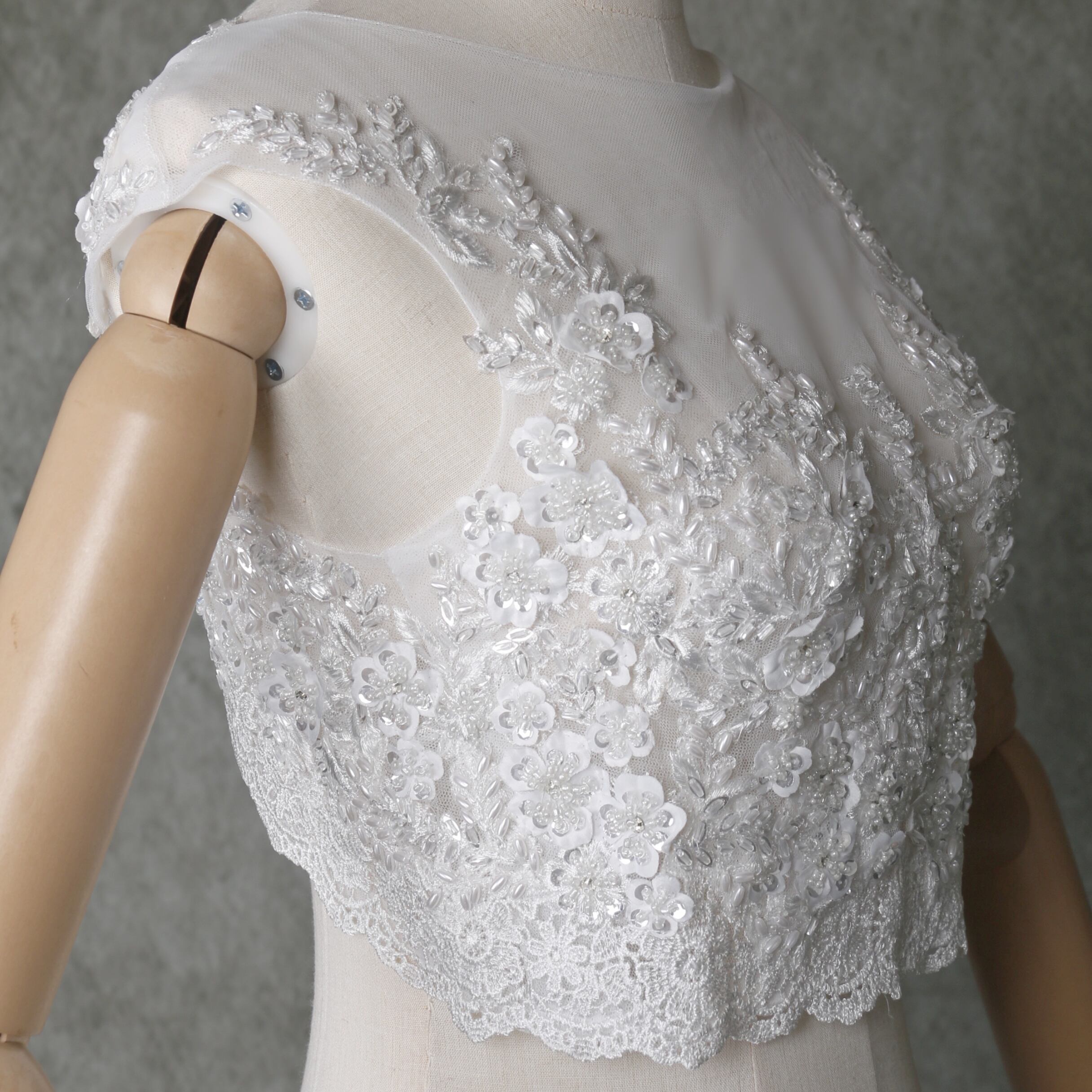 美品 ウエディングドレス 繊細レース パール ボレロ トップスのみ ハイネック/前撮り/花嫁