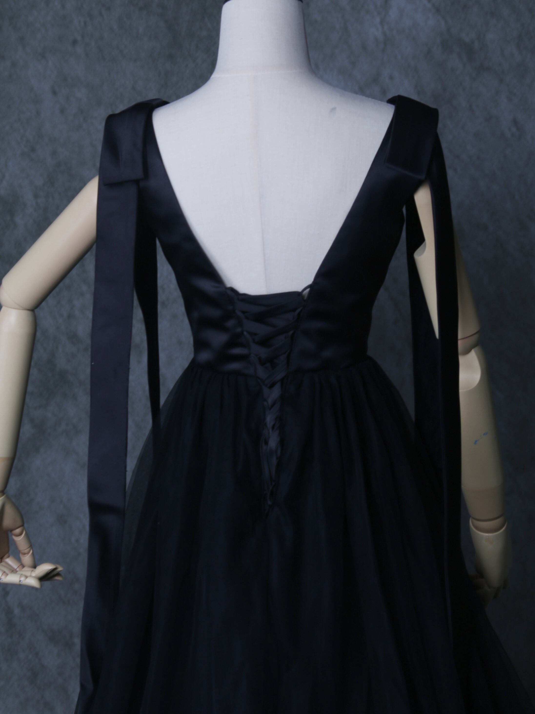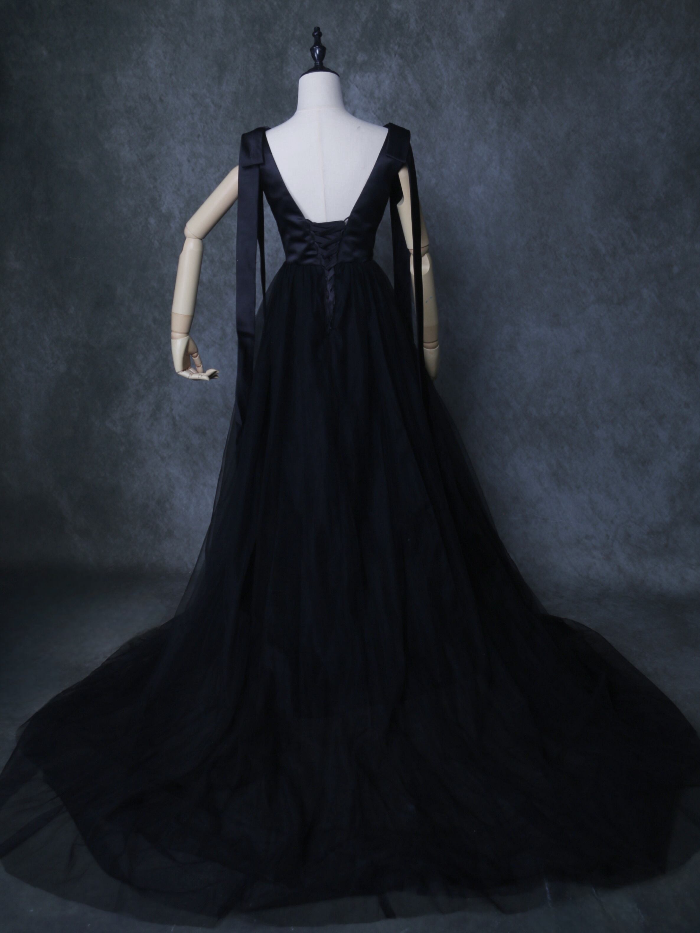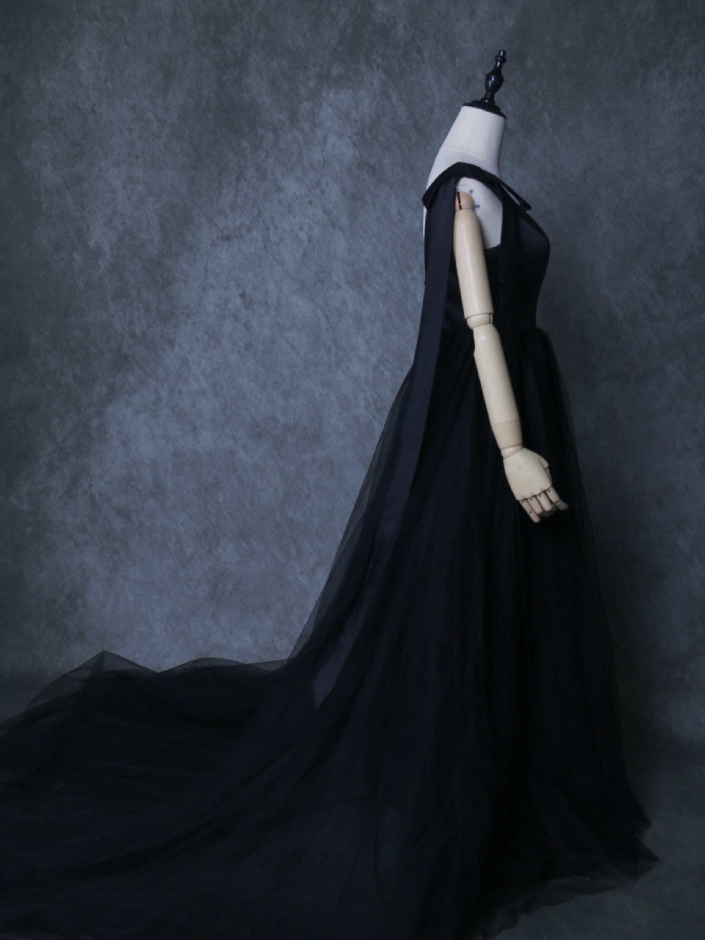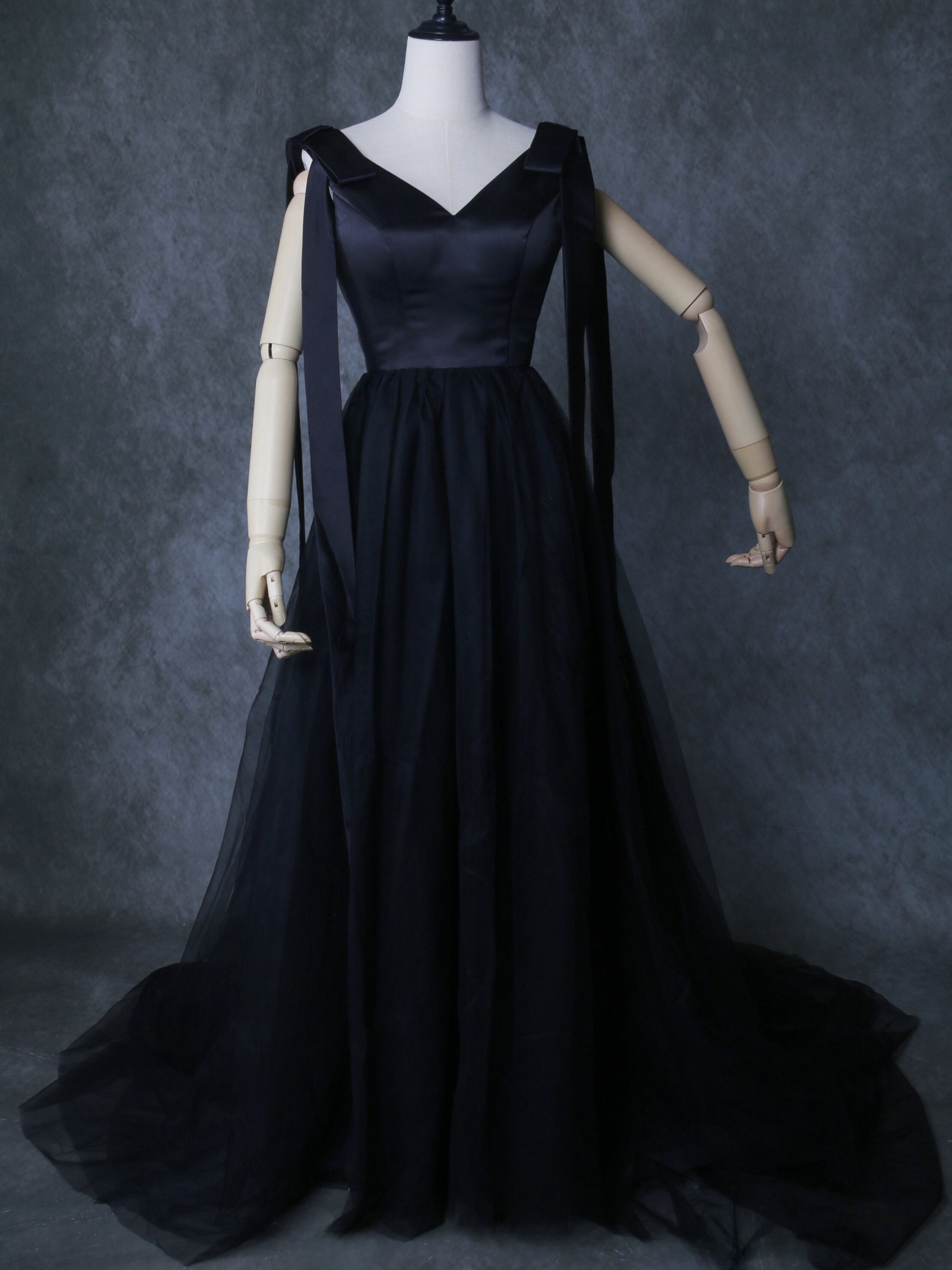 送料無料!雅やか 黒 Vネック カラードレス ロングトレ /結婚式/披露宴
