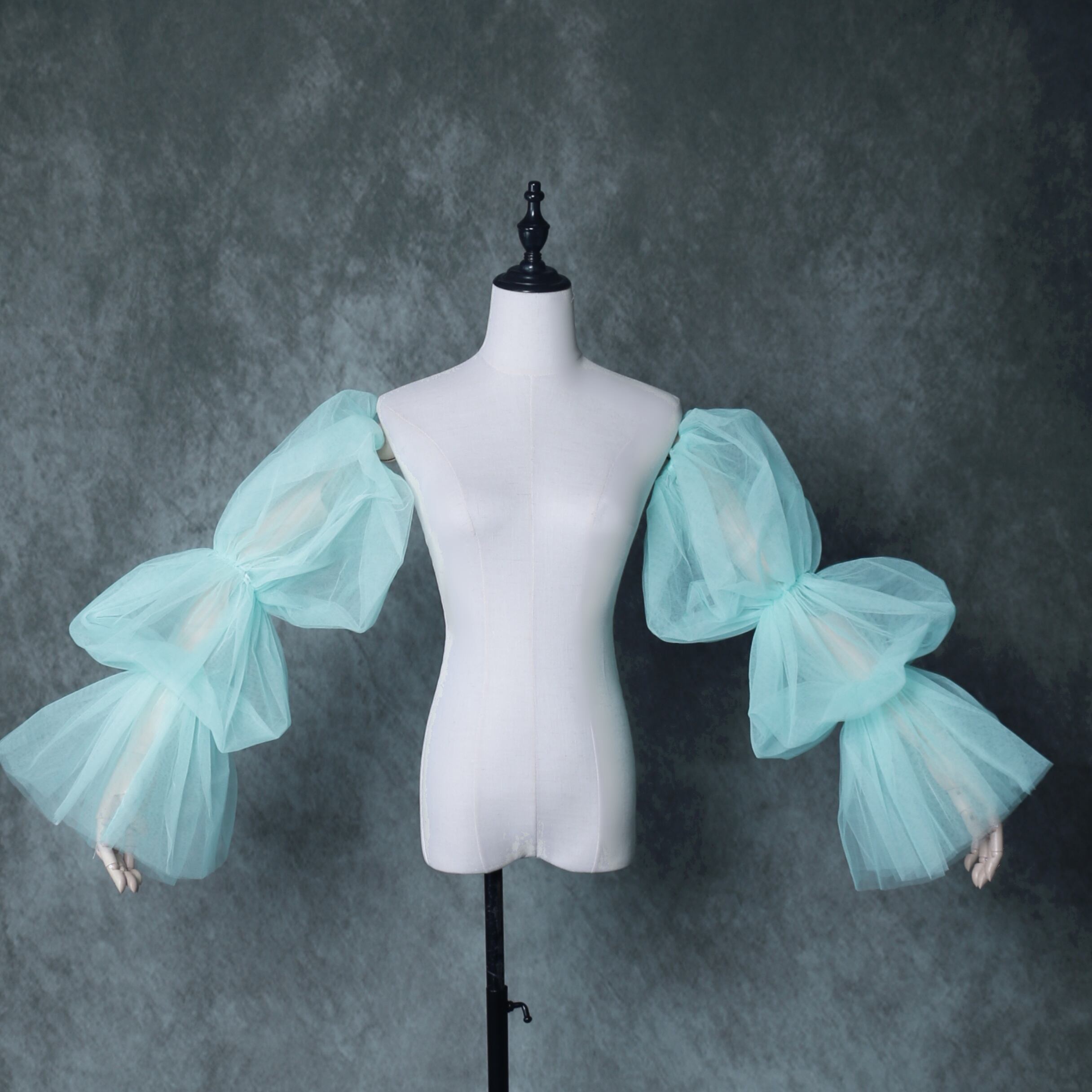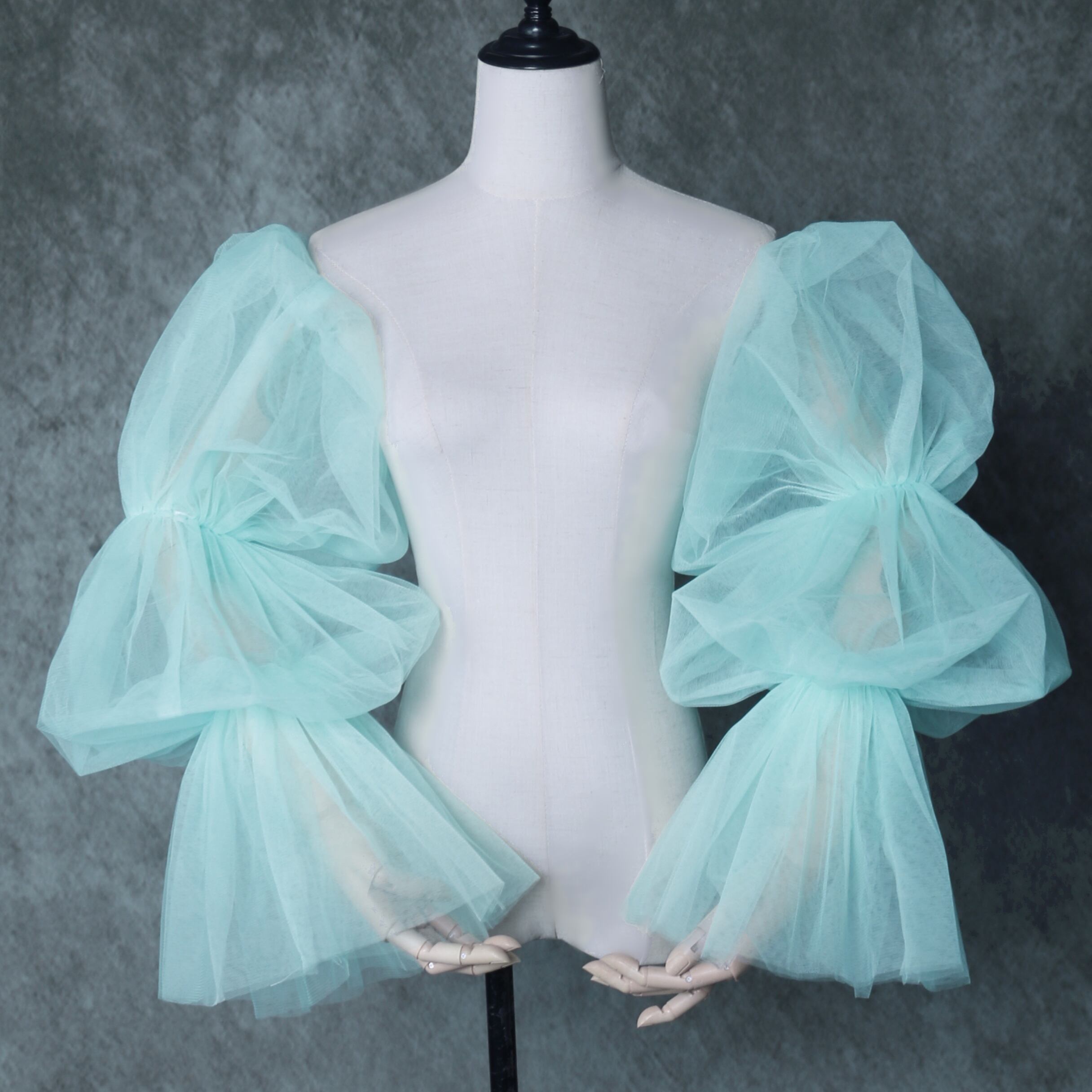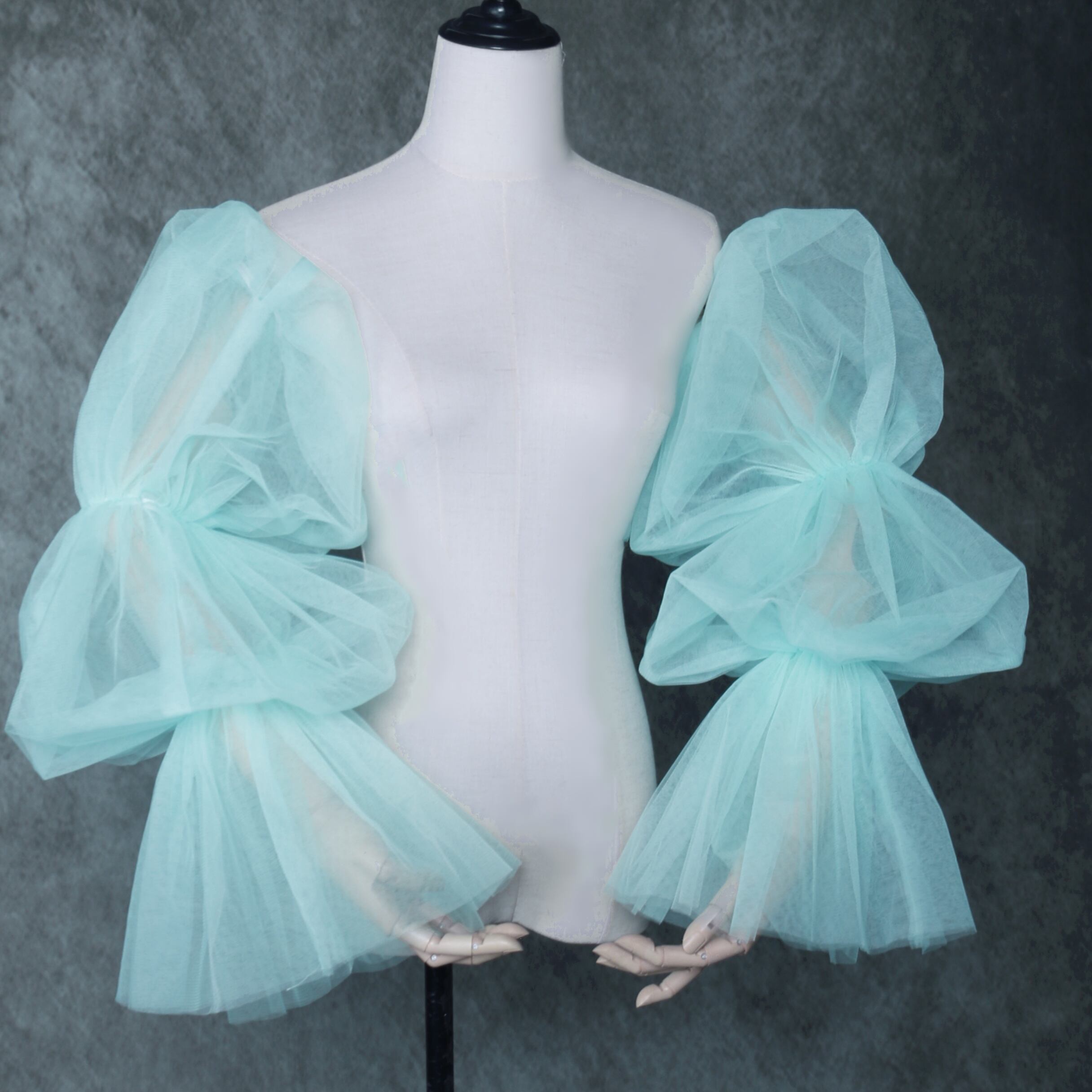 送料無料!グリーン 取り外し姫袖 ショルダーの付け袖 パフスリーブ オーダー可能