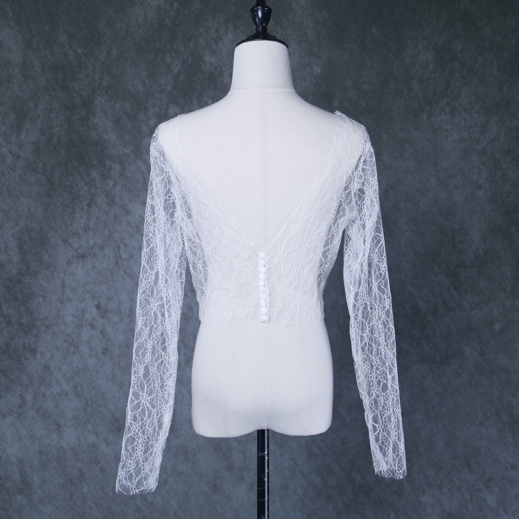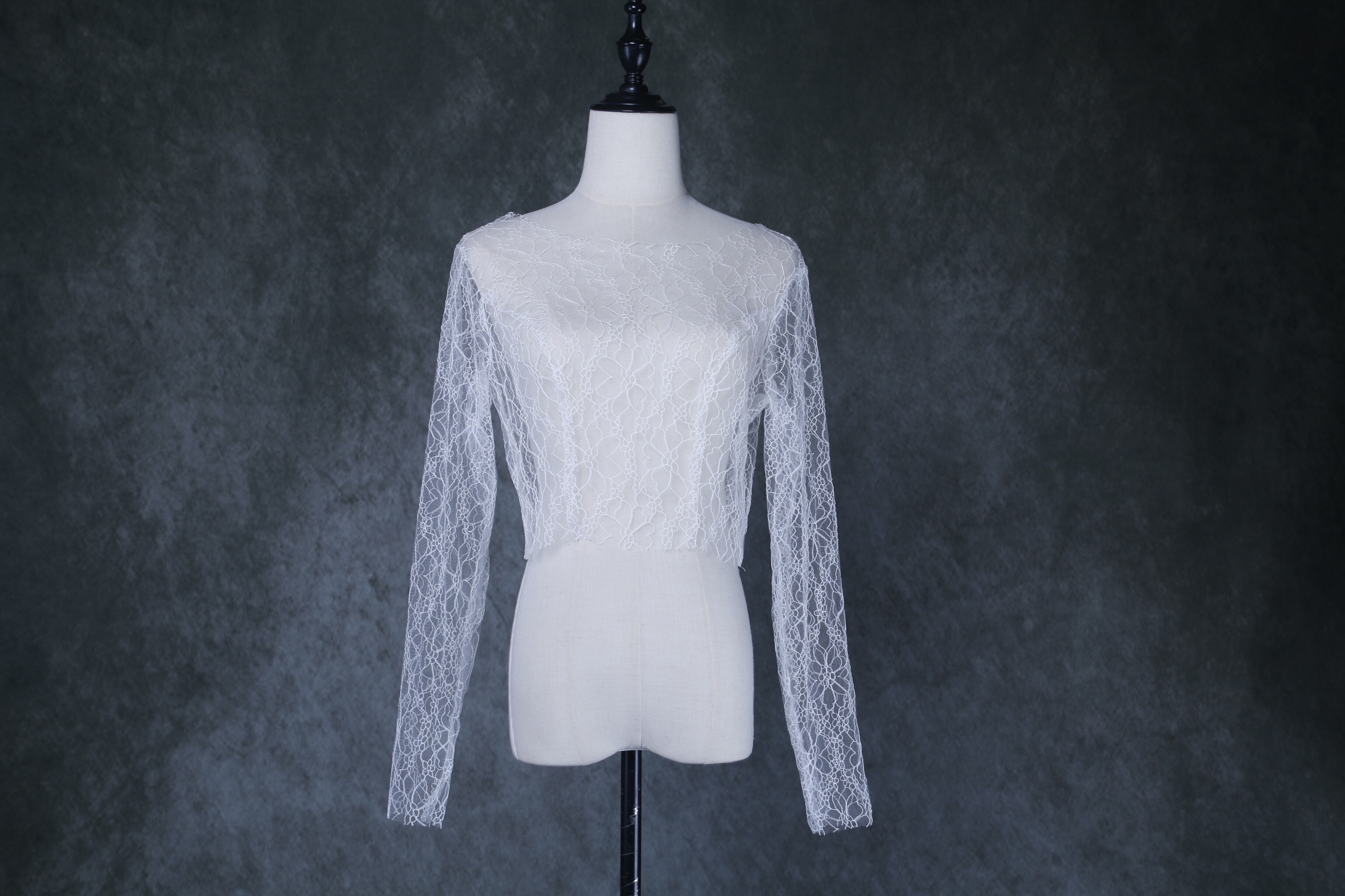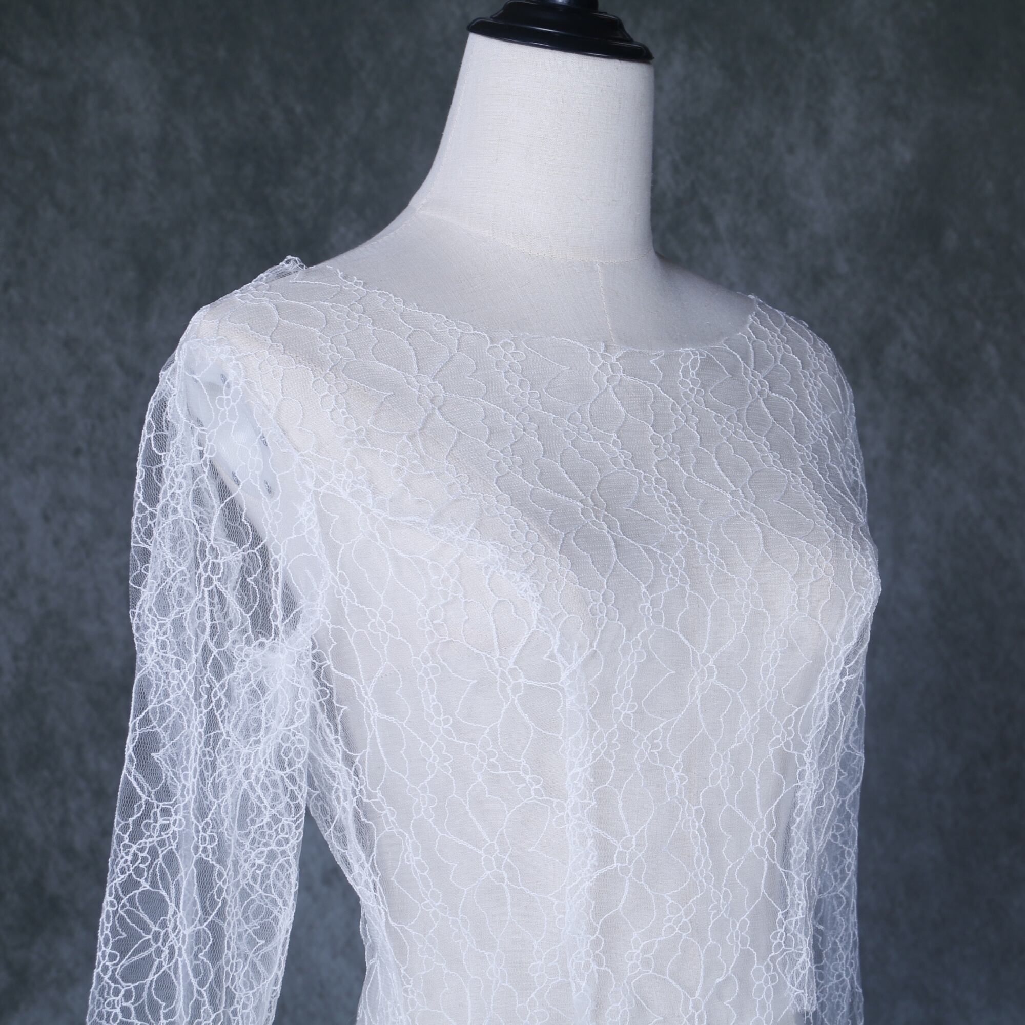 美品 ウエディングドレス 繊細レース 長袖パール ボレロ トップスのみ ハイネック/前撮り/花嫁