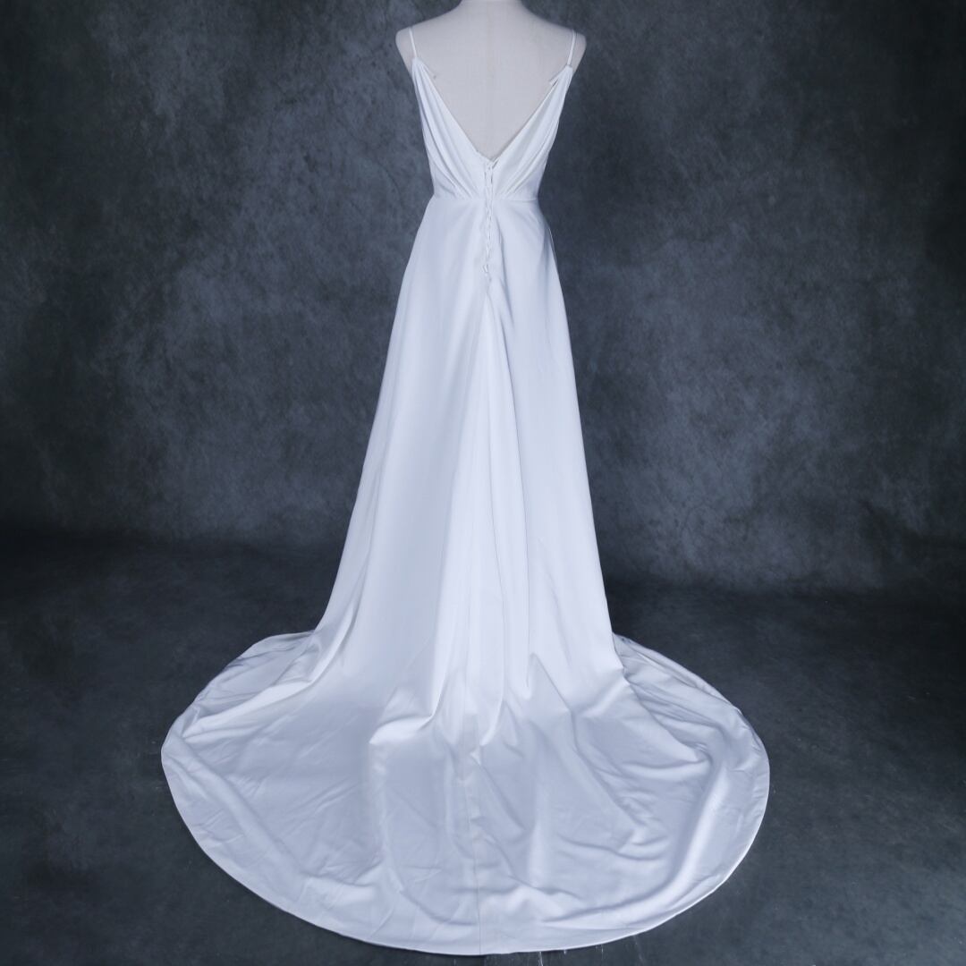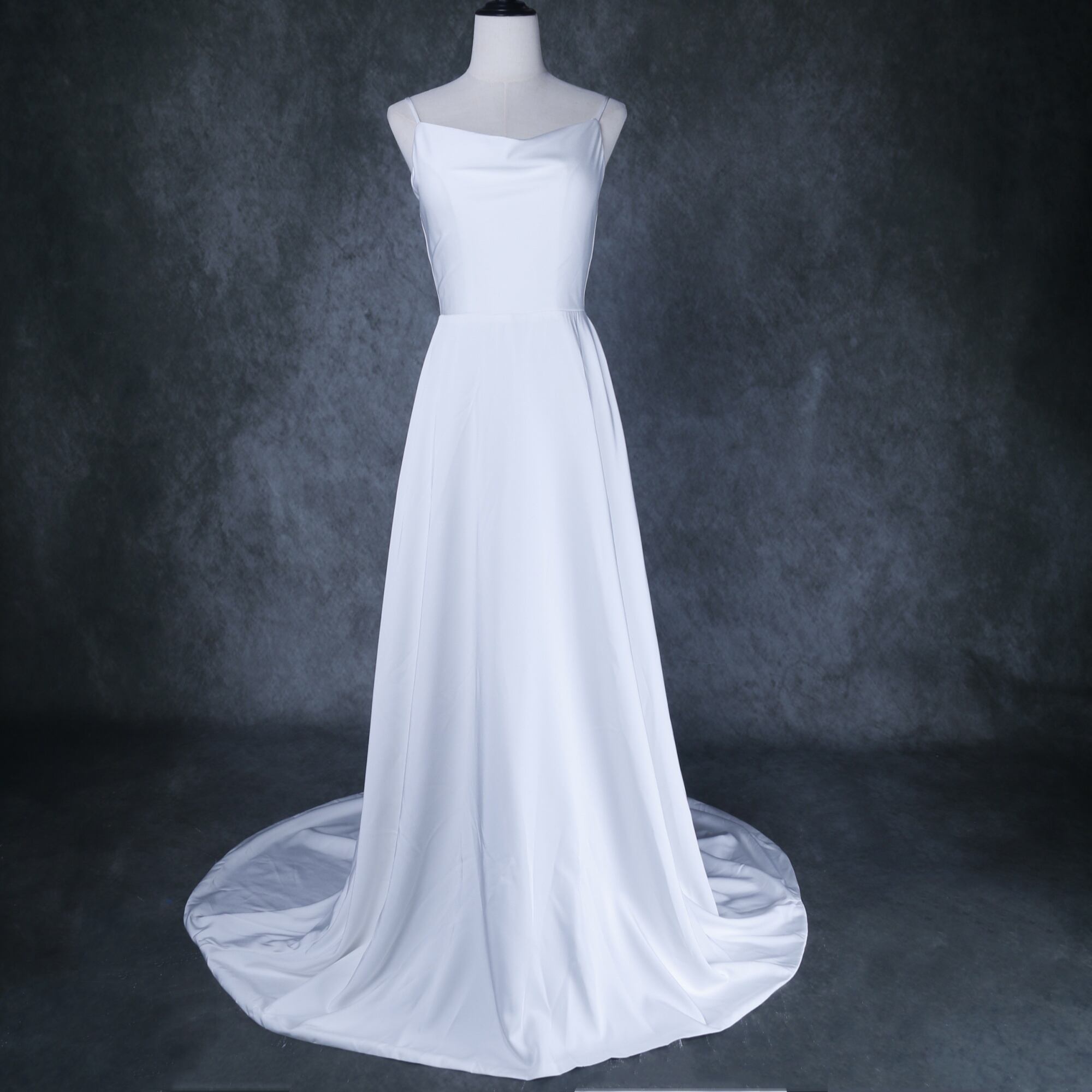 送料無料! 可愛い キャミソール ウエディングドレス トレーン スレンダーライン結婚式/