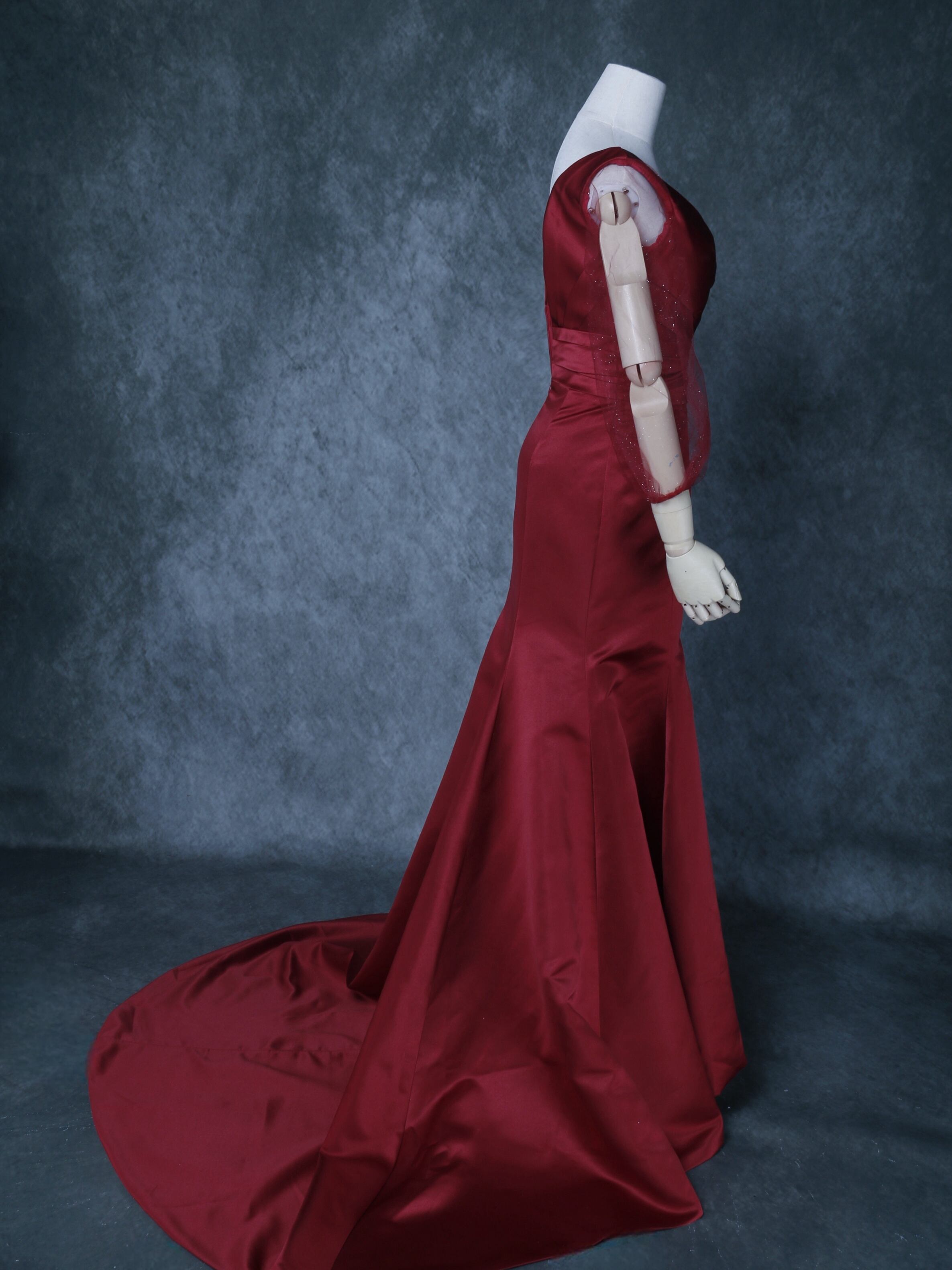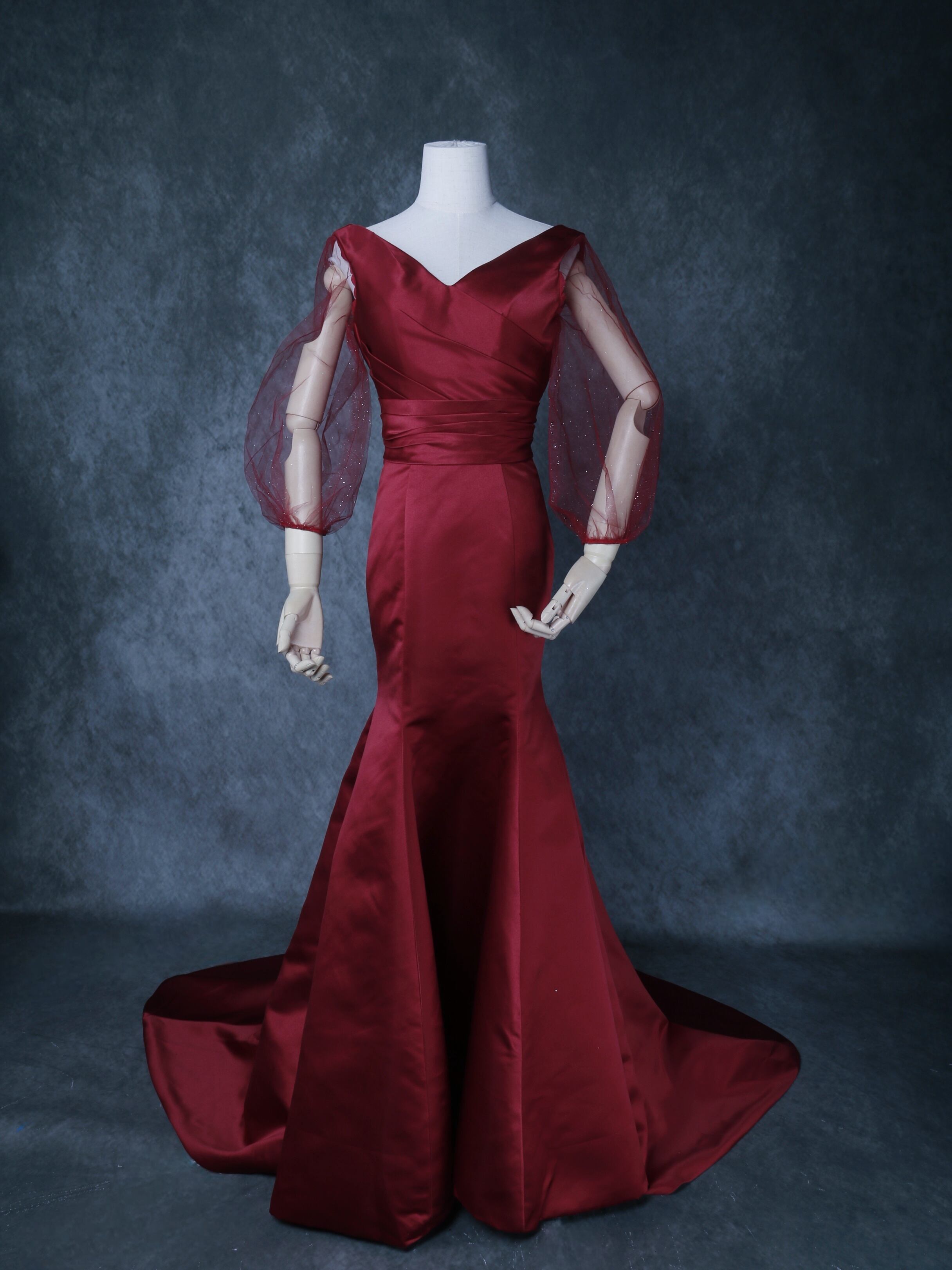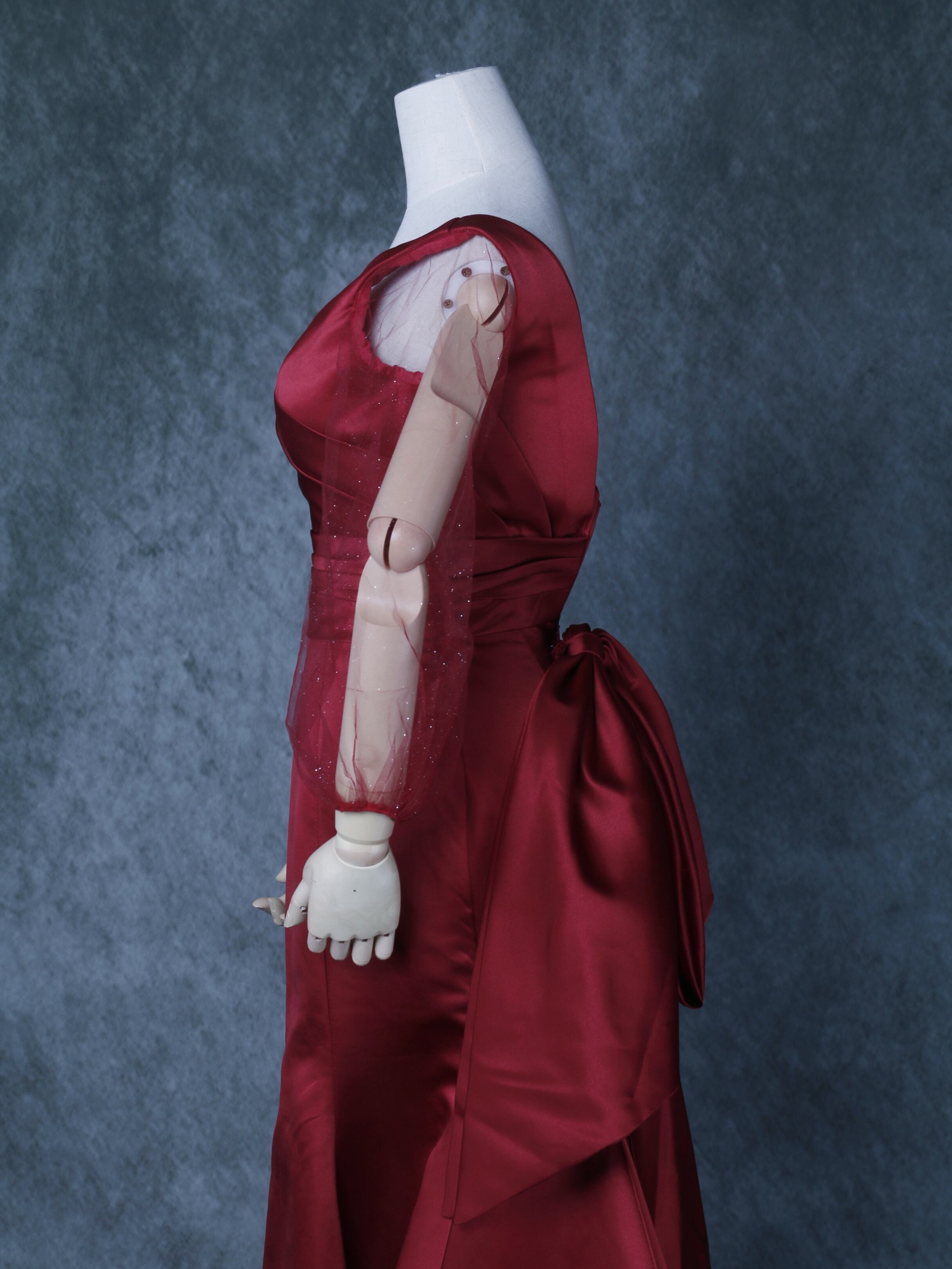 送料無料! 高品質!カラードレス 可愛い ふっくら柔らかなバックリボン華やかなトレーンマーメイドライン/前撮り/結婚式/