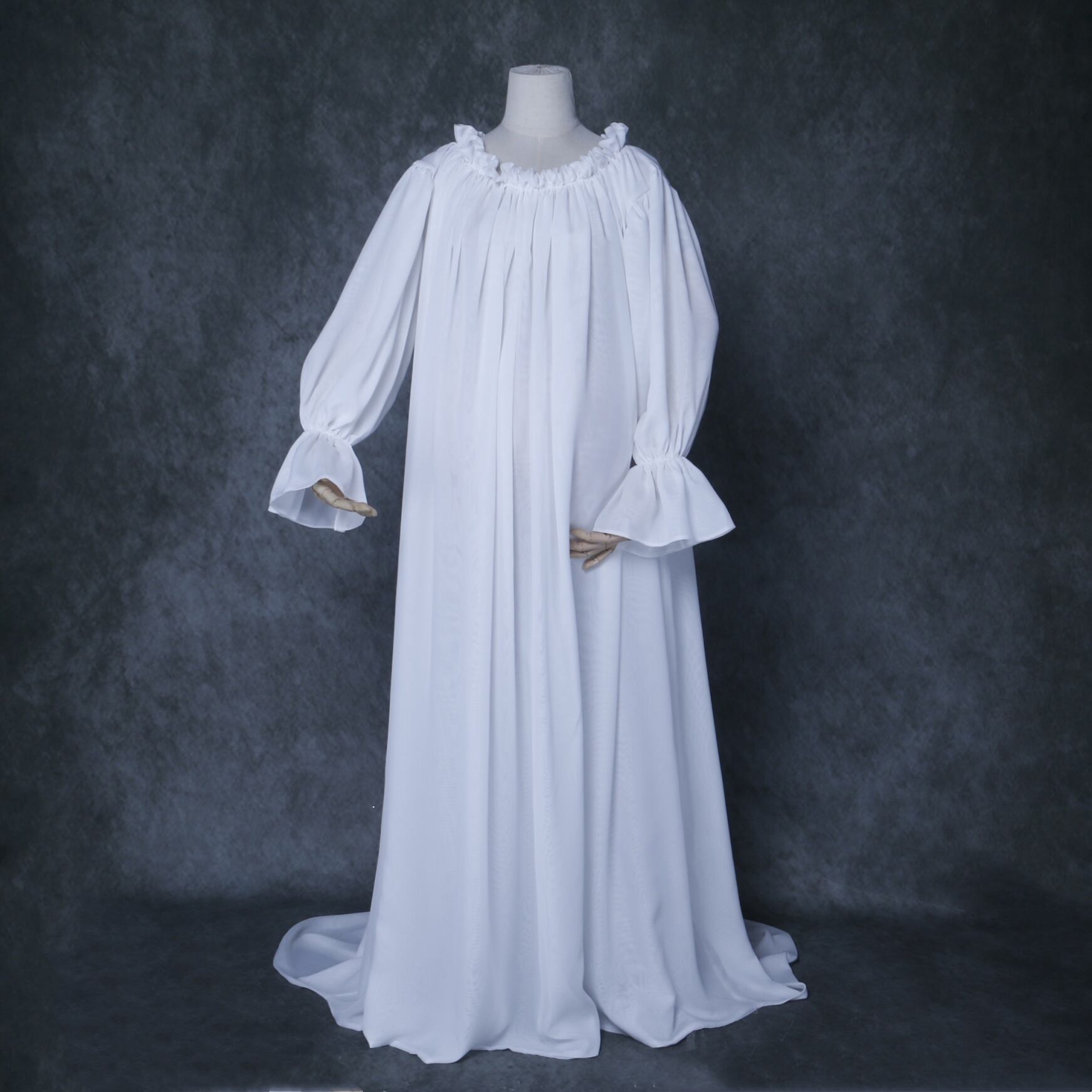 送料無料!雅やか ホワイト ふんわりシフォ 妊婦 長袖 ウエディングドレス 二次会、挙式/前撮り/
