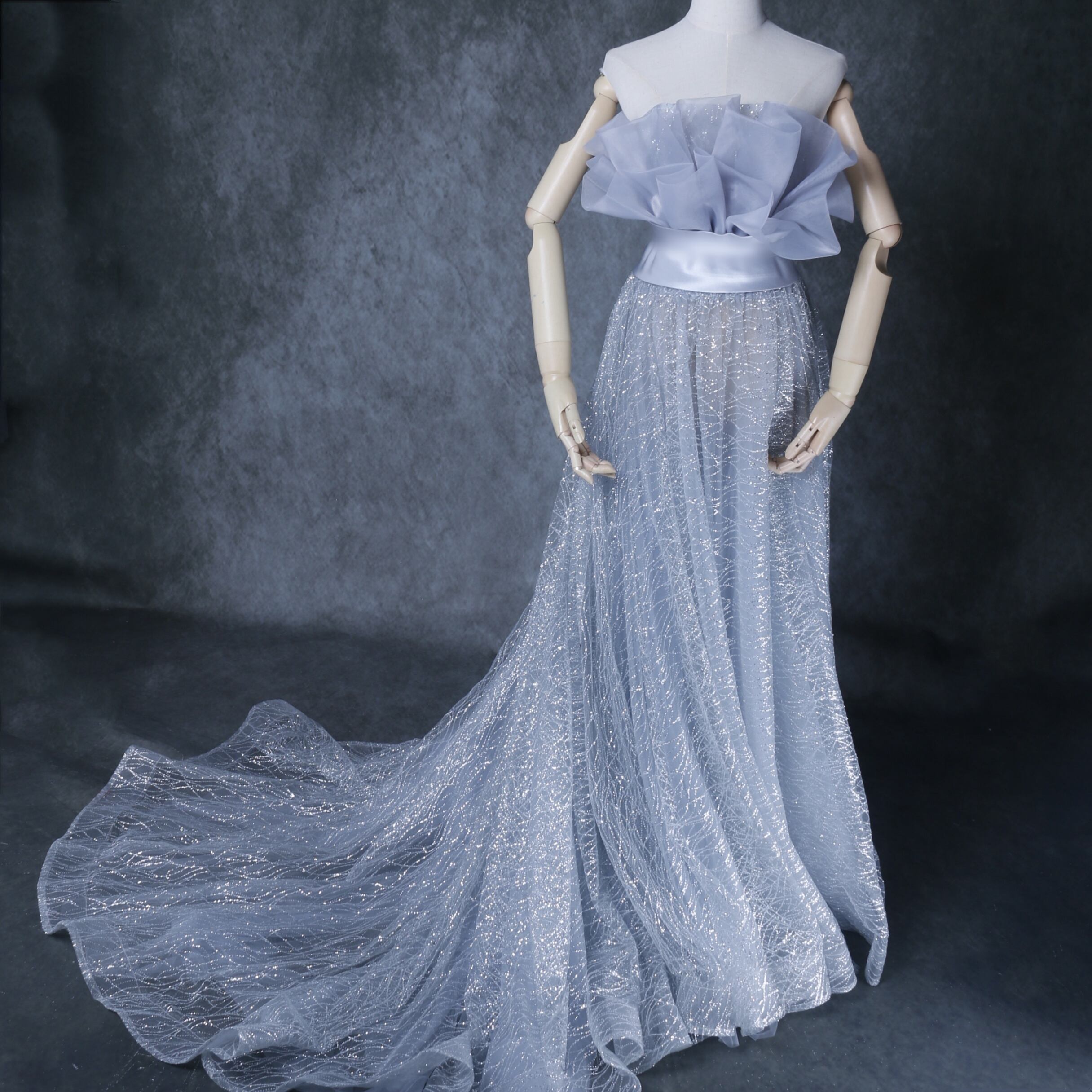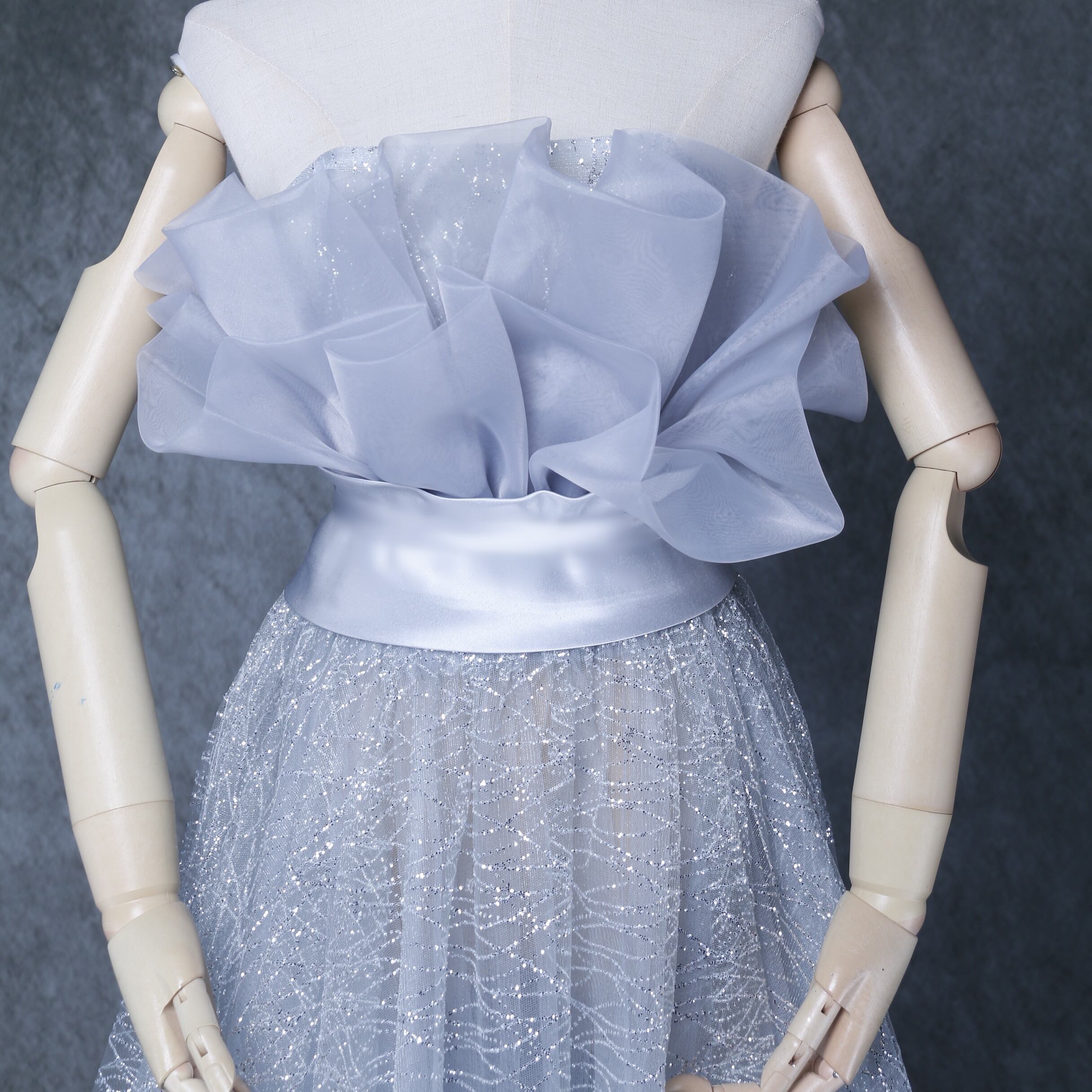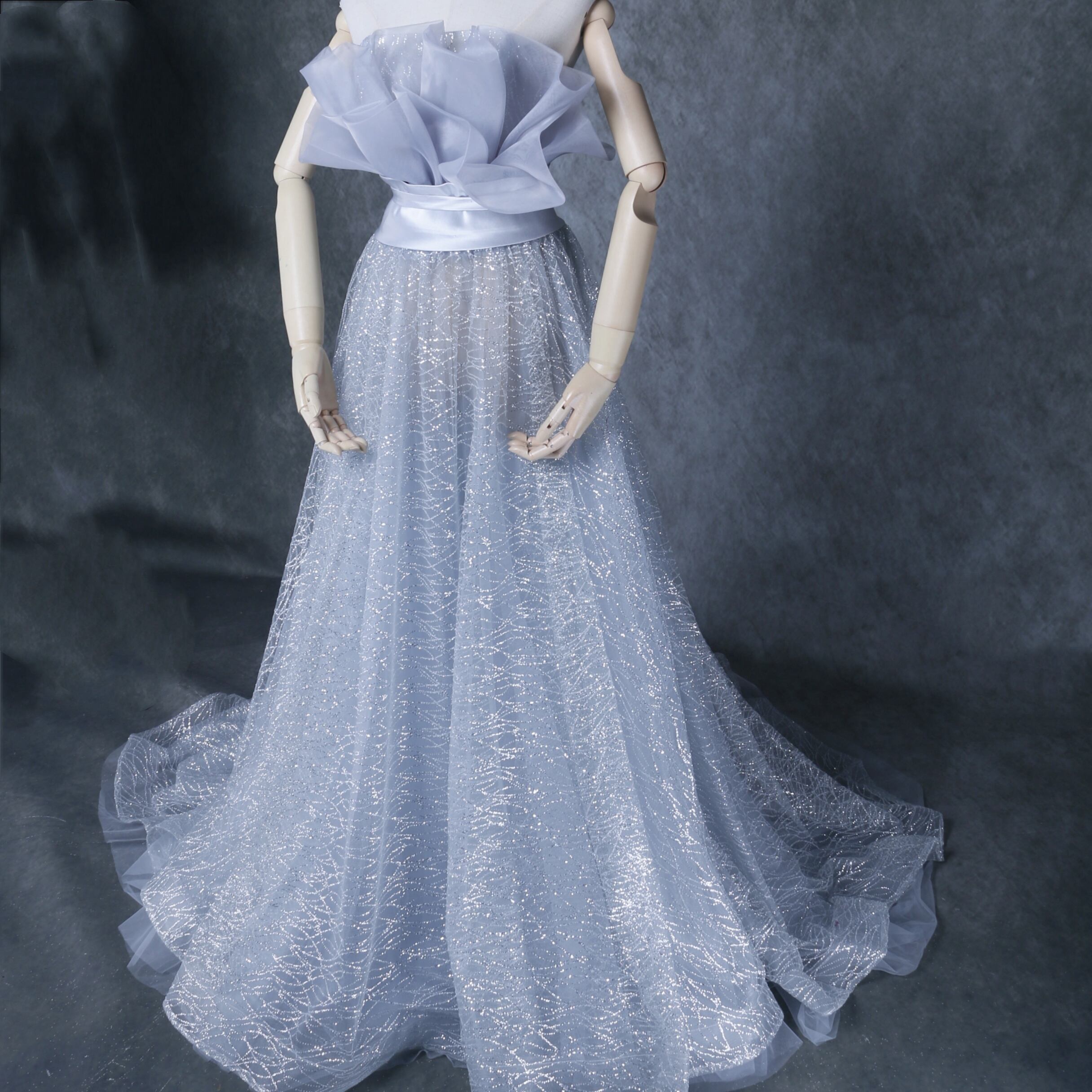 送料無料! 輝きな光彩を放つ シルバー オフショルダー キラキラグリッ カラードレス オーバースカート 結婚式/