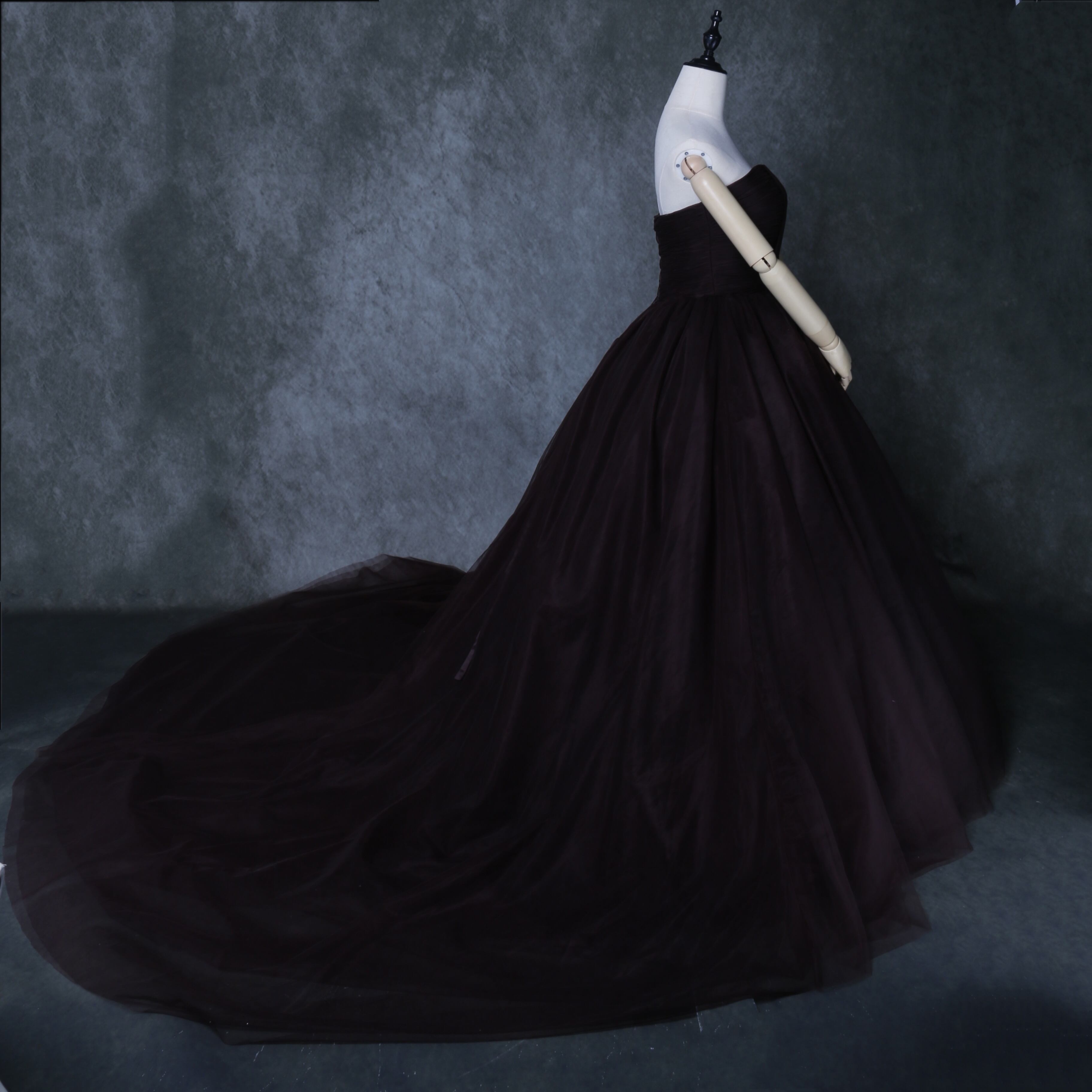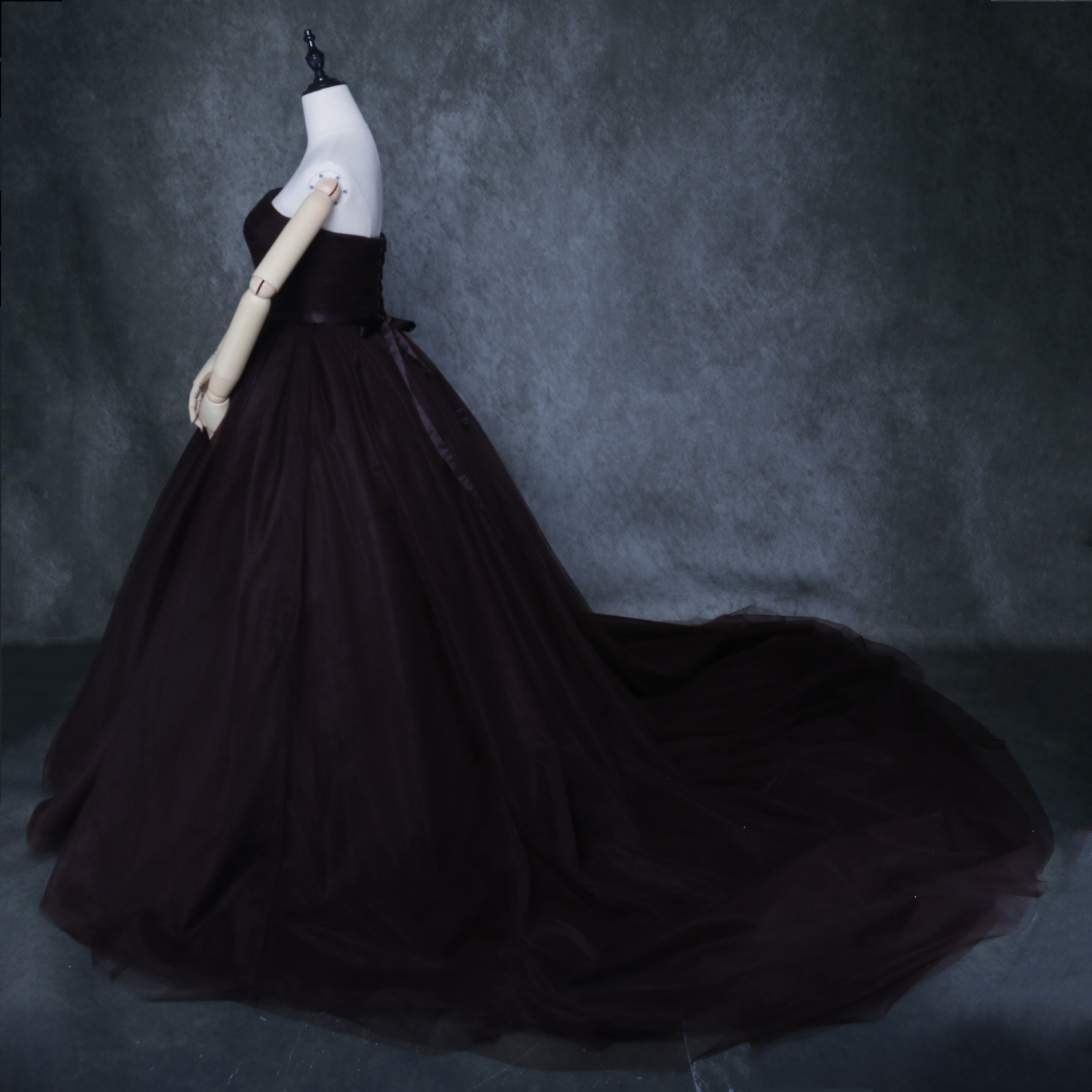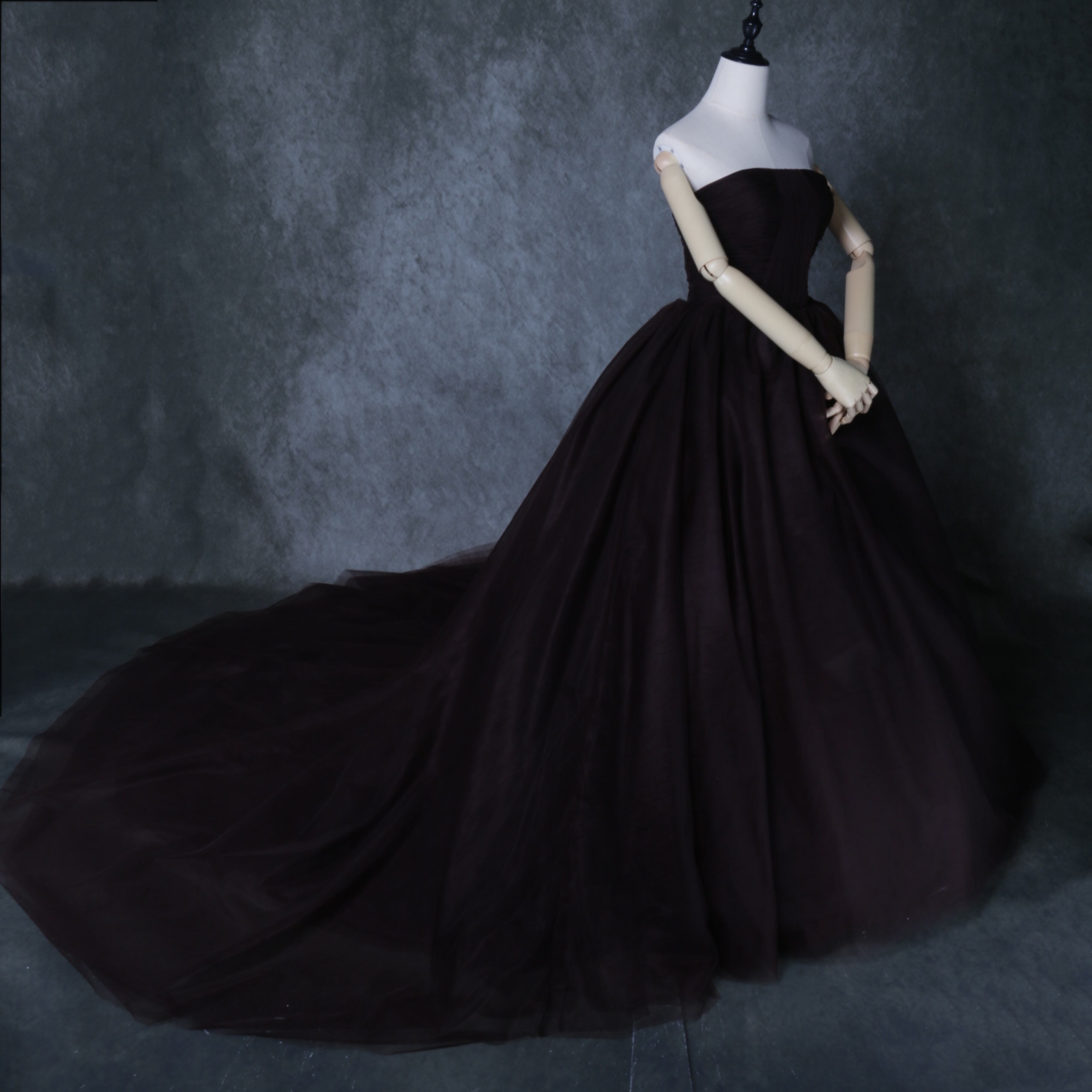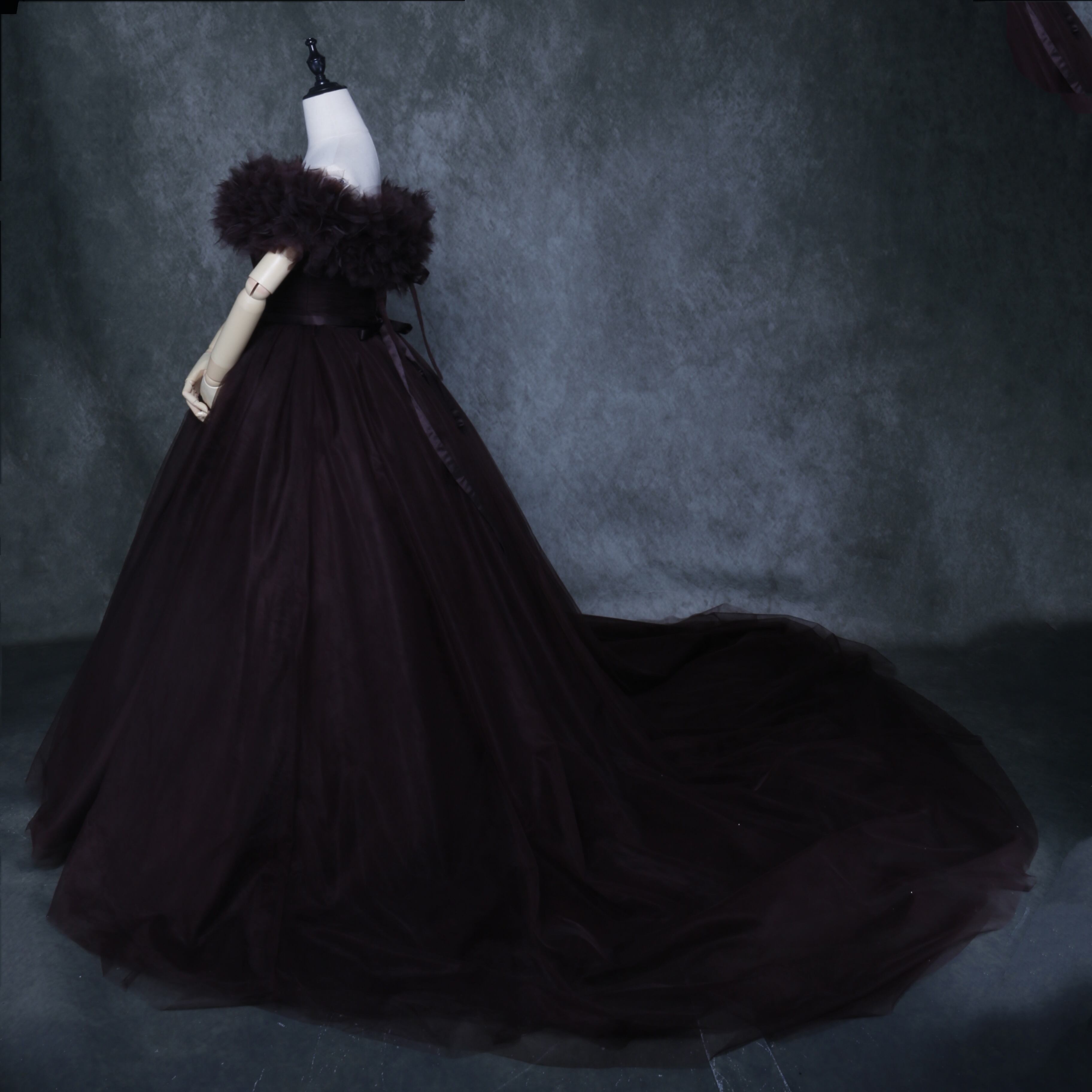 送料無料! 輝きな光彩を放つ コーヒーの色 取り外しオフショルダーカラードレス 華やかなトレーン 結婚式/