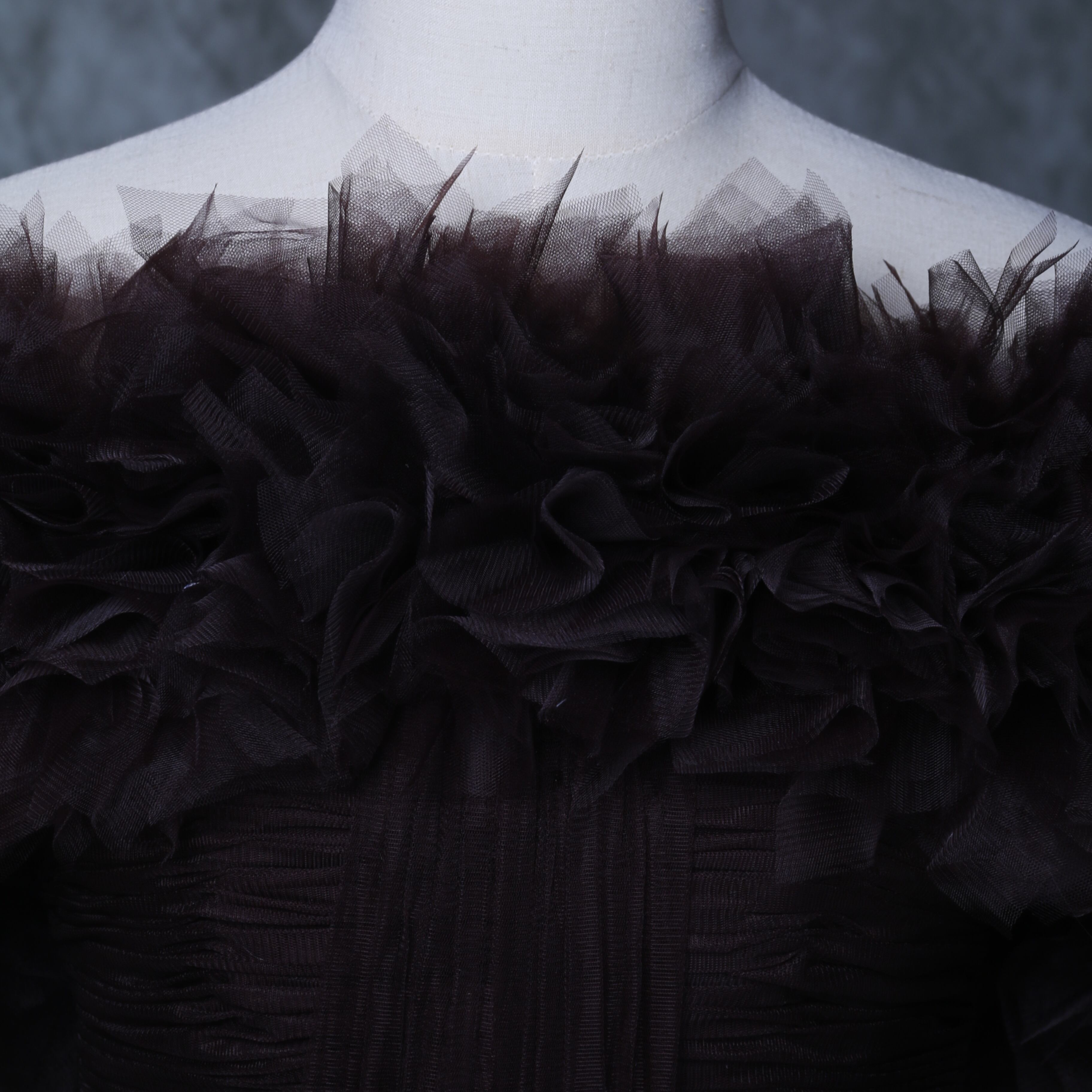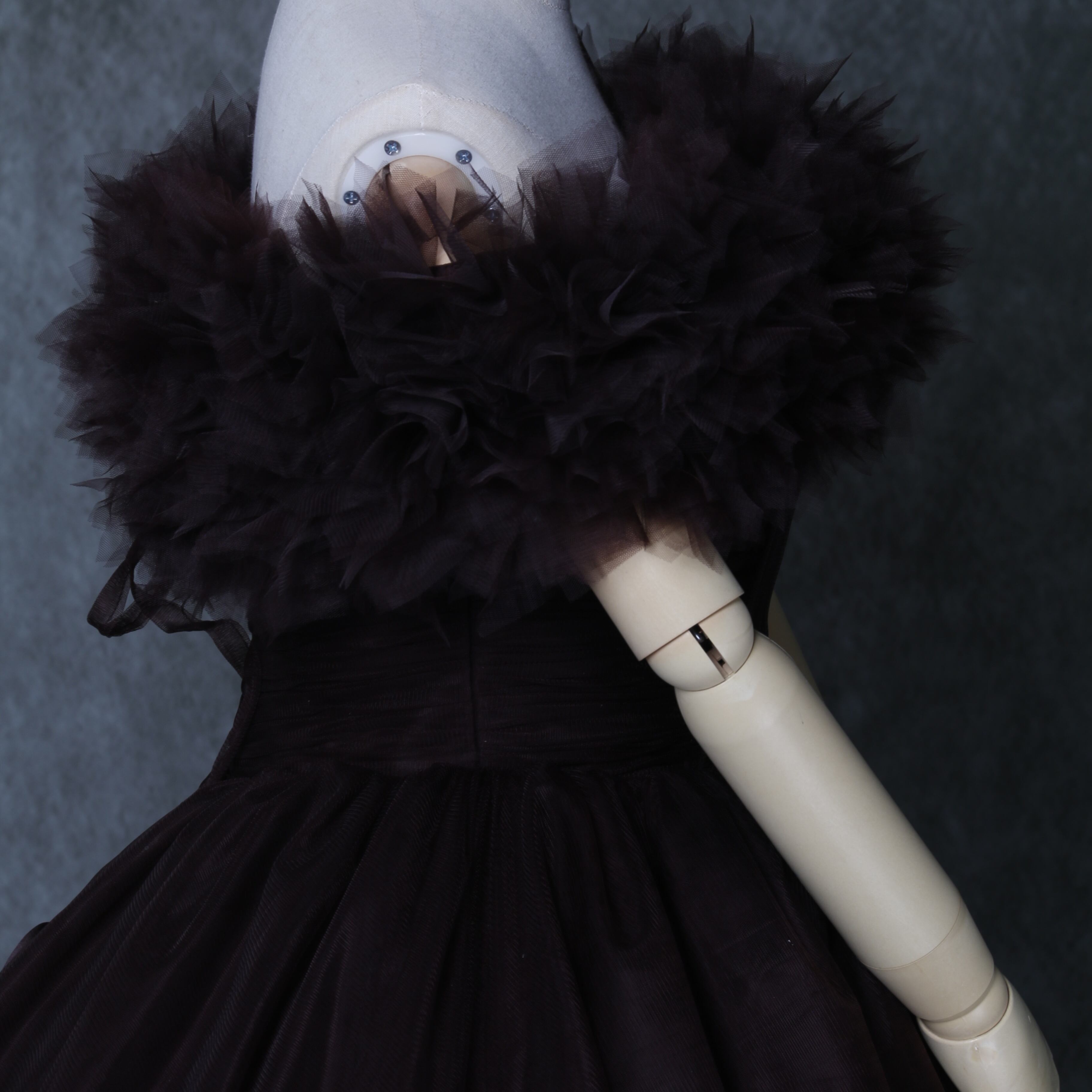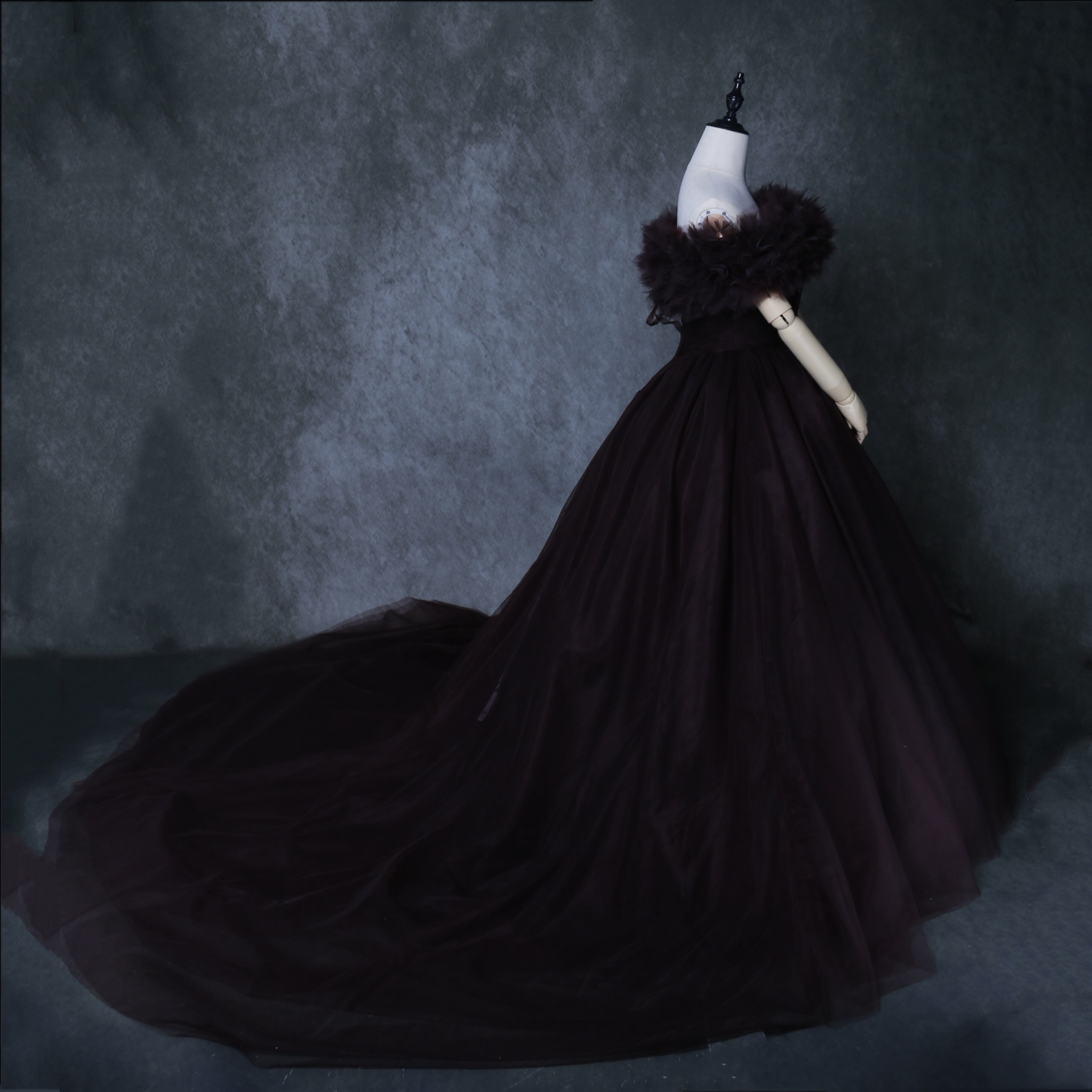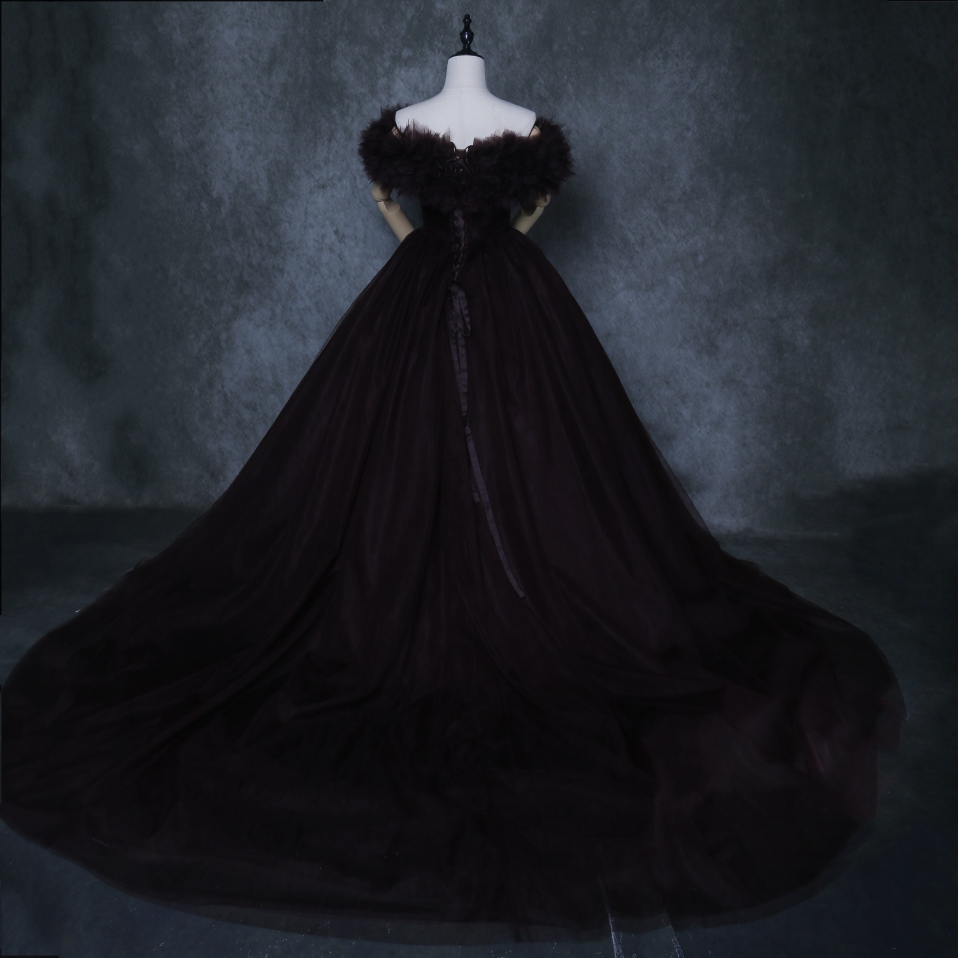 送料無料! 輝きな光彩を放つ コーヒーの色 取り外しオフショルダーカラードレス 華やかなトレーン 結婚式/