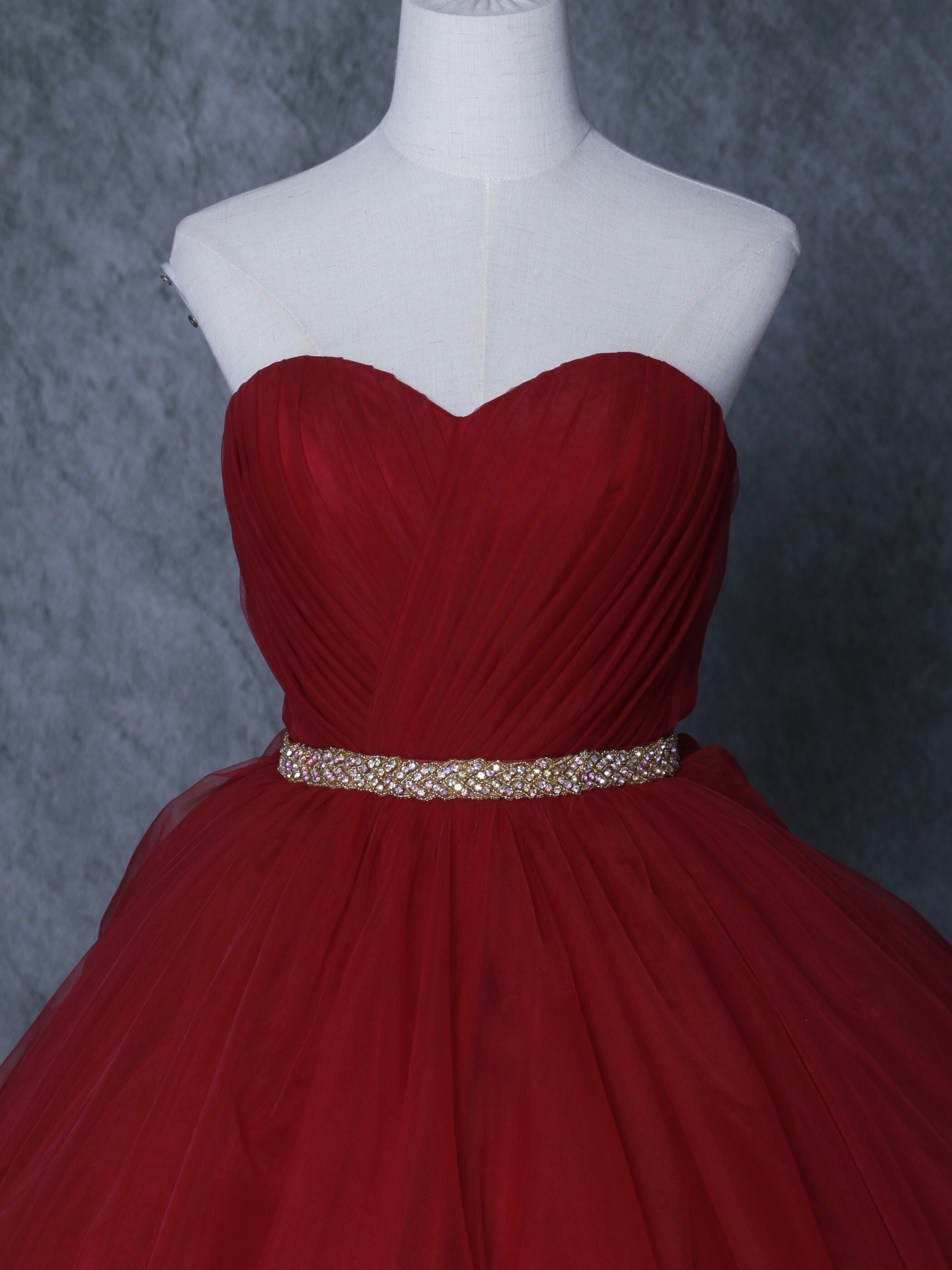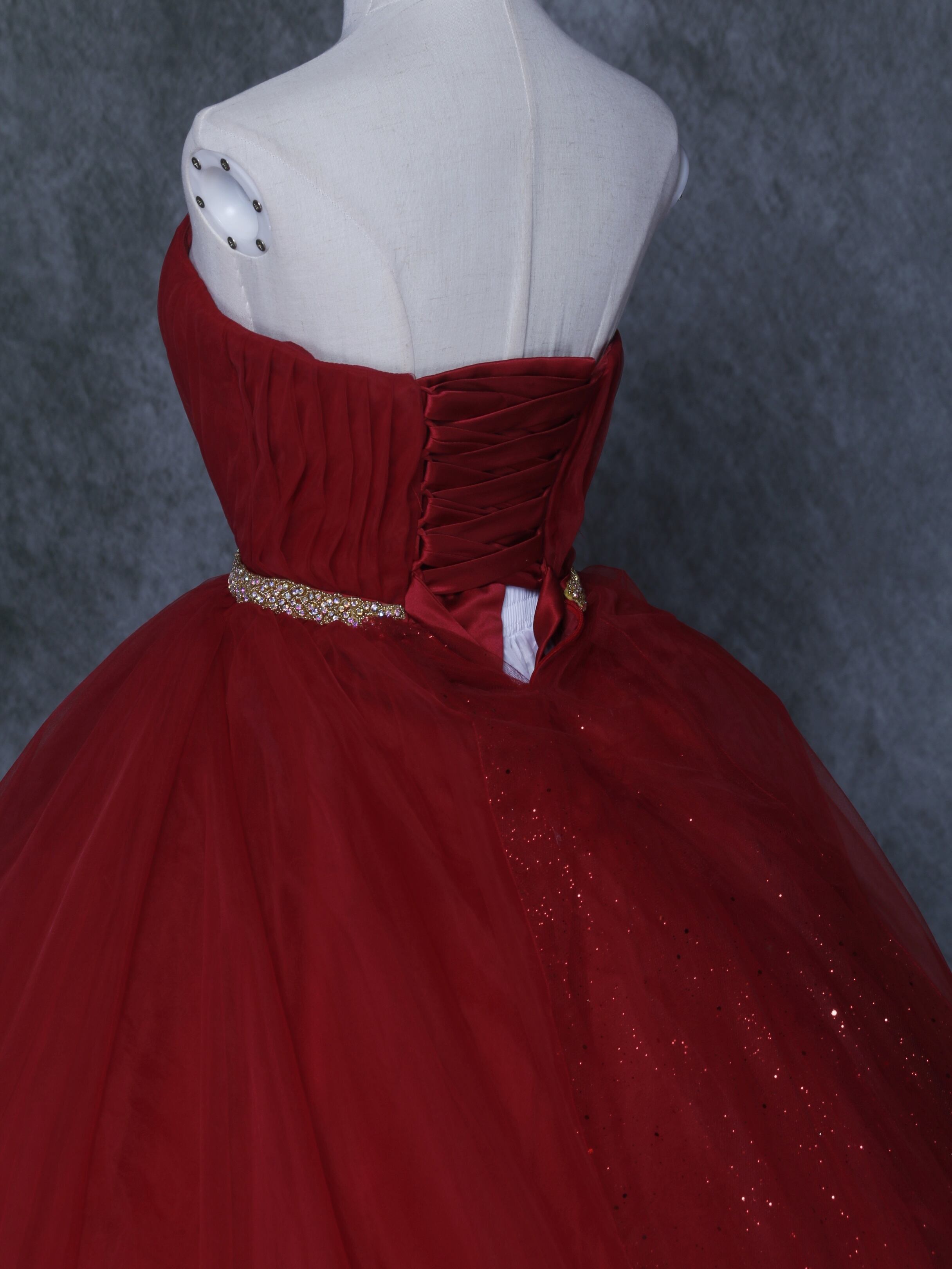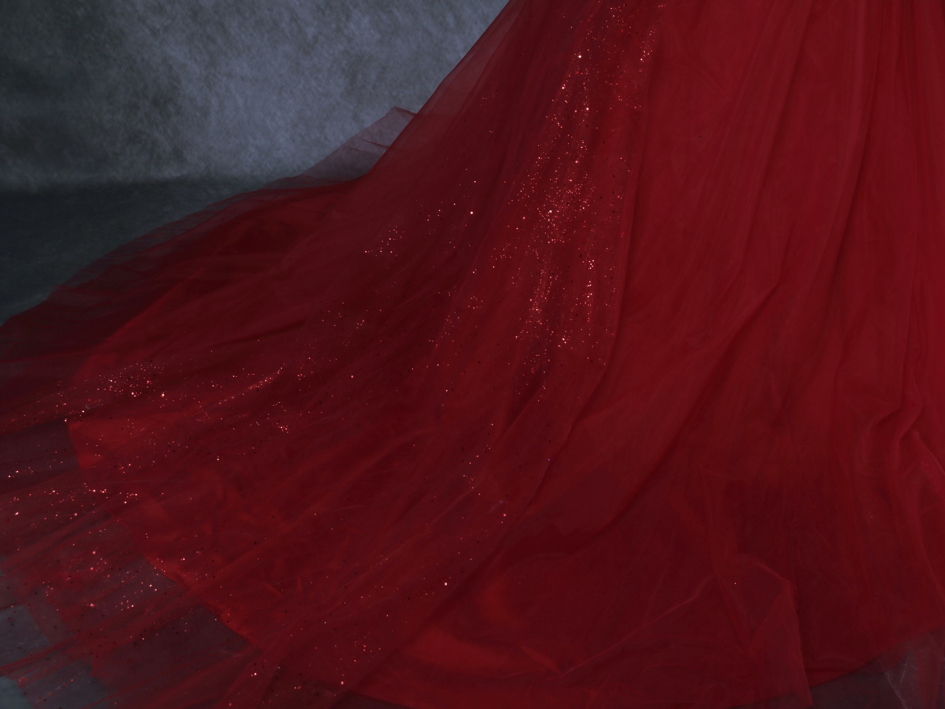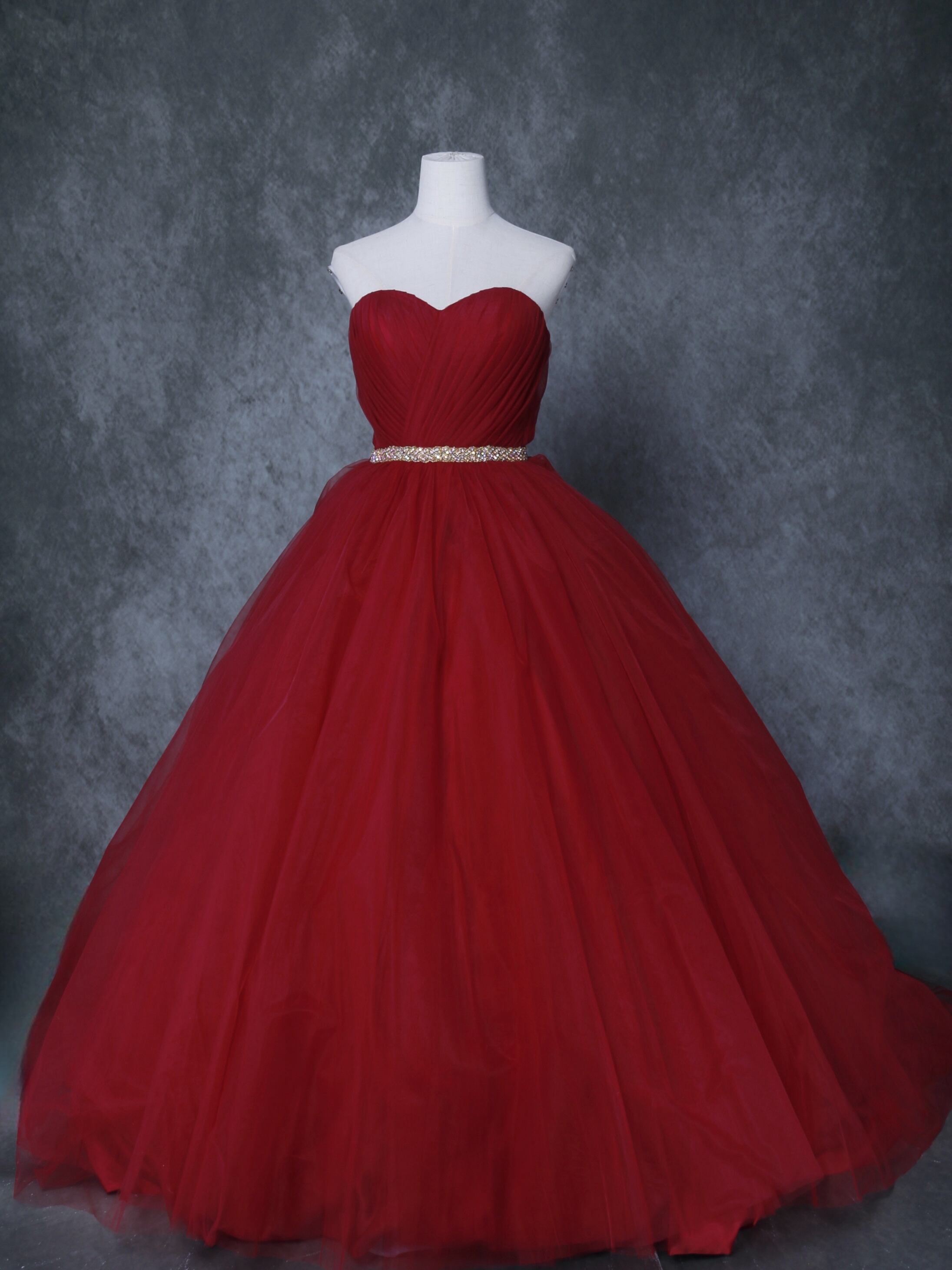 送料無料! 輝きな光彩を放つ 赤 キラキラグリッターチュール カラードレス 華やかなトレーン 結婚式/