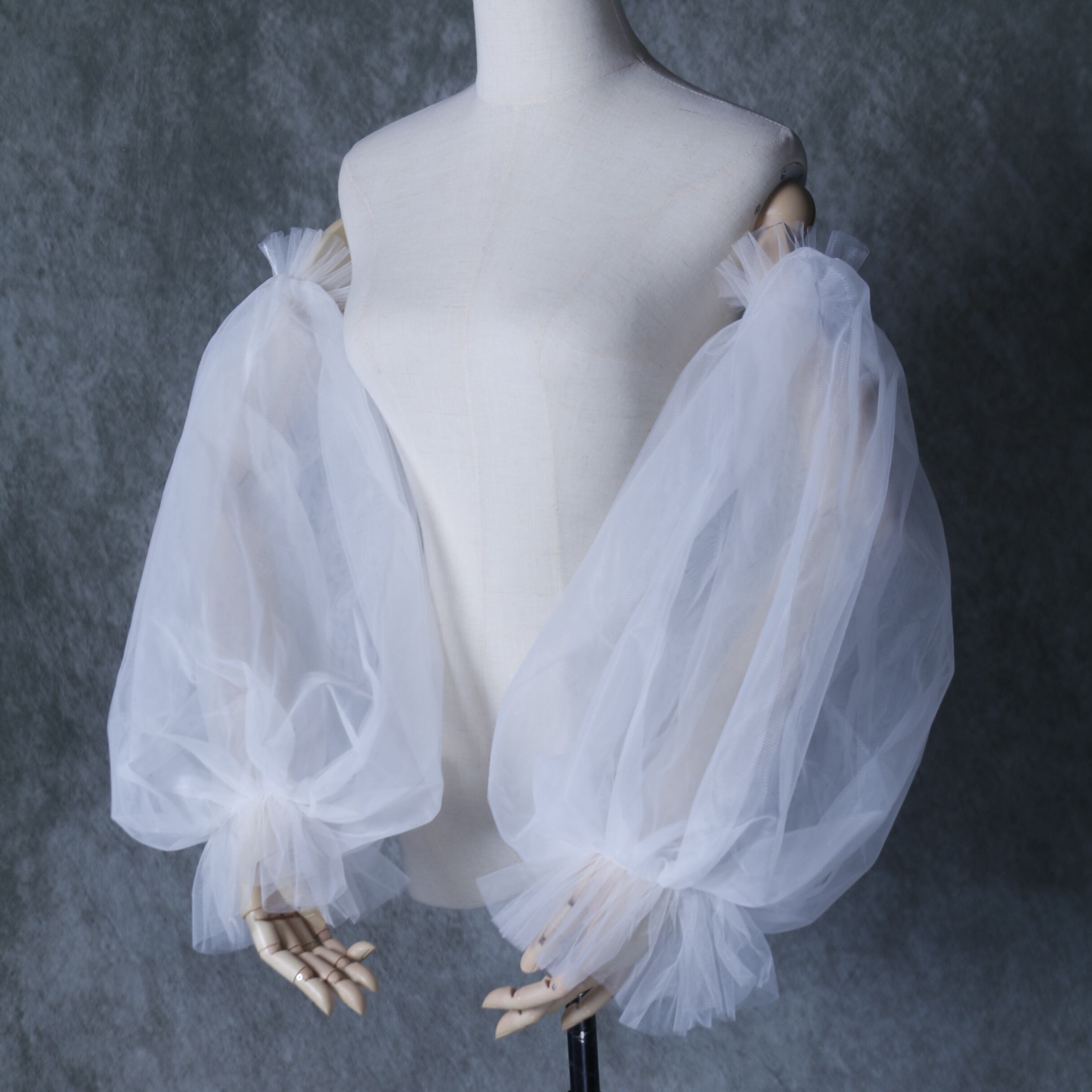 七分袖丈 取り外し袖 ホワイト ショルダーの付け袖 パフスリーブ オーダー可能 二の腕を隠せるお袖