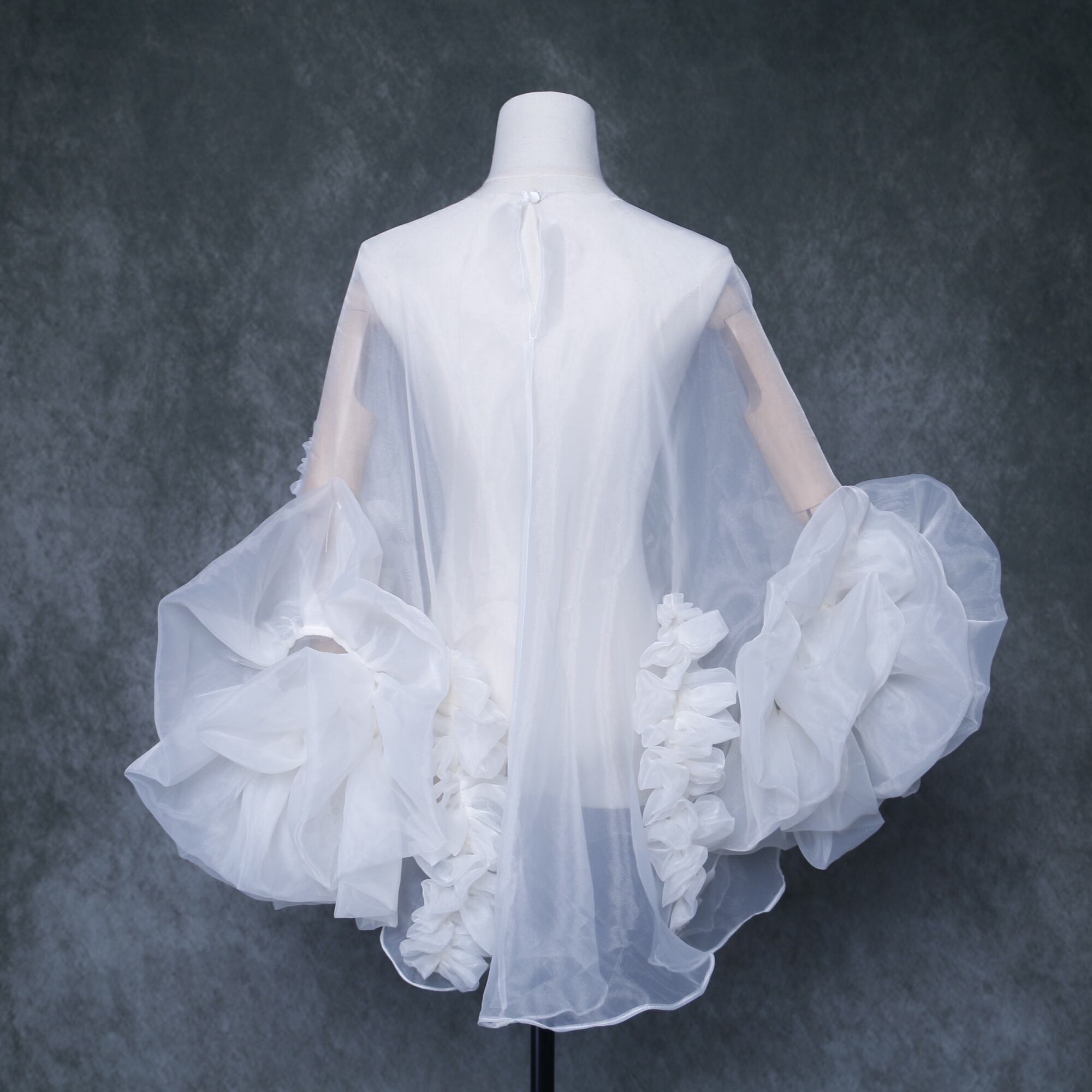 送料無料! アイボリー 上質オーガンジー トップス サイズオーダー可能