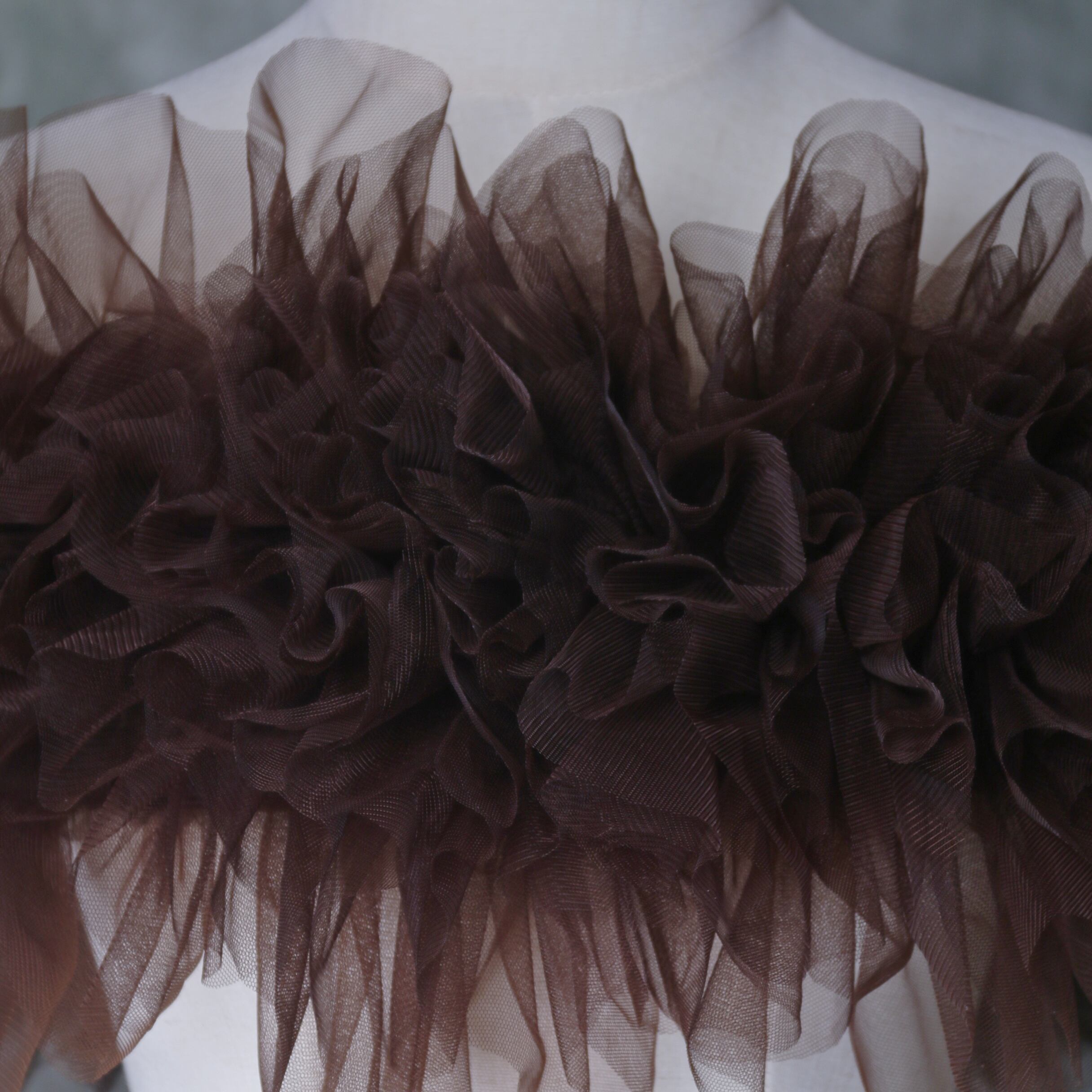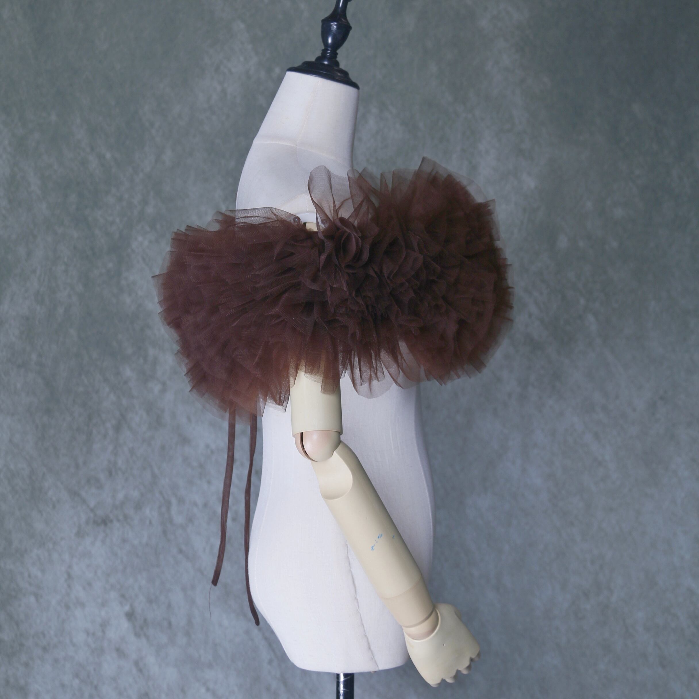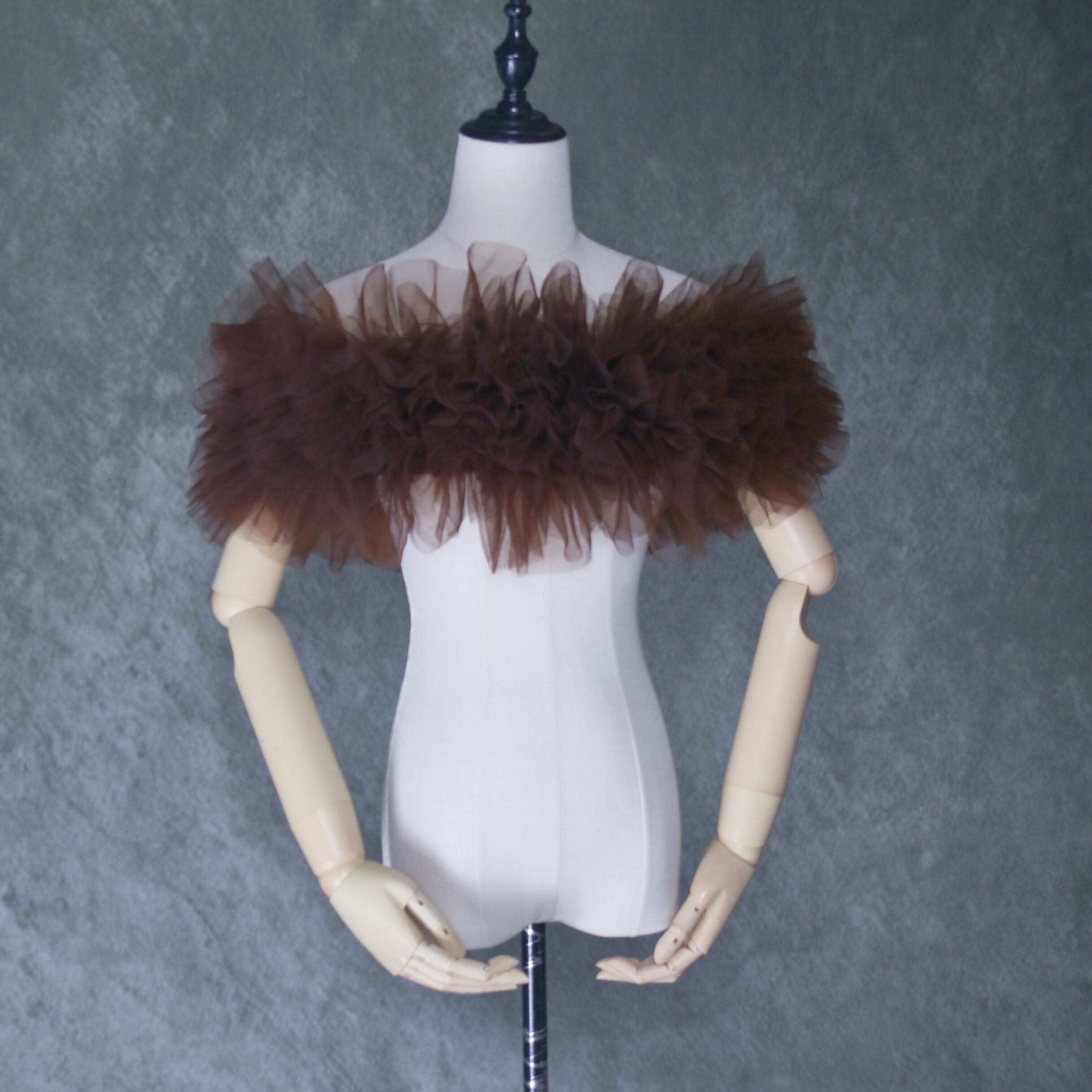 送料無料! テラコッタ色 ポンチョ ソフトチュール ラッフルフリル  取り外しオフショルダー
