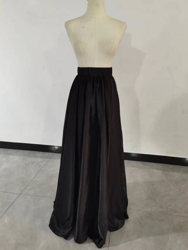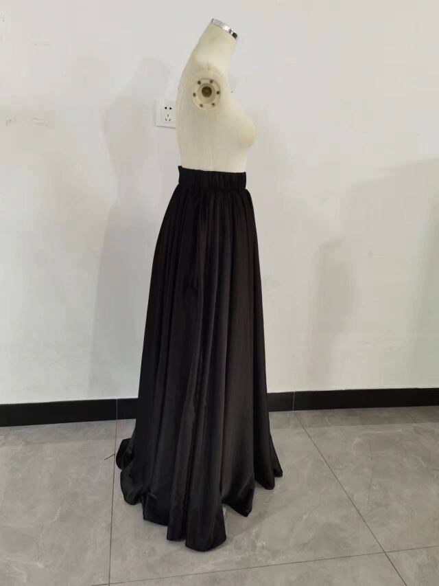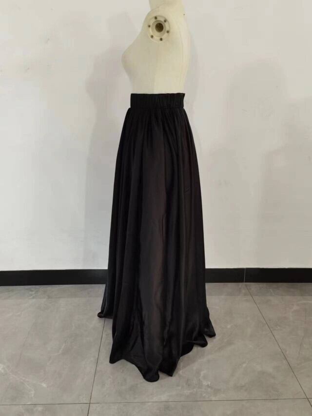 送料無料! 細見えシルエット 黒 床付く プリーツスカート 二次会/前撮り/花嫁