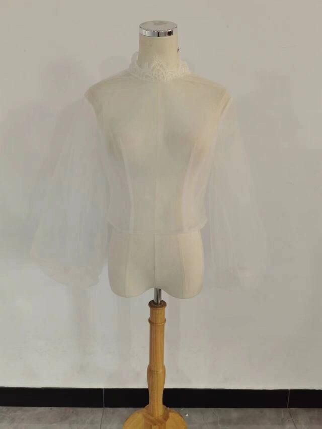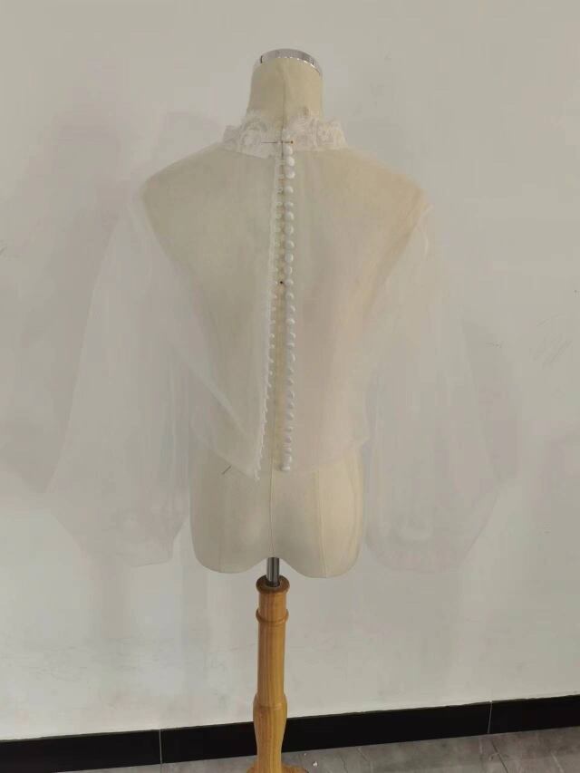 可愛い ウエディングドレス ハイネック ふわふわ袖 エレガントレース ップス / 前撮り/花嫁