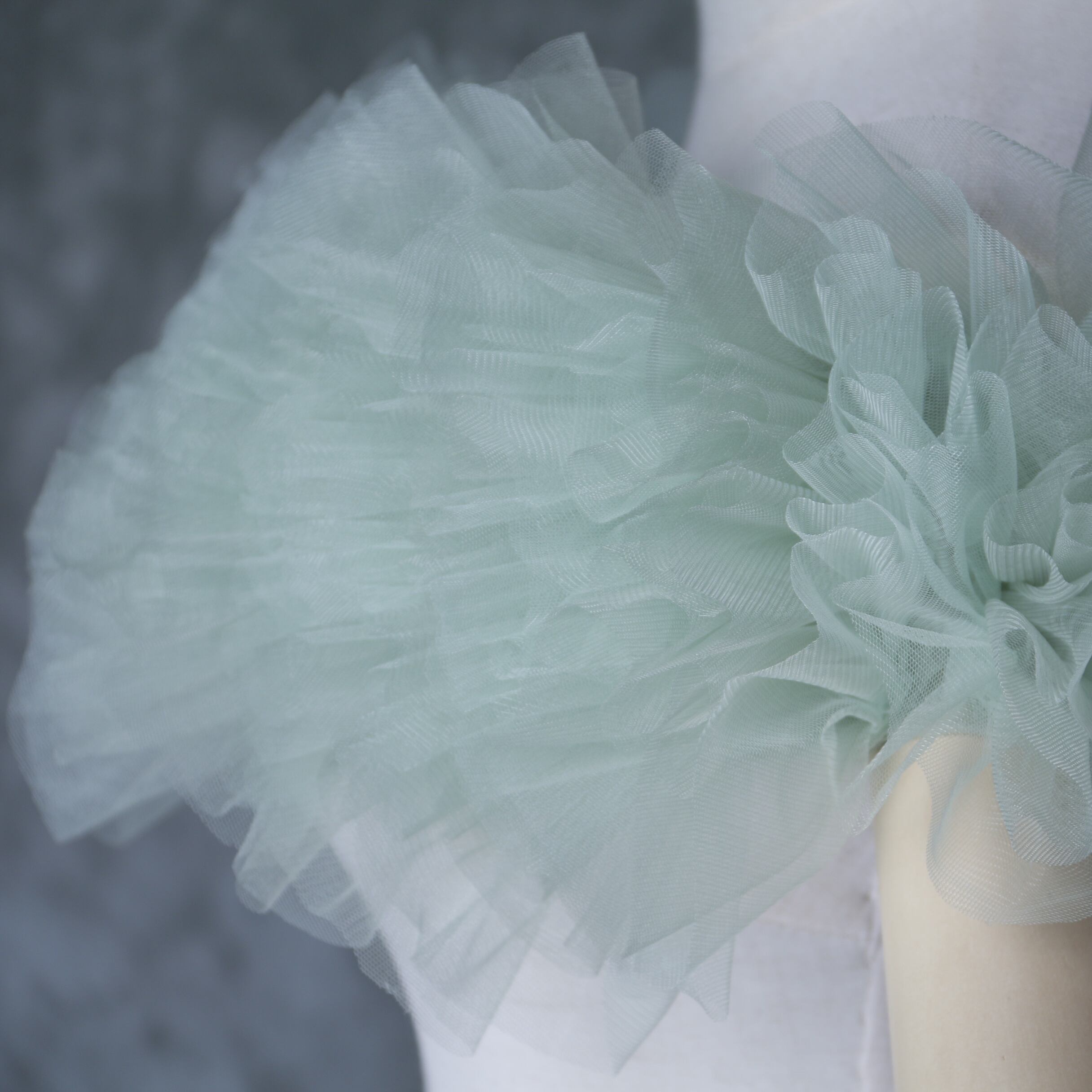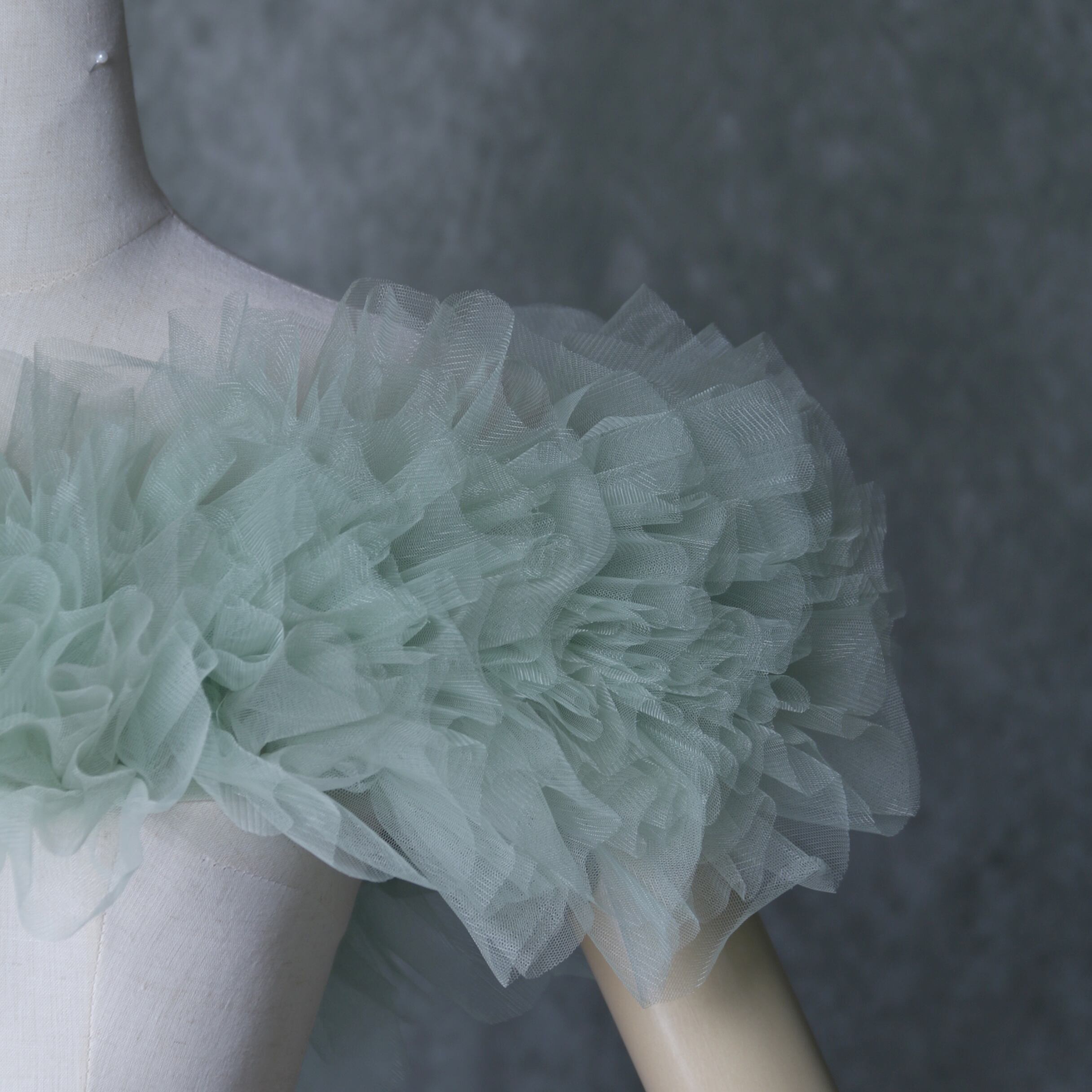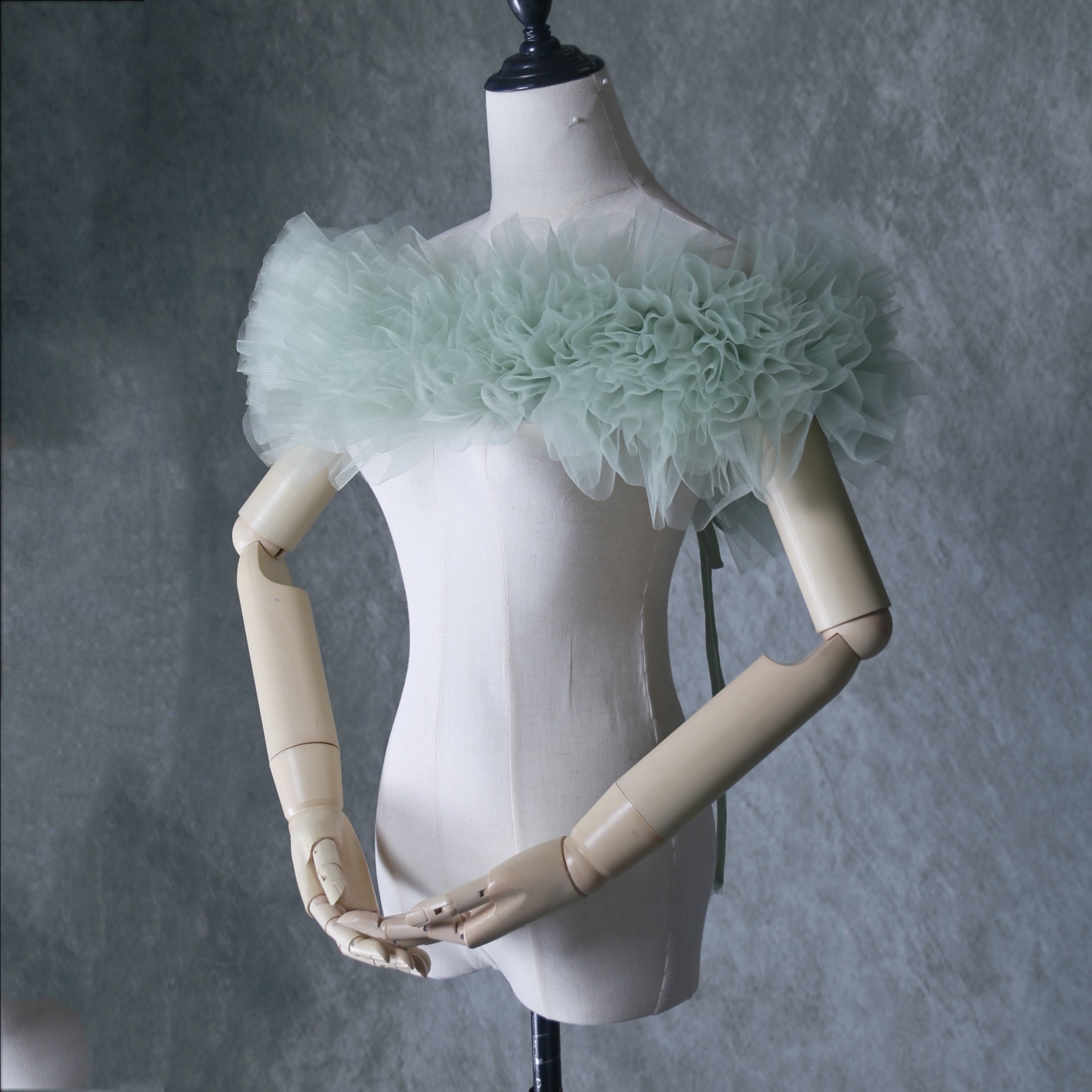 送料無料!グリーン ポンチョ ソフトチュール ラッフルフリル  取り外しオフショルダー