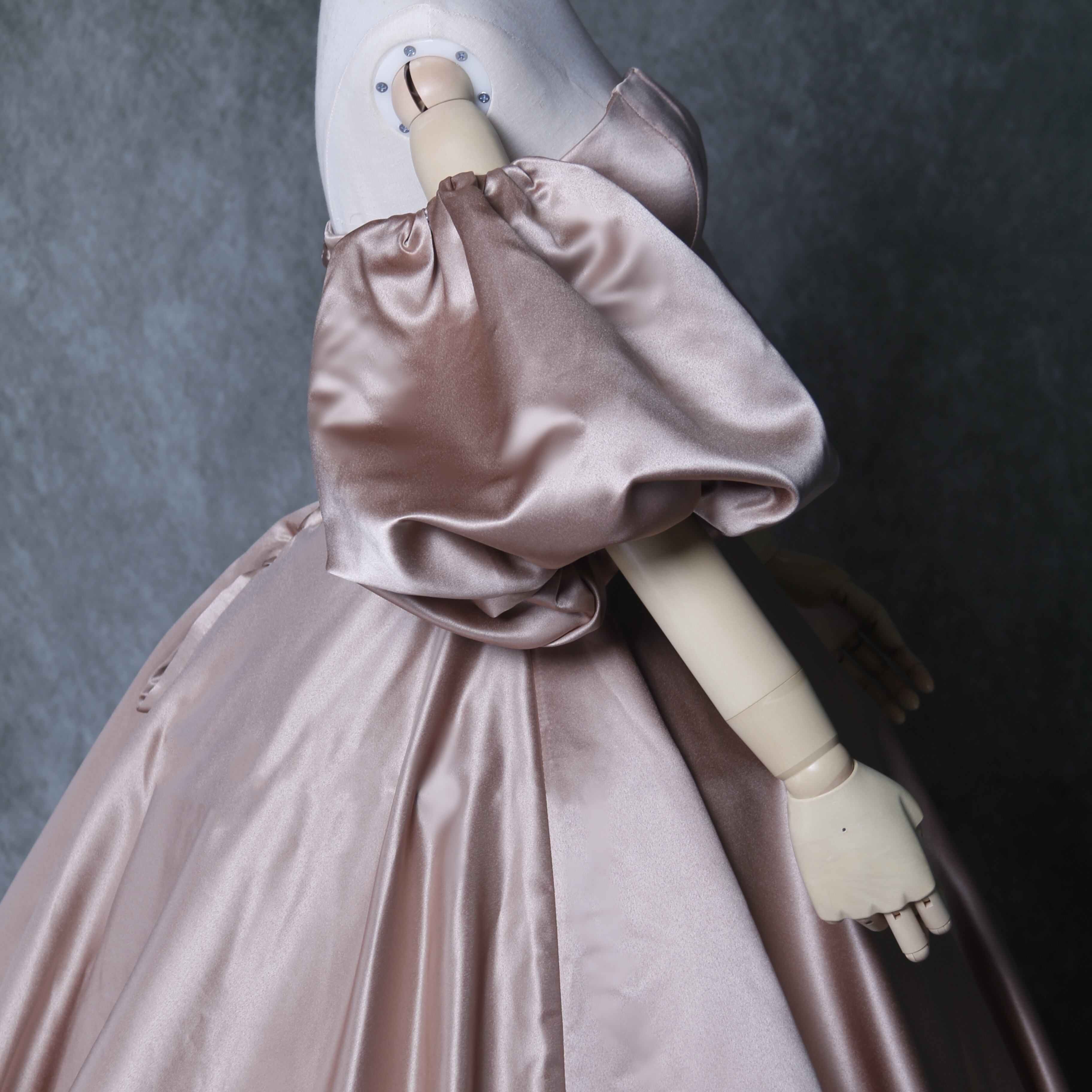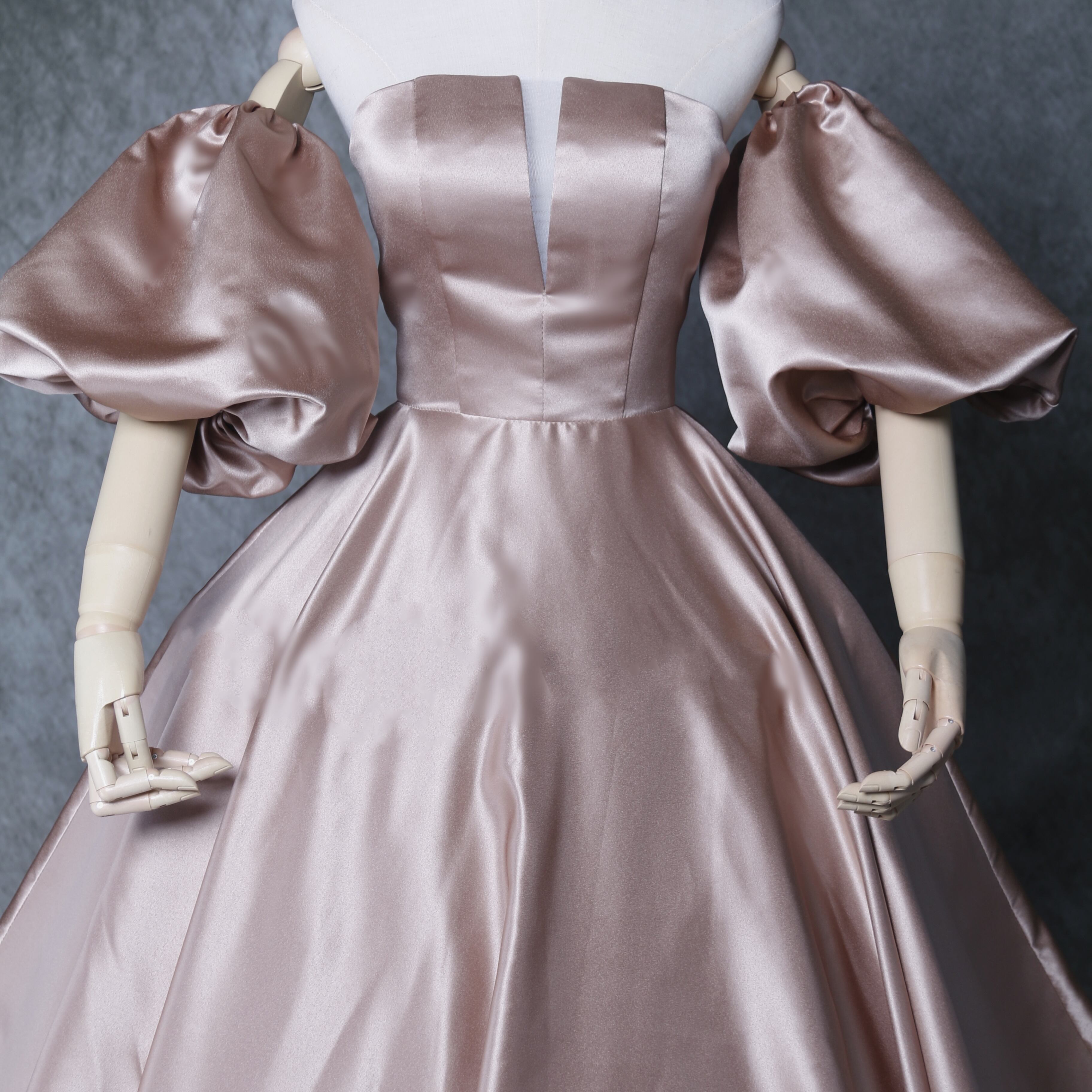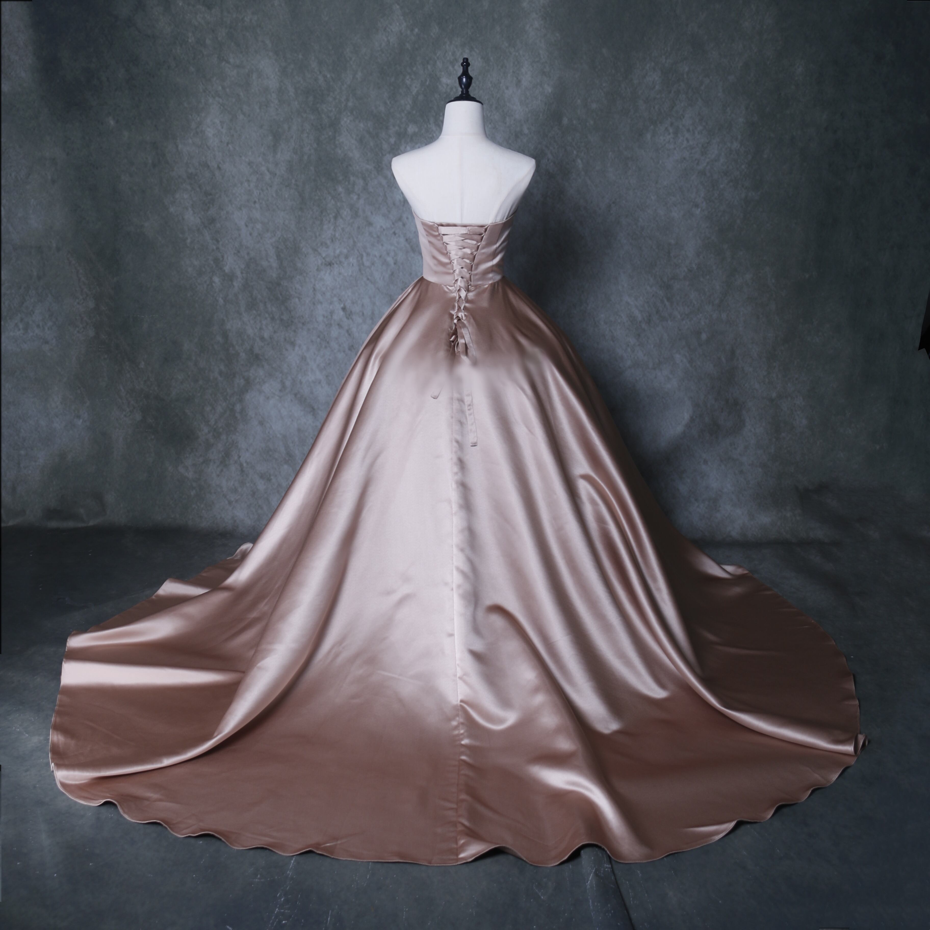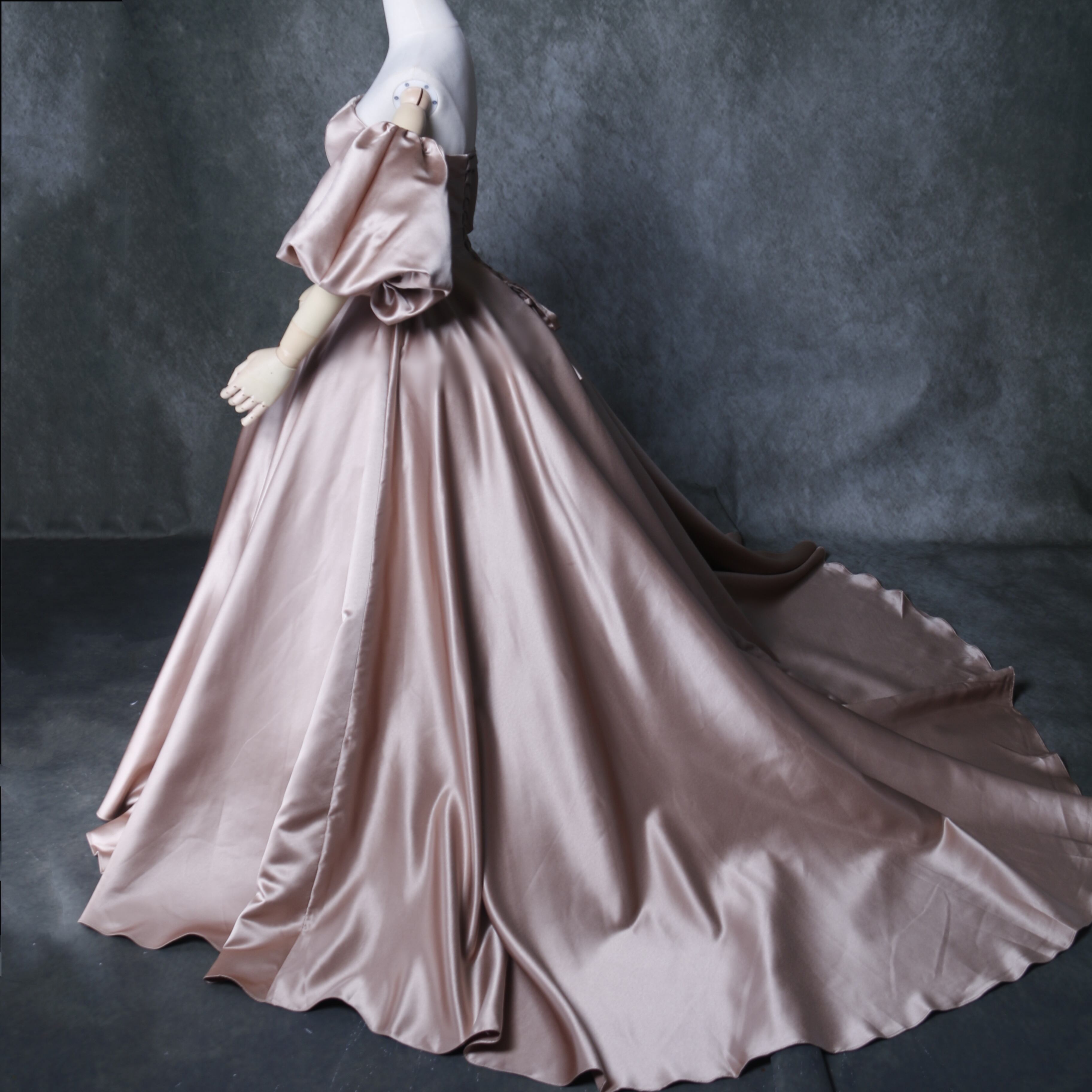 送料無料! 華やか カーキ色 カラードレス パフスリーブ 華やかなトレーン 結婚式/花嫁