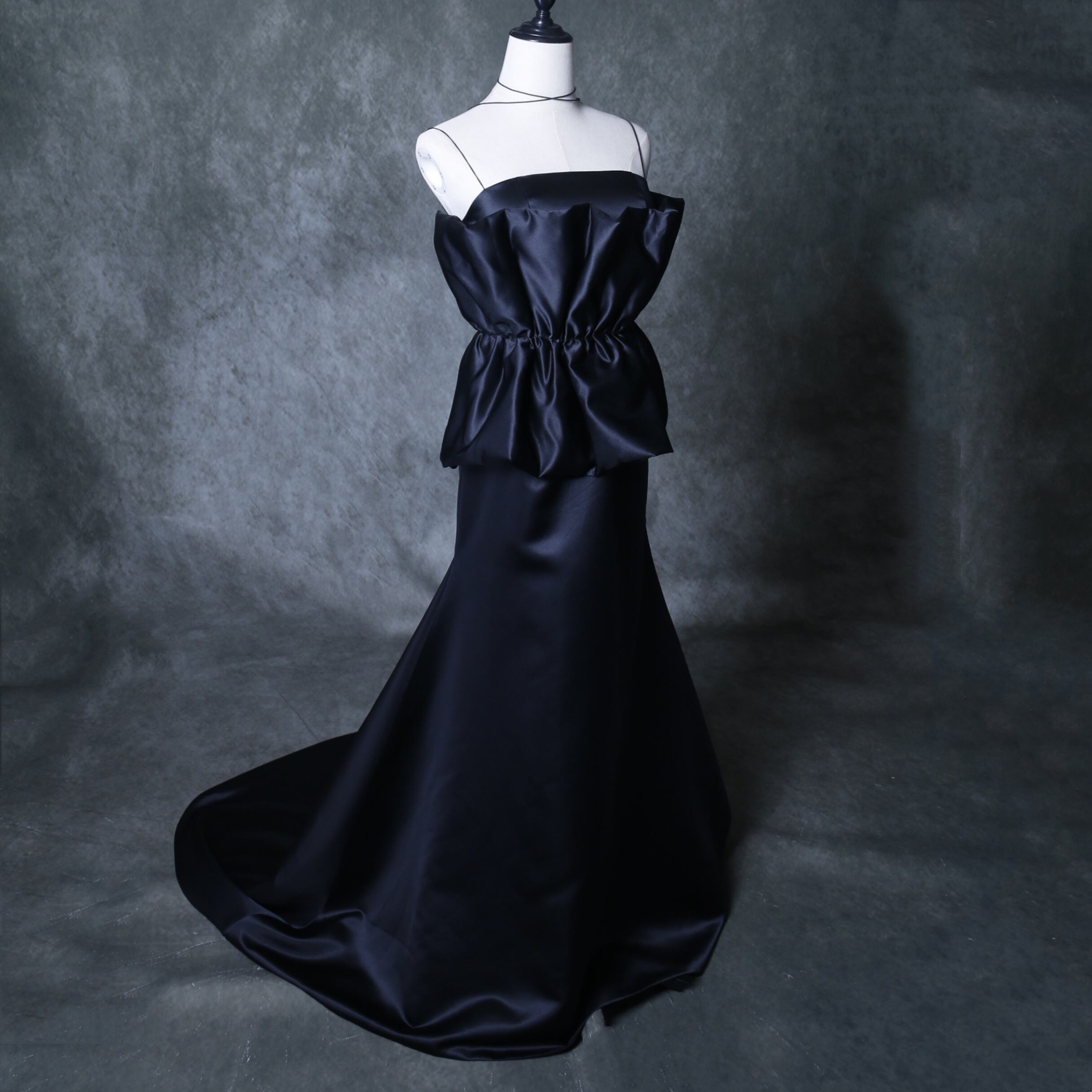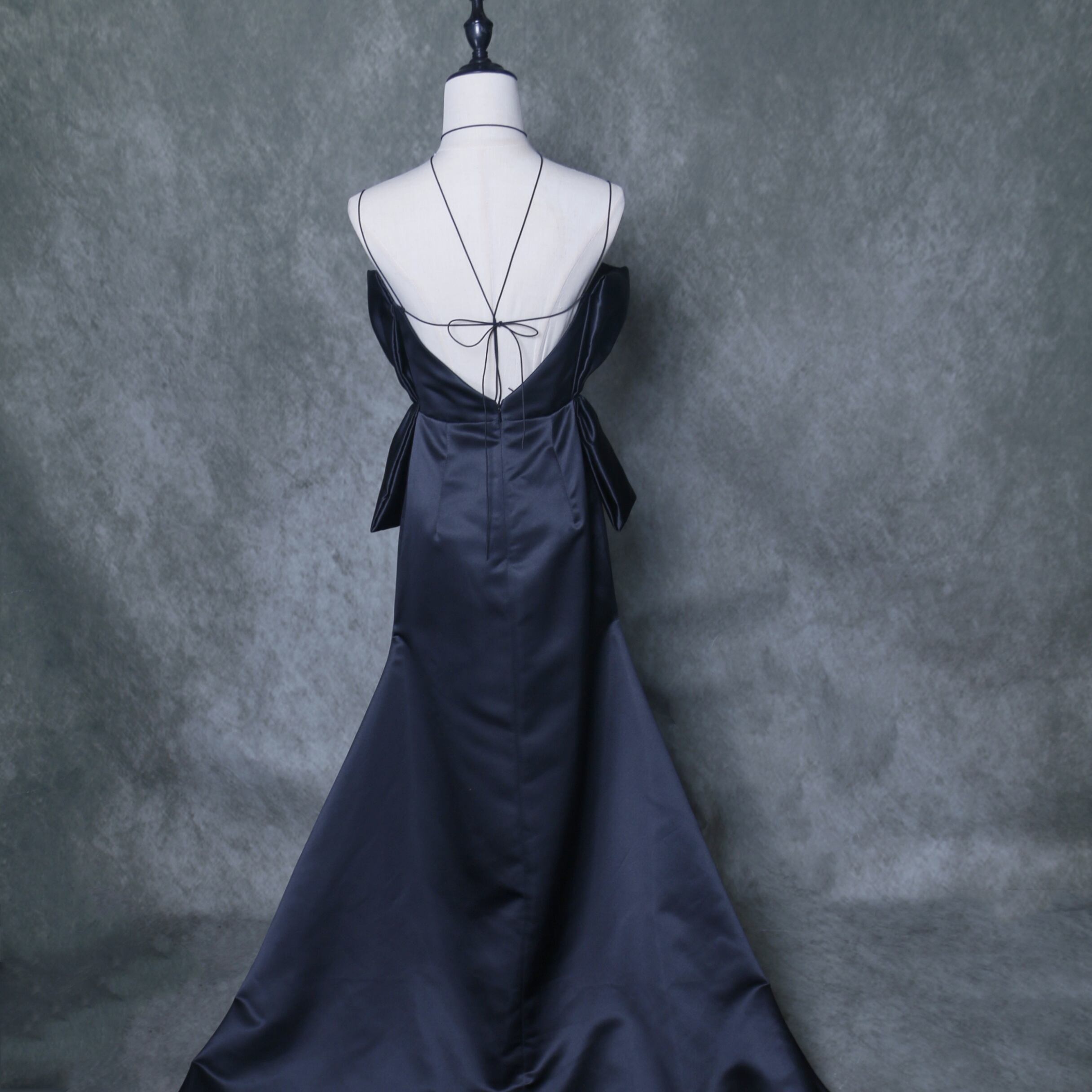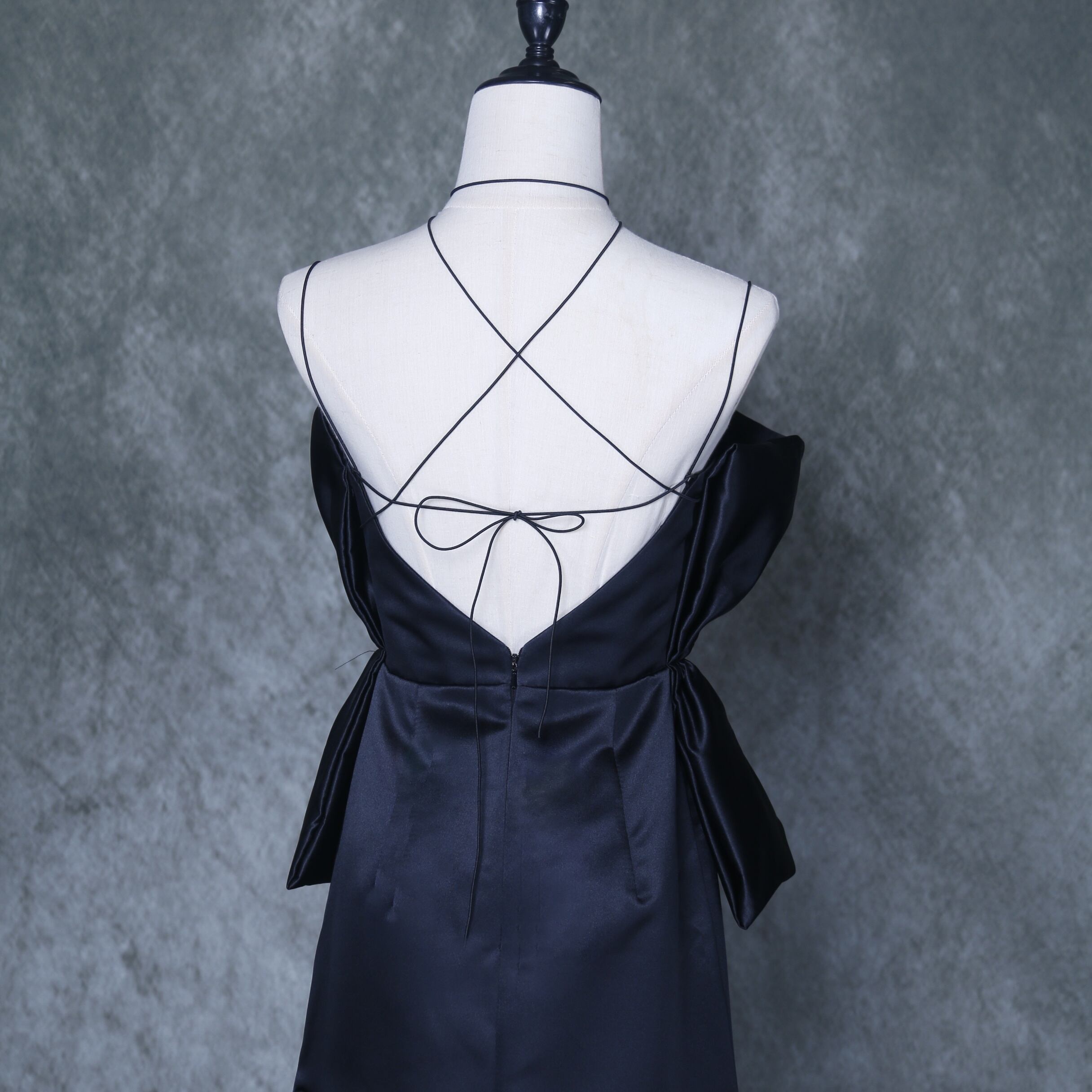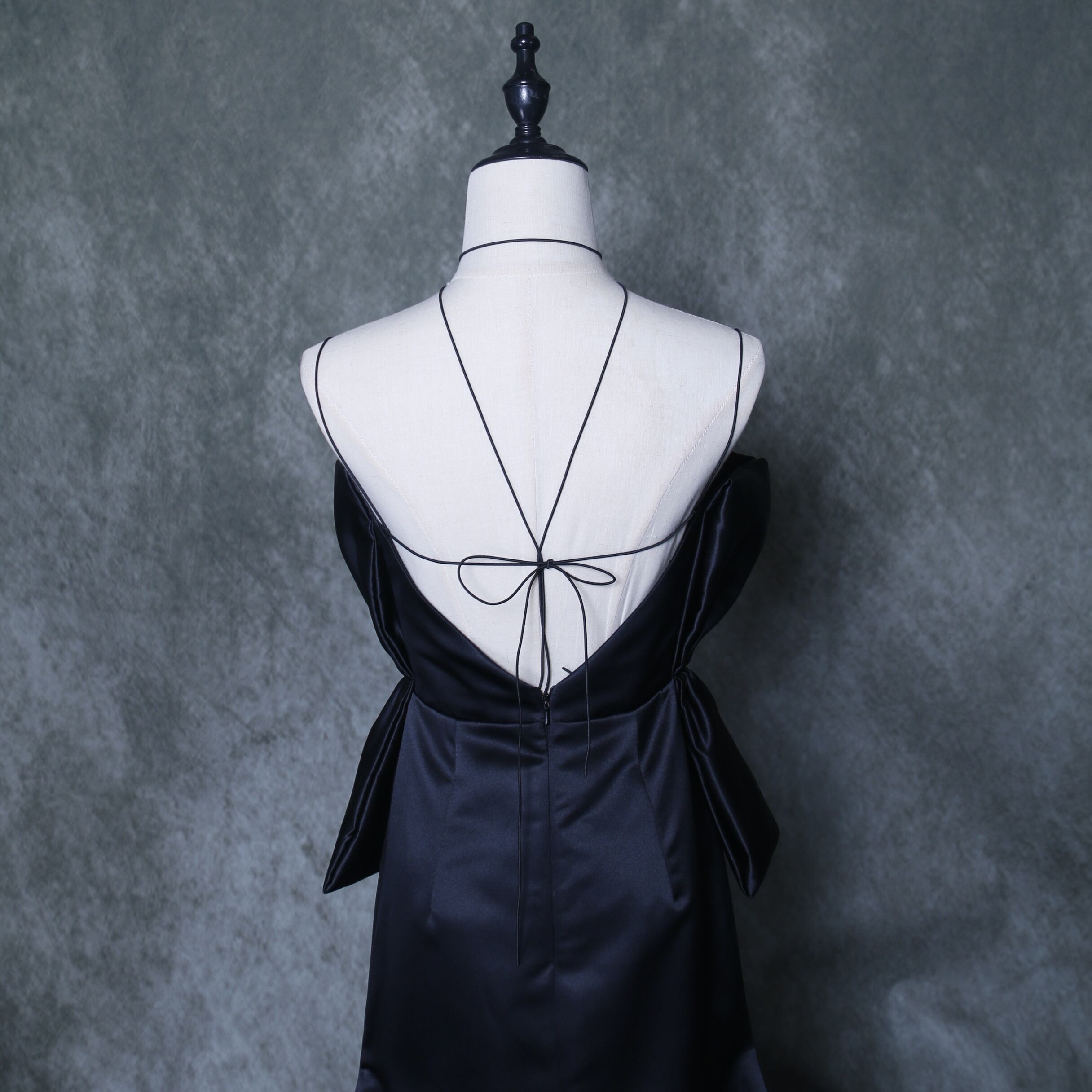 送料無料!ブラックキャミソールパーティードレス 背中見せ セクシー 短トレーン演奏会/音楽会/発表会