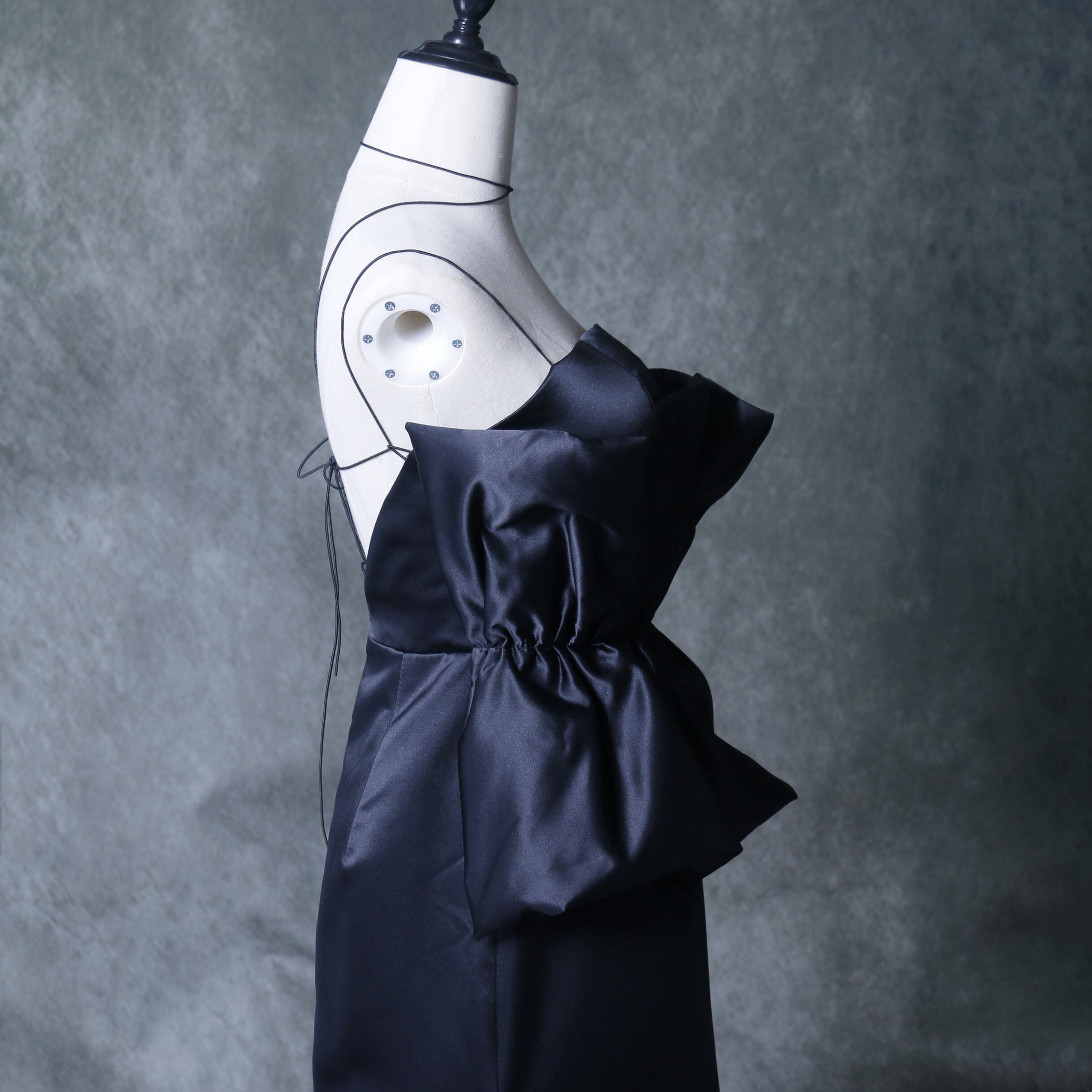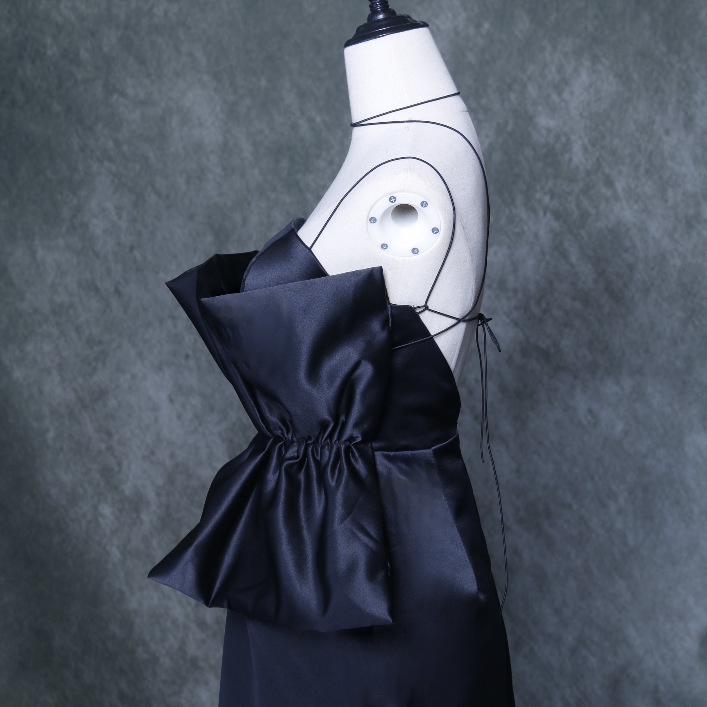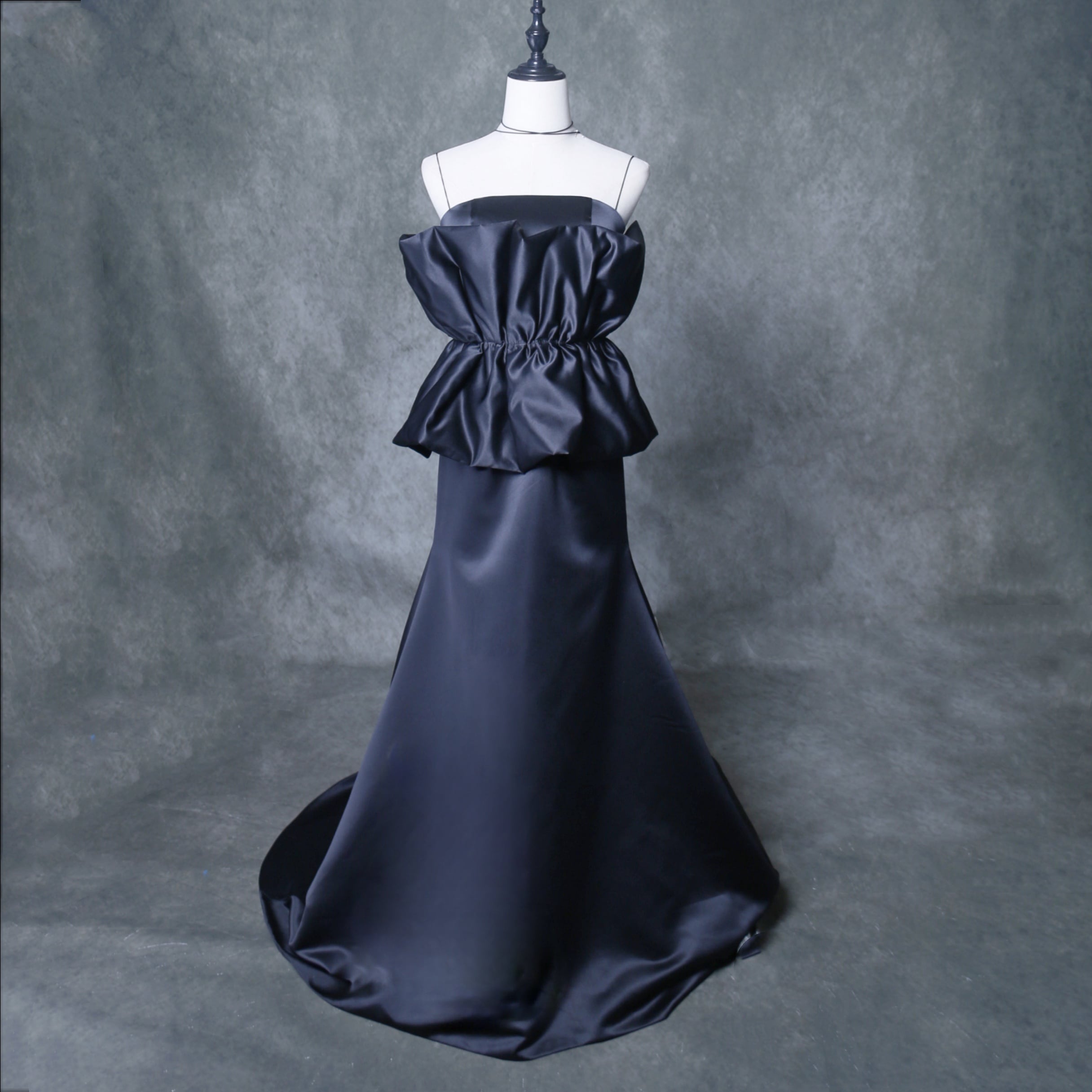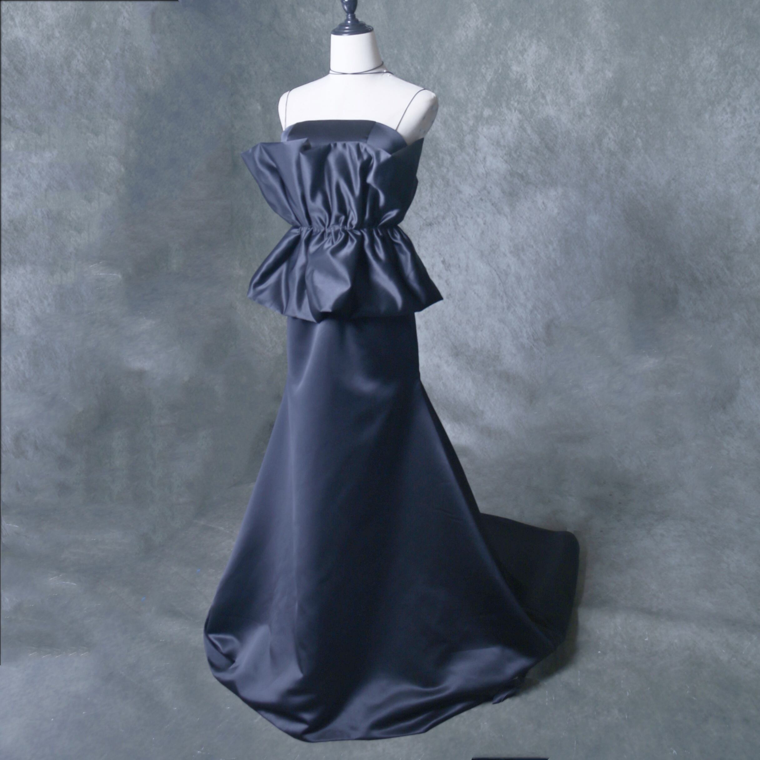 送料無料!ブラックキャミソールパーティードレス 背中見せ セクシー 短トレーン演奏会/音楽会/発表会