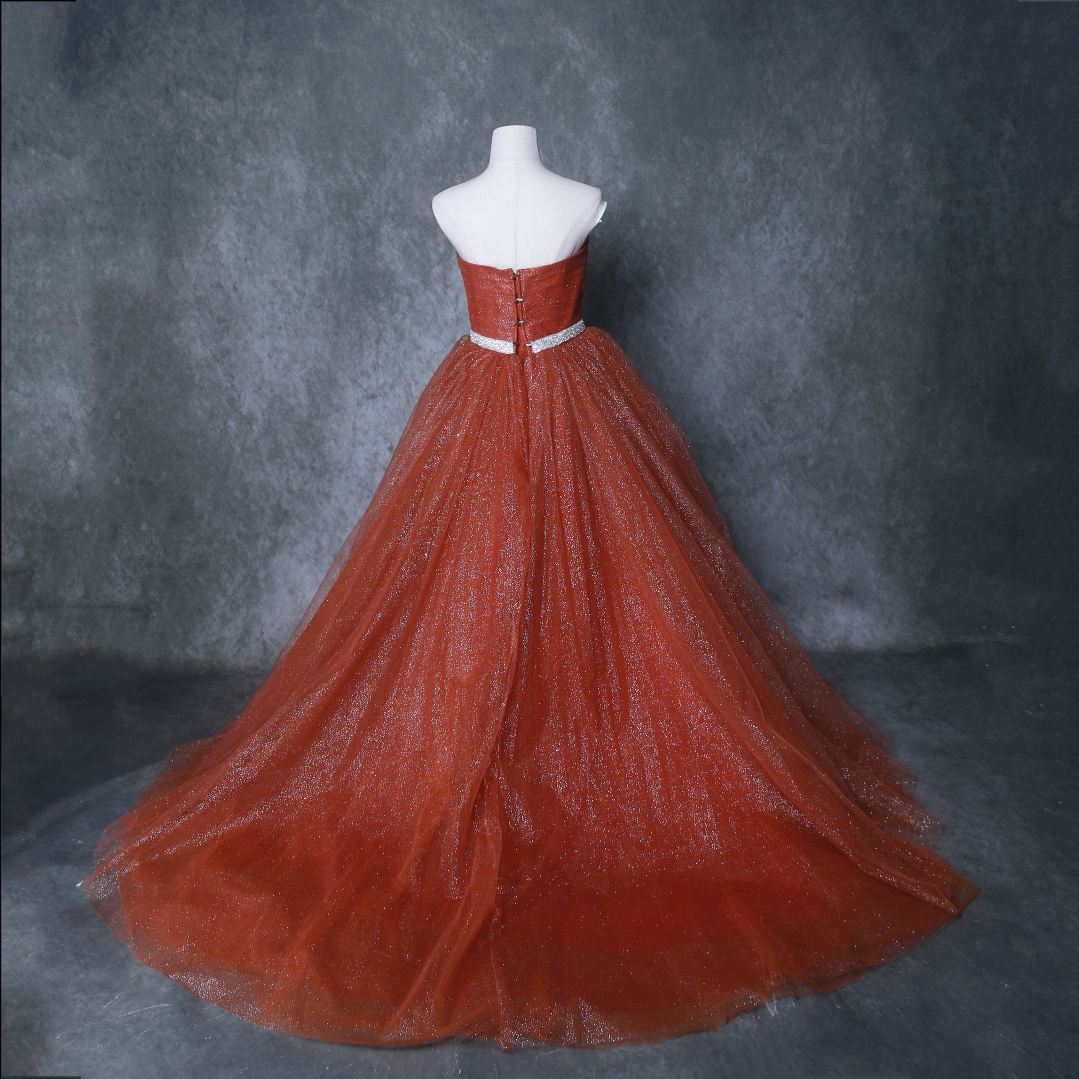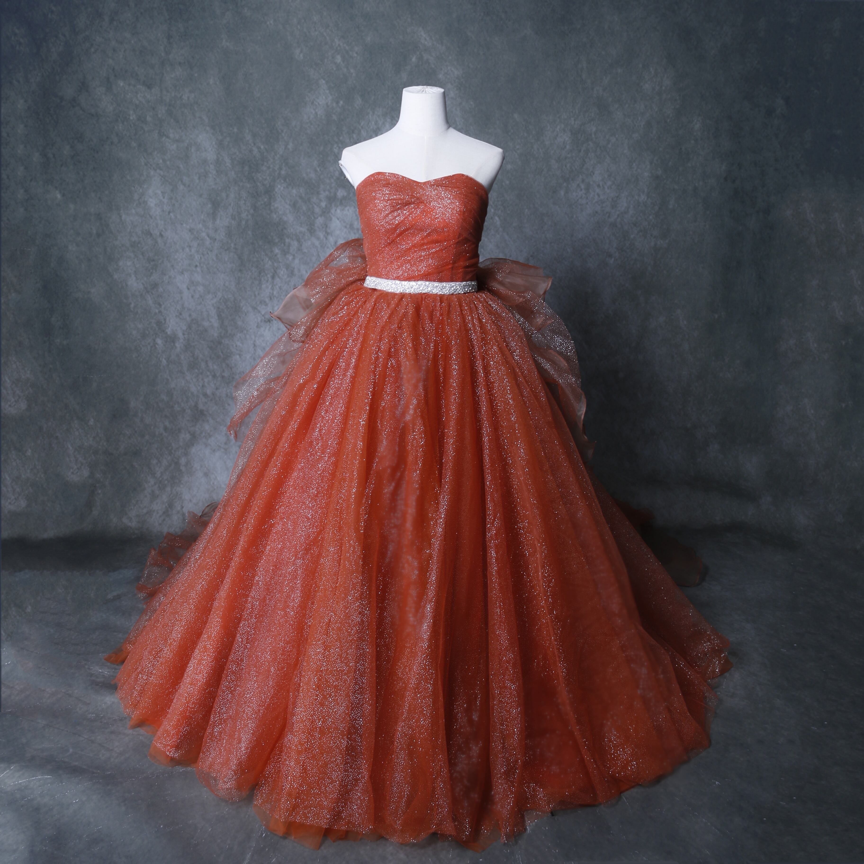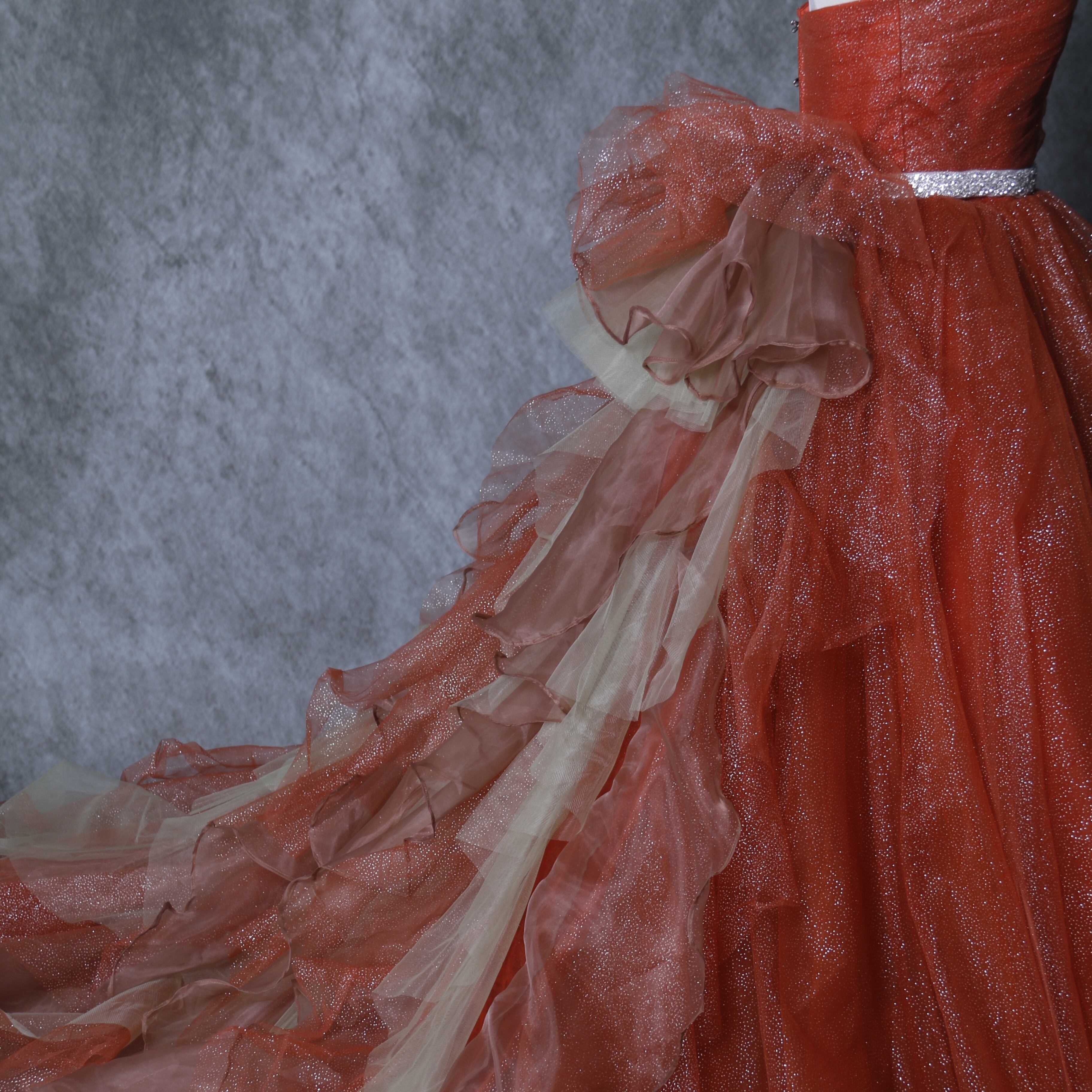 送料無料! 輝きな光彩を放つ キラキラグリッターチュール カラードレス 華やかなトレーン 結婚式/