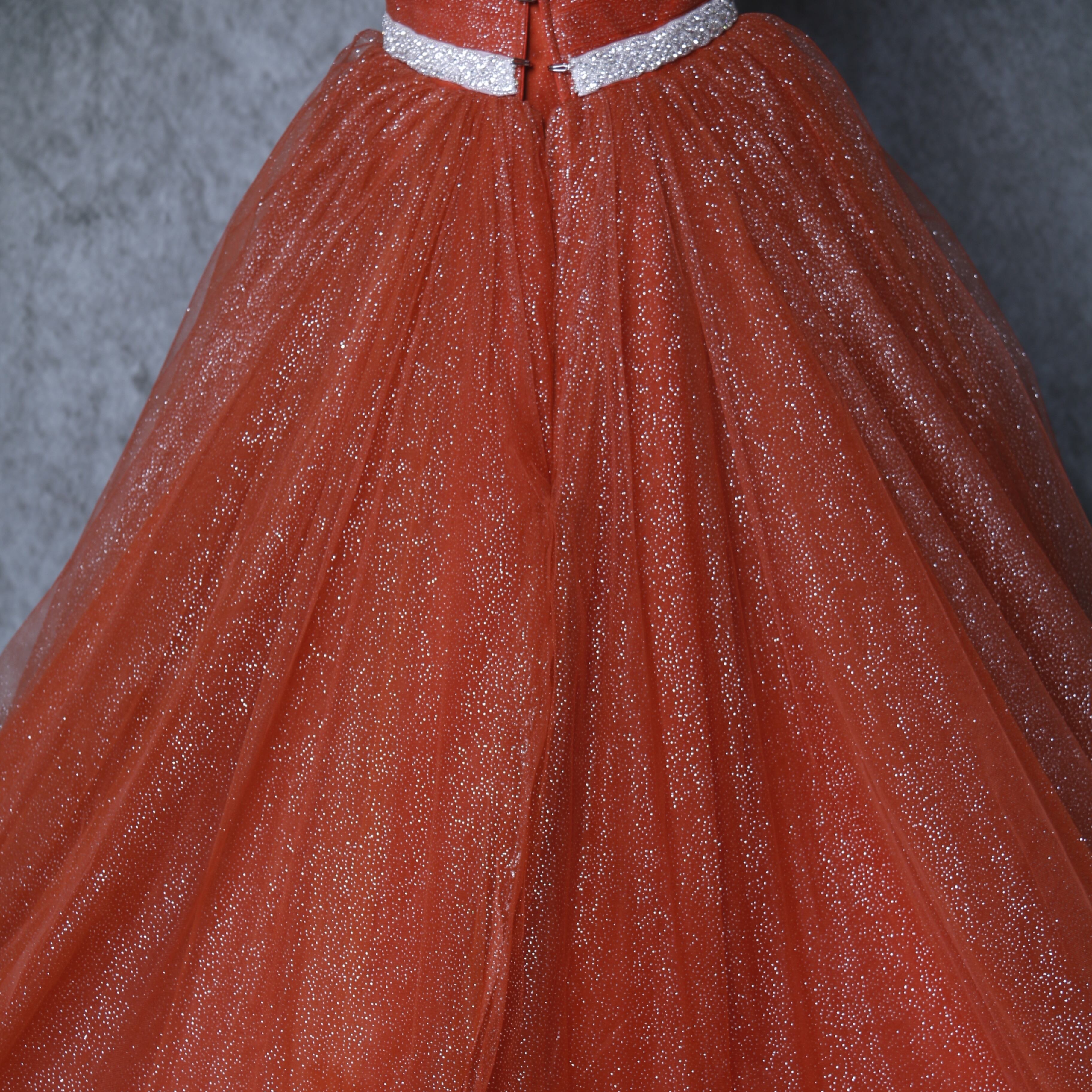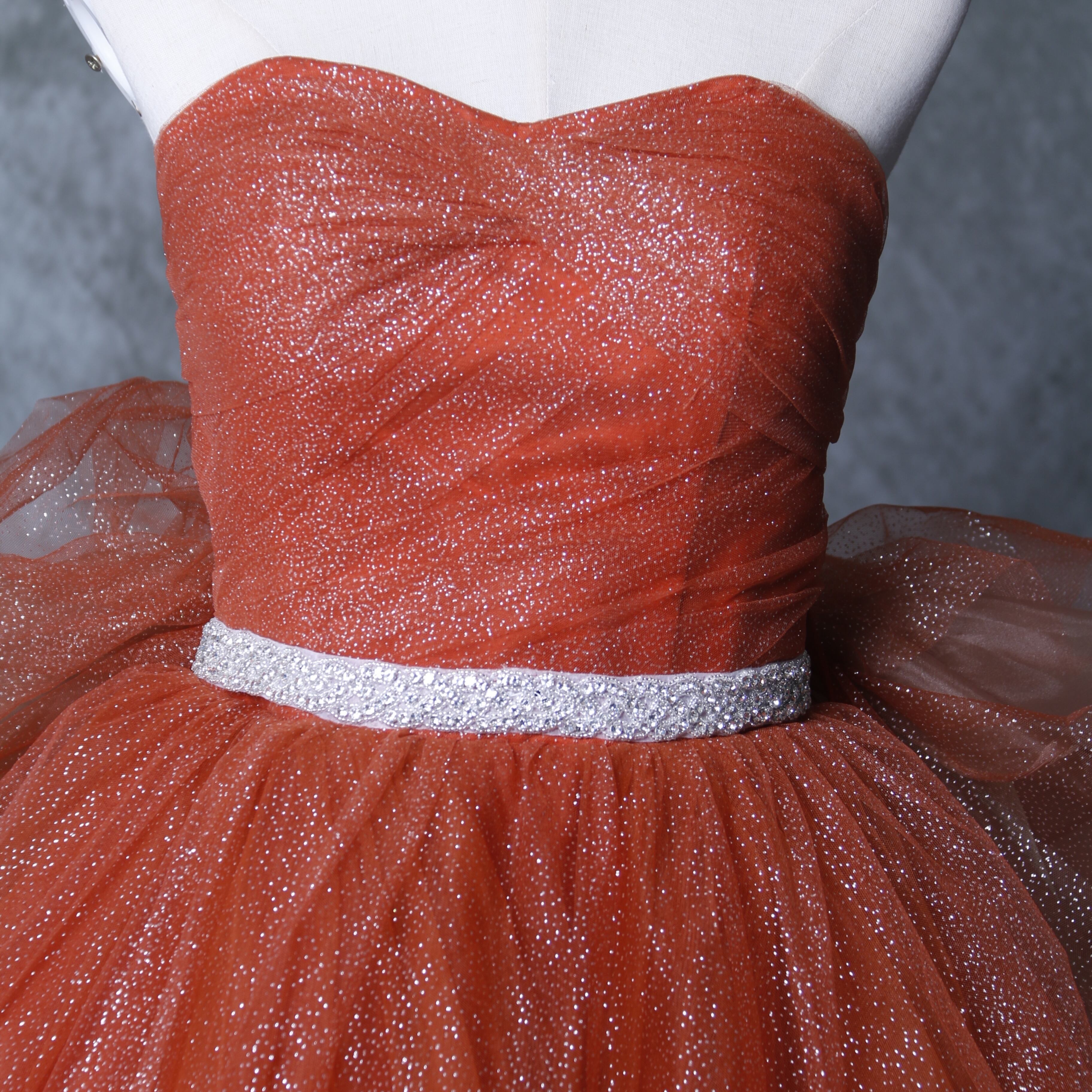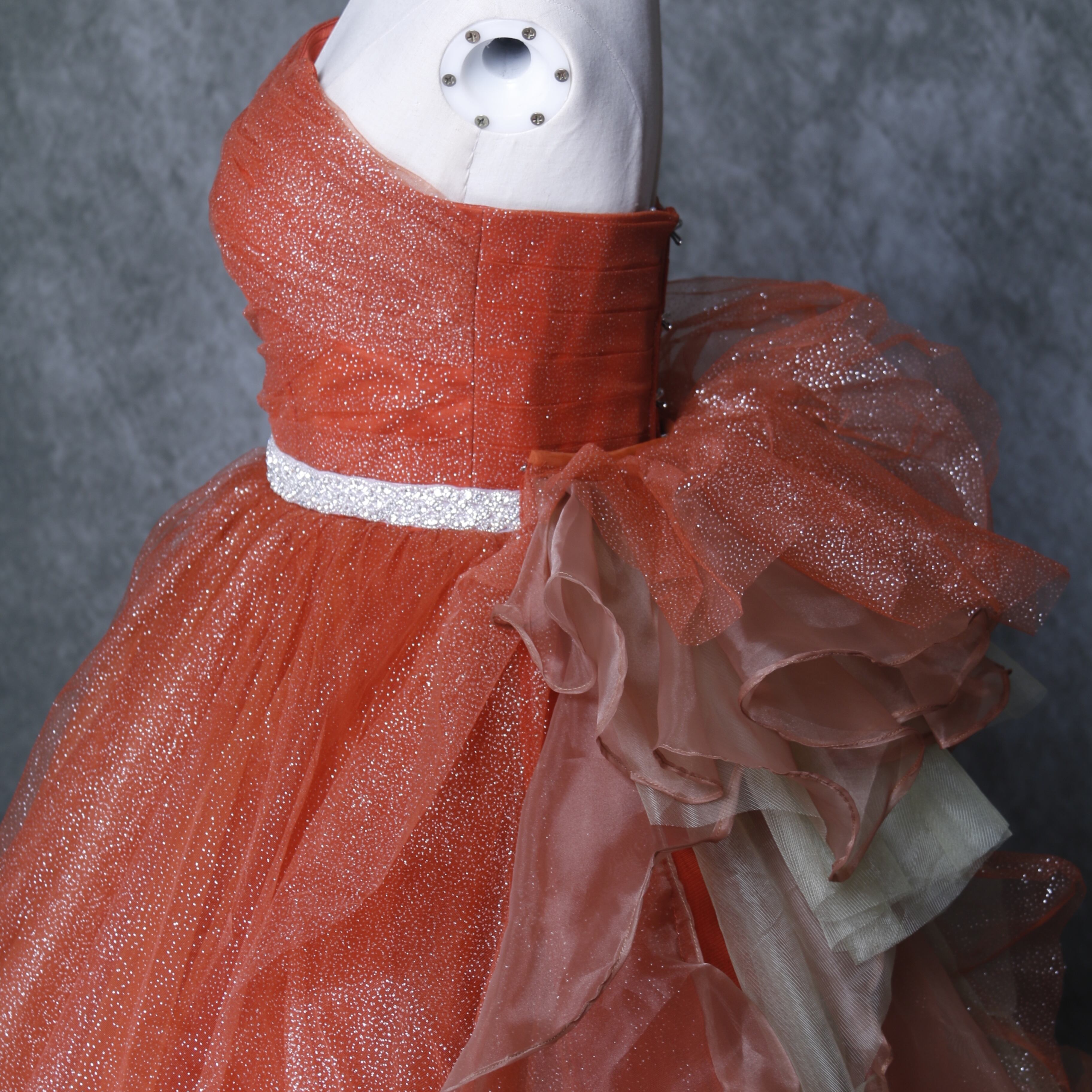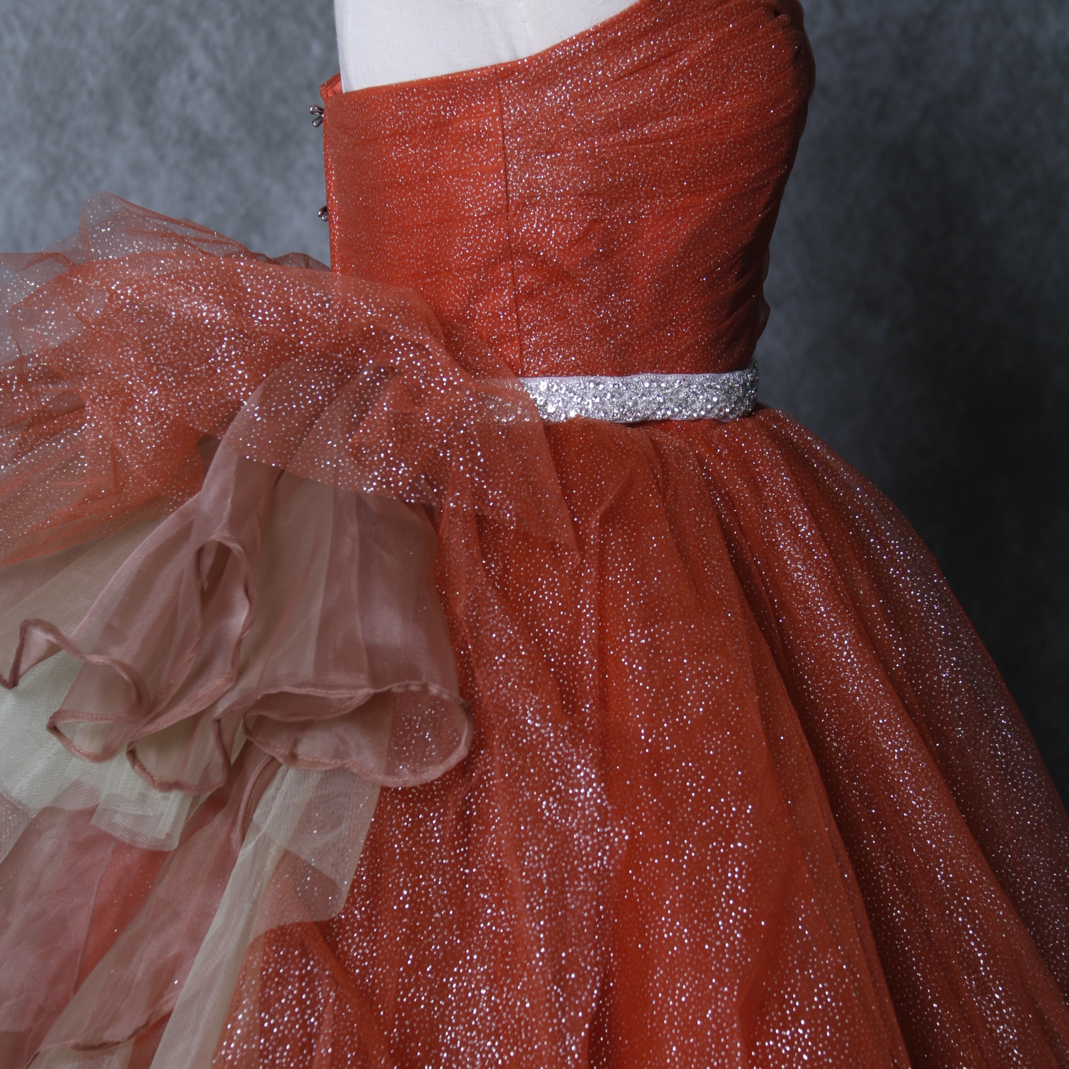 送料無料! 輝きな光彩を放つ キラキラグリッターチュール カラードレス 華やかなトレーン 結婚式/