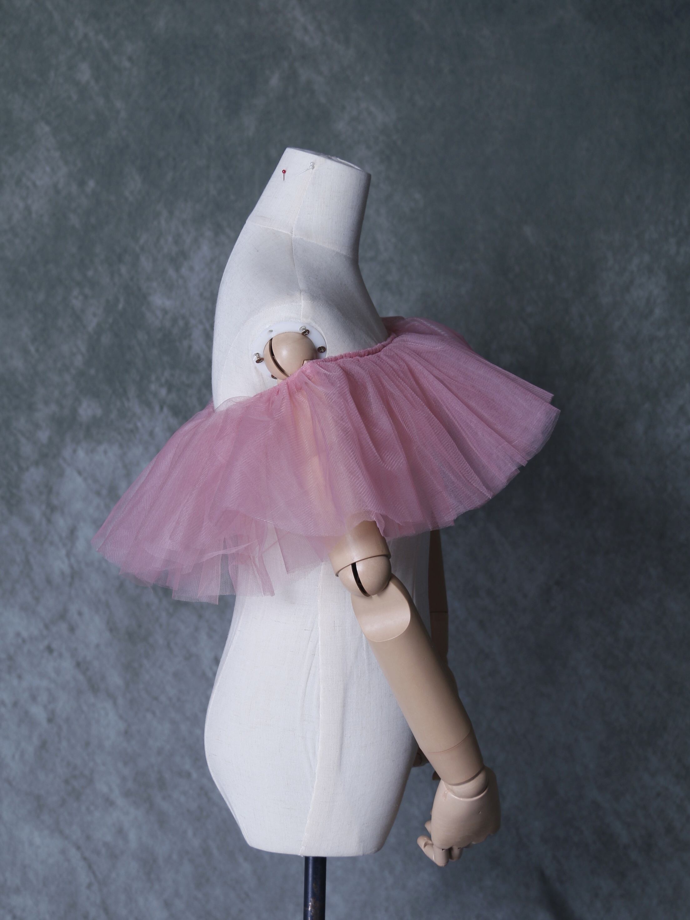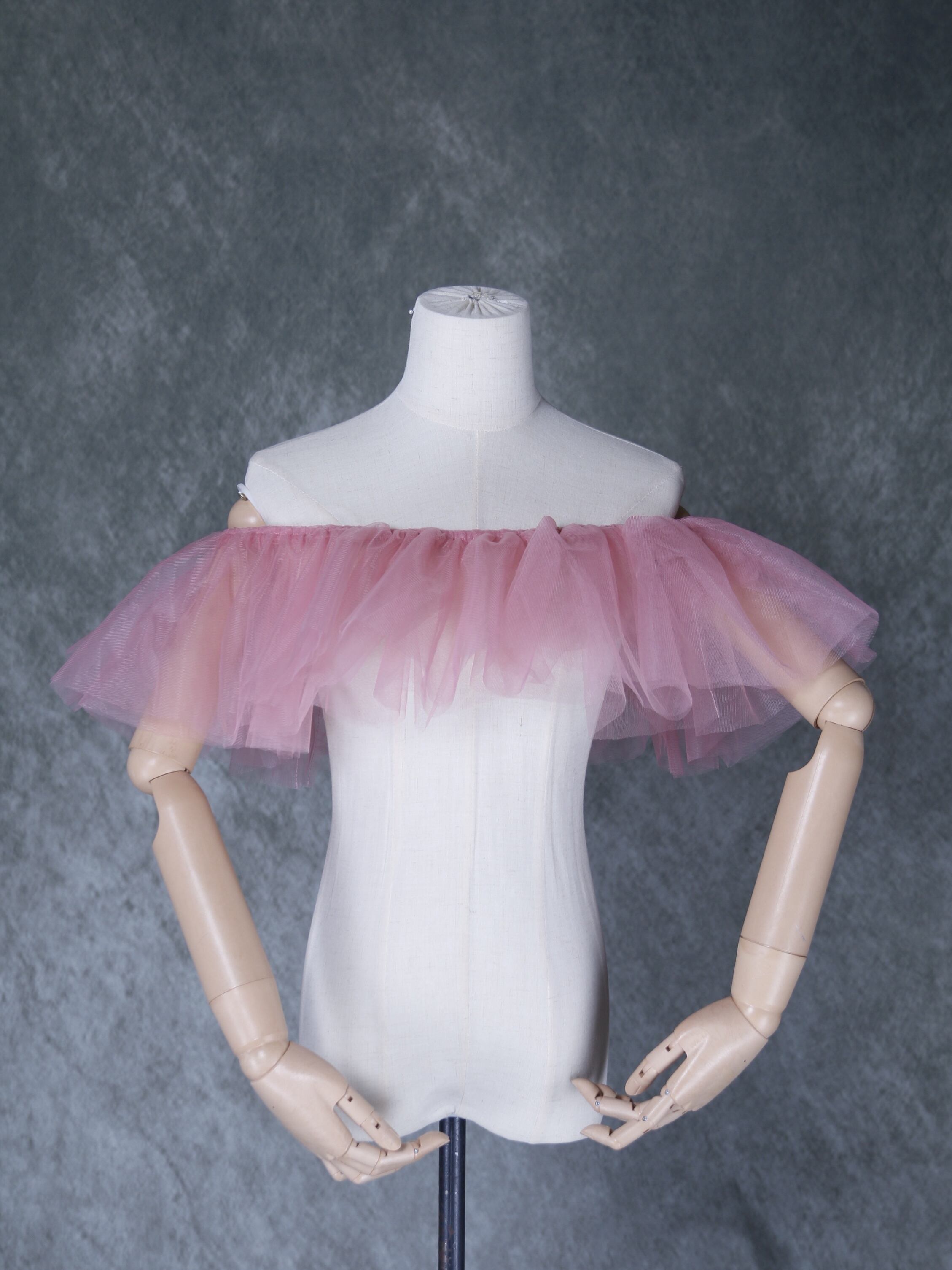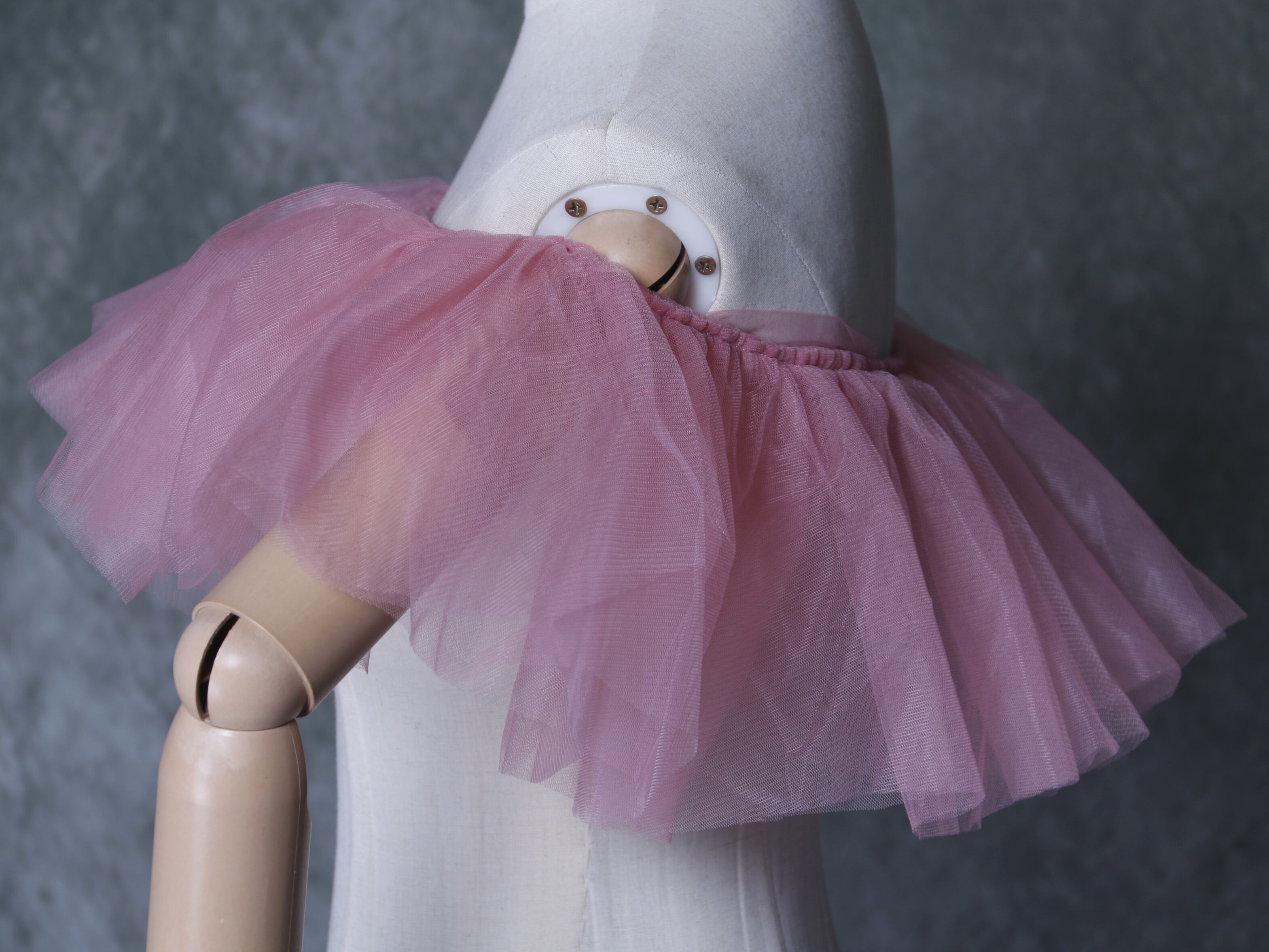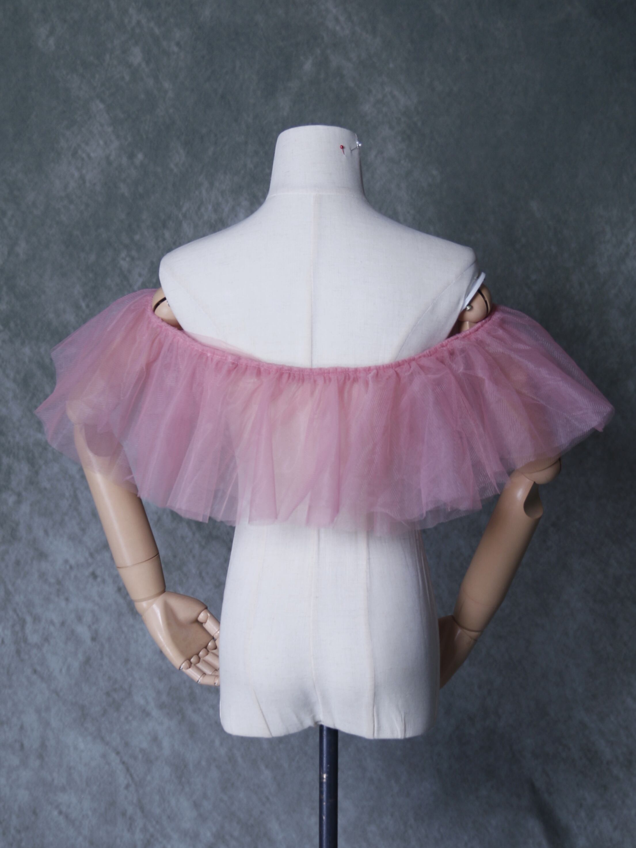 送料無料! ピンク ポンチョ ソフトチュール ラッフルフリル  取り外しオフショルダー