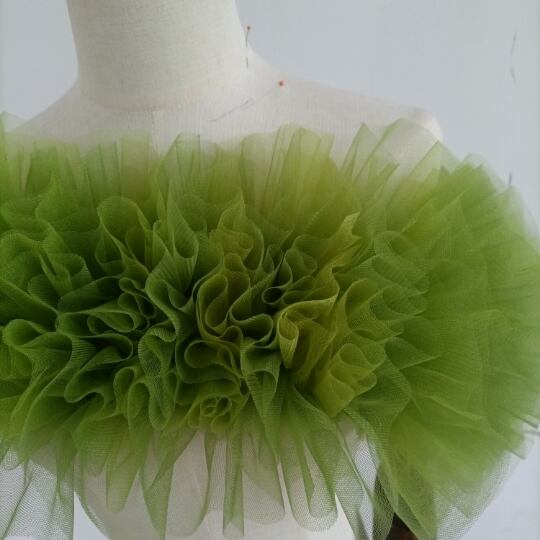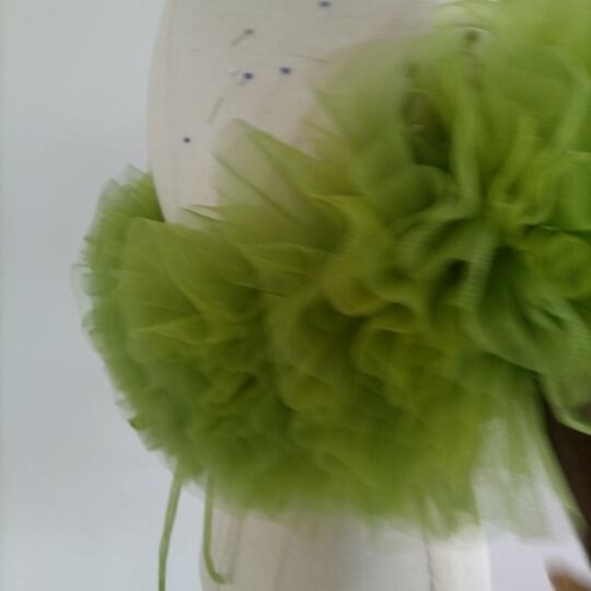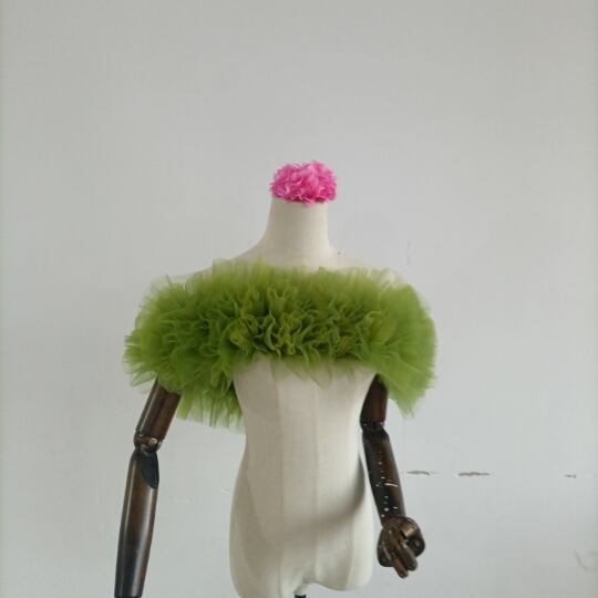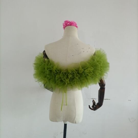 送料無料! グリーン ポンチョ ソフトチュール ラッフルフリル  取り外しオフショルダー