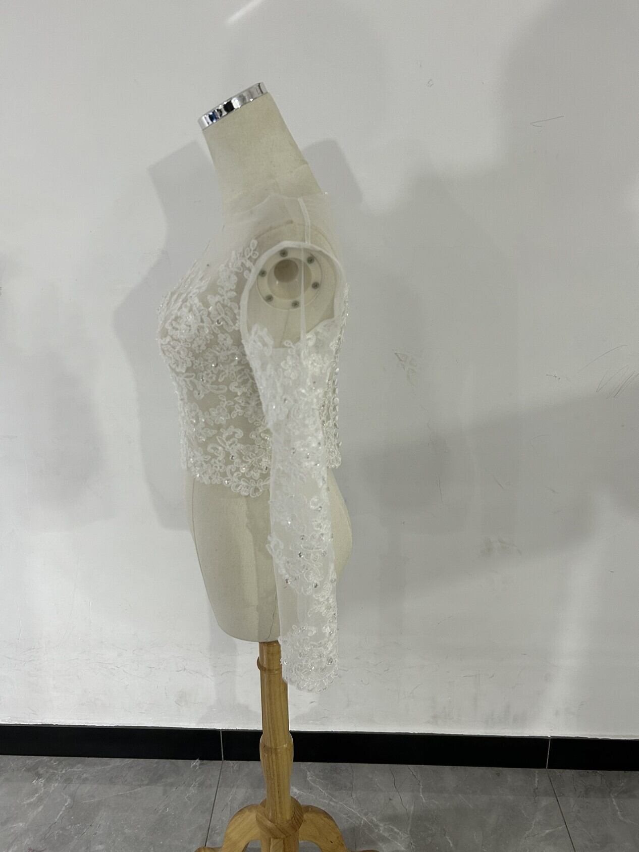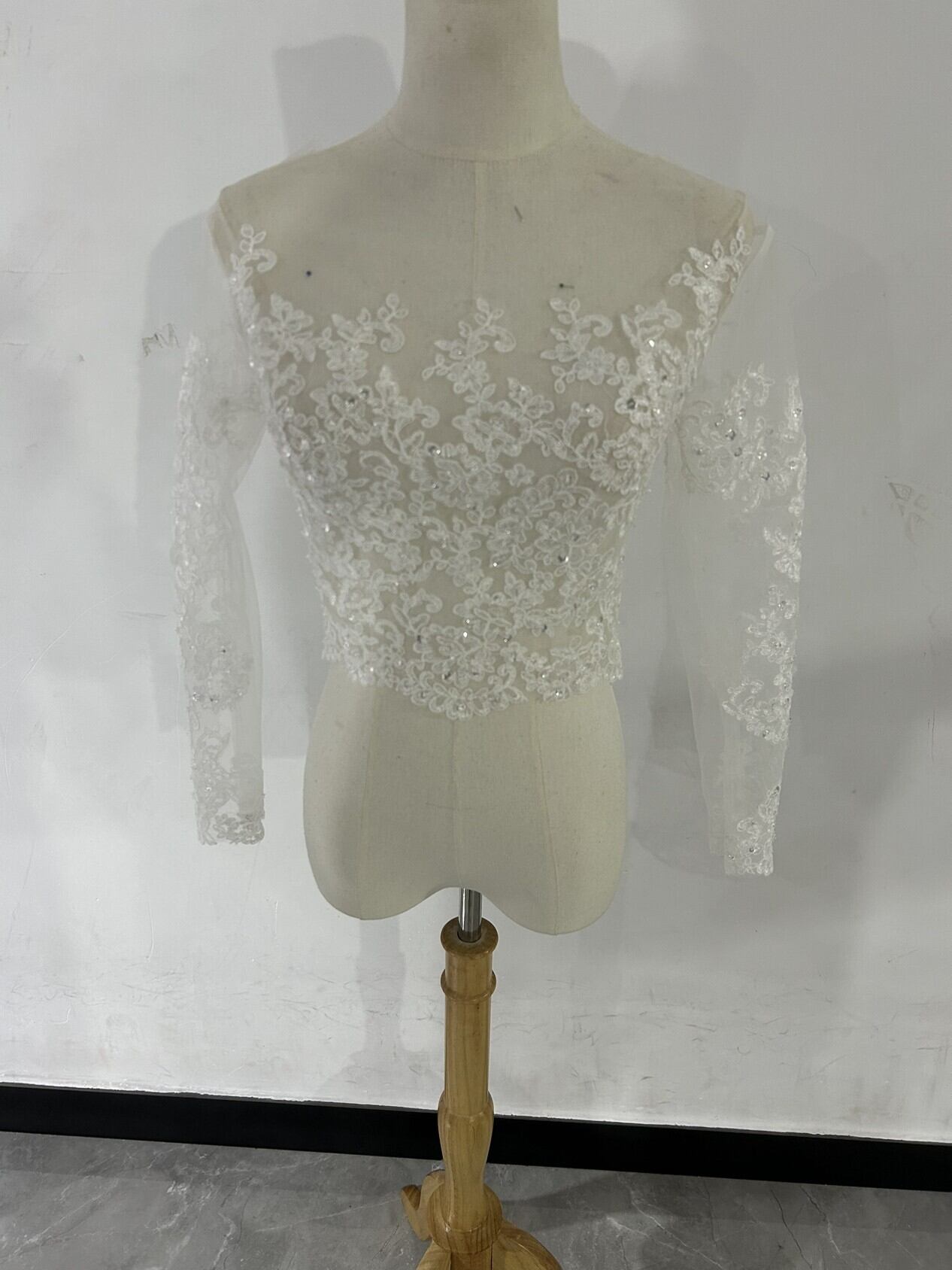 美品! ウエディングドレス 上品花レース キラキラスパンコール 長袖 トップス /花嫁