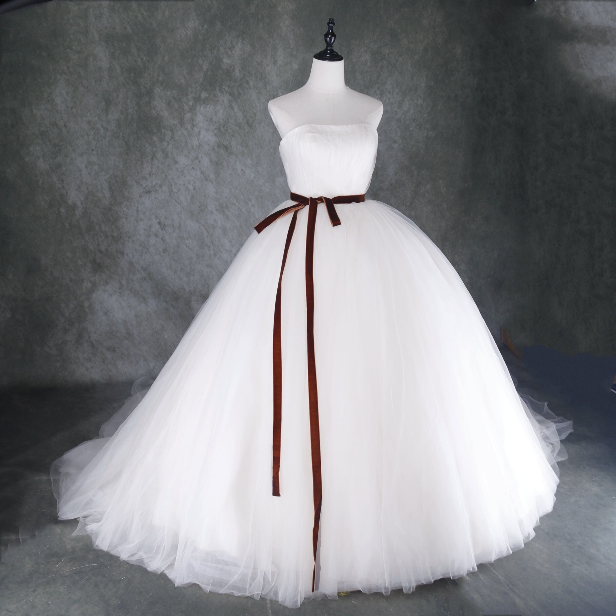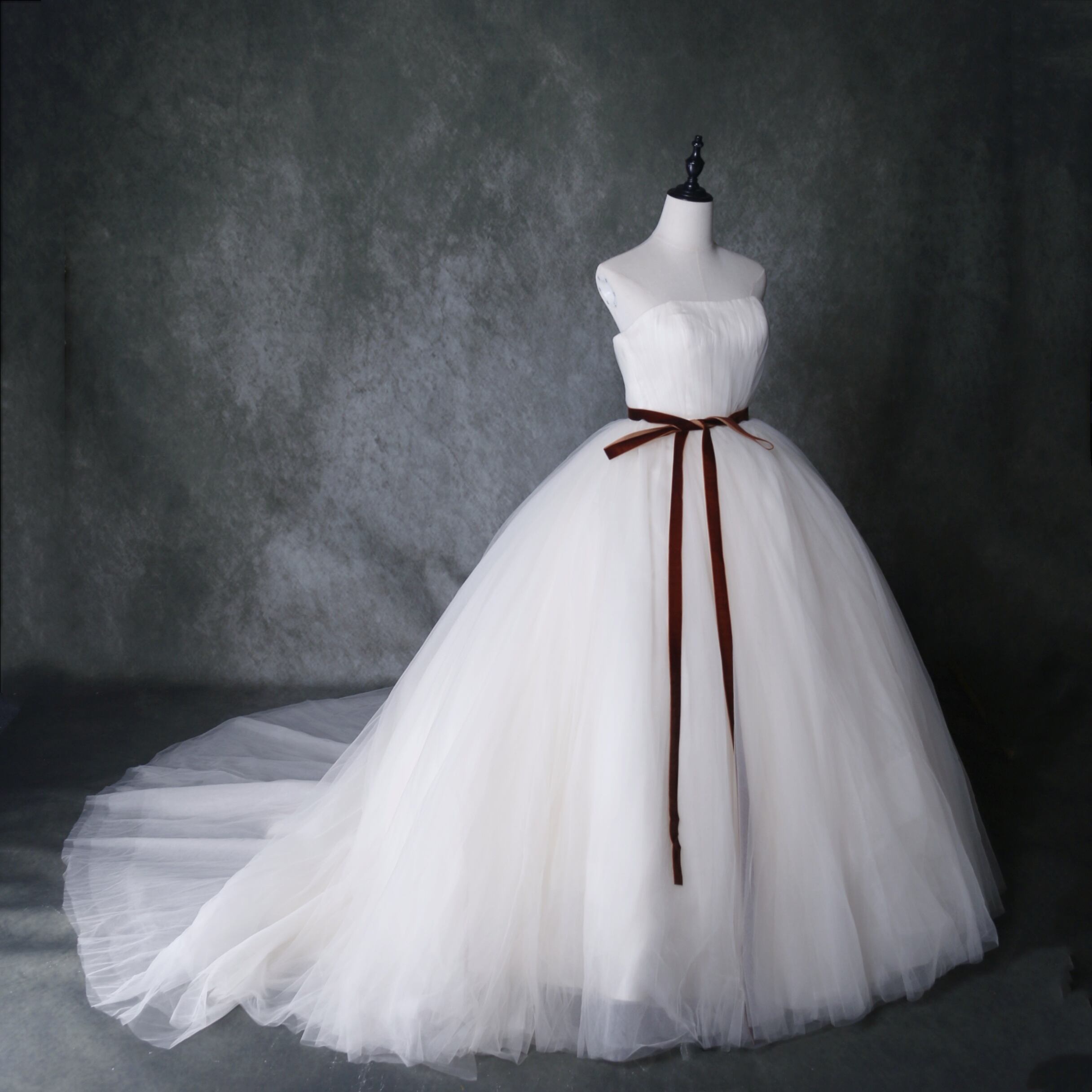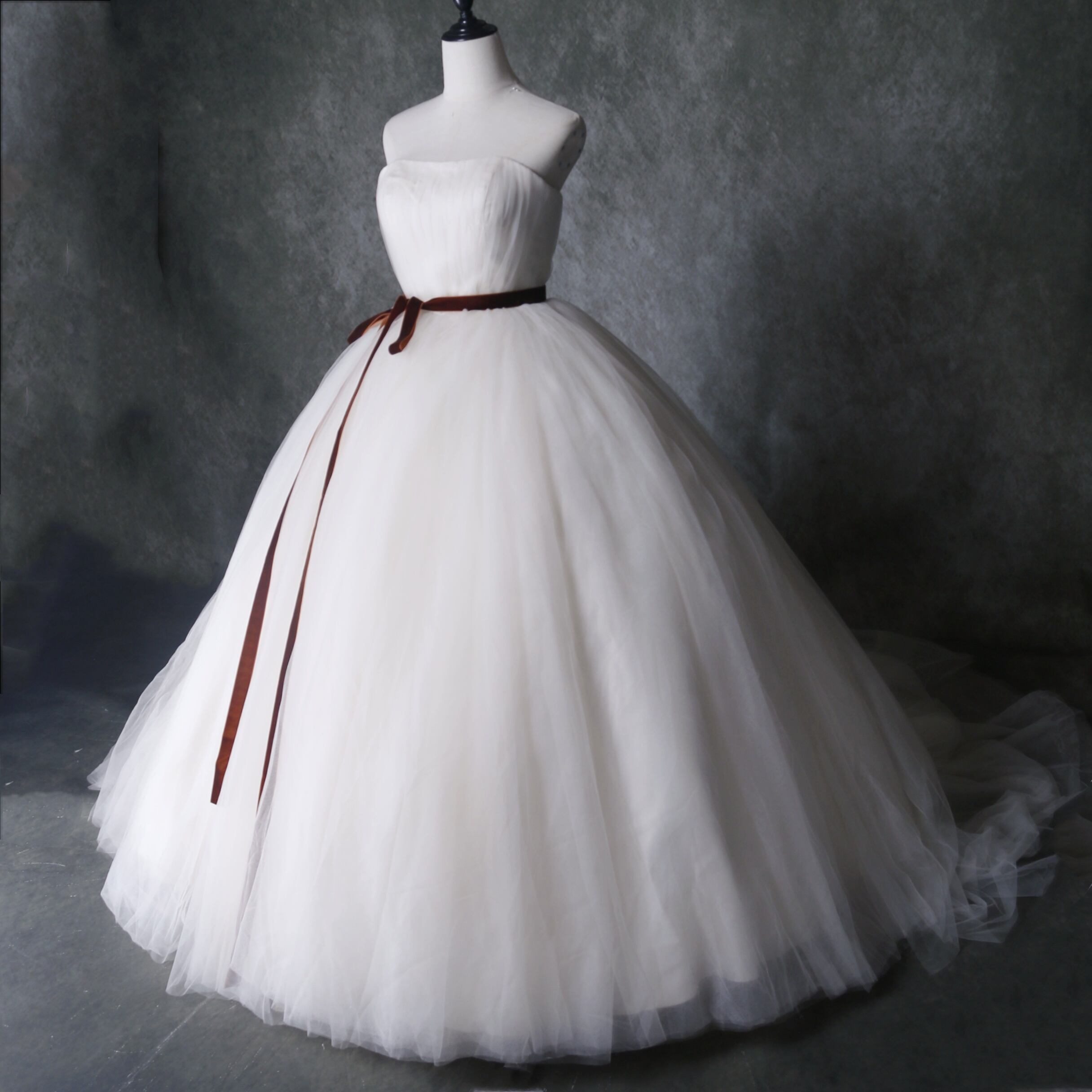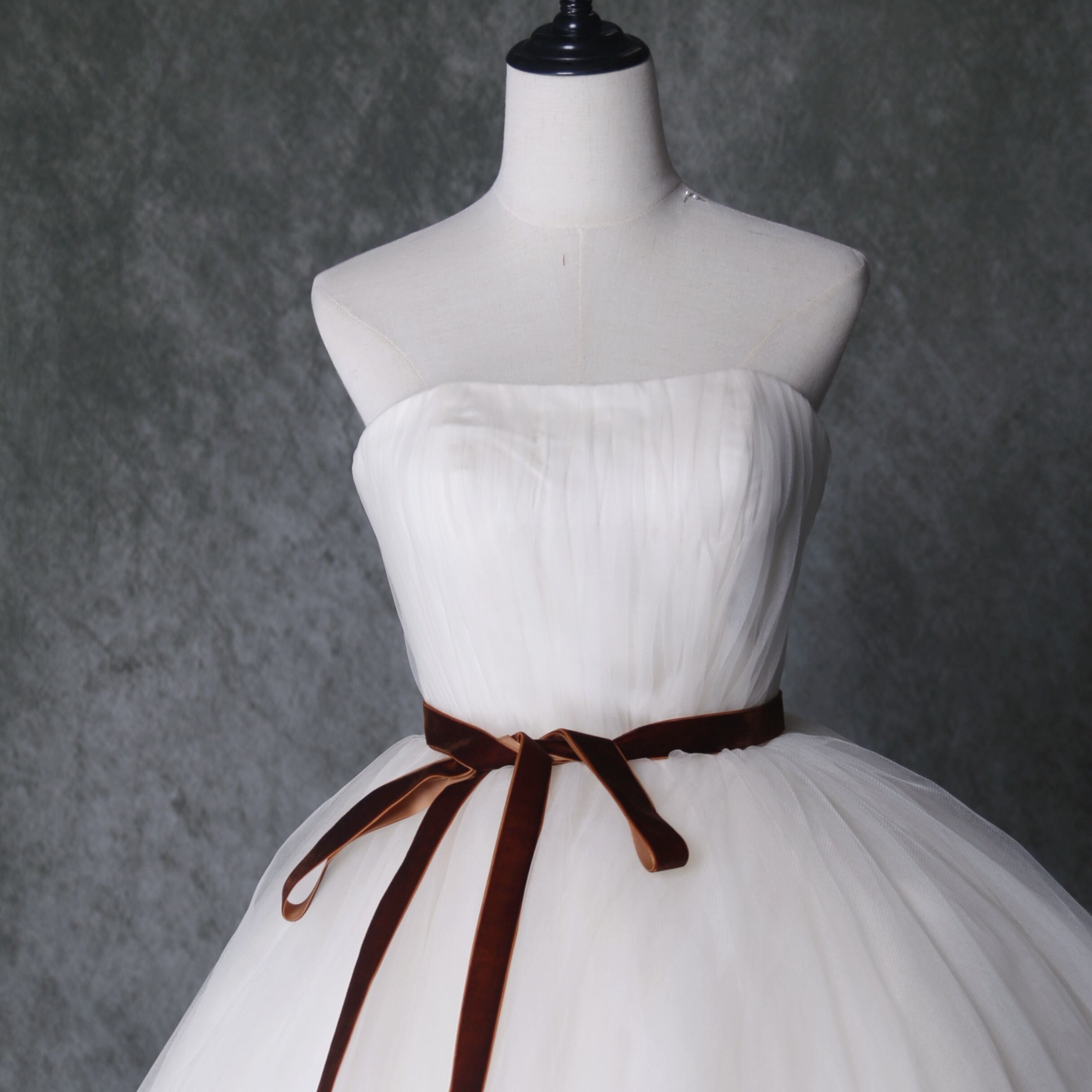 送料無料! アイボリー ソフトチュール ベアトップ フレアスカート 結婚式 花嫁