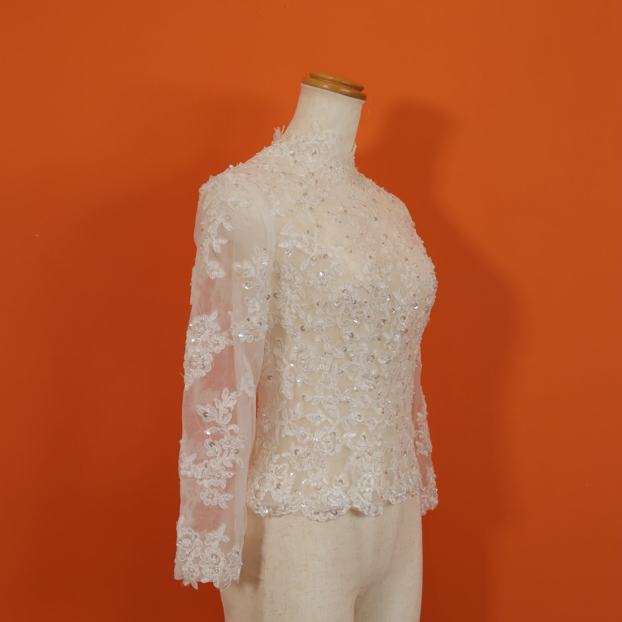 輝きな光彩を放つ ウエディングドレス 長袖 フェミニンなフレームレースの袖トップス /花嫁